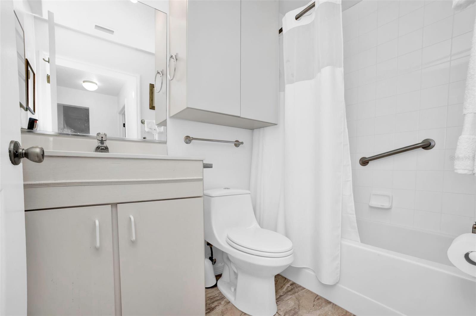 This is St. James Place where you can expect and appreciate many features that include covered and assigned parking, a newly resurfaced parking lot and a top floor unit close to the elevator. That top floor location provides great views and cathedral ceilings. A glass screened door brings in lots of light and/or fresh breezes. ALL THE WORK HAS BEEN DONE FOR YOU! This unit is completely tiled with new baseboards, even the laundry room and walk-in closet. You will enjoy the open kitchen with plenty of quartz countertops, beautiful tile backsplash and all new white appliances, replaced in June, 2022. They include a Bosch dishwasher, refrigerator, range and build-in microwave. The hardwood cabinets are also new and include an extra custom built pantry with sliding drawers. The front windows are adorned with the ever popular plantation shutters. All windows are high impact and were installed in 2022. No need for hurricane shutter in this condo! Also new in 2022 are the AC system, water heater and washer and dryer. The inside utility room adds storage space that is not found in most condos. The great room has updated, modern ceiling fans and flows to the lanai which overlooks a pond and greenspace area. The newly screened lanai is complete with newer vinyl windows and is the perfect place to enjoy the solitude while watching the antics of waterfowl and wildlife! You can access the lanai through sliding glass doors from the living room and the primary bedroom. The en suite bathroom features a new glass door for the step-in shower and a high toilet. The guest bathroom also features a high toilet and extra cabinet space. This beautiful, recently renovated home comes with a home warranty by Home Protect USA. It is transferrable for a $25 fee and expires March 16, 2025. Shopping is close by and convenient, as is access to entertainment, restaurants and medical facilities. A short trip across the Peace River and you can spend an afternoon shopping and dining in eclectic downtown Punta Gorda. Boat rentals are available for sightseeing or fishing in Charlotte Harbor. Golf? Yes! There are plenty of local courses and more available all along the Gulf Coast. Beaches? Well, of course! This is Florida! You will discover a wide range of beautiful beaches to explore...from the island of Boca Grande to the white sugar sand of Siesta Key...and many, many more! It's all right here for you to take advantage of from your top floor home in St. James Place! Call today for an appointment.