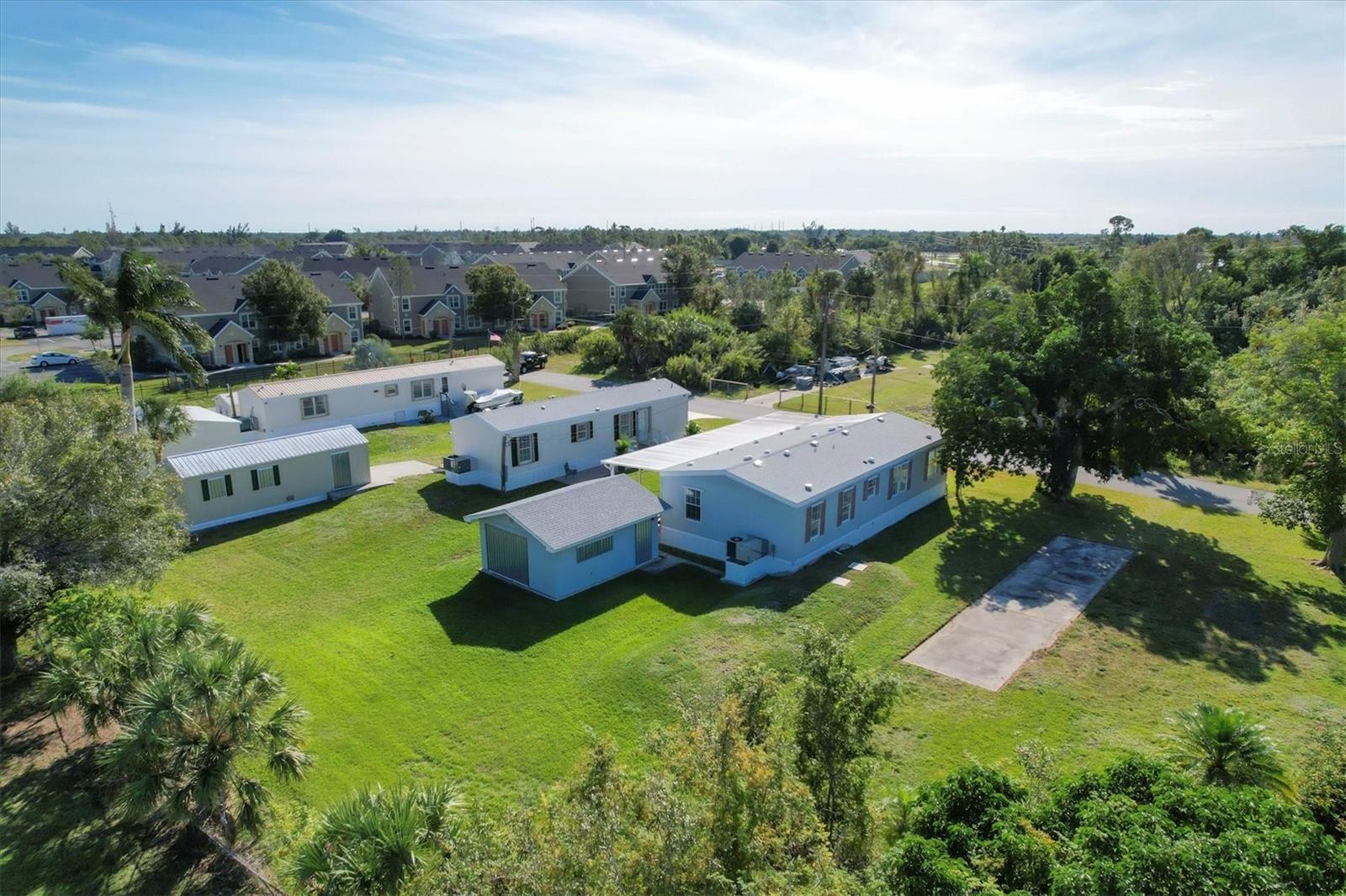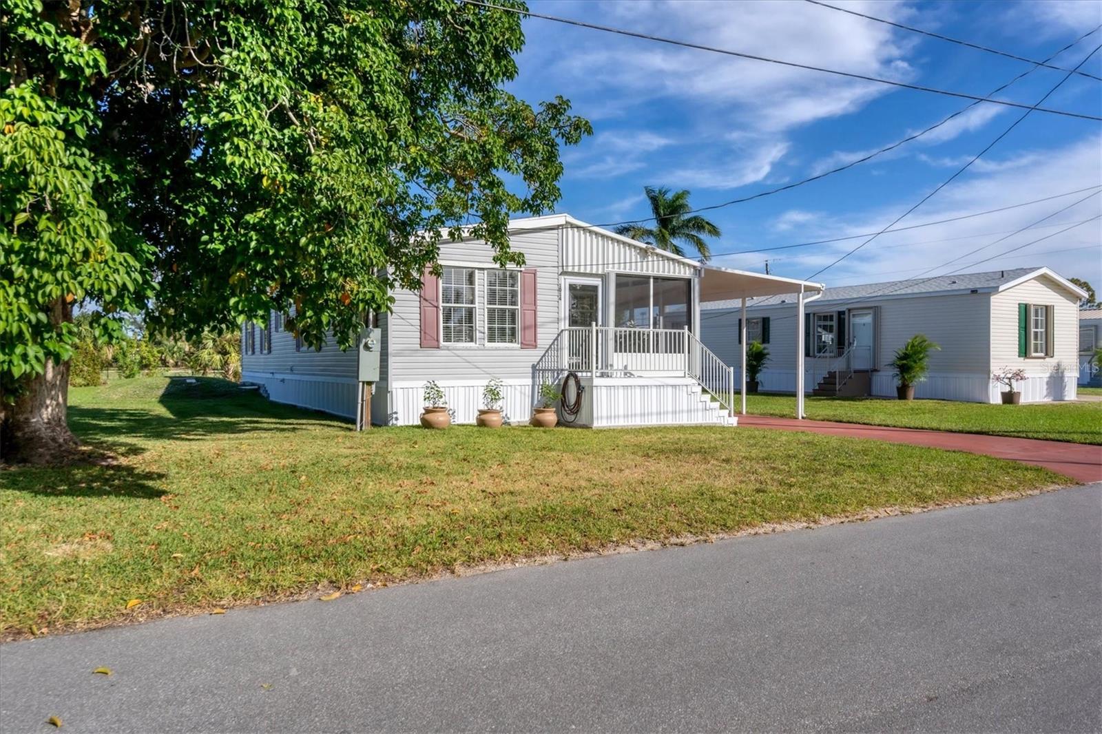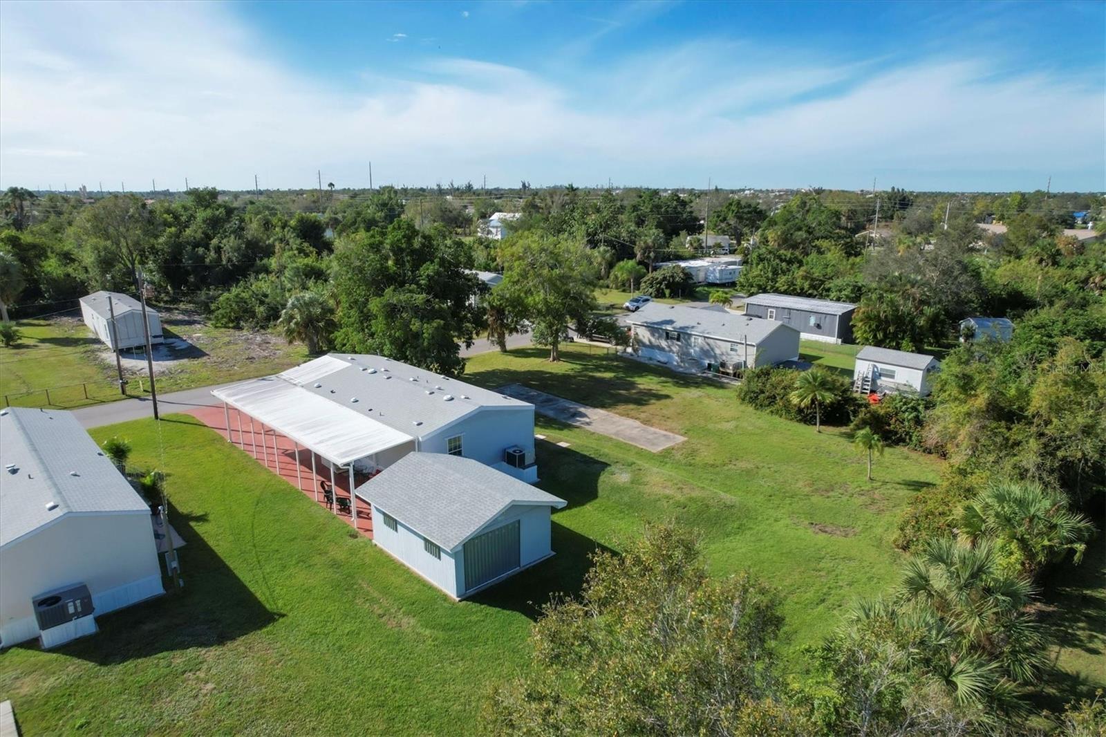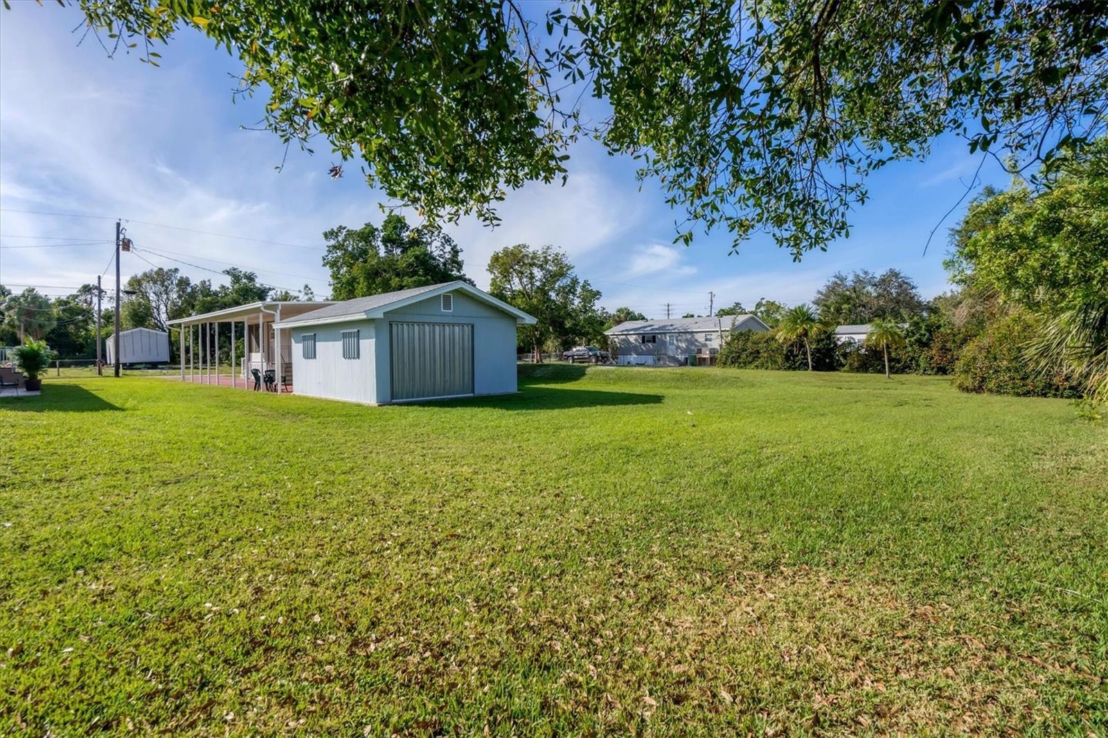 Welcome home to 1014 Elm St. You own the LAND, NO DEED RESTRICTIONS, located in the County in the heart of Punta Gorda. This manufactured double wide home with STORM SHUTTERS, SCREENED in PORCH with CITY WATER and DOUBLE PANE WINDOWS. PLUS, open-concept living area provides a seamless flow between the CUSTOM bright kitchen with GRANITE COUNTERS, upgraded STAINLESS appliances and breakfast nook plus GREAT ROOM perfect for entertaining. Featuring: SEPARATE dining room with FRENCH DOORS leading to LANAI, Crown molding, tile floors throughout on a base of Cement Board. Natural light floods the space, showcasing the home's craftsmanship and attention to detail. The Master Suite has an ensuite bath, plus the guest room has a MURPHY-BED included in the purchase. Note both baths have GRANITE COUNTERS. PLENTY of space in your carport for vehicles or storage. Your BOAT, RV or toys are welcome and don’t forget about the Garage 16 x 20 that opens at both ends for your workshop and treasures! NOTE: an ADDITIONAL HOME 1020 Elm MLS C7485479 and VACANT LOT 1010 Elm MLS C7485493 are available for purchase separately, both adjoin property. An excellent location minutes from popular local attractions like: Historic Downtown Punta Gorda, Entertainment, Fishermen's Village, Biking, Fishing, Shopping, and Dining PLUS Hospitals and Doctors. Schedule your personal showing today and make an offer on one or all three properties