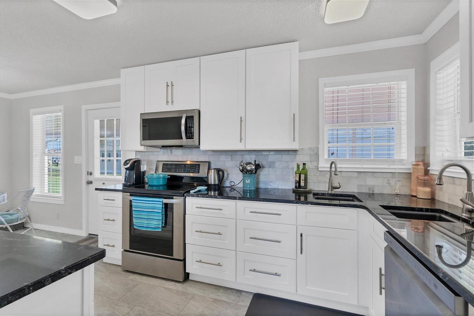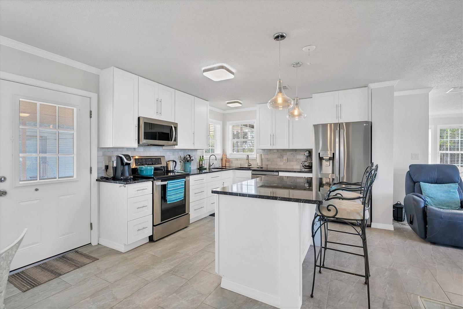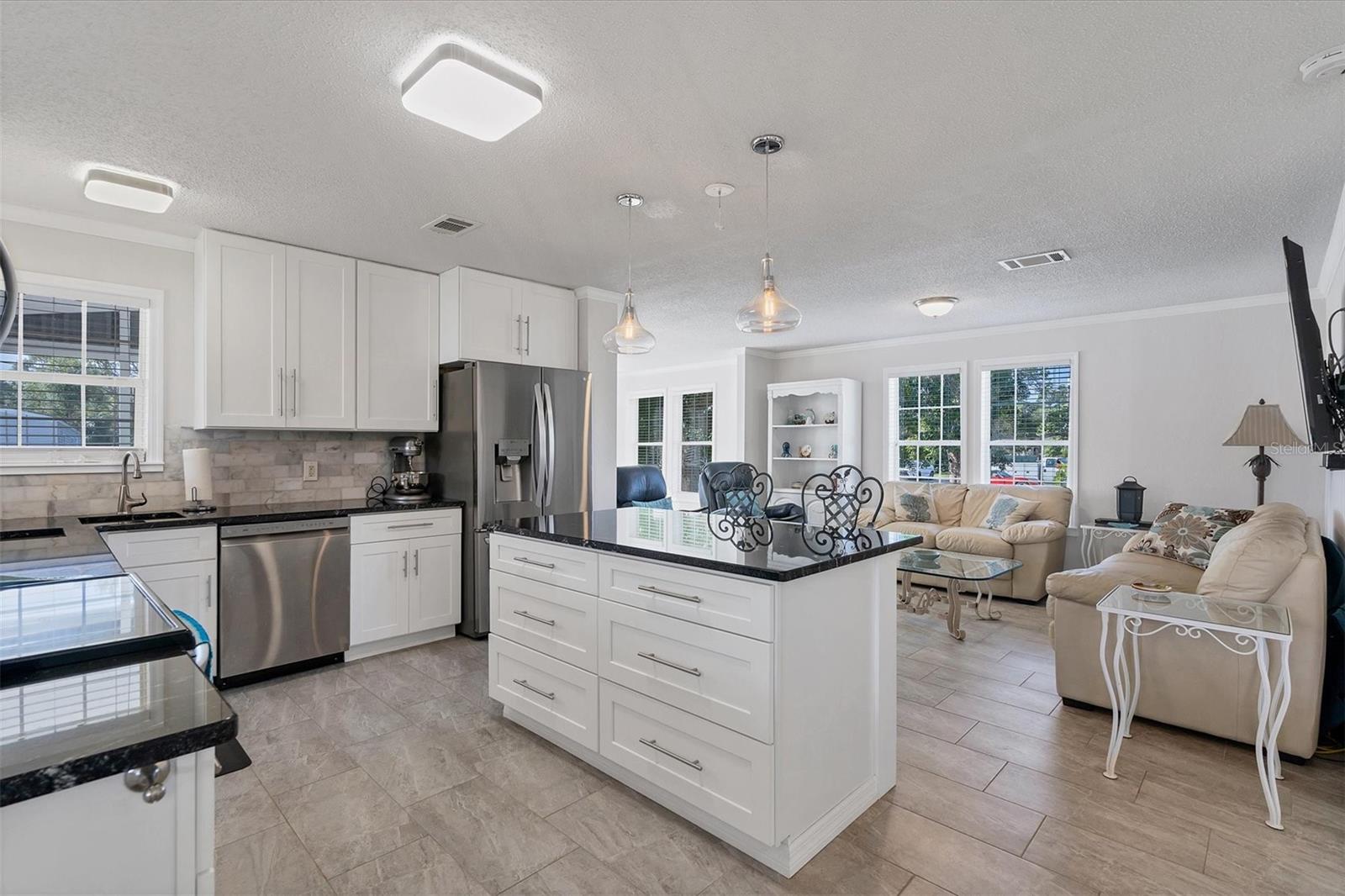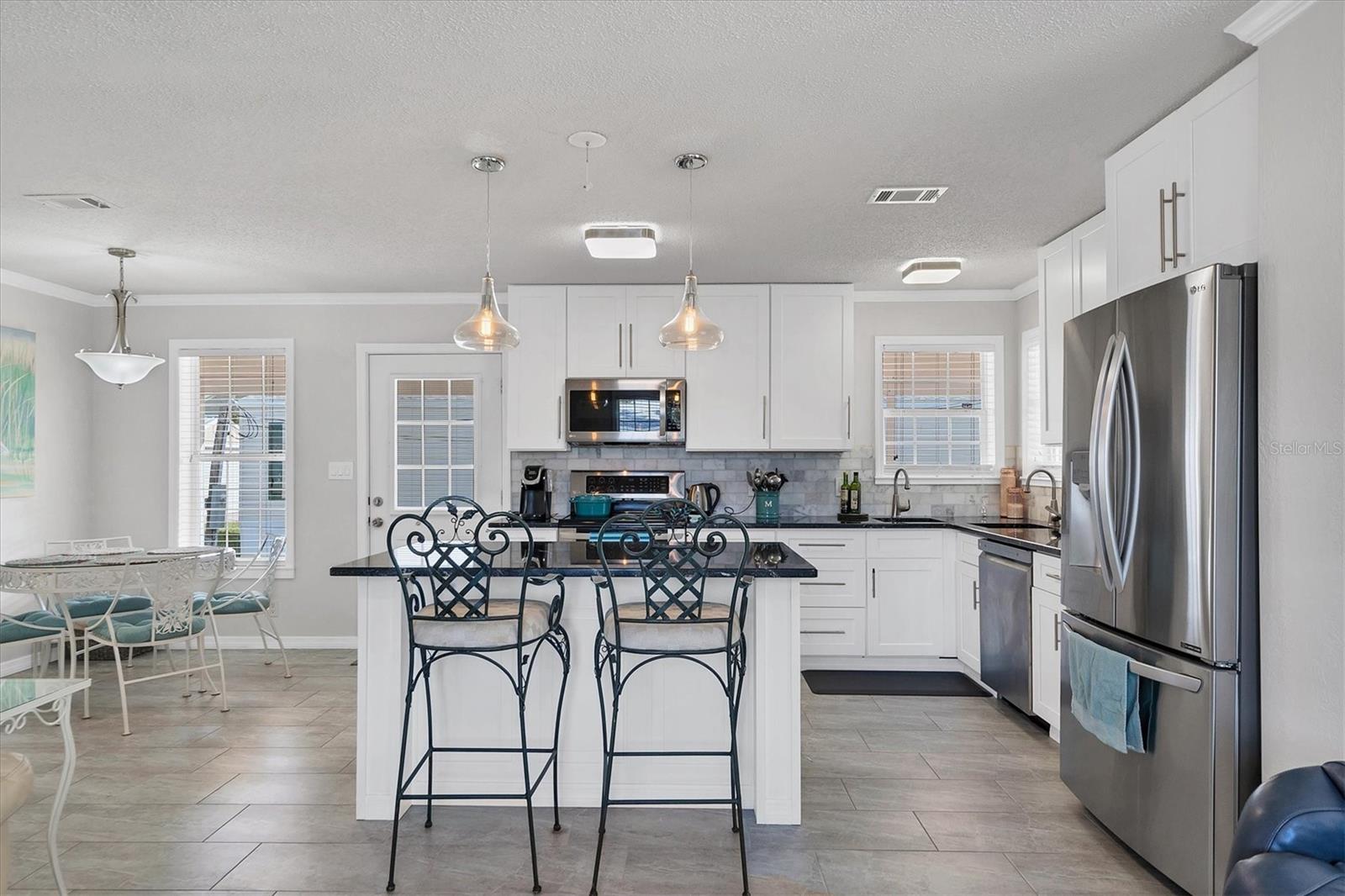 Welcome home to 1014 Elm St. You own the LAND, NO DEED RESTRICTIONS, located in the County in the heart of Punta Gorda. This manufactured double wide home with STORM SHUTTERS, SCREENED in PORCH with CITY WATER and DOUBLE PANE WINDOWS. PLUS, open-concept living area provides a seamless flow between the CUSTOM bright kitchen with GRANITE COUNTERS, upgraded STAINLESS appliances and breakfast nook plus GREAT ROOM perfect for entertaining. Featuring: SEPARATE dining room with FRENCH DOORS leading to LANAI, Crown molding, tile floors throughout on a base of Cement Board. Natural light floods the space, showcasing the home's craftsmanship and attention to detail. The Master Suite has an ensuite bath, plus the guest room has a MURPHY-BED included in the purchase. Note both baths have GRANITE COUNTERS. PLENTY of space in your carport for vehicles or storage. Your BOAT, RV or toys are welcome and don’t forget about the Garage 16 x 20 that opens at both ends for your workshop and treasures! NOTE: an ADDITIONAL HOME 1020 Elm MLS C7485479 and VACANT LOT 1010 Elm MLS C7485493 are available for purchase separately, both adjoin property. An excellent location minutes from popular local attractions like: Historic Downtown Punta Gorda, Entertainment, Fishermen's Village, Biking, Fishing, Shopping, and Dining PLUS Hospitals and Doctors. Schedule your personal showing today and make an offer on one or all three properties