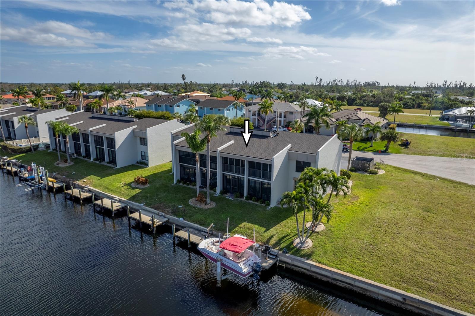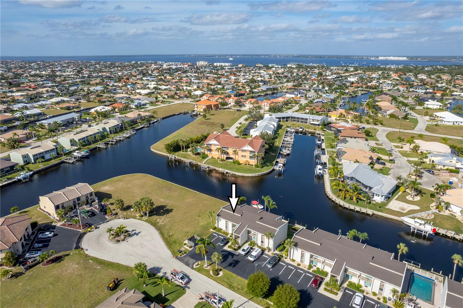 PUNTA GORDA ISLES! THE BOATER’S PARADISE! Access to Beautiful Charlotte Harbor and Gulf of Mexico right outside your back door from you own assigned Boat Dock. Nestled in the heart of Punta Gorda Isles on a quiet cul-de-sac street. With Great WATER VIEWs FROM EVERY ROOM! Situated on the 2nd floor, this Stunning renovated end unit shows like a Model, with attention detail throughout this unit. New Appliances, New Lighting, Quartz Countertops, Breakfast Bar, Crown Molding, 5in Base Boards, Shiplap walls, Interior Paint, Custom Tiled Shower in the Primary Suite, New Vanities in both Bathrooms, plus there is ample storage with 6 large closets throughout and a separate inside utility room with full size washer/dryer and additional storage. The unit boasts a desirable split floor plan with Private Primary Suite and giving your Guest their own retreat. Take in the long water view of intersecting canals afforded by the large 10 ft glass doors which open up to the Florida Room, that offers you additional Living space. Plus, you will have the convenience of parking just outside your door with two assigned parking spaces. The complex features a private pool, and you will be within a short drive to golf, dining, shopping, tennis, pickleball, walk and bike paths, downtown Historic area and all that Southwest Florida has to offer. The Florida Waterfront Lifestyle is waiting.