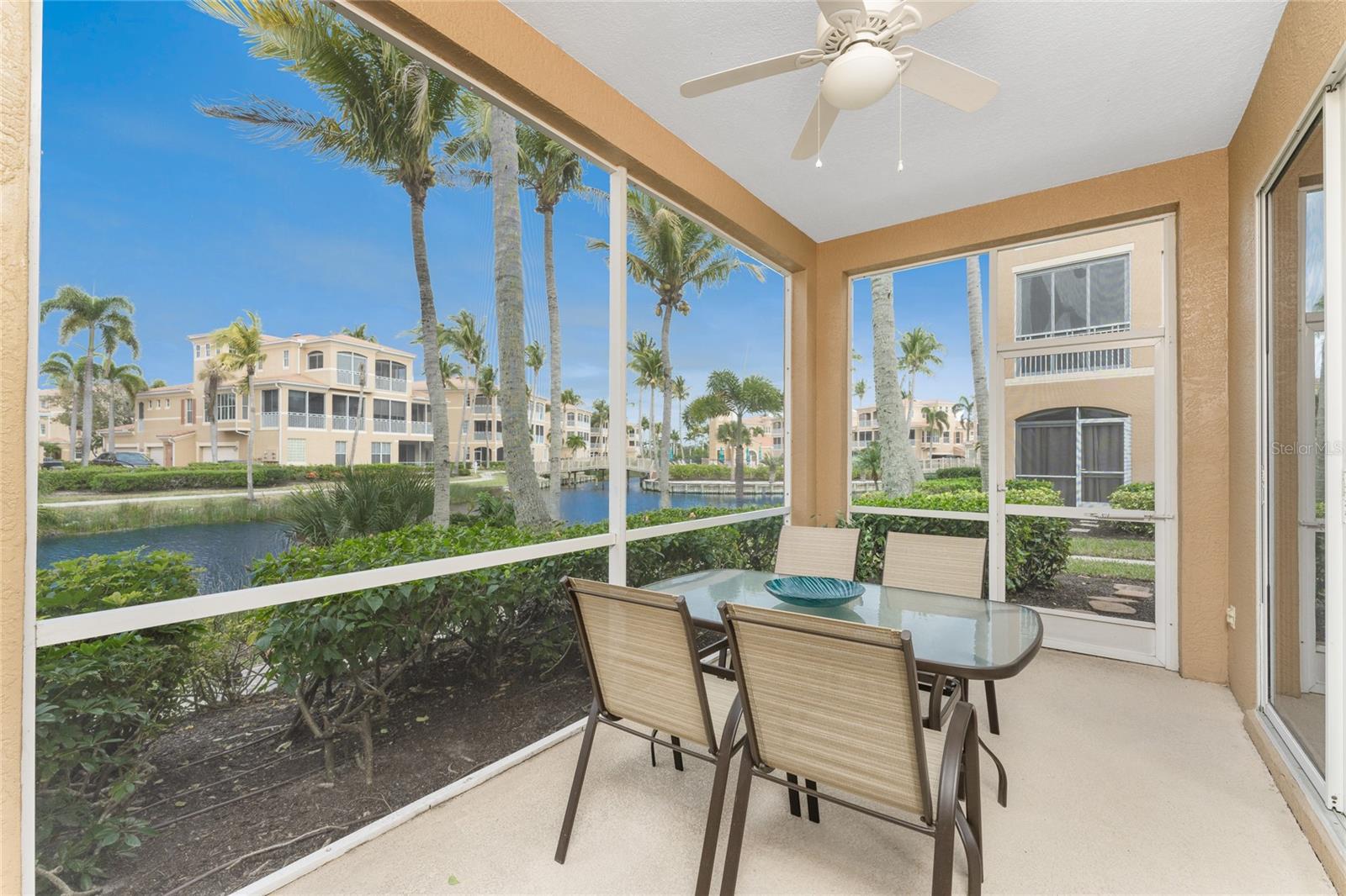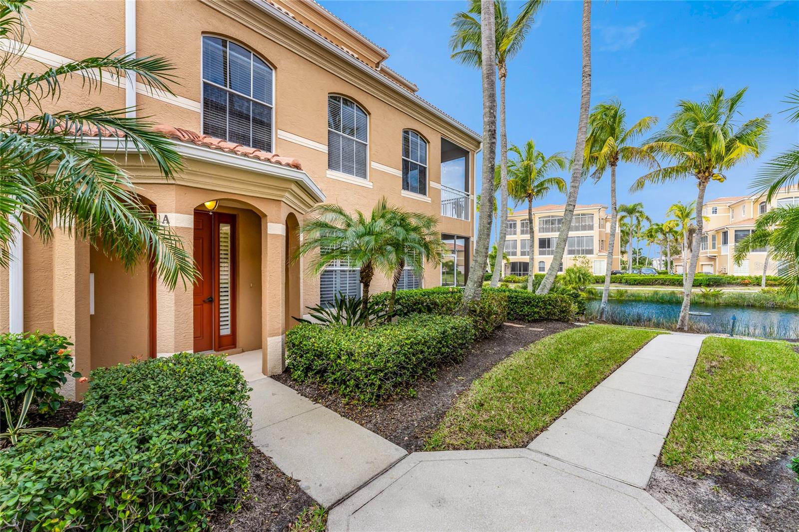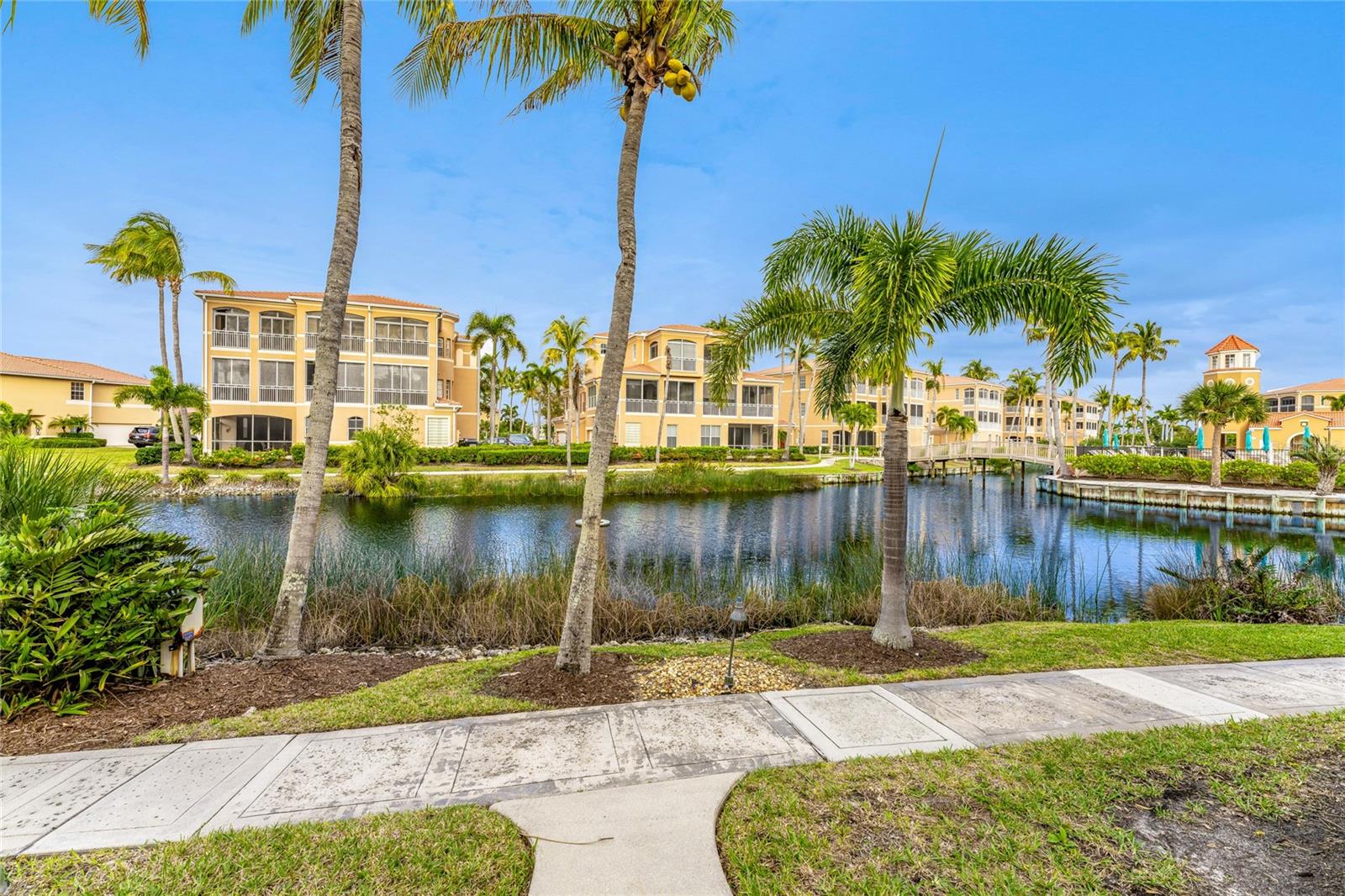 Experience a true sense of arrival as you enter the gates of Prosperity Point - a privately gated peninsula within Burnt Store Marina. Nestled between two vibrant marina basins, this charming ground floor three bedroom Emerald Isle residence is being offered turnkey furnished, so you can move right in and begin living the Florida lifestyle you’ve dreamed of. Picturesque landscape and lagoon views are the focal point from the main living space, the master bedroom and inviting screened lanai…sure to be your favorite place to unwind. Imagine waking up to the tranquil sight of soothing water and lush greenery. Pleasing natural light is sure to lift your spirits from this residence which boasts a desirable open plan surrounded by abundant windows and doors. Slide open the glass doors to usher in the tropical breezes and you will know you’ve discovered heaven. The attached two car garage takes you directly into your kitchen providing the convenience of a single family home living. Step out though the lanai or front door for a walk with Fido, or enjoy a moonlit stroll with Mr./Mrs. Wonderful! The desirable split plan offers privacy for your guests and a study/ guest room with handsome french doors for you or overflow guests. Enjoy the panoramas from the main bedroom, adorned with a sliding door to the lanai, a convenient walk-in closet and en-suite bathroom with dual sinks, shower, private commode and garden bath. Once you and your guests experience the recreation and relaxation offered by this resort-style community, you will never want to leave! As you explore the surroundings, discover a quiet walking path behind the property, enveloped by vibrant plant life. This charming path leads to the aesthetically pleasing floating island pool where you will be refreshed and catch up with neighbors. The marina-front esplanade offers incredible sunset views over the channel entrance…a great place to celebrate the day. Burnt Store Marina residents enjoy access to a 27-hole golf course, tennis, fitness, pickleball, two on-site restaurants and the largest deep-water marina in SWFL.