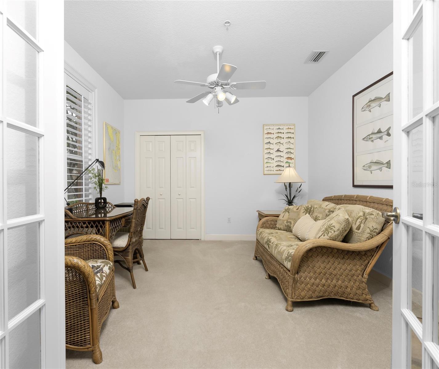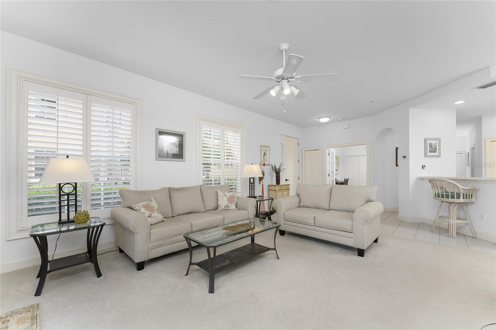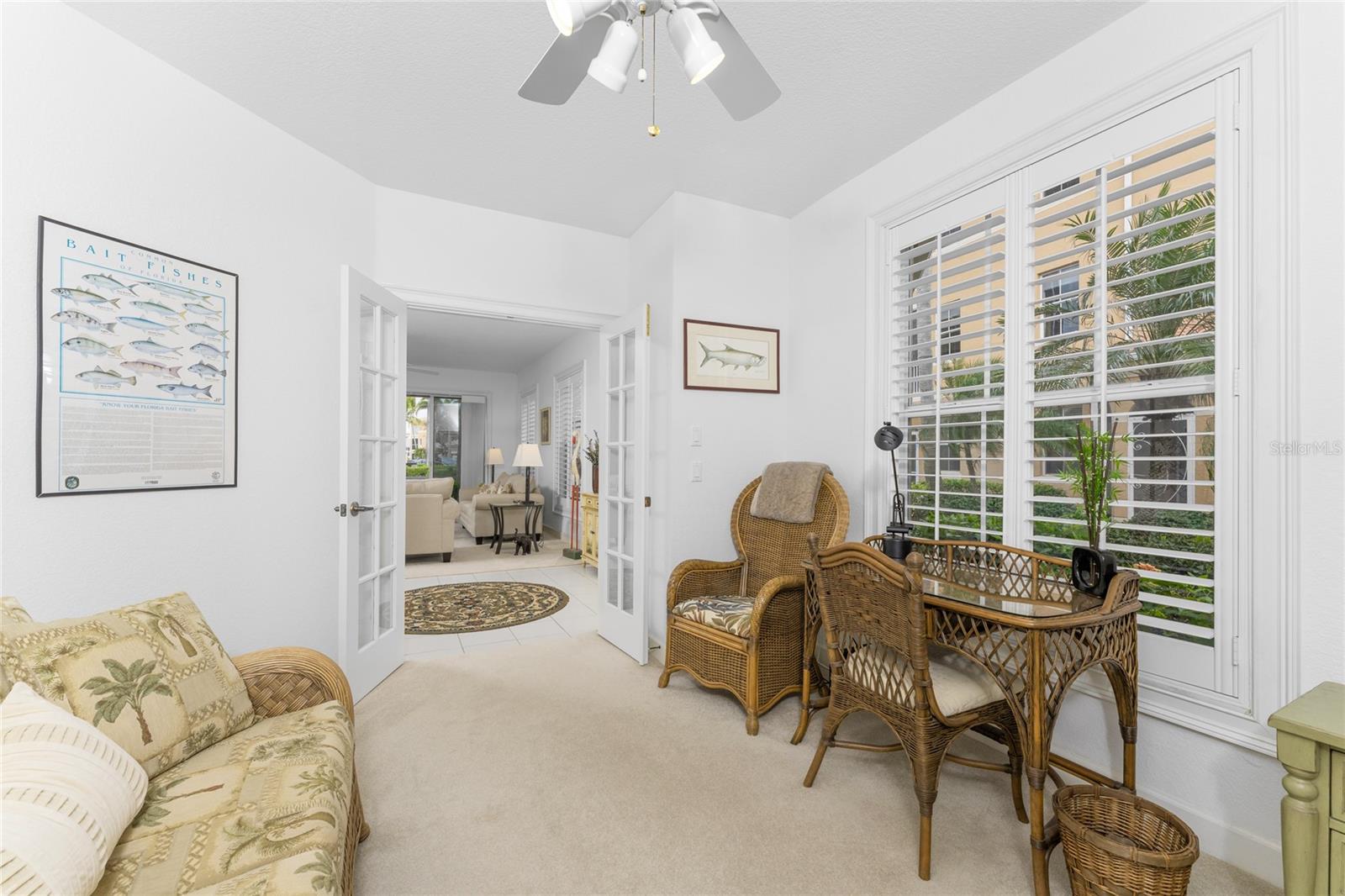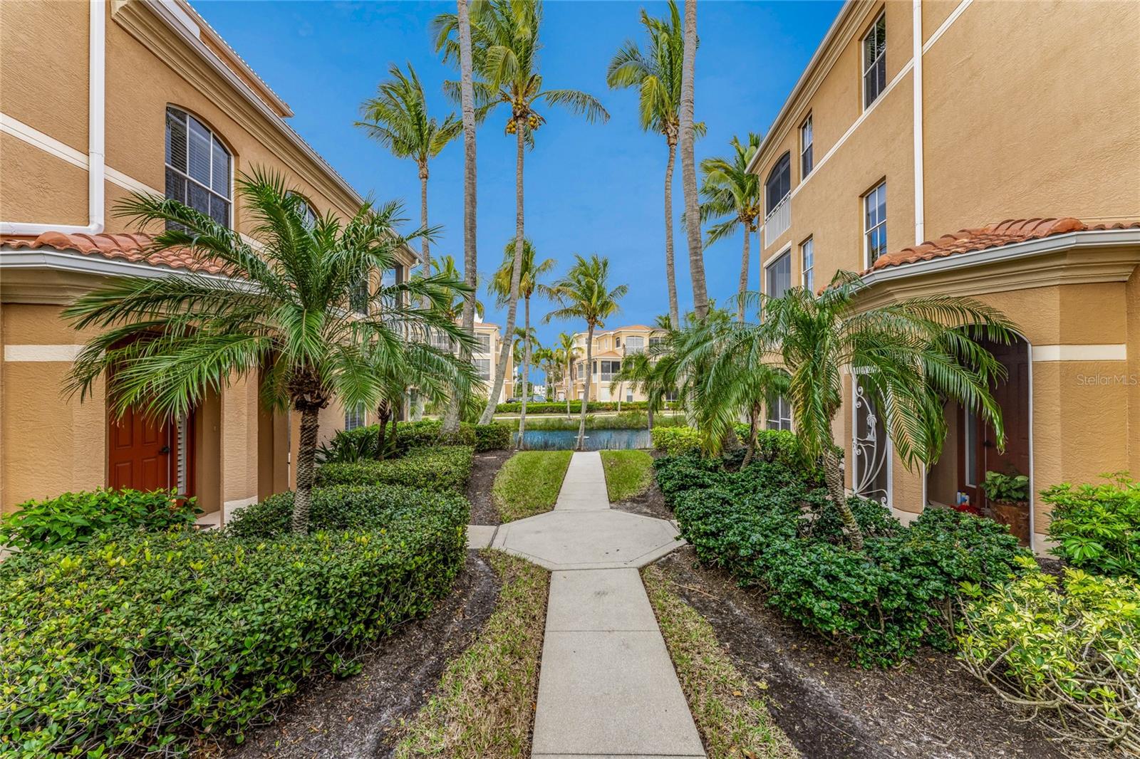 Experience a true sense of arrival as you enter the gates of Prosperity Point - a privately gated peninsula within Burnt Store Marina. Nestled between two vibrant marina basins, this charming ground floor three bedroom Emerald Isle residence is being offered turnkey furnished, so you can move right in and begin living the Florida lifestyle you’ve dreamed of. Picturesque landscape and lagoon views are the focal point from the main living space, the master bedroom and inviting screened lanai…sure to be your favorite place to unwind. Imagine waking up to the tranquil sight of soothing water and lush greenery. Pleasing natural light is sure to lift your spirits from this residence which boasts a desirable open plan surrounded by abundant windows and doors. Slide open the glass doors to usher in the tropical breezes and you will know you’ve discovered heaven. The attached two car garage takes you directly into your kitchen providing the convenience of a single family home living. Step out though the lanai or front door for a walk with Fido, or enjoy a moonlit stroll with Mr./Mrs. Wonderful! The desirable split plan offers privacy for your guests and a study/ guest room with handsome french doors for you or overflow guests. Enjoy the panoramas from the main bedroom, adorned with a sliding door to the lanai, a convenient walk-in closet and en-suite bathroom with dual sinks, shower, private commode and garden bath. Once you and your guests experience the recreation and relaxation offered by this resort-style community, you will never want to leave! As you explore the surroundings, discover a quiet walking path behind the property, enveloped by vibrant plant life. This charming path leads to the aesthetically pleasing floating island pool where you will be refreshed and catch up with neighbors. The marina-front esplanade offers incredible sunset views over the channel entrance…a great place to celebrate the day. Burnt Store Marina residents enjoy access to a 27-hole golf course, tennis, fitness, pickleball, two on-site restaurants and the largest deep-water marina in SWFL.