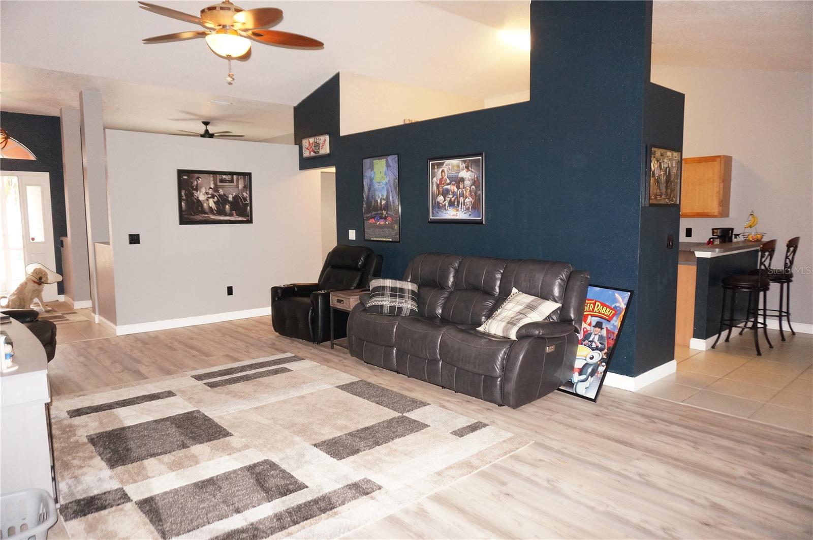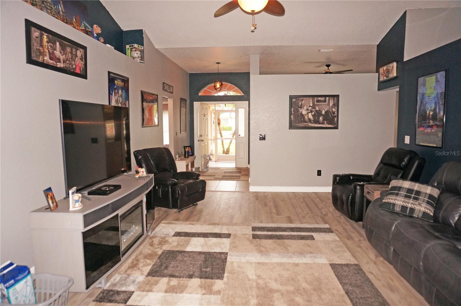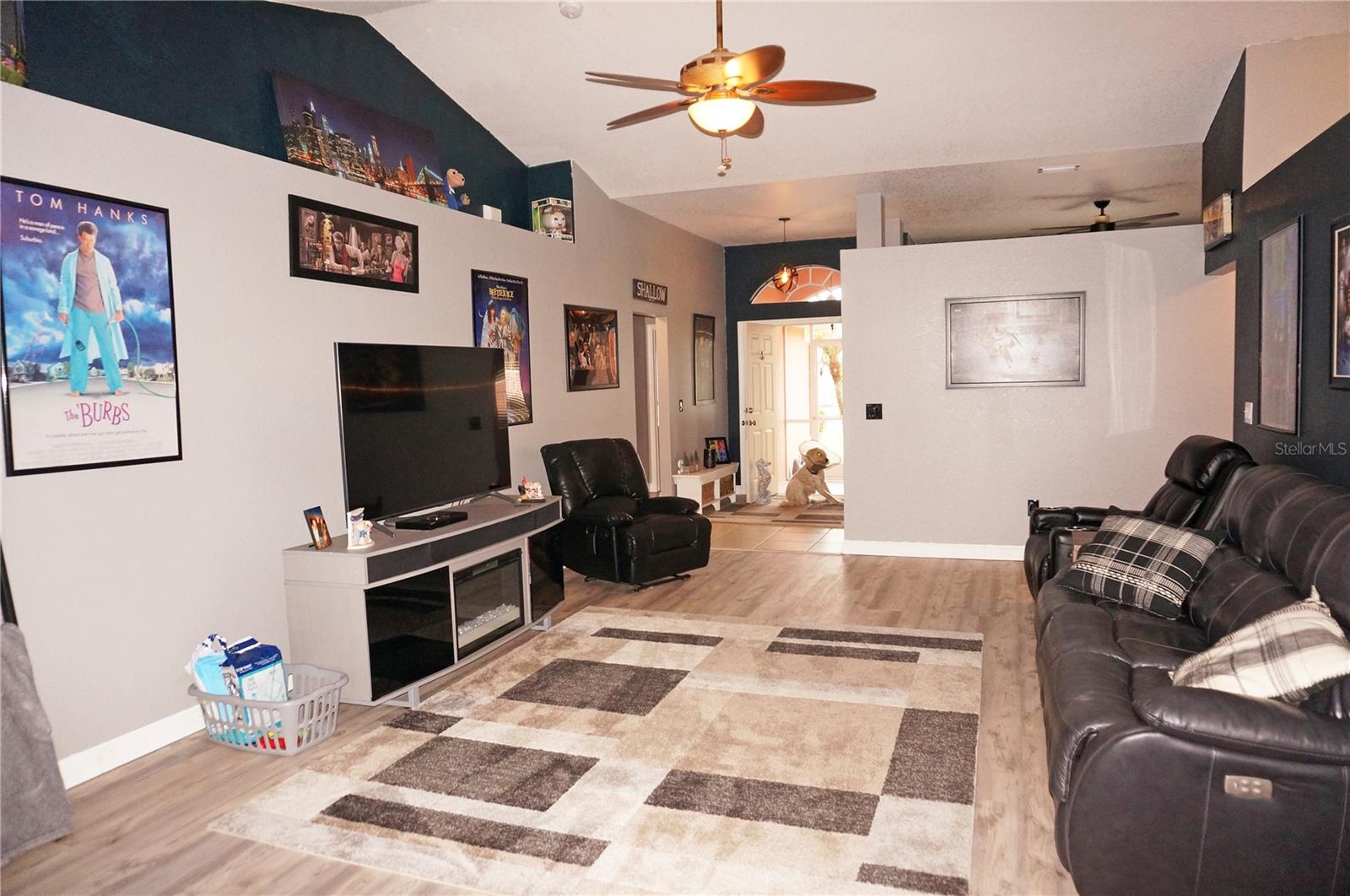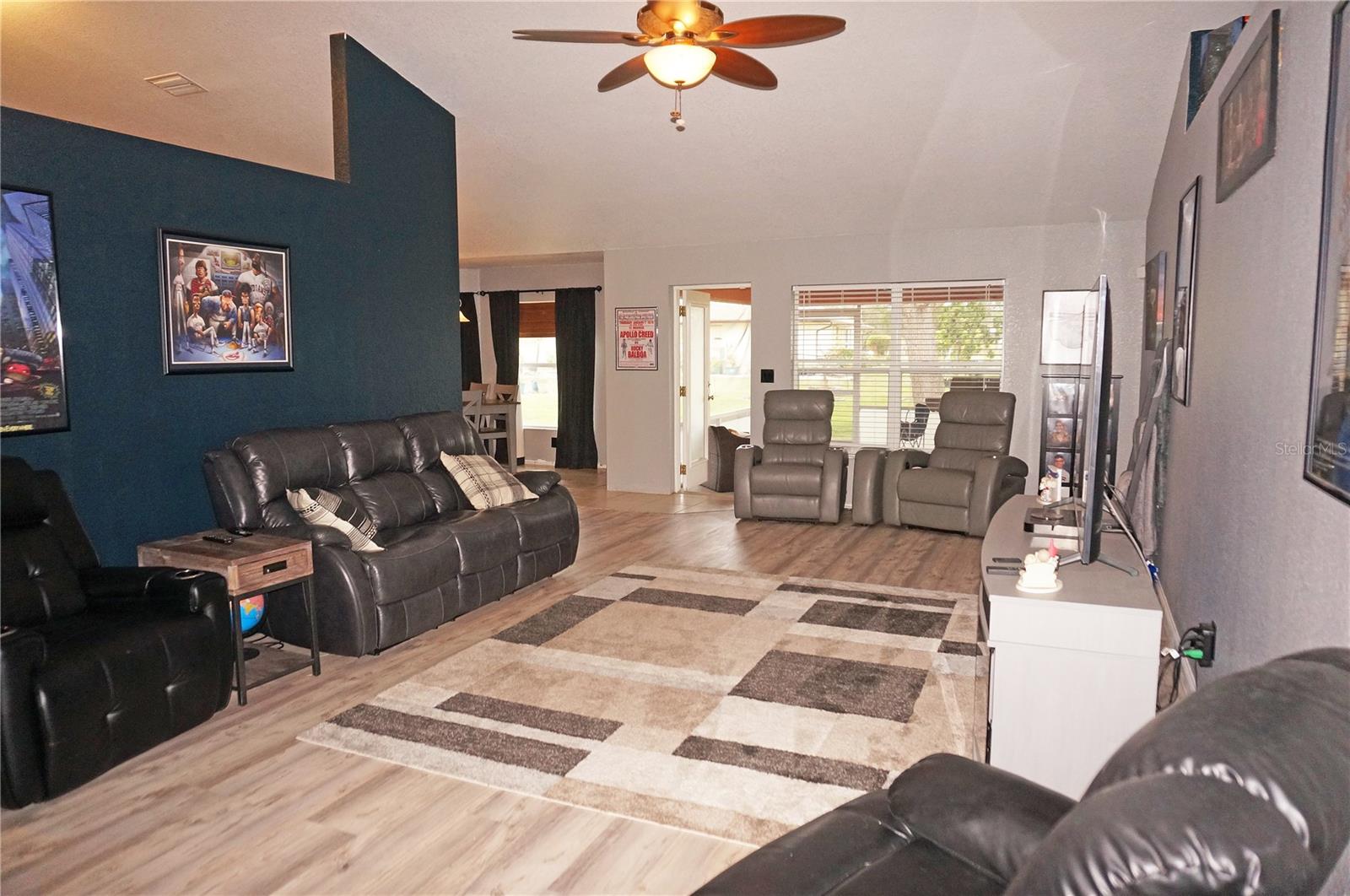 Impressive 4 Bedroom, 2 Bathroom home with attached 2 Car Garage. Located in the desirable deed restricted community of DEEP CREEK. This spacious home features a Great Room with cathedral ceiling, plant shelves and lanai access, separate Dining Room with large window, well equipped Kitchen with large dining area, wood cabinets, double sink, breakfast bar and pantry closet, Inside Laundry with laundry tub and front loading washer and dryer, large screened porch with Greenbelt view. The Master Bedroom suite offers a walk in closet and private bathroom with dual sinks, garden tub and separate walk in shower. There are three additional generous sized bedrooms with double closets and the guest bathroom has dual sinks and a tub/shower combo. Your living space extends to the screened porch. Other features include plant shelves, high ceilings, cathedral ceilings, whole house hurricane shutters, hurricane windload garage door, front door with sidelights and transom window, rain gutters, fire pit in the backyard. Flooring is carpet, tile and luxury vinyl plank. Flood insurance is NOT required for this property. Located minutes from Golf, shopping, dining, entertainment, I-75 and short drive to medical care, waterfront parks, fishing piers and boat ramps. This is a great home for a family or those expecting lots of winter visitors!