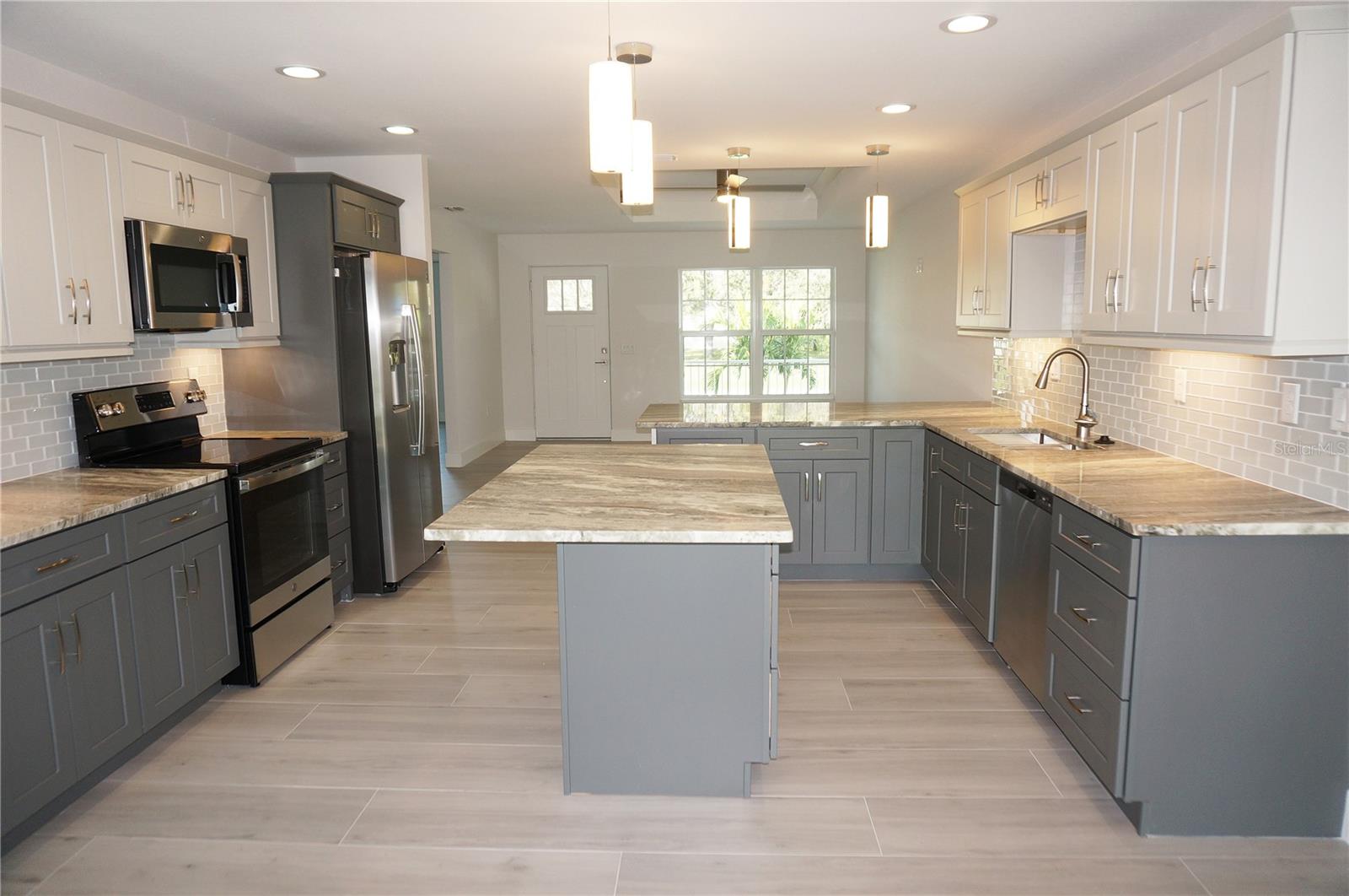 BRAND NEW CONSTRUCTION! Delightful 3 Bedroom, 2 Bathroom home with attached one car Garage built by Executive Homes. Located in the La Punta Park section of Punta Gorda, minutes from all amenities. ***OWNER FINANCING is available - will do lower interest rate than banks*** This light and bright home offers beautiful design features throughout. There is an open concept and split bedroom floor plan: Great Room with large window and tray ceiling opens to the well appointed Kitchen with stunning granite counters, trending two toned wood Kitchen cabinets, tile backsplash, pantry closet , breakfast bar, island with extra storage, great counter and cabinet space, GE stainless appliances, double sink and dining area. The Inside Laundry room has a washer and dryer hookup, sink, white cabinetry and granite counters. The Master bedroom suite offers a walk in closet and additional double closet, tray ceiling and private bathroom with walk in shower, dual sinks, white cabinetry and granite counters. There are two generous sized guest bedrooms with double closets and the guest bathroom has a tub/shower combo, granite counter and wood vanity. Your living space extends via pocket sliding glass doors to the 17x10 screened Lanai with beautiful wood ceiling and ceiling fan. Continue to the backyard down the short staircase. Other features include: front porch, hurricane impact windows and hurricane windload garage door, wood look tile floors throughout the home, ceiling fans. Utilities are city water and sewer. NO HOA. Three minutes from historic downtown Punta Gorda shopping, dining, medical care, waterfront parks, fishing piers, boat ramps, walking and biking paths, art galleries, events, Fishermen's Village and more!