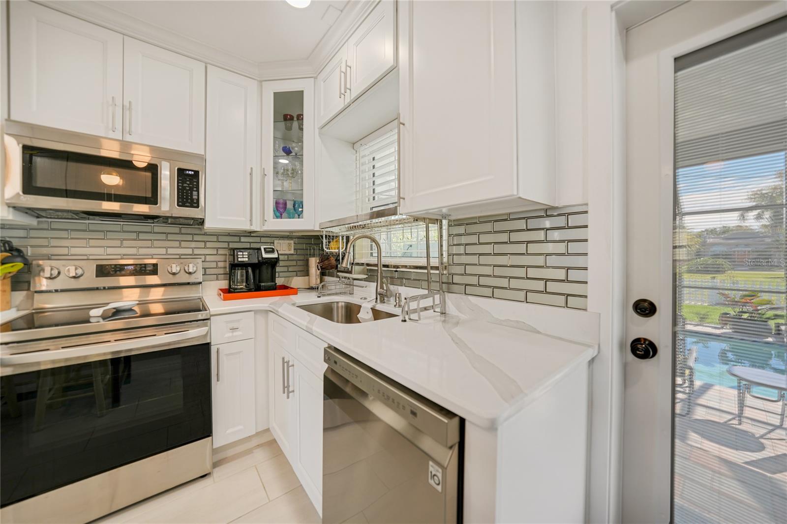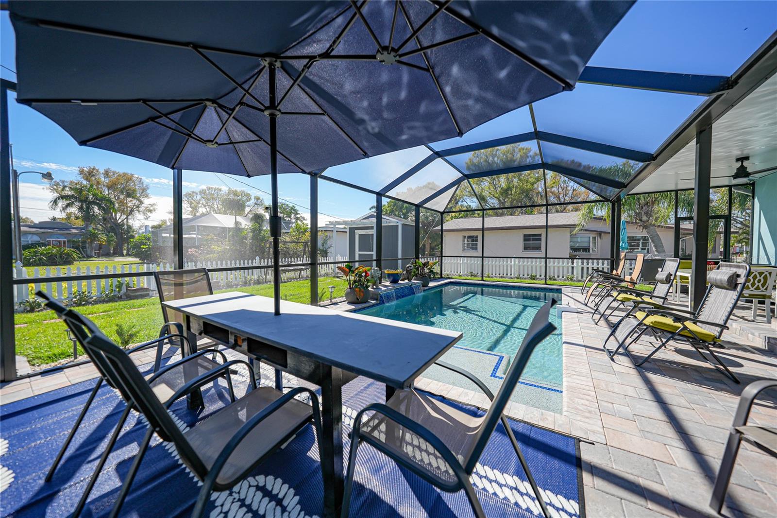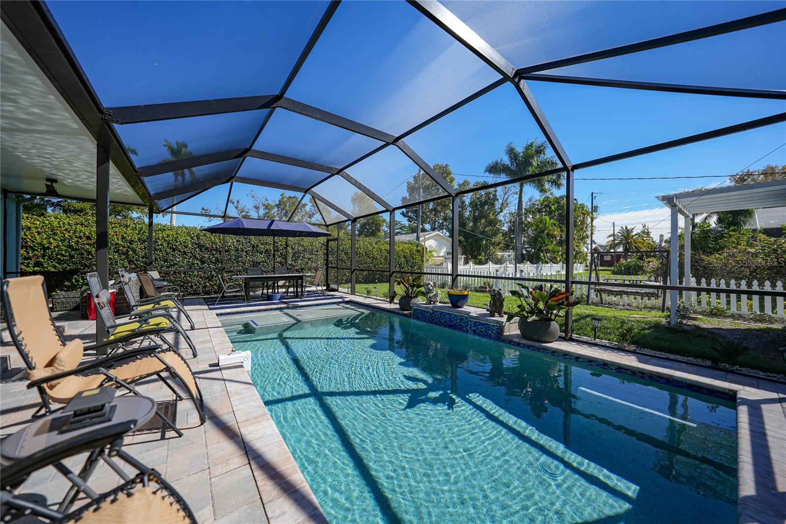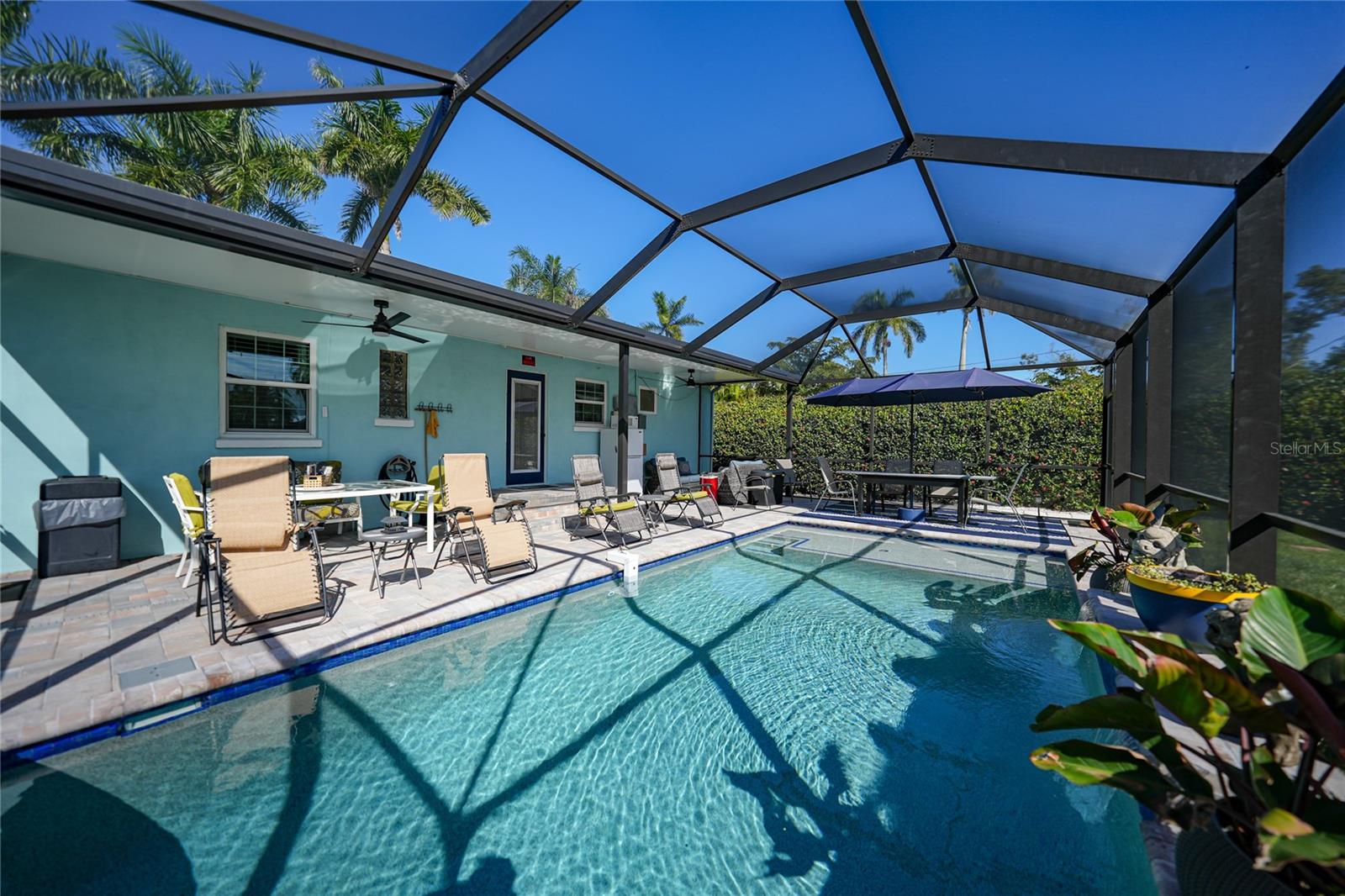 Located in scenic, downtown Punta Gorda, this charming home features 3 bedrooms, 2 bathrooms, and a new heated pool! Beautifully remodeled interior and exterior make this one move in ready. Enter through your charming front porch overlooking all of the downtown activity and into your bright, open, living room. Tile flooring throughout! The well appointed kitchen has new appliances, new cabinets, and beautiful Quartz countertops. The primary suite has a spacious bedroom, closet, and ensuite bathroom with a walk in shower & washer/dryer. Featuring a split floor plan, the 2 guest bedrooms and fully remodeled guest bathroom are on the opposite side of the home to allow privacy for your guests. Enjoy spending time on your screened in lanai with beautiful pavers & plenty of sitting room; or float in your new heated, salt water pool! The peaceful backyard is fenced in and has a new storage shed! Other upgrades include: metal roof October 2020, electrical & plumbing 2021-2022, A/C handler 2021, impact rated kitchen door & windows April 2022, tankless water heater, replaced interior/back doors, interior/exterior paint, interior laundry room, added landscaping, buried electric, and so much more. Conveniently located to shopping, dining, entertainment, medical, Fishermen's Village, parks, marinas and so much more. Call today for your private showing.