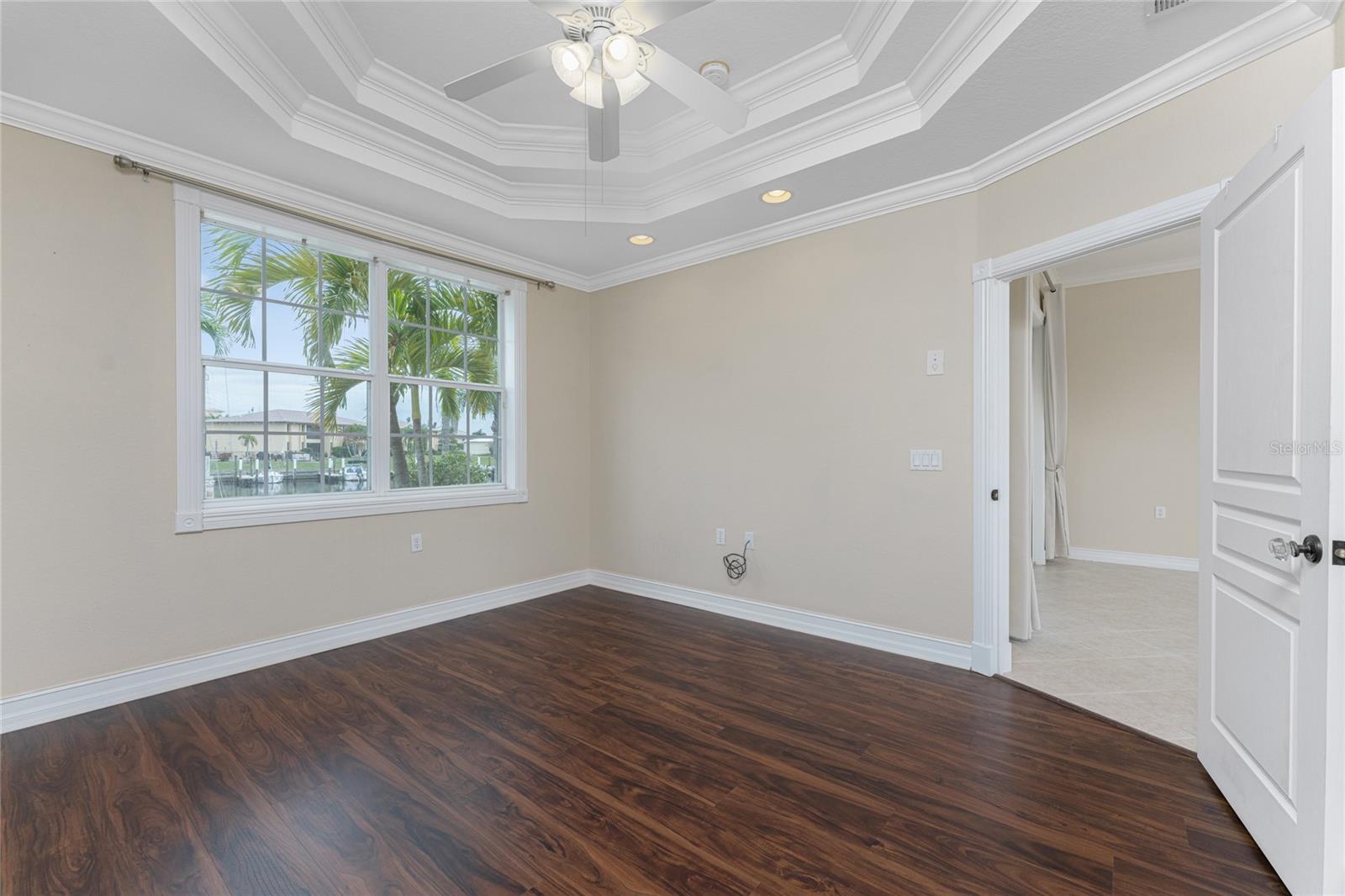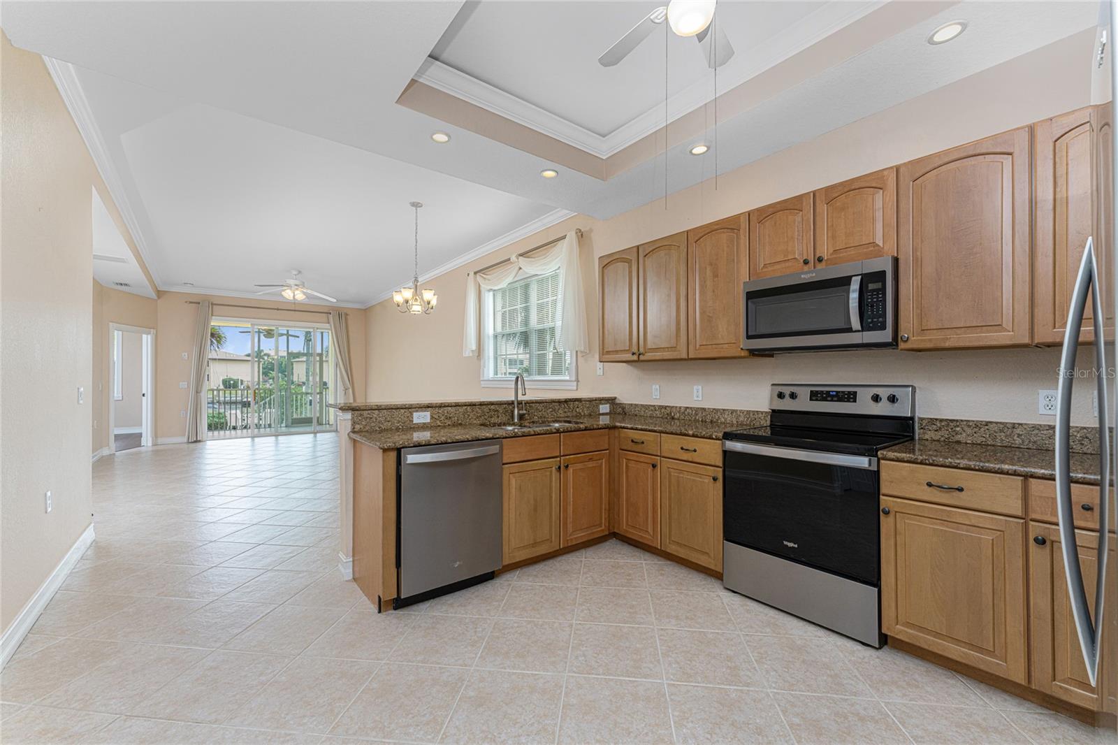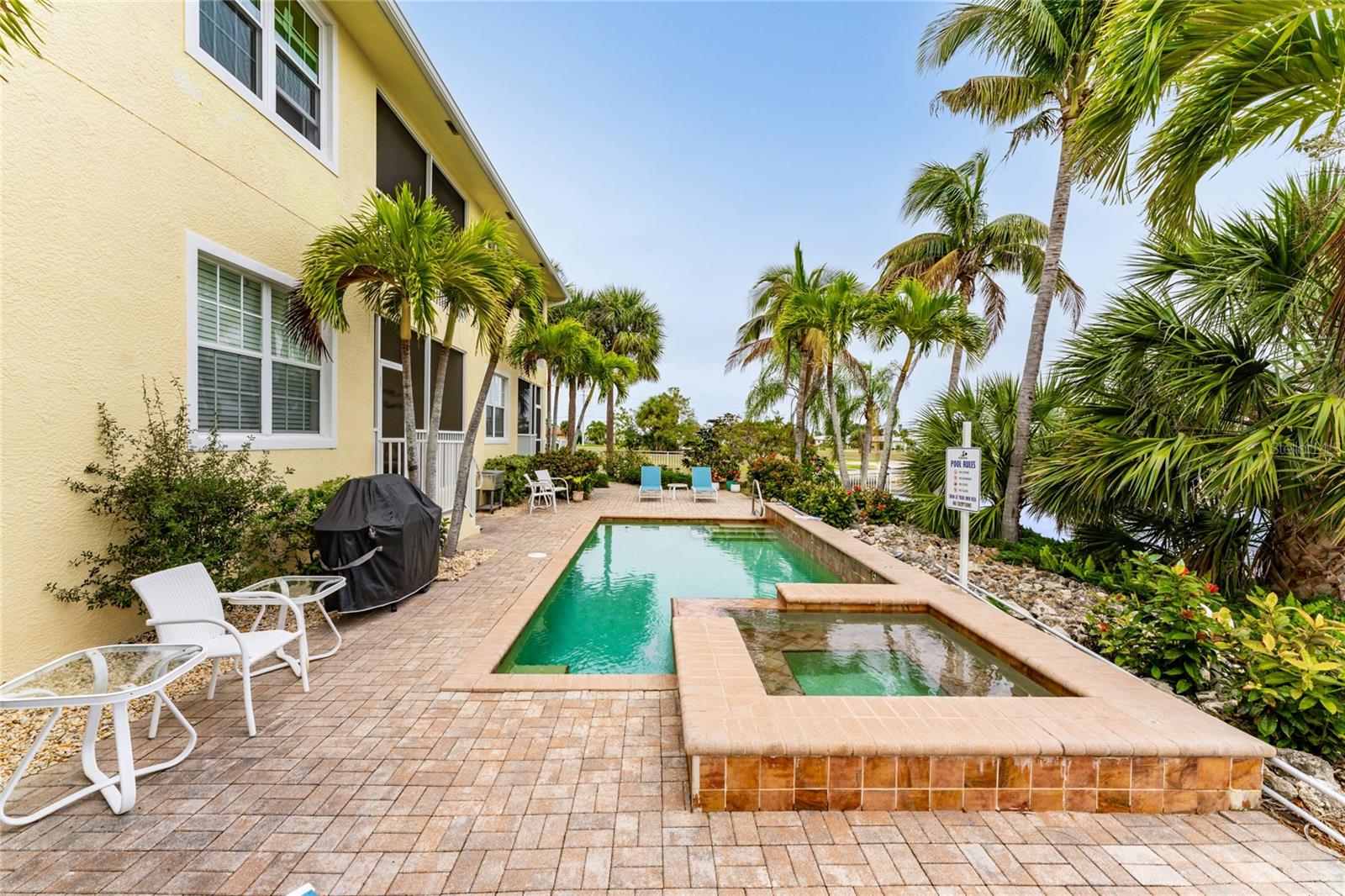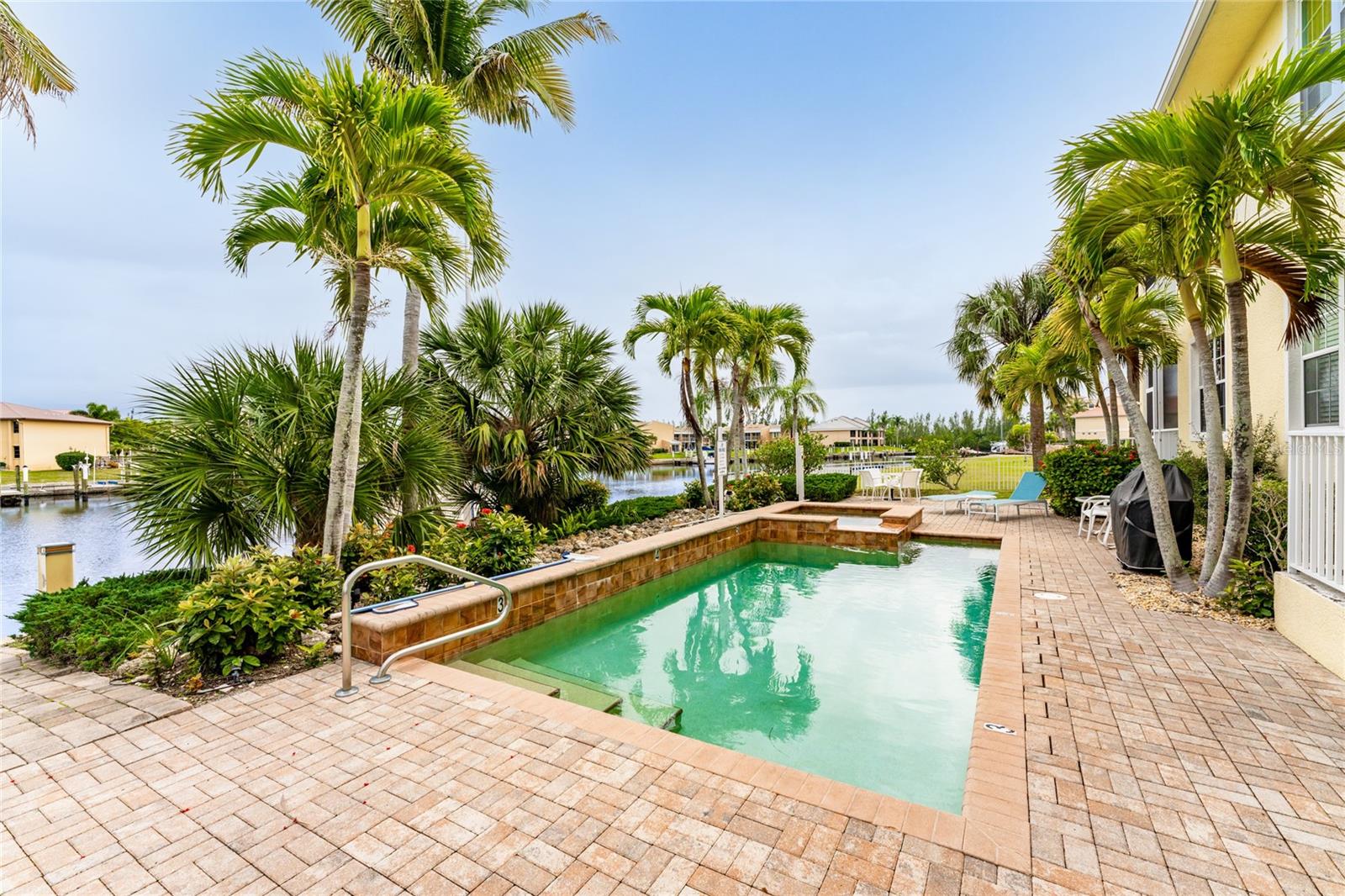 PGI Gorgeous 1,448 sq. ft. 3 bedroom, 2 bath condo on the water with deeded dock (water & electric dockside) and detached single car garage. Sailboat access out Buckley Pass to Charlotte Harbor leading to the Gulf of Mexico! Inviting Savanna Bay Condo has the open floor plan with soaring tray ceilings, crown molding, Rosette door trim and diagonally laid tile floor throughout living space. The well-appointed kitchen features raised panel wood cabinetry, granite countertops, stainless steel appliances, a breakfast bar and is open to the spacious living room and dining room. Sliders open the home up the 10 x 13 screened in lanai with tiled floor. The primary suite features hexagon double tray ceiling, two closets, wood laminate flooring and attached private bath with solid wood cabinetry, double sinks and a walk-in tiled shower with frameless glass shower door. The guest bedroom is spacious with built-in closet and a separate full guest bath that family or friends will appreciate. There is a second bonus room that could be used as a third bedroom or office/den space. The laundry area is located inside the unit and includes a stack washer and dryer, countertop with sink, closet and cabinet space. The tiled floor lanai has a desirable Eastern exposure which gives morning sun and afternoon shade for your maximum comfort along with fantastic water views and overlooks the pool/spa area. The deeded boat slip is waiting for your boat and is located outside your lanai. The complex has hurricane impact windows, covered front balcony entranceway, a new roof and no assessments. This is one not to miss! Savanna Bay Condo is located on a dead end street. Punta Gorda Isles is centrally located for easy access to the historic downtown featuring restaurants, shopping and community events; the Yacht Club; Fishermen’s Village and more; yet it is also convenient to I-75 and a short drive to gulf beaches.
