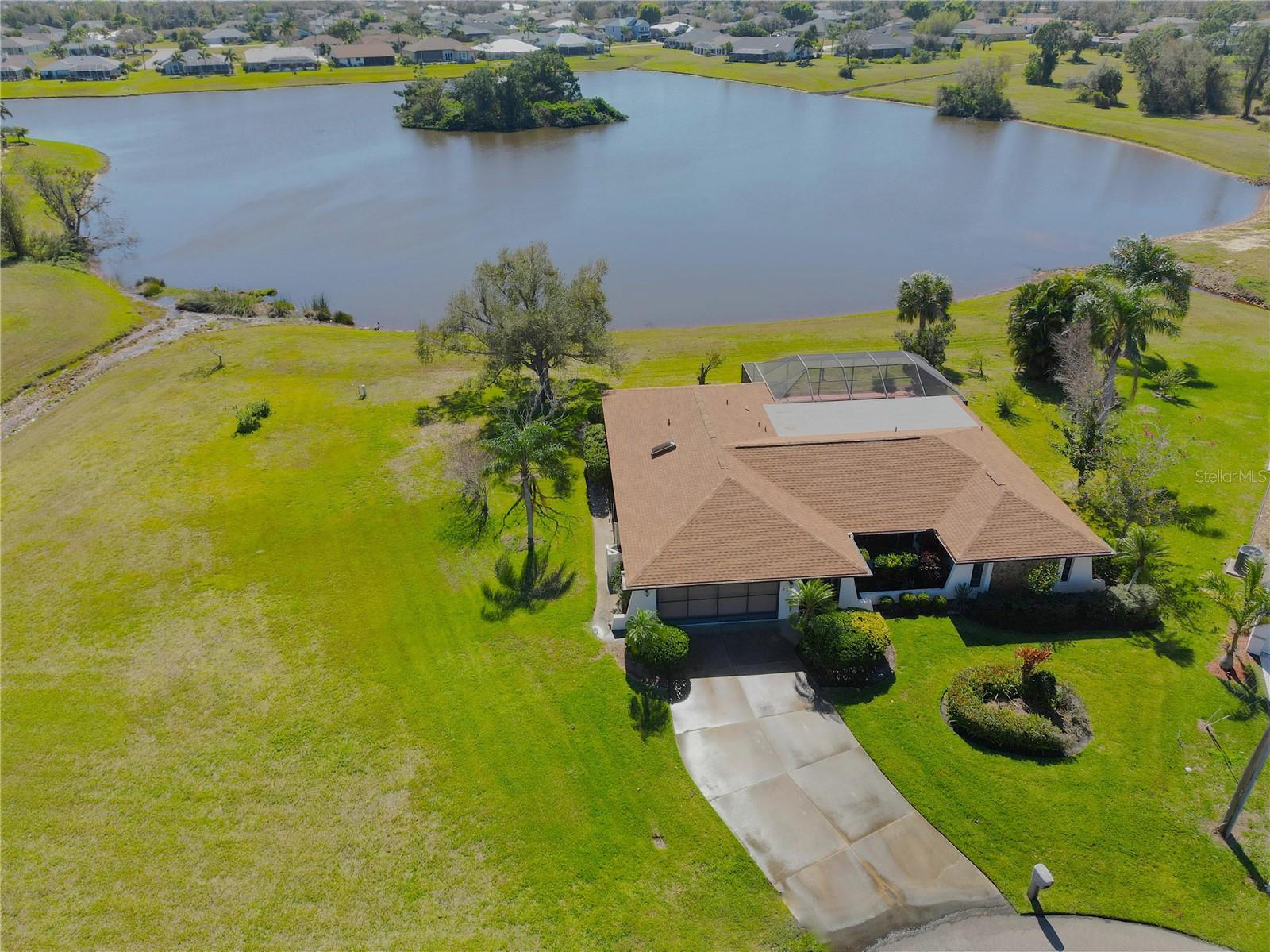 HUGE Price Reduction!!! Lake Front Living in beautiful Deep Creek! Amazing Water views and lots of privacy with this 3 bedroom, 2.5 bath, pool home. NEW Hurricane Impact Windows were just installed! New Pool screens! New irrigation system! 2022 Roof 2017 A/C. Located at the end of a cul-de-sac. This home has 160ft of water frontage on lake Zappa. It features an open floor plan, high ceilings, split bedroom floor plan and panoramic lake views from almost every room in the home. Perfect for entertaining with separate living room, and family room and a huge eat-in kitchen that opens to the lanai and pool area. The large master suite has 3 closets, and the primary bath has 2 bathrooms with access to the lanai! The pool and large lanai look out onto the long lake views that's a bird watcher's paradise. This oversized lot has a lake fed irrigation to keep the yard looking good year round. The southern exposure invites you to enjoy the sunrise & sunset from this Florida Dream Home!!!