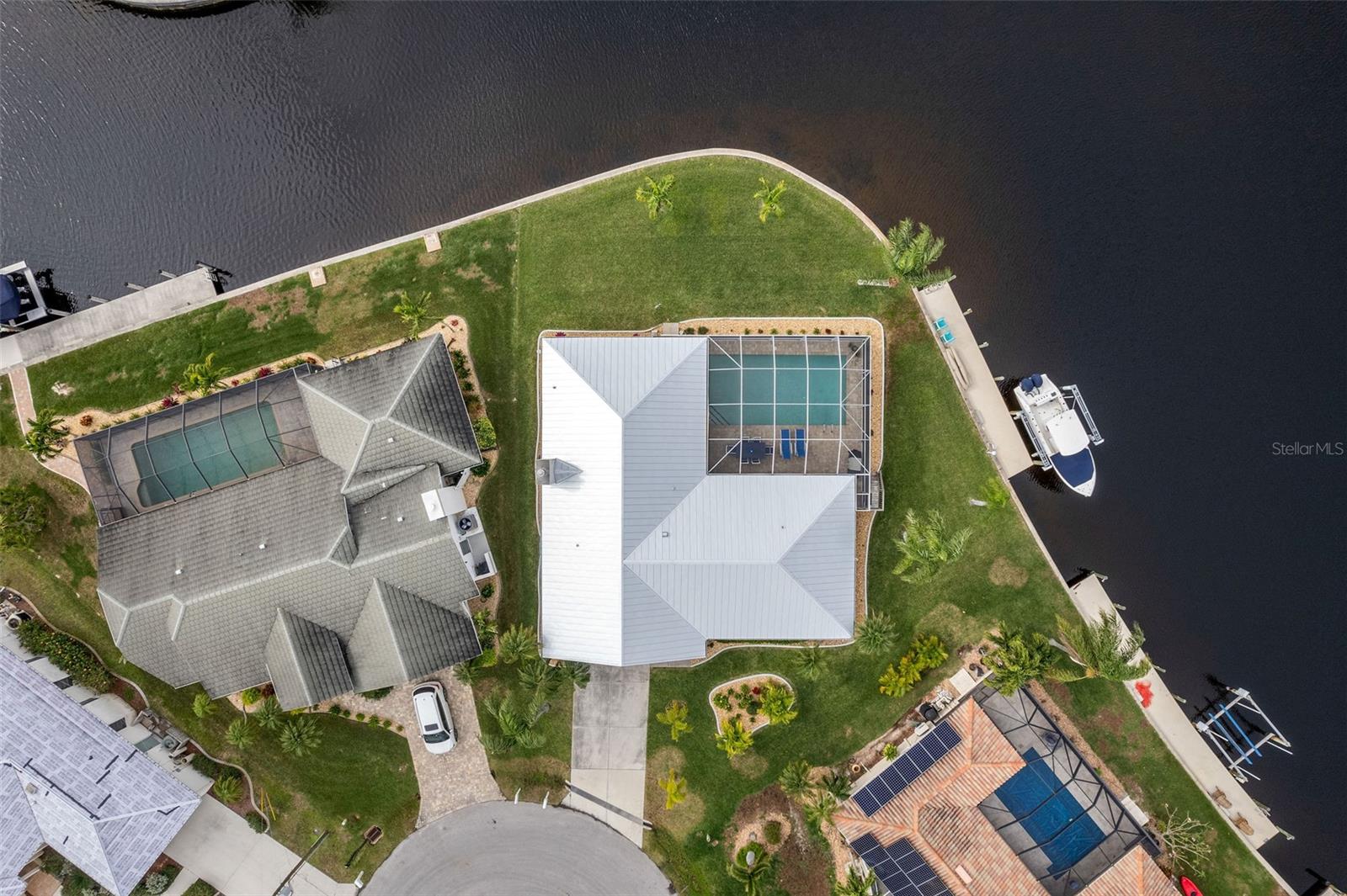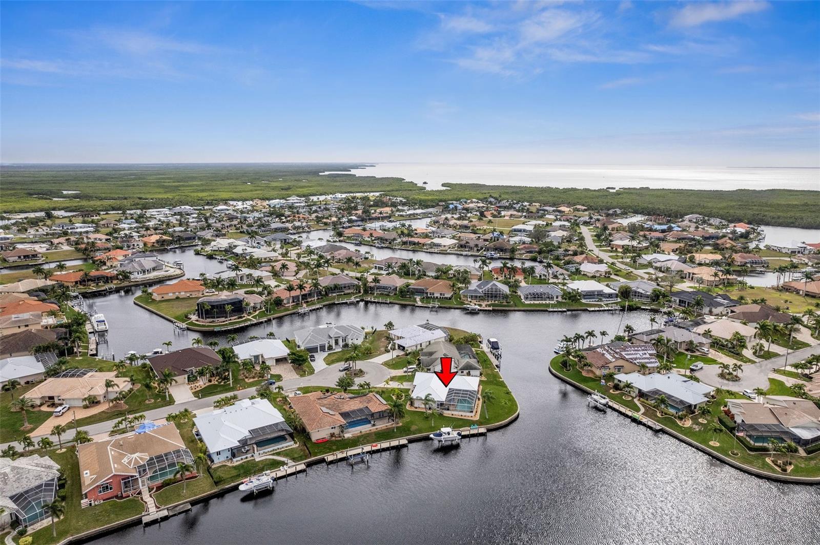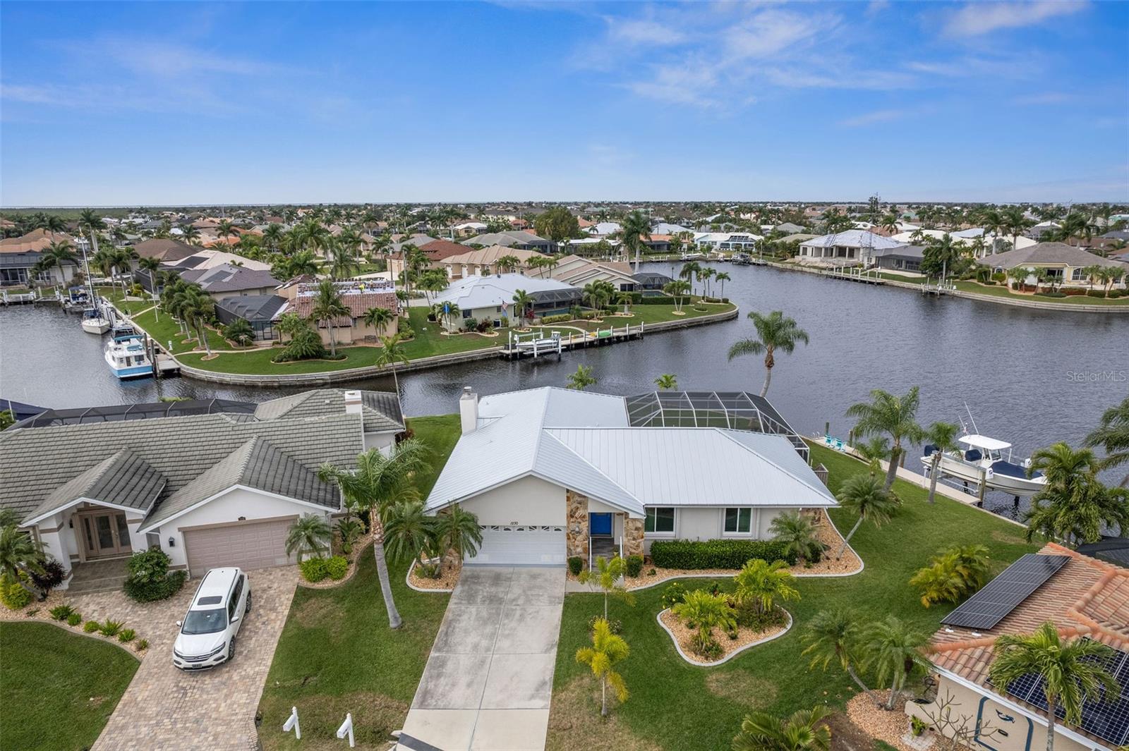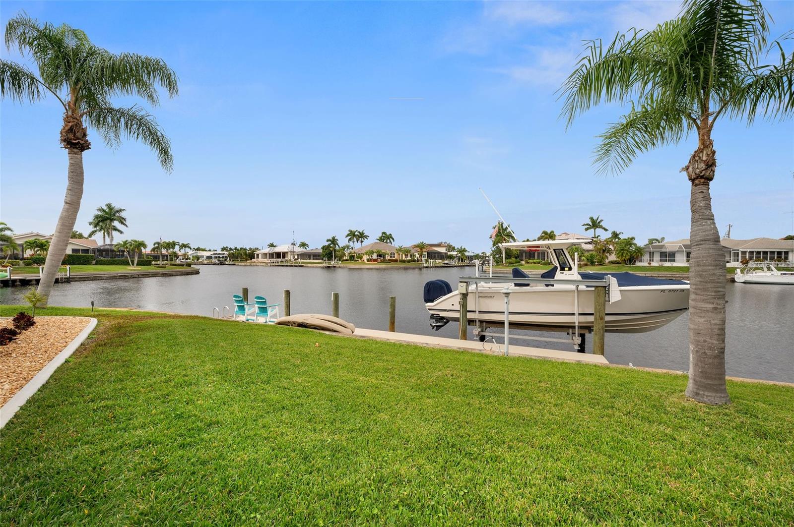 Boasting 168 ft of CANAL FRONTAGE and a 10 minute boat ride to Charlotte Harbor, this stunning Punta Gorda Isles oversized TIP LOT home is a relaxing tropical oasis! Nestled in the sailboat section of PGI, this gorgeous COMPLETELY REMODELED 3 bed 2 bath POOL home sits on a quiet cul-de-sac with quick access to open water through Ponce Inlet or Buckley’s Pass. A NEW METAL ROOF (2023), NEW hurricane impact windows and sliders, irrigation system, lanai & landscape lighting, cement landscaping borders, variable speed pool pump, oversized concrete dock and a 10,000 lb. boat lift are just a few exterior features of this waterfront gem. Throughout the new open floor plan are wood look tile floors, 5 panel solid core doors, 5 inch baseboards, recessed lighting, Bali window treatments, and fresh paint. The spacious, open-concept kitchen is equipped with soft close cabinets, quartz countertops, LG appliances, Zephyr range hood, granite composite sink and an oversized island. The master suite features a large walk-in closet, new glass door walk-in shower and separate vanity. This split bedroom interior is perfect for privacy and entertaining. The two guest bedrooms include walk-in closets next to the guest bathroom with convenient lanai and pool access. A brick paved lanai offers an ideal outdoor living space including a 15’ x 30’ heated freshwater pool overlooking a breathtaking view of the water! Garage updates include epoxy floors, cabinets and work station, ceiling storage rack and fresh paint. Only a short ride to historic downtown Punta Gorda, Fisherman’s village, golfing, shopping, fine dining, beautiful parks, and access to world class fishing and boating, this home is truly a Floridian paradise! Schedule a showing today!