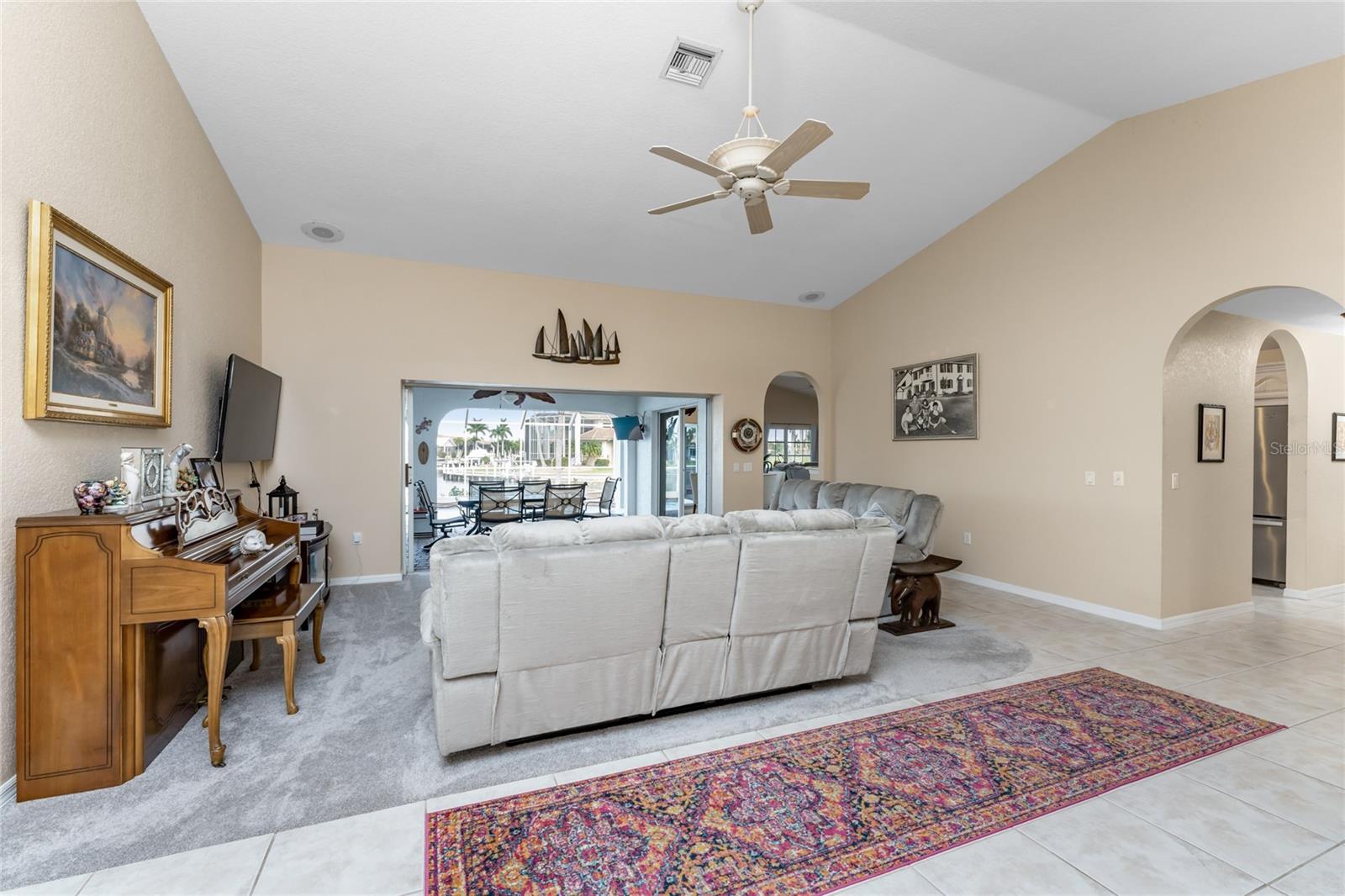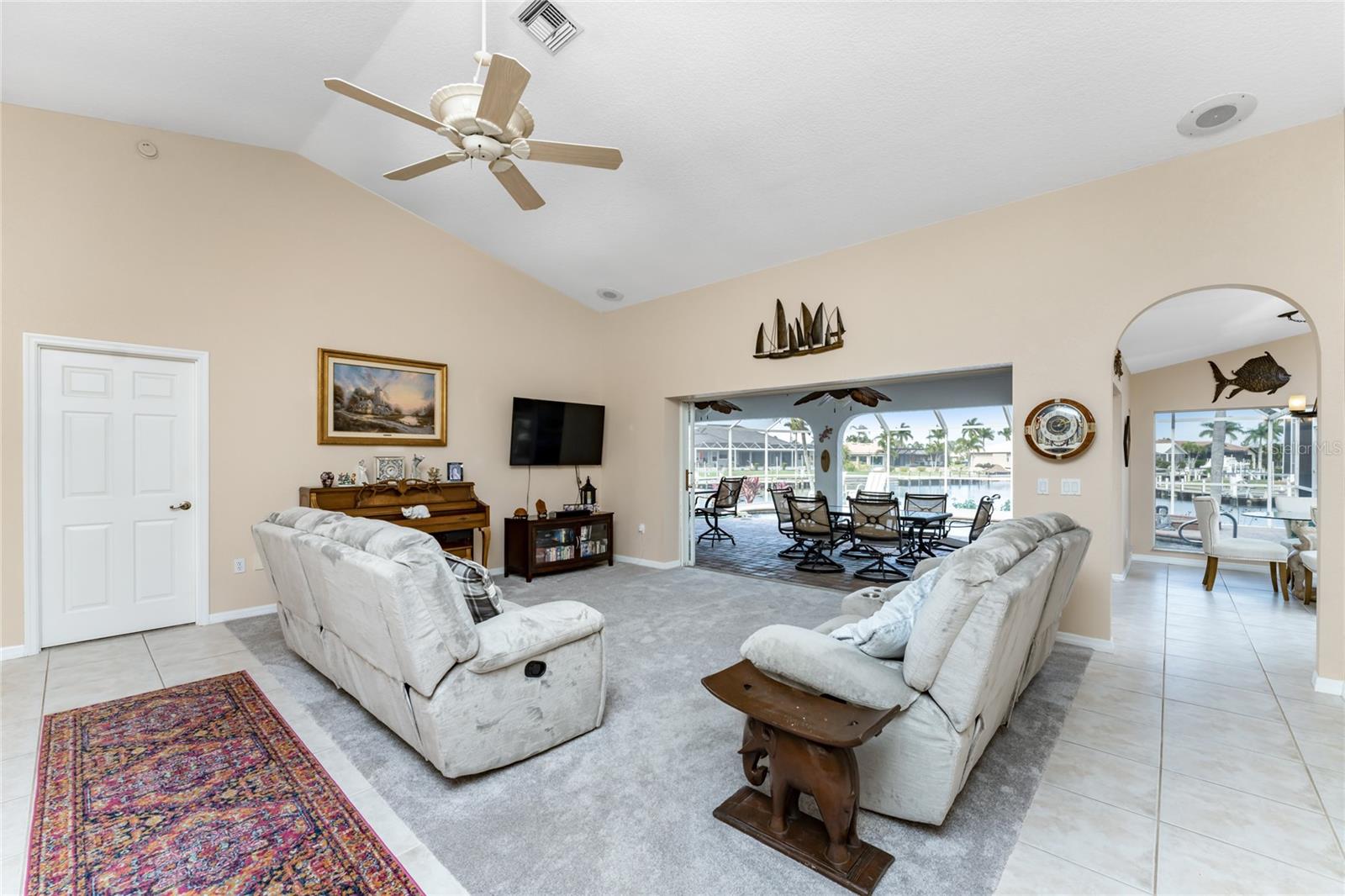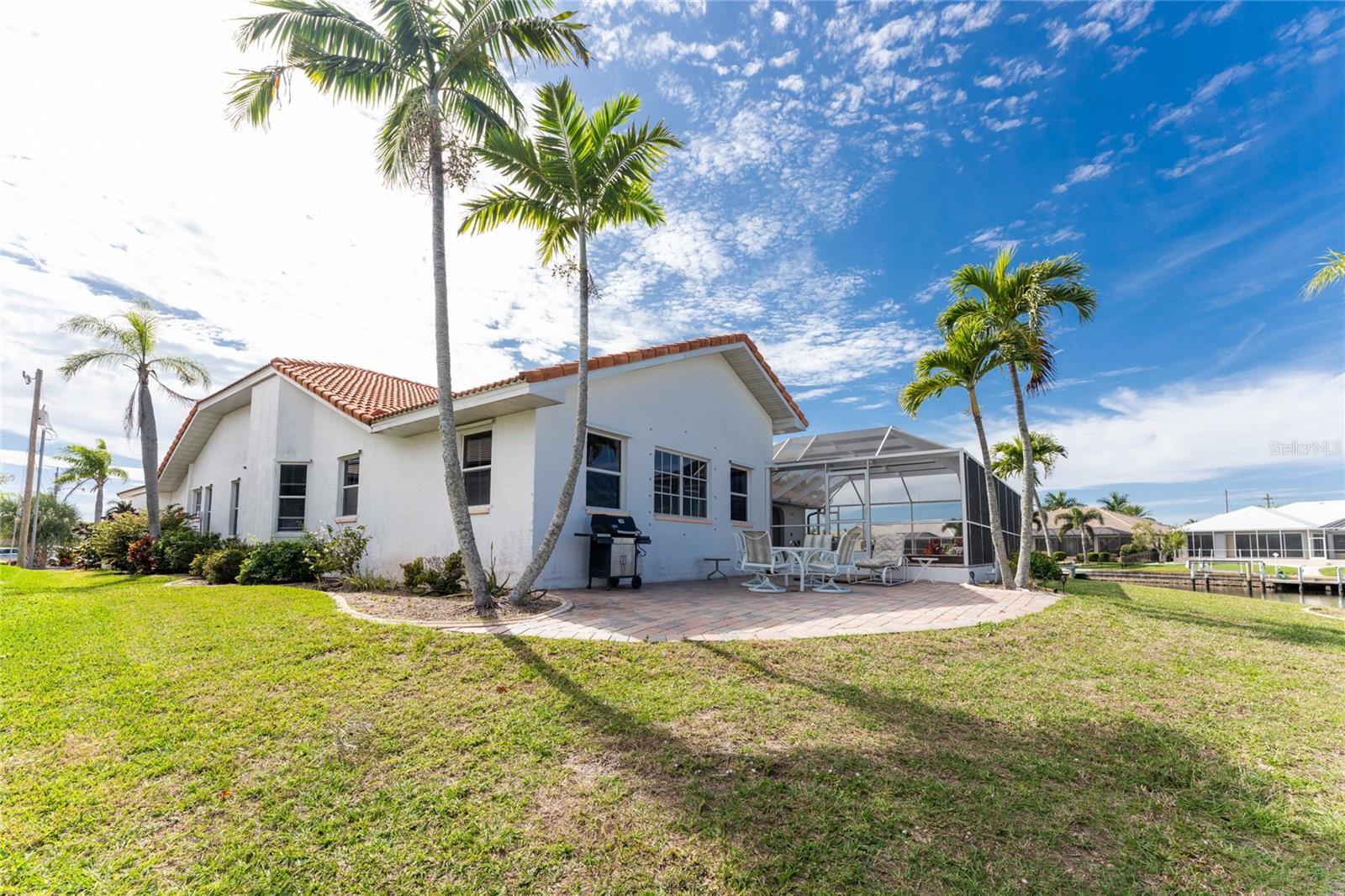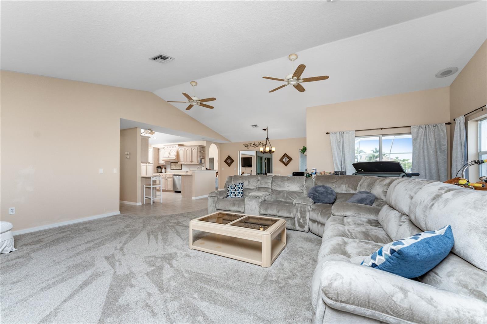 Welcome to your piece of Florida paradise! Located in the highly sought-after Burnt Store Isles community in Punta Gorda. This waterfront property is a boater's and golfer’s dream! Open water access in a matter of minutes along with the Twin Isles Country Club for the golfer. This beautifully maintained waterfront pool home is situated in a cul-de-sac on a sprawling tip lot and boasts 2,904 square feet of living space. It features the open/split floor plan providing perfect spaces for all, including living room, dining room, family room, 3 bathrooms, and 3 spacious bedrooms all connected to the beautiful outdoor area that makes this perfect for living out your Florida dream lifestyle. The moment you arrive at this home you will begin to appreciate the upgrades from the tile roof, front portico with double door entry, nicely landscaped yard with water fountain, lighting and soaring palms. The front entryway opens into the formal living/dining room that features a mix of plush carpeting and tile flooring, soaring ceilings, a wall of disappearing glass sliders with water views, and and lots of space that flows effortlessly into the kitchen. The kitchen showcases Corian countertops, an abundance of cabinet and draw space, a built-in microwave and convection oven, an electric cooktop, and trash compactor. Enjoy casual meals in the dinette space overlooking the pool or entertain family and friends in the spacious great room. Your primary suite with private pool access features two walk-in closets, carpet flooring and a fabulous en-suite' showcasing a walk-in shower, jetted soaking tub, and granite countertop vanity with dual sinks. Family and friends alike will appreciate the guest area with two guest bedrooms each with its own walk-in closets, a full bathroom and is tucked away from the living area ensuring privacy for all. The versatile office/den offers flexibility and could easily serve as a third bedroom to accommodate guests or family members. Outside is an entertaining delight with an oversized pool/lanai area showcasing a sparkling heated pool with attached hot tub, pool bath with walk-in shower, brick paver deck, covered lanai with ceiling fans, pool cage with new screens and fabulous intersecting canal water views. Take in the view and Florida breeze on the added outdoor patio area. This stunning home is situated on a corner with wide water views and has 185’ of cement seawall, water/electric, and 14x8 concrete boat dock offering endless opportunities for boating and water activities. The home also features an oversized 2-car garage, an inside laundry room with storage space and utility sink, hurricane shutters, central vac, irrigation, 2 A/C units (one just replaced with transferable warranty) and 2 water heaters. Close to I-75/US41 and nearby to Fishermen's Village, downtown Punta Gorda shops & restaurants, great boating, fishing, sailing, and more. Home is completely spotless and waiting for you. Come enjoy the Florida lifestyle in this impressive home.
