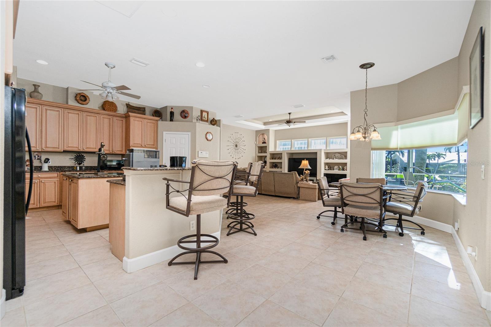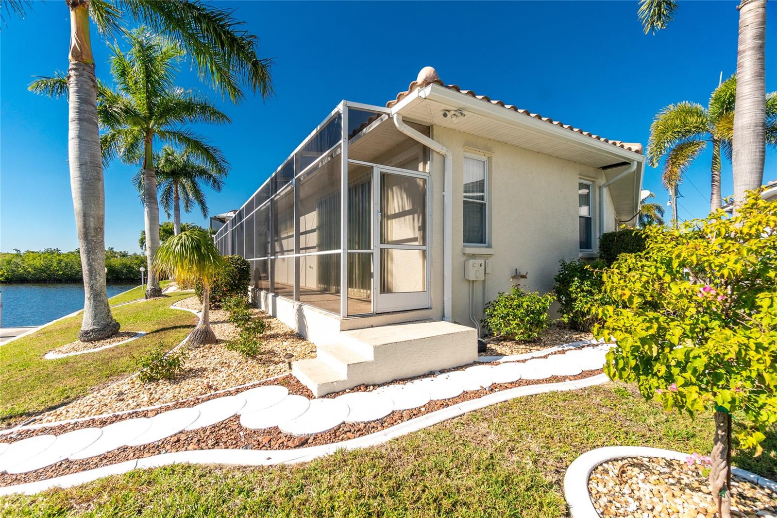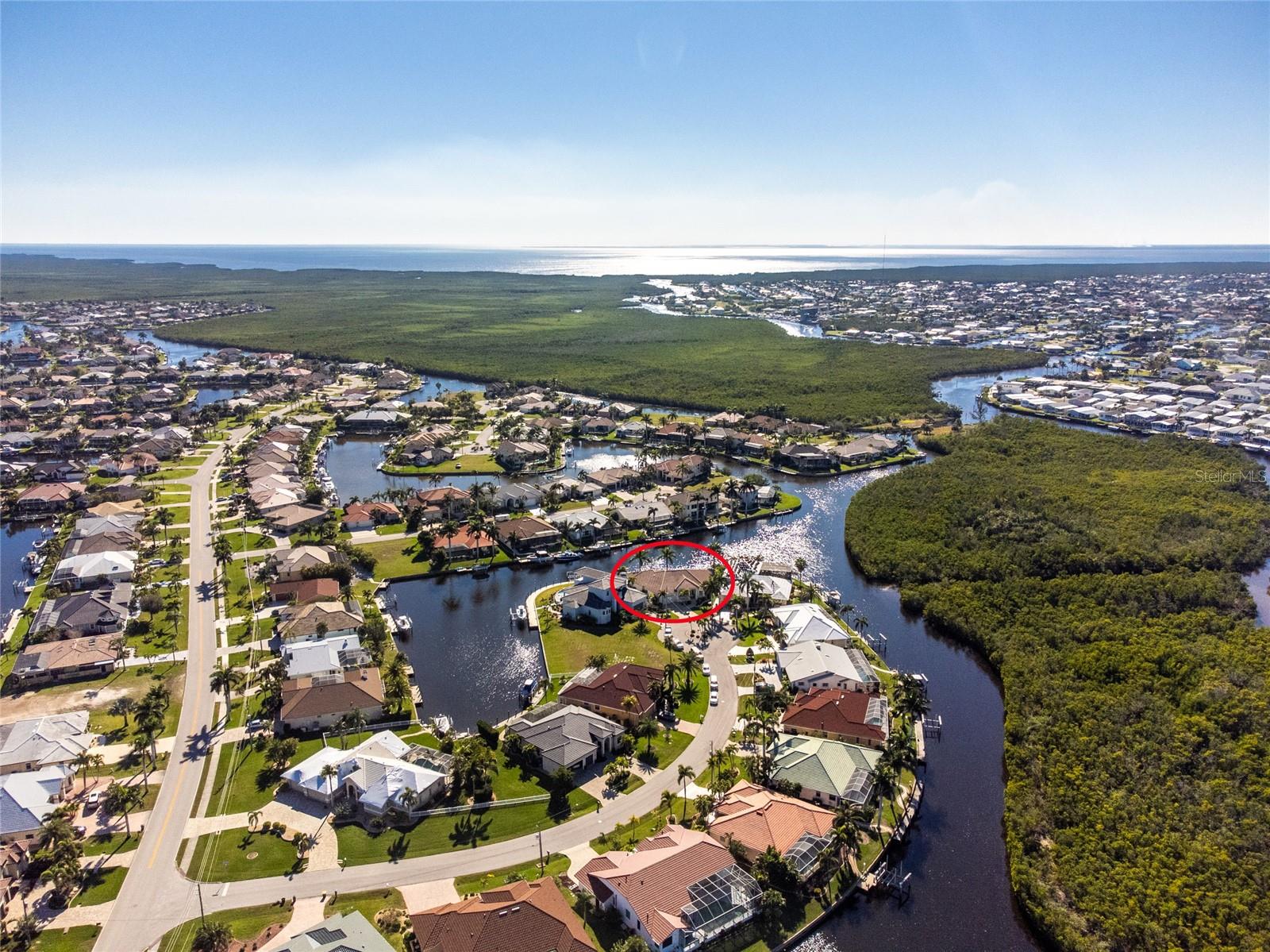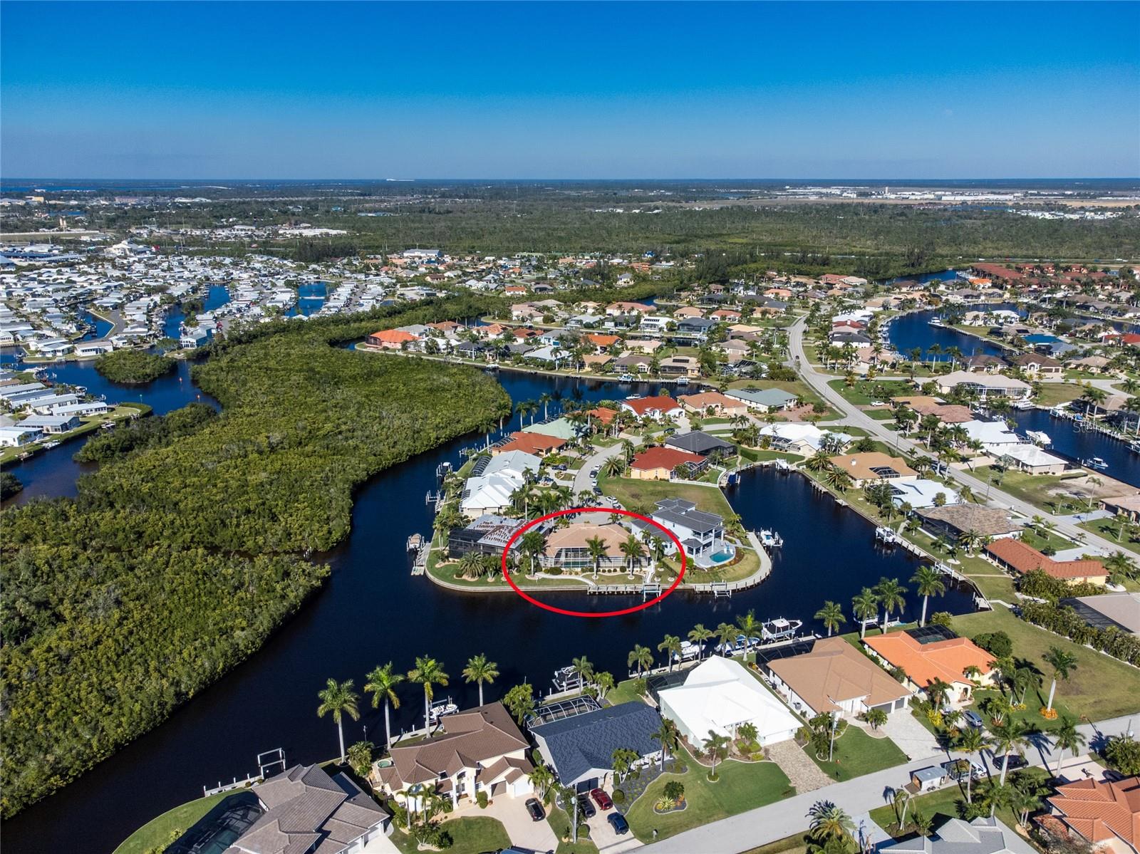 Stunning WATERFRONT home on a KEY LOT in desirable deed restricted BURNT STORE ISLES. JUST MINUTES TO THE HARBOR! This light and bright home features beautiful design features throughout and offers an open and split bedroom floor plan. There are 3 Bedrooms, 2.5 Bathrooms, attached 2 Car Garage, Great Room, Family Room, separate formal Dining Room, Office, well appointed Kitchen and Inside Laundry Room. The Dining Room has built ins, additional space above the built -ins for your decorative items, large window with transom window, plantation shutters and wet bar. The spacious Great Room has built ins for your books or collectibles, lanai access and electric fireplace. The Family Room also has built ins and lanai access. Glass french doors lead to a large Office. The Kitchen features wood cabinets, granite counters, breakfast bar, closet pantry and island with additional storage and wine rack. There is also a dining area in the Kitchen with a great pool and water view through aquarium glass. The Inside Laundry has a washer, dryer, sink and great storage space with numerous cabinets. The Master Bedroom suite is your private oasis with lanai access, TWO walk in closets and private bathroom with jetted garden tub, walk in shower and dual sinks. There are two additional generous sized bedrooms with good closet space and the guest bathroom has a walk in shower. Your living space extends via pocket sliders to the screened lanai and pool area with large covered area, storage closet, summer kitchen with sink, Jenn Air grill and cabinets, heated inground pool, inground spa connected to the pool, outdoor shower and half bath. Fabulous water views! Continue to the waterfront with 140 FOOT concrete seawall (maintained by the city of Punta Gorda), 60 FOOT concrete dock and 18,000 lb boat lift. QUICK SAILBOAT ACCESS - just minutes to Charlotte Harbor and on to the Gulf of Mexico. Other features include: hurricane shutters, manabloc plumbing, double door entry with transom windows, plantation shutters and tile flooring throughout the home, tray ceilings with lighting, neutral colors throughout, rain gutters, paver driveway and walkway, NEW barrel tile ROOF 2023. This home is only 5 minutes from Golf and ten minutes from historic downtown Punta Gorda shopping, dining, medical care, waterfront parks, walking and biking paths, art galleries, boat ramps, fishing piers, weekend farmers markets, Fishermen's Village, events and more! This home is perfect for entertaining and enjoying the Florida lifestyle!