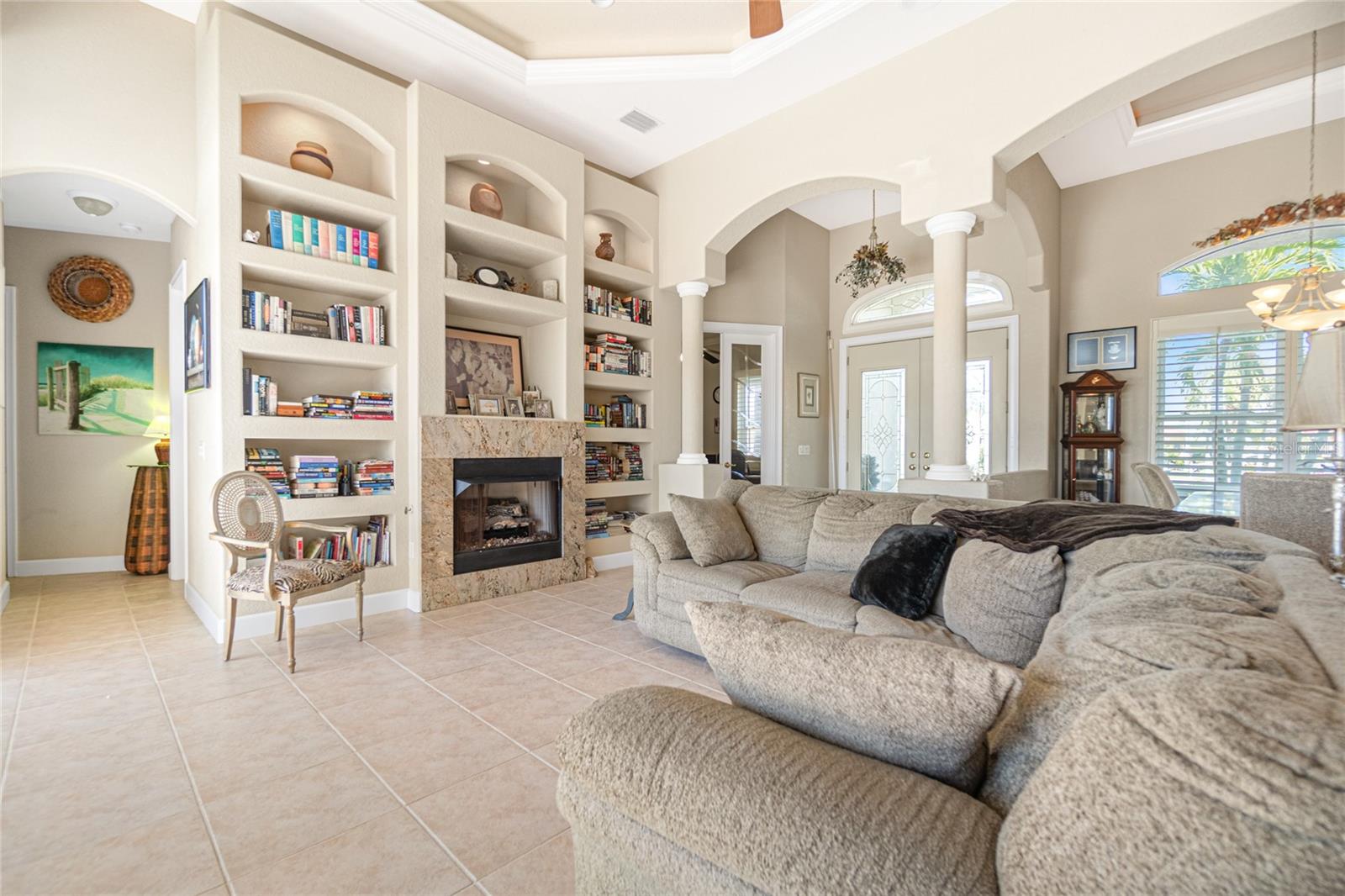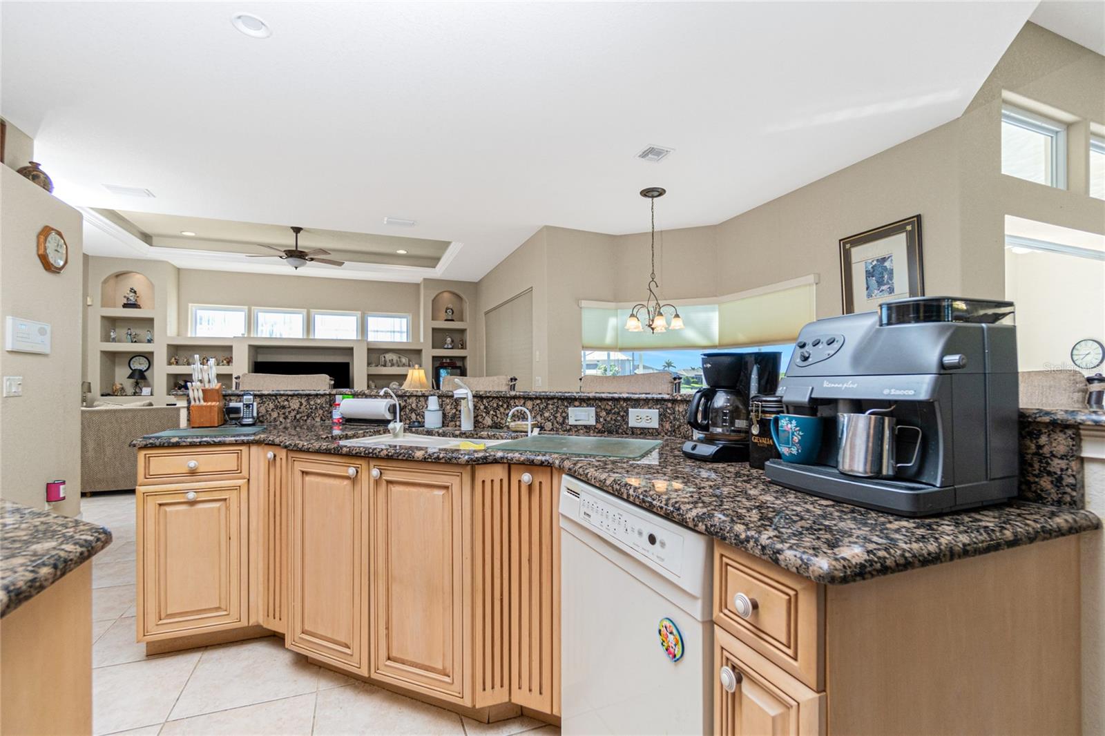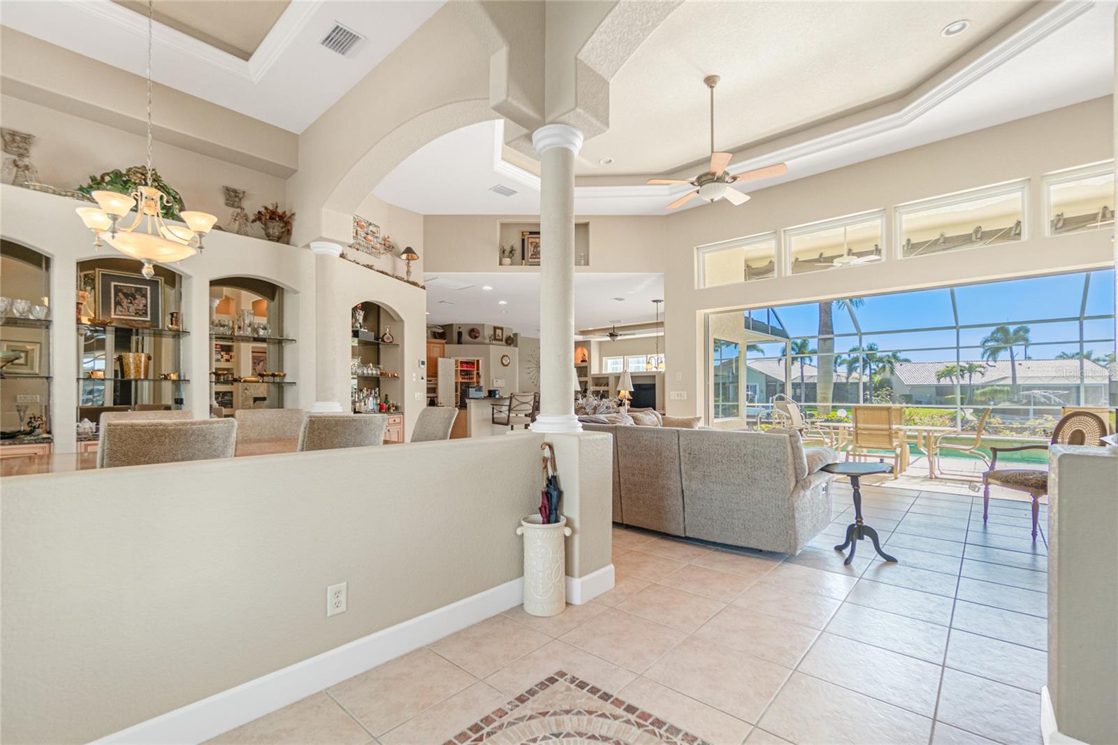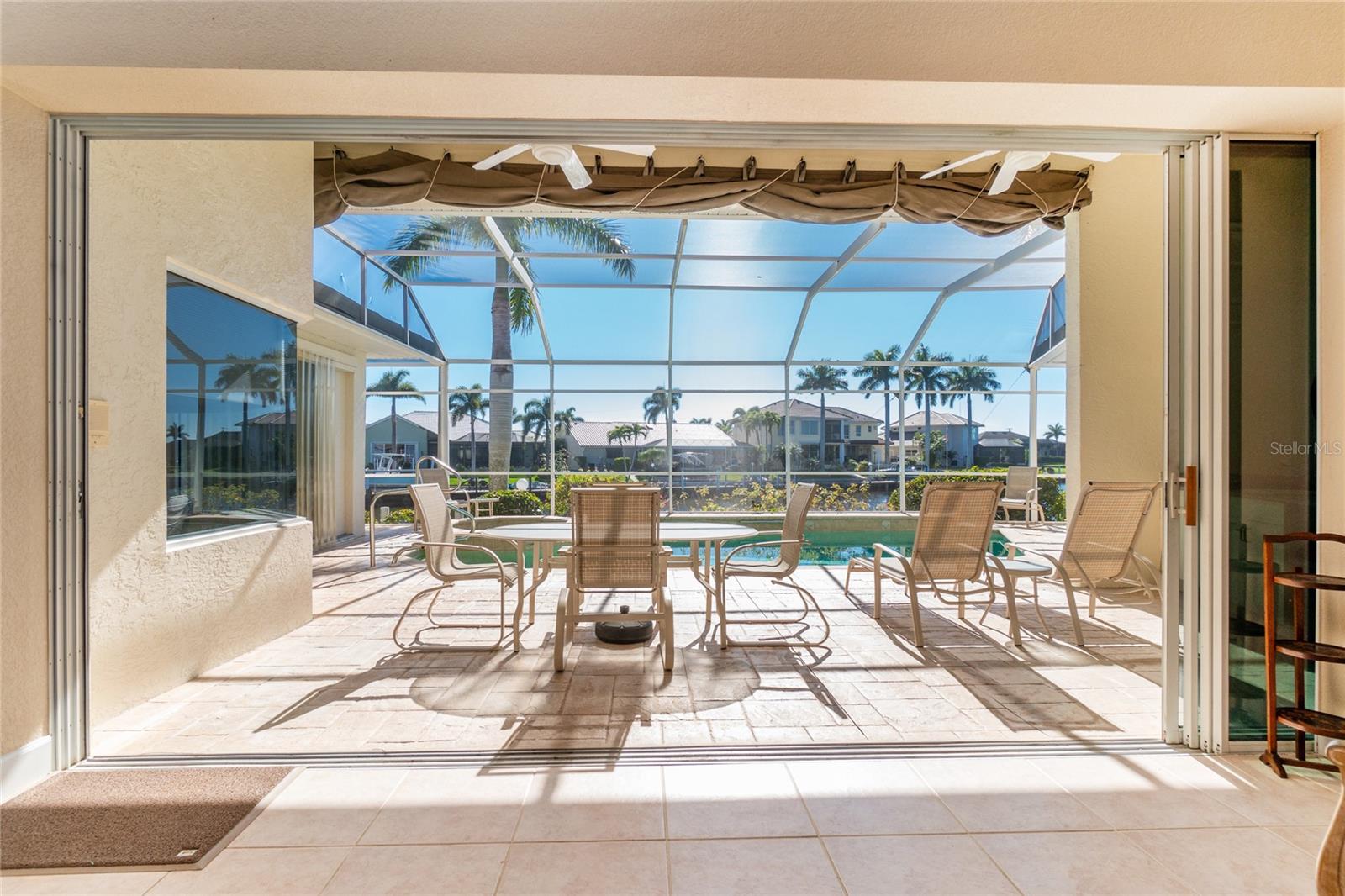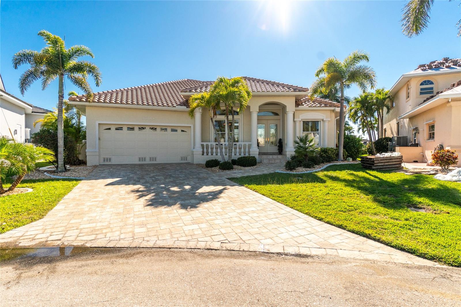 Stunning WATERFRONT home on a KEY LOT in desirable deed restricted BURNT STORE ISLES. JUST MINUTES TO THE HARBOR! This light and bright home features beautiful design features throughout and offers an open and split bedroom floor plan. There are 3 Bedrooms, 2.5 Bathrooms, attached 2 Car Garage, Great Room, Family Room, separate formal Dining Room, Office, well appointed Kitchen and Inside Laundry Room. The Dining Room has built ins, additional space above the built -ins for your decorative items, large window with transom window, plantation shutters and wet bar. The spacious Great Room has built ins for your books or collectibles, lanai access and electric fireplace. The Family Room also has built ins and lanai access. Glass french doors lead to a large Office. The Kitchen features wood cabinets, granite counters, breakfast bar, closet pantry and island with additional storage and wine rack. There is also a dining area in the Kitchen with a great pool and water view through aquarium glass. The Inside Laundry has a washer, dryer, sink and great storage space with numerous cabinets. The Master Bedroom suite is your private oasis with lanai access, TWO walk in closets and private bathroom with jetted garden tub, walk in shower and dual sinks. There are two additional generous sized bedrooms with good closet space and the guest bathroom has a walk in shower. Your living space extends via pocket sliders to the screened lanai and pool area with large covered area, storage closet, summer kitchen with sink, Jenn Air grill and cabinets, heated inground pool, inground spa connected to the pool, outdoor shower and half bath. Fabulous water views! Continue to the waterfront with 140 FOOT concrete seawall (maintained by the city of Punta Gorda), 60 FOOT concrete dock and 18,000 lb boat lift. QUICK SAILBOAT ACCESS - just minutes to Charlotte Harbor and on to the Gulf of Mexico. Other features include: hurricane shutters, manabloc plumbing, double door entry with transom windows, plantation shutters and tile flooring throughout the home, tray ceilings with lighting, neutral colors throughout, rain gutters, paver driveway and walkway, NEW barrel tile ROOF 2023. This home is only 5 minutes from Golf and ten minutes from historic downtown Punta Gorda shopping, dining, medical care, waterfront parks, walking and biking paths, art galleries, boat ramps, fishing piers, weekend farmers markets, Fishermen's Village, events and more! This home is perfect for entertaining and enjoying the Florida lifestyle!