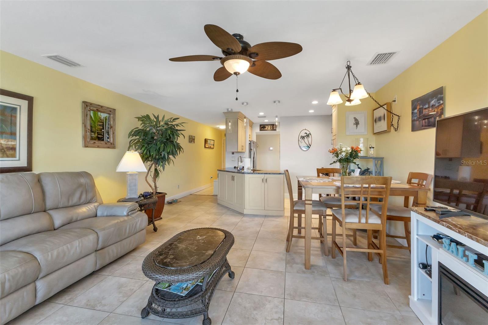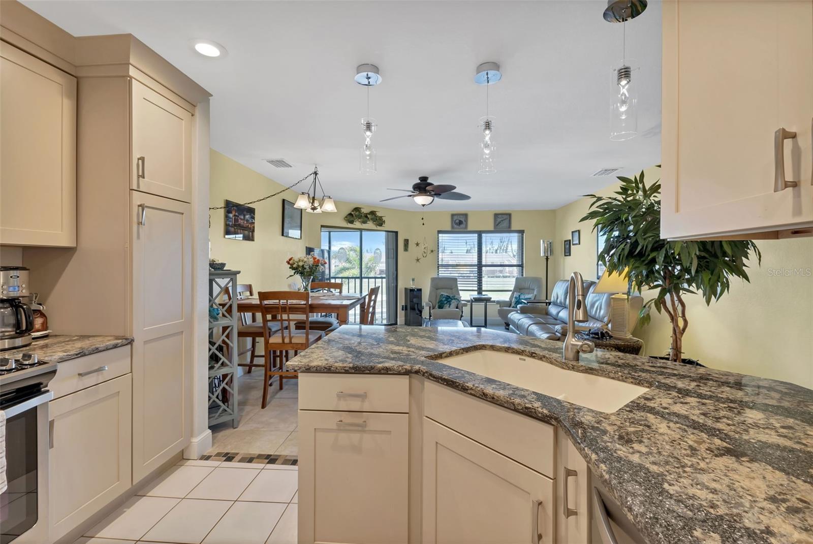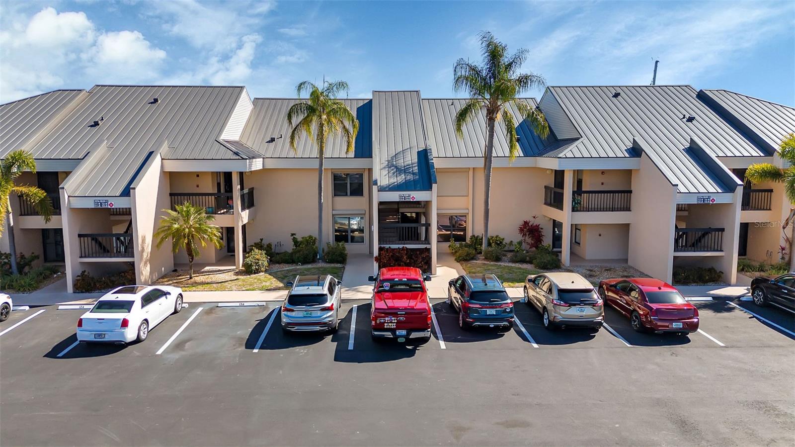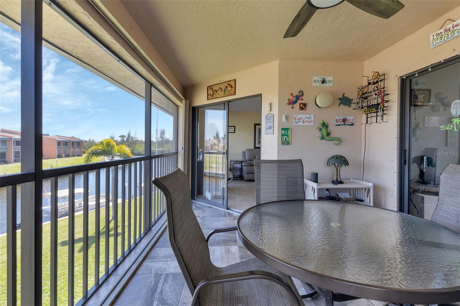 Welcome to your beautifully UPDATED, WATERFRONT condo in the popular Venetian Isles Community with COMPETITIVE & STABLE HOA FEES! THIS CONDO HAS HURRICANE PROTECTION FOR YOUR PEACE OF MIND & A BRAND NEW METAL ROOF! This second floor condo features a gorgeous kitchen with QUARTZ COUNTERTOPS, new shaker style cabinets, STAINLESS APPLIANCES (including a convection oven), PENDANT LIGHTING and plenty of cabinet space including additional cabinets on the island! There is ceramic tile & Luxury Vinyl throughout the home (no carpet)! Enjoy fabulous views of the waterfront and pool from your private, screened lanai! Open concept living with your living room connected to the dining area and kitchen with water views from living room window! The Primary Bedroom has a HUGE WALK IN CLOSET with ensuite bathroom inducing gorgeous GRANITE COUNTER TOPS on the vanity and TILED WALK IN SHOWER! There is also access to the lanai from the Master Suite! Full size guest bedroom with additional closet space and separate guest bathroom rounds out the rest of this perfect condo! LIGHTING AND FANS updated throughout. GREAT LOCATION WITHIN THE COMMUNITY JUST STEPS AWAY FROM THE POOL AND PICKLEBALL/TENNIS COURTS! The condos have HEATED POOL WITH POOL CAGE, ASSIGNABLE DOCK SPACES and are near the heart of Punta Gorda featuring the downtown area with weekly farmer's markets, festivals, waterfront dining including restaurants at Fisherman's Village Waterfront Mall! Also near all amenities such as Publix Grocery store, banks, medical facilities and so much more! Ask for the full feature sheet and call to schedule a private showing today! BE SURE TO CLICK THE FULL VIRTUAL TOUR LINKS FOR DETAILS