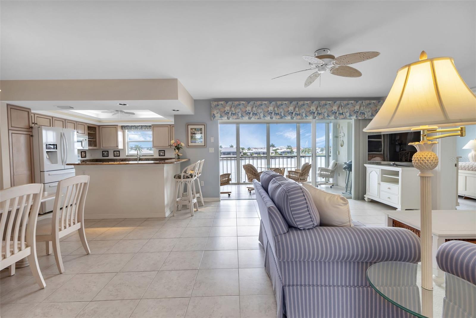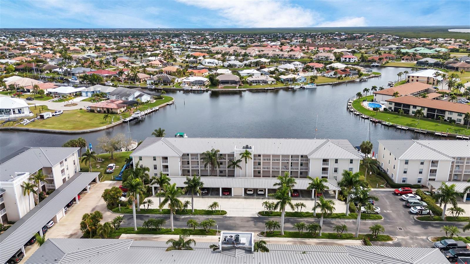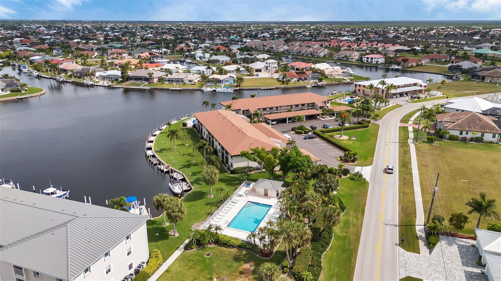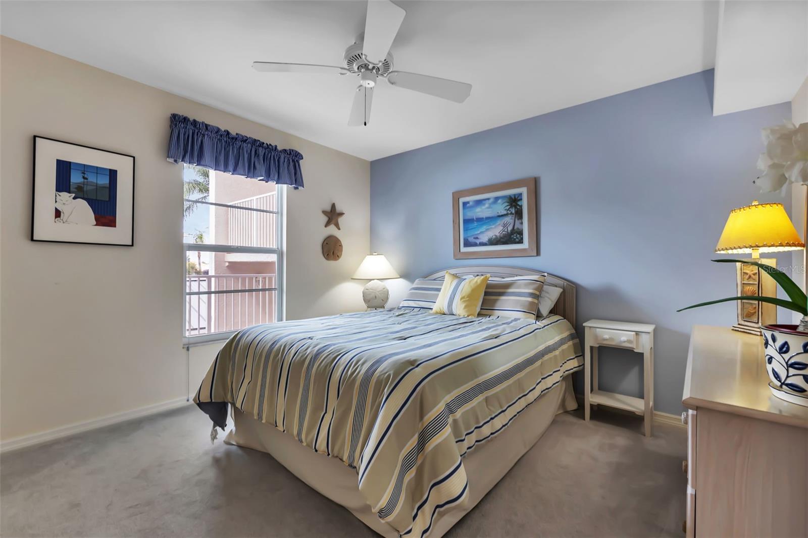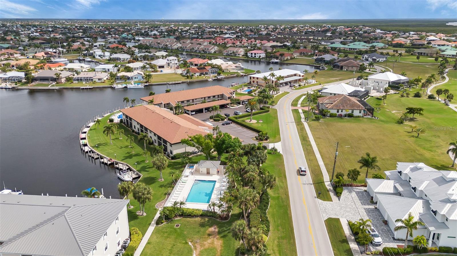 Welcome to your waterfront paradise! This lovely turnkey condo offers breathtaking views of the sailboat basin and comes complete with a deeded dock, making it a boater's dream. Step onto the enclosed balcony and immerse yourself in the tranquility of the morning sunrise over the expansive sailboat basin. This 2 bedroom, 2 bath split plan condo is designed for privacy and comfort, with a great room concept that provides the perfect gathering spot for family and friends. The primary suite is a true retreat, boasting a king size bed, matching end tables, dresser, and highboy, all perfectly complemented by stunning water views. Pamper yourself in the luxurious primary bath featuring a dual sink vanity, large walk-in closet, and a separate toilet and shower room. The second bedroom offers a cozy queen bed, end tables, dresser, and generous closet space, ensuring your guests feel right at home. Laundry day is a breeze with the spacious laundry room equipped with a front load washer/dryer set, utility sink, and folding counter. Additional storage space is readily available in the large in-unit storage room complete with cabinetry and a maple countertop. Entertain with ease on the lanai, equipped with a round glass table and rolling chairs, electric BBQ, and convenient pass-through from the kitchen. Granite countertops in the kitchen add a touch of elegance, seamlessly flowing into the pass-through. Your deeded dock, complete with water and electric hookups, is conveniently within view of the balcony, offering easy access to the water whenever the mood strikes. Plus, rest easy knowing your unit is protected by an electric hurricane shutter enclosing the lanai. This turnkey unit truly has it all – from the tasteful furnishings to the essential amenities, everything you see is included in the asking price. Don't miss out on the opportunity to experience waterfront living at its finest. Schedule your showing today and start making memories in this waterfront oasis! Building 4 - second floor.