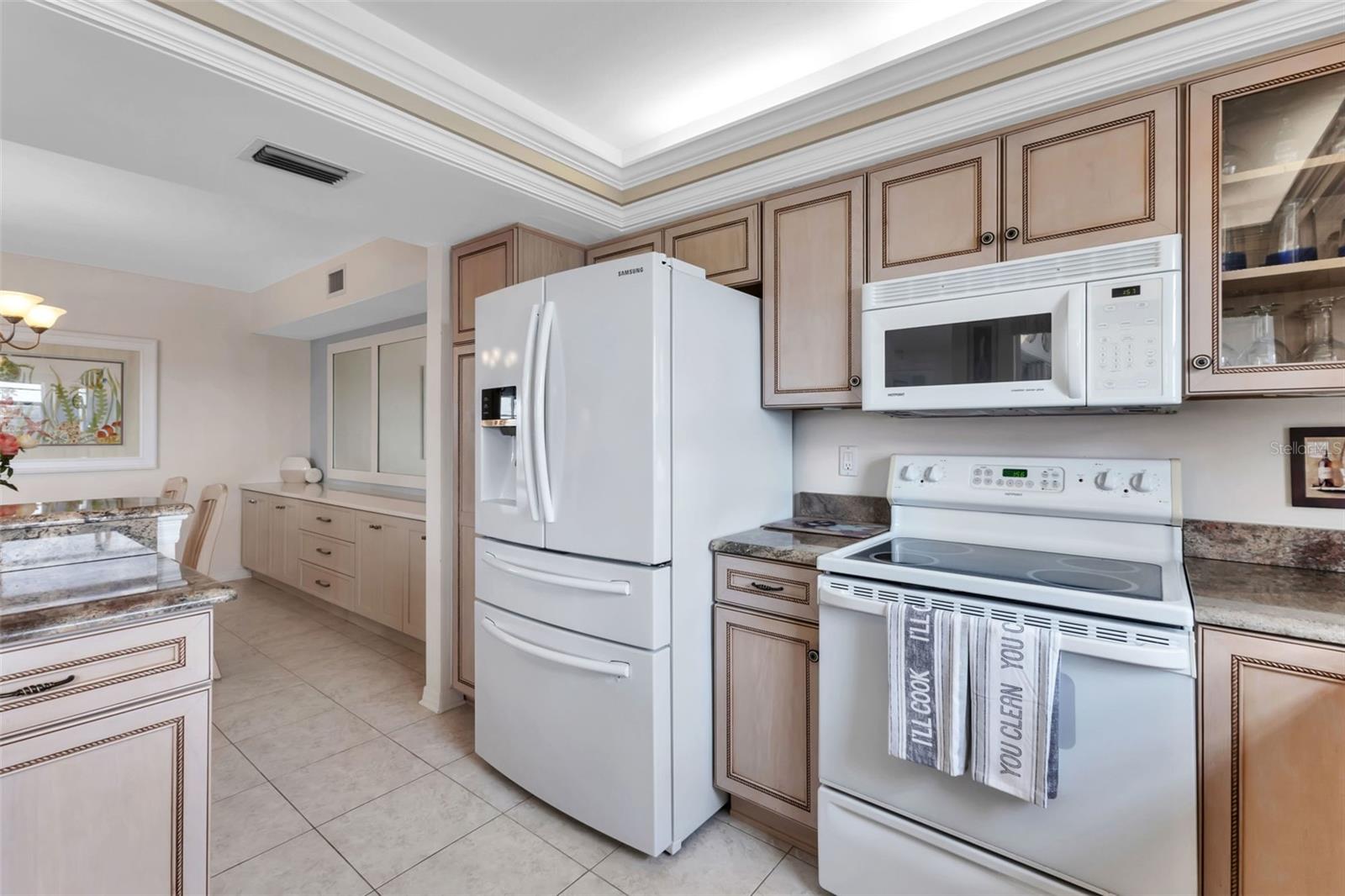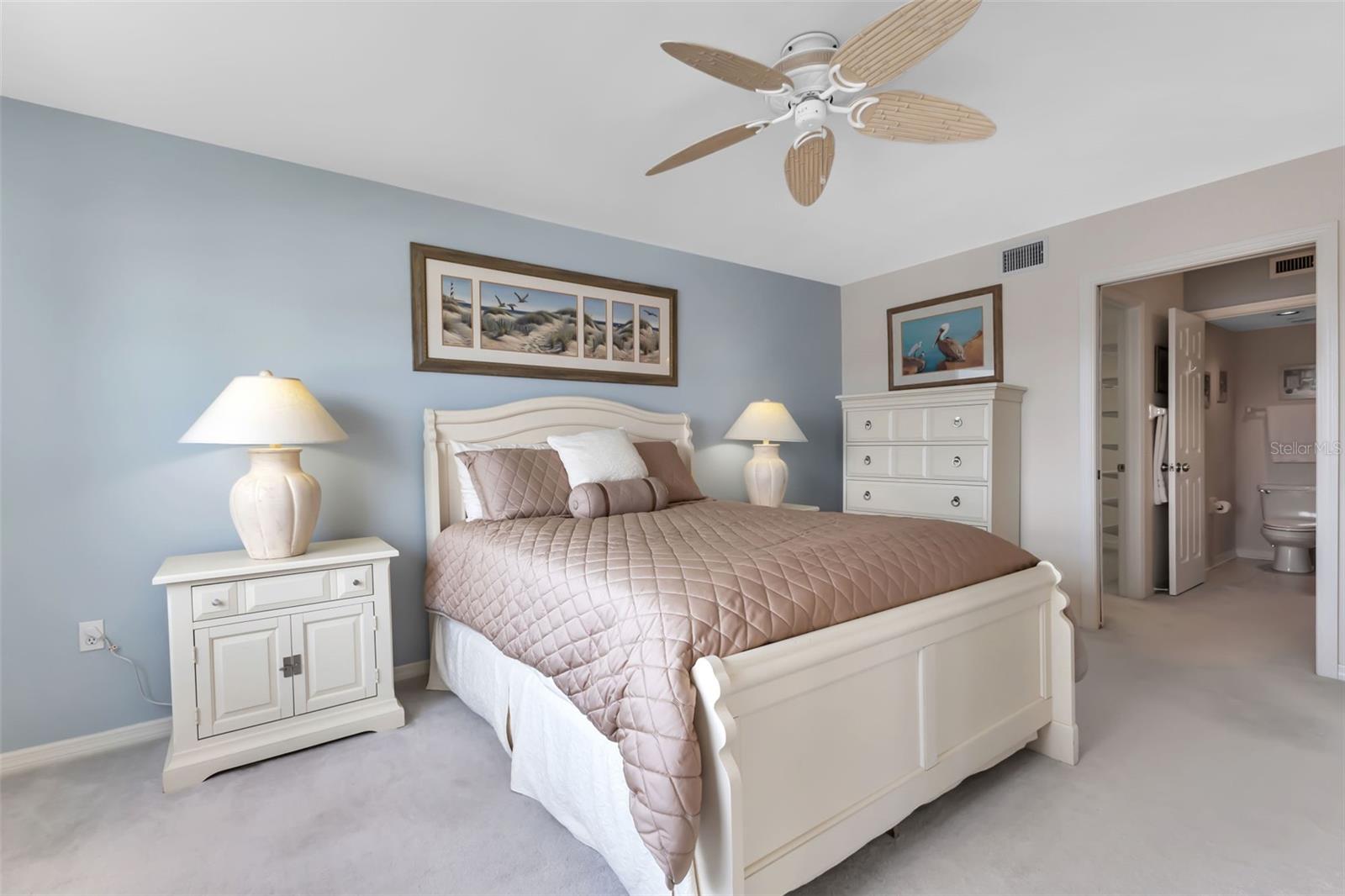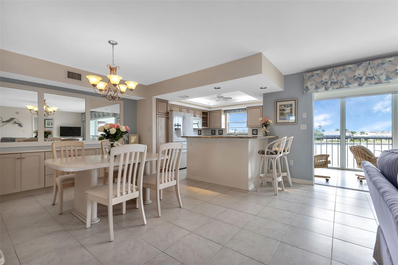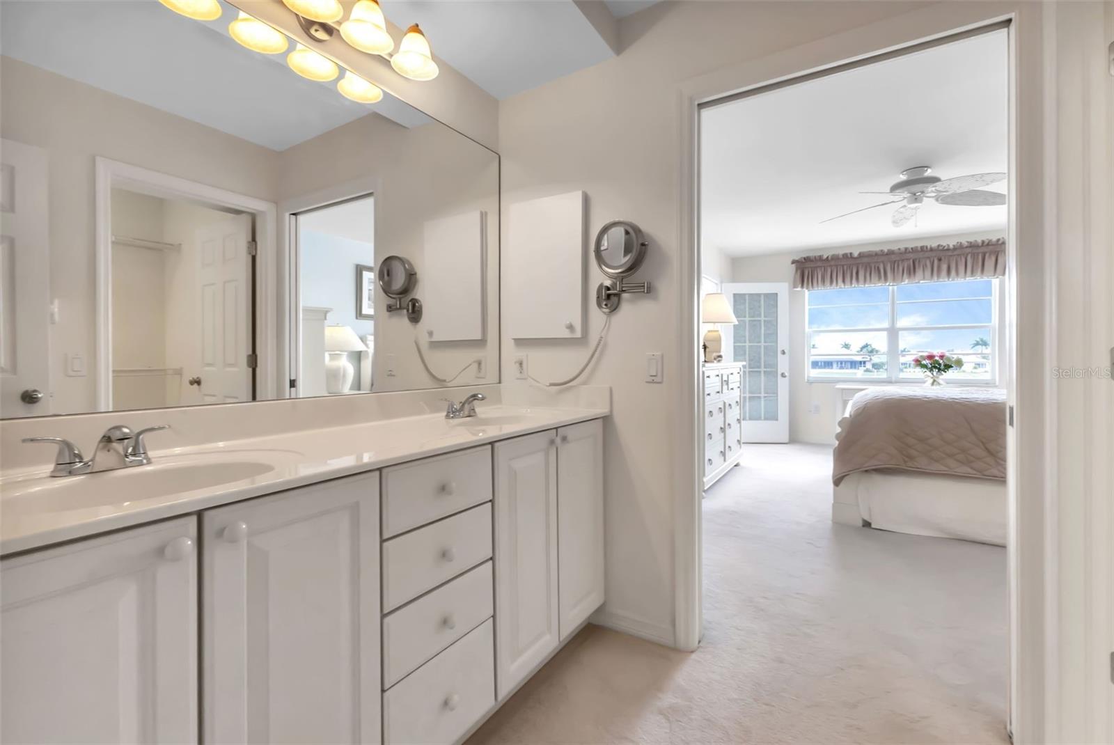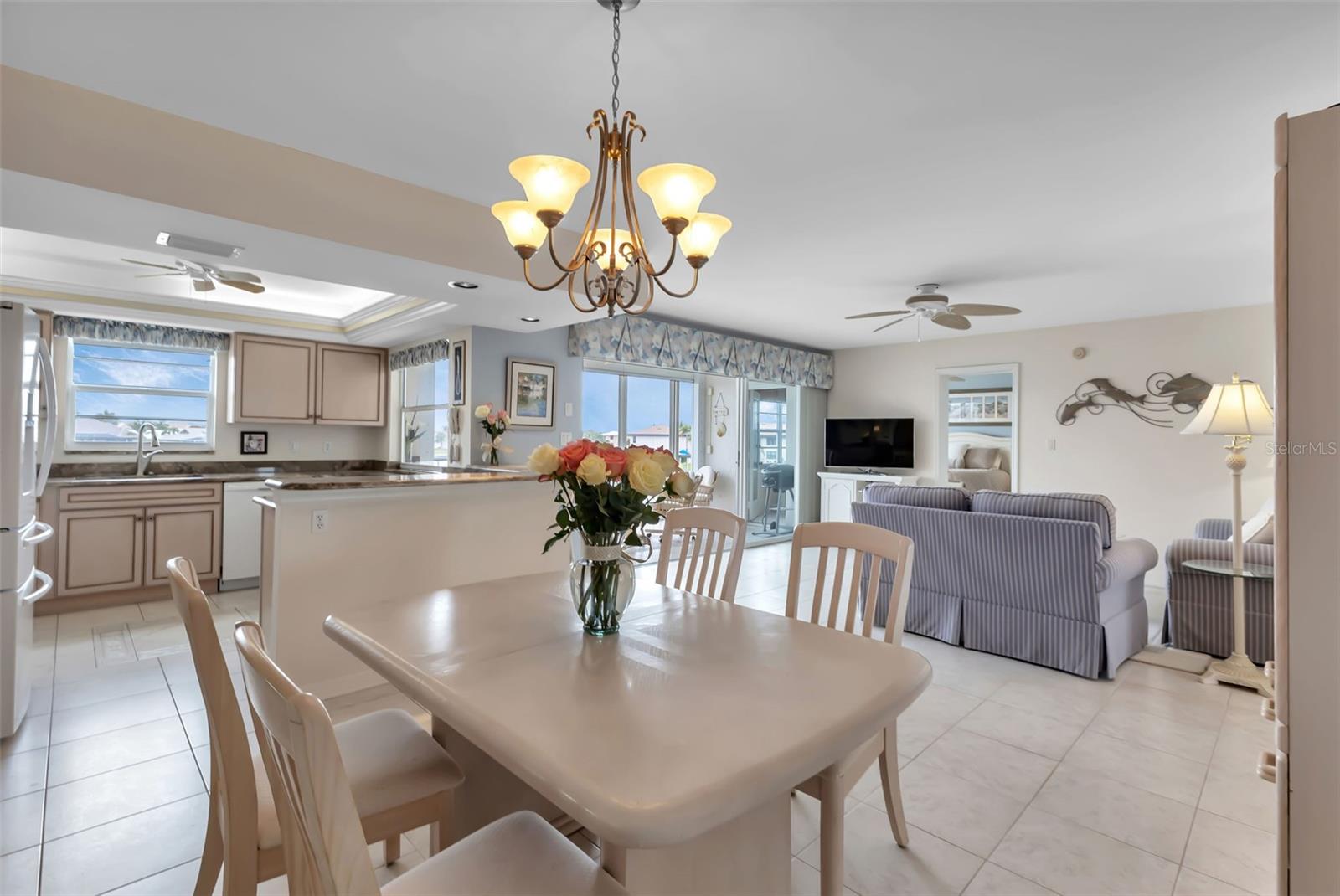 Welcome to your waterfront paradise! This lovely turnkey condo offers breathtaking views of the sailboat basin and comes complete with a deeded dock, making it a boater's dream. Step onto the enclosed balcony and immerse yourself in the tranquility of the morning sunrise over the expansive sailboat basin. This 2 bedroom, 2 bath split plan condo is designed for privacy and comfort, with a great room concept that provides the perfect gathering spot for family and friends. The primary suite is a true retreat, boasting a king size bed, matching end tables, dresser, and highboy, all perfectly complemented by stunning water views. Pamper yourself in the luxurious primary bath featuring a dual sink vanity, large walk-in closet, and a separate toilet and shower room. The second bedroom offers a cozy queen bed, end tables, dresser, and generous closet space, ensuring your guests feel right at home. Laundry day is a breeze with the spacious laundry room equipped with a front load washer/dryer set, utility sink, and folding counter. Additional storage space is readily available in the large in-unit storage room complete with cabinetry and a maple countertop. Entertain with ease on the lanai, equipped with a round glass table and rolling chairs, electric BBQ, and convenient pass-through from the kitchen. Granite countertops in the kitchen add a touch of elegance, seamlessly flowing into the pass-through. Your deeded dock, complete with water and electric hookups, is conveniently within view of the balcony, offering easy access to the water whenever the mood strikes. Plus, rest easy knowing your unit is protected by an electric hurricane shutter enclosing the lanai. This turnkey unit truly has it all – from the tasteful furnishings to the essential amenities, everything you see is included in the asking price. Don't miss out on the opportunity to experience waterfront living at its finest. Schedule your showing today and start making memories in this waterfront oasis! Building 4 - second floor.