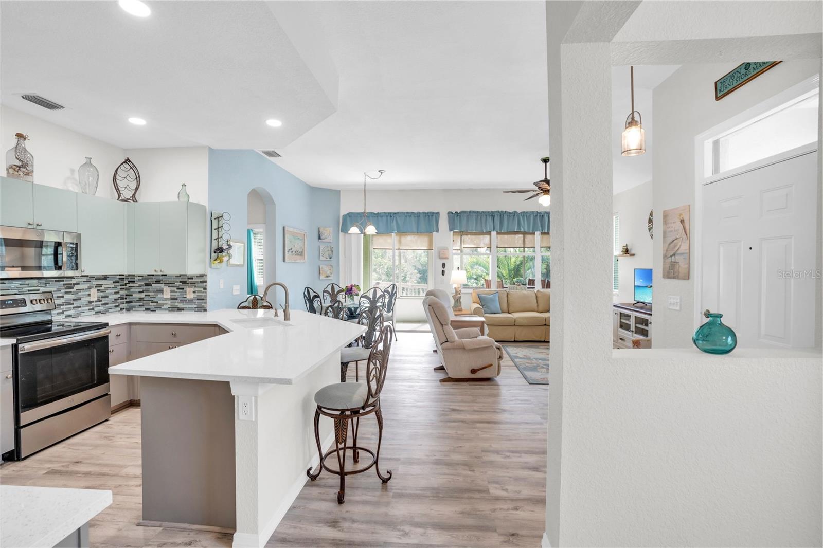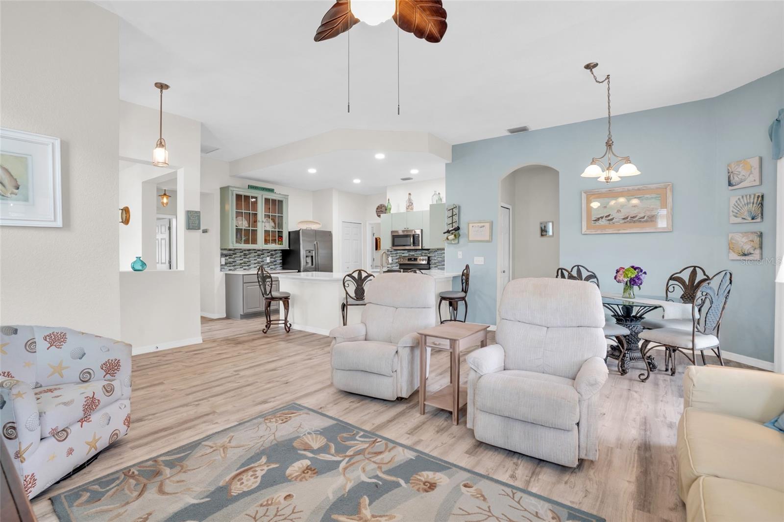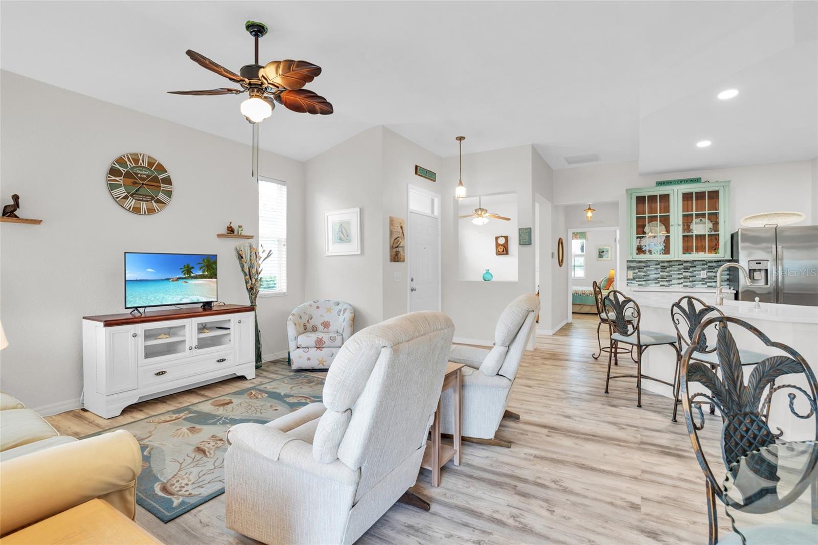 SELLER is OFFERING 1 YR HOME WARRANTY, plus it comes turnkey-partially furnished. This is the Villa you want to own in Burnt Store Marina. This meticulously updated 2-bedroom, 2-bath villa with a den that boasts a new roof and hurricane impact windows in the majority of the villa, ensuring both style and safety. Step into luxury with quartz countertops, a stunning backsplash, and a convenient coffee bar in this open kitchen. The partially furnished villa features LED lighting, new pantry, and luxury vinyl plank flooring throughout, offering a seamless blend of elegance and functionality. Relax in the master bath, adorned with a new vanity, quartz countertop, and modern fixtures. The guest bathroom also boasts new fixtures, adding to the villa's upscale ambiance. The enclosed lanai, complete with slider windows and two ceiling fans, provides a perfect spot to unwind and soak in the tranquil surroundings. With two hurricane impact doors, re-insulated attic, and no-seeum screens on the front entry, peace of mind is guaranteed. The golf cart & bike are also conveying. Indulge in the amenities provided by the condo association fees of the pool & fitness center. Burnt Store Marina is just across the street. From boating and fishing to golf, pickleball, and tennis, there's something for everyone in this vibrant community. There are 3 restaurants including Cass Cay which has a water view of the south basin. Burnt Store Marina is the largest deep water marina in Southwest Florida, and is just 10 nautical miles away from the Gulf of Mexico. Conveniently located minutes from downtown Punta Gorda and Sunseeker Resort, everyday feels like a vacation in this idyllic setting. Make this your personal retreat or a rental with huge income potential. Don't miss your chance to make this tropical oasis your home!