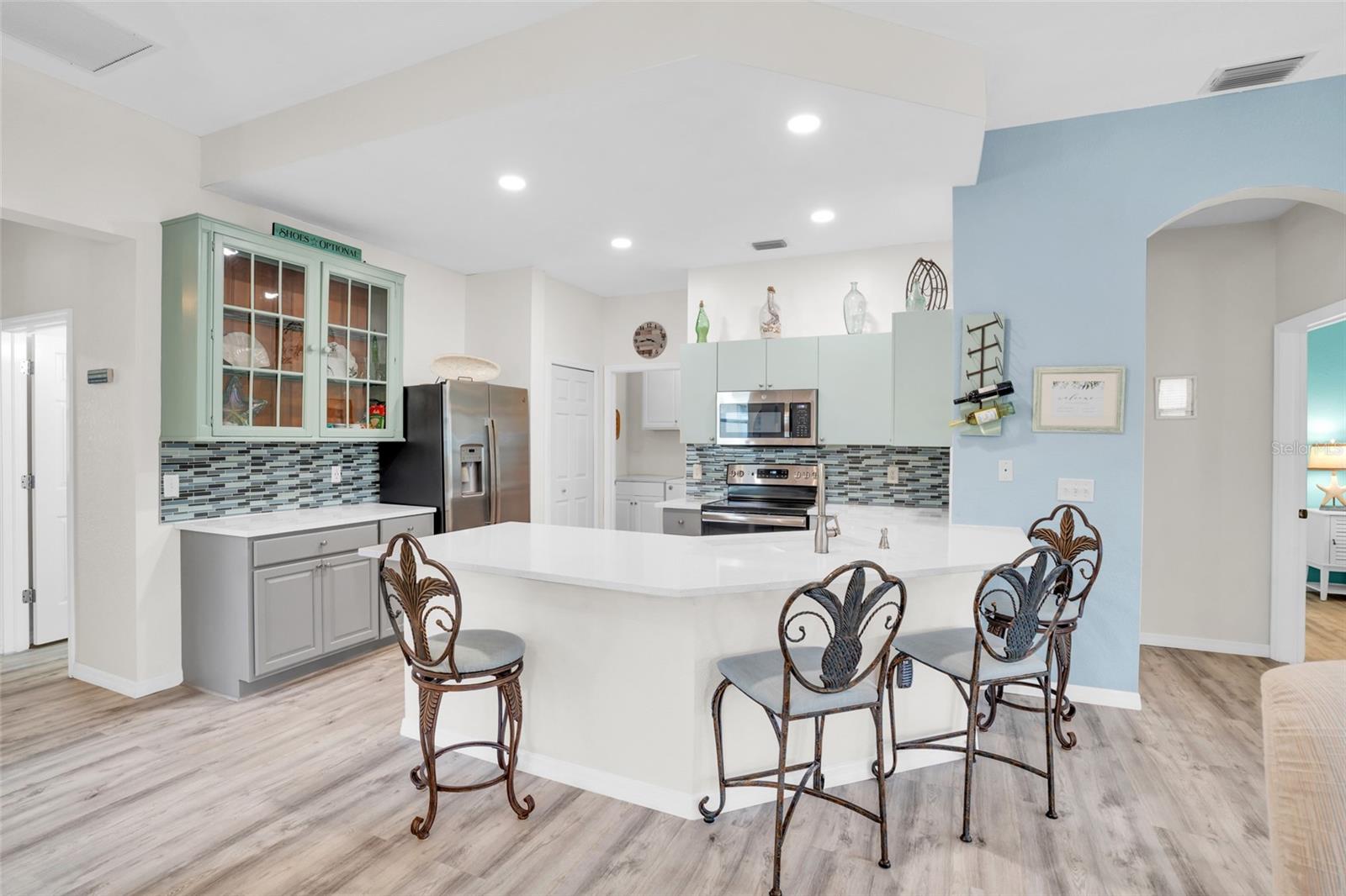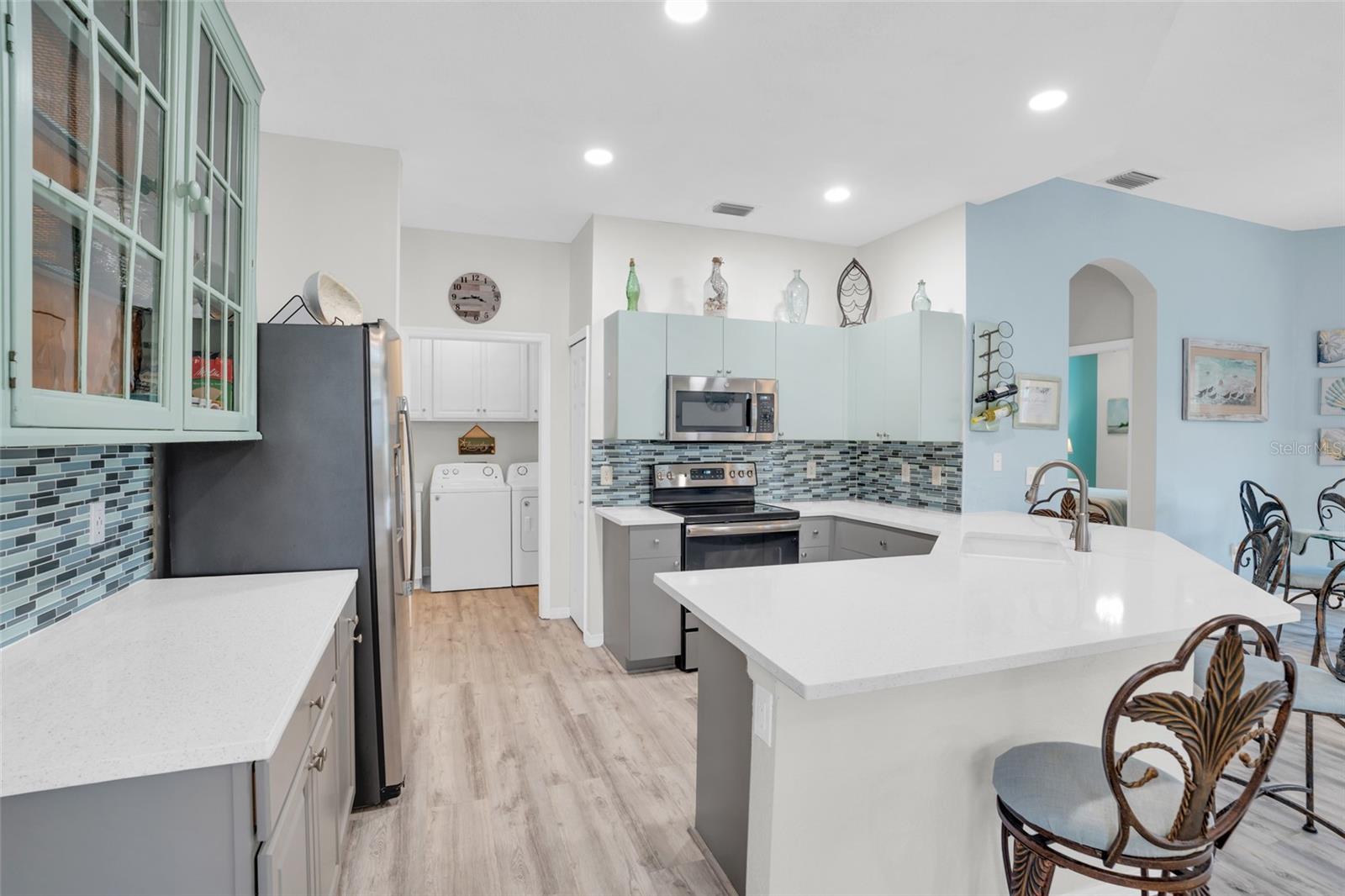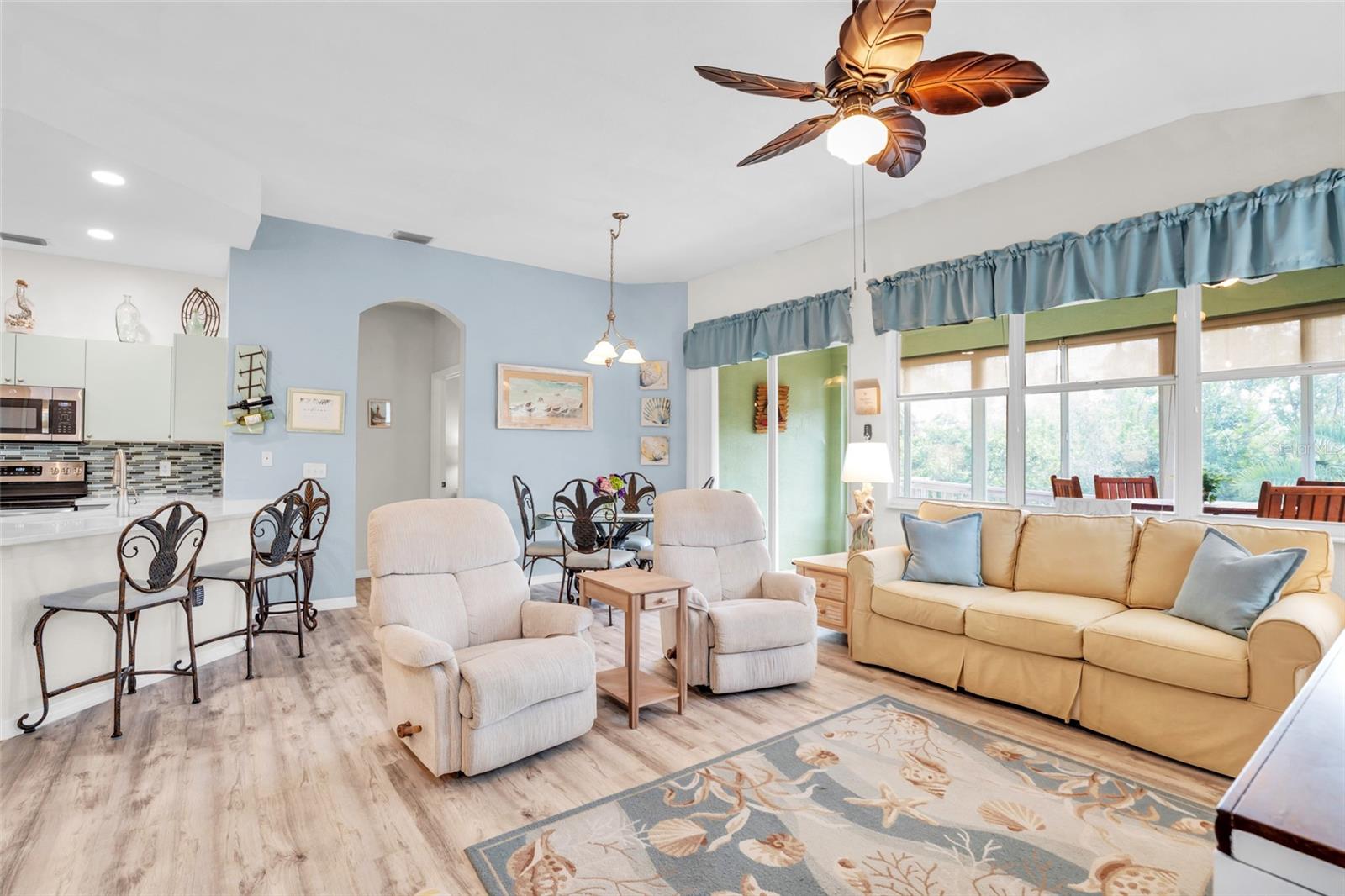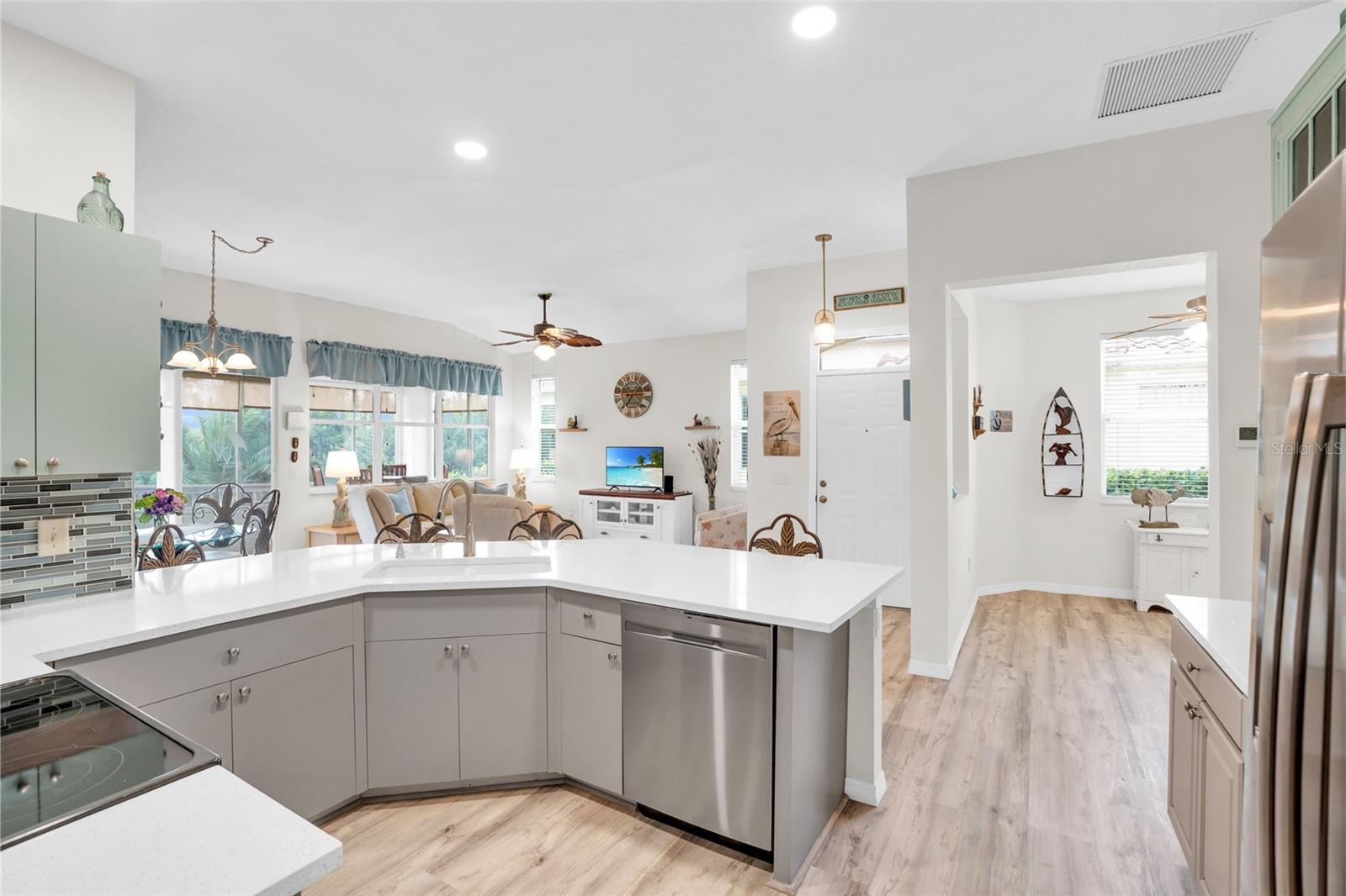 SELLER is OFFERING 1 YR HOME WARRANTY, plus it comes turnkey-partially furnished. This is the Villa you want to own in Burnt Store Marina. This meticulously updated 2-bedroom, 2-bath villa with a den that boasts a new roof and hurricane impact windows in the majority of the villa, ensuring both style and safety. Step into luxury with quartz countertops, a stunning backsplash, and a convenient coffee bar in this open kitchen. The partially furnished villa features LED lighting, new pantry, and luxury vinyl plank flooring throughout, offering a seamless blend of elegance and functionality. Relax in the master bath, adorned with a new vanity, quartz countertop, and modern fixtures. The guest bathroom also boasts new fixtures, adding to the villa's upscale ambiance. The enclosed lanai, complete with slider windows and two ceiling fans, provides a perfect spot to unwind and soak in the tranquil surroundings. With two hurricane impact doors, re-insulated attic, and no-seeum screens on the front entry, peace of mind is guaranteed. The golf cart & bike are also conveying. Indulge in the amenities provided by the condo association fees of the pool & fitness center. Burnt Store Marina is just across the street. From boating and fishing to golf, pickleball, and tennis, there's something for everyone in this vibrant community. There are 3 restaurants including Cass Cay which has a water view of the south basin. Burnt Store Marina is the largest deep water marina in Southwest Florida, and is just 10 nautical miles away from the Gulf of Mexico. Conveniently located minutes from downtown Punta Gorda and Sunseeker Resort, everyday feels like a vacation in this idyllic setting. Make this your personal retreat or a rental with huge income potential. Don't miss your chance to make this tropical oasis your home!
