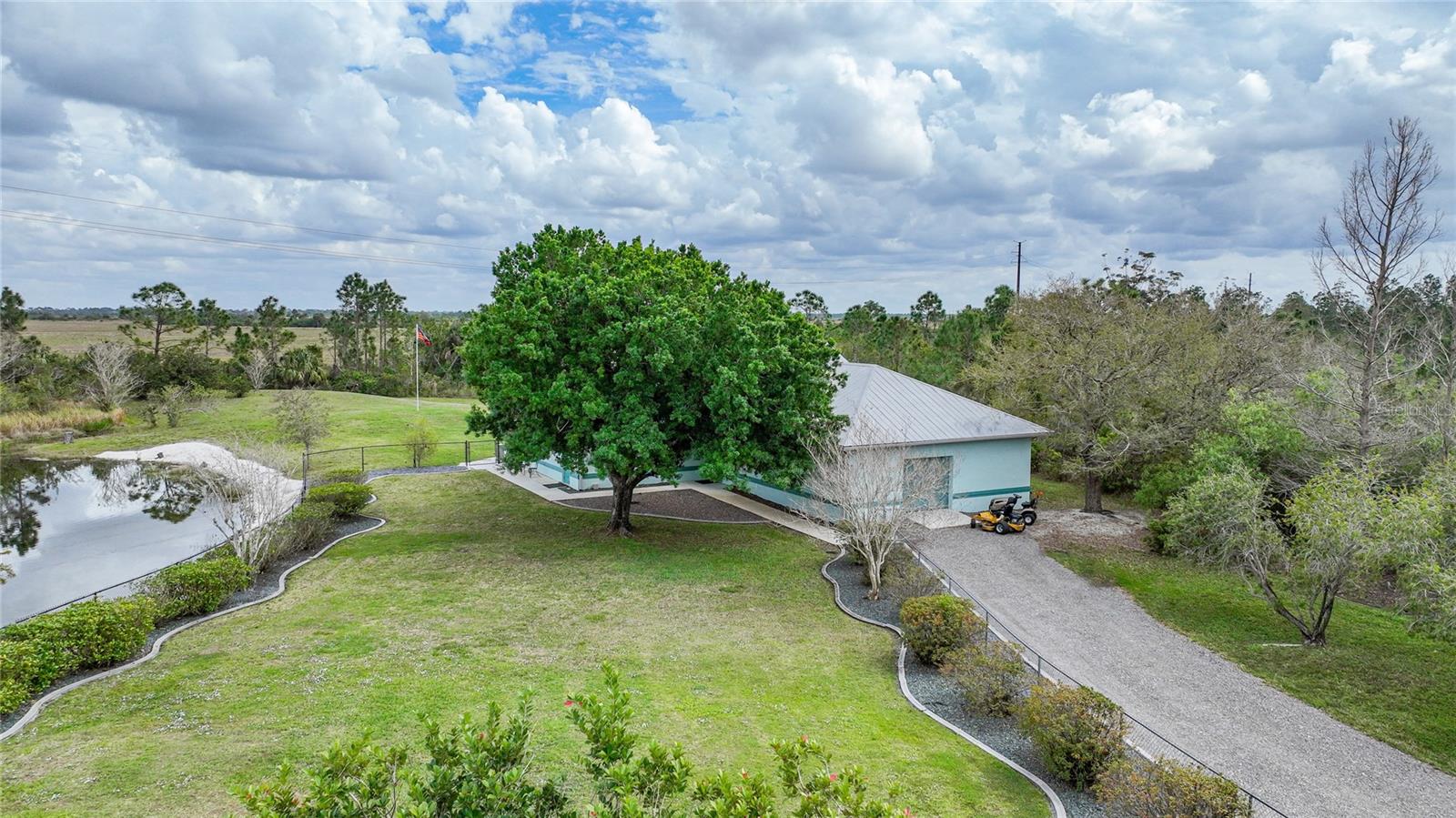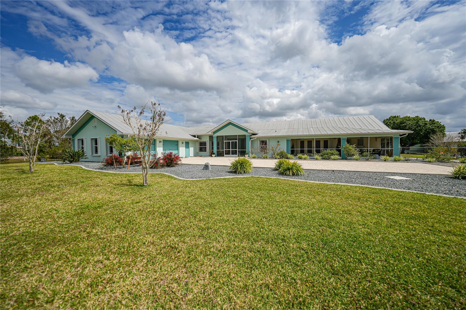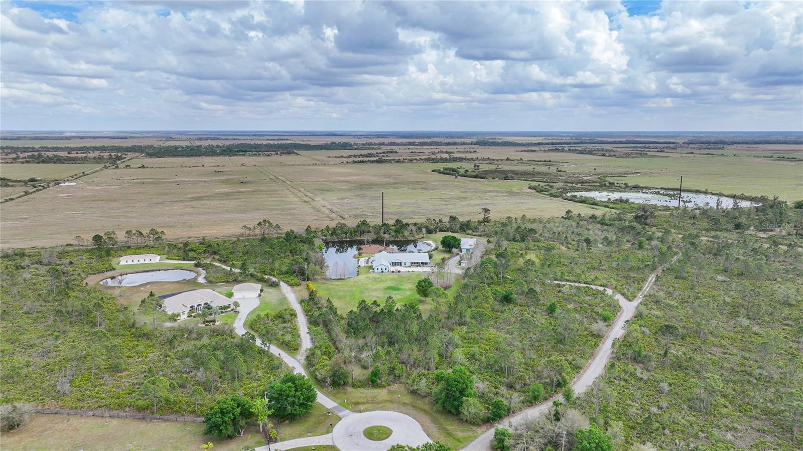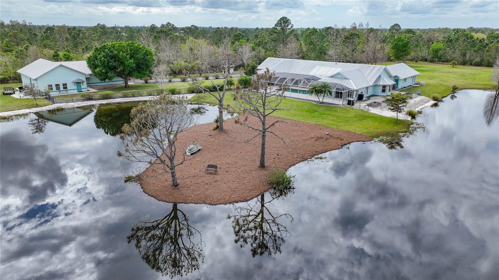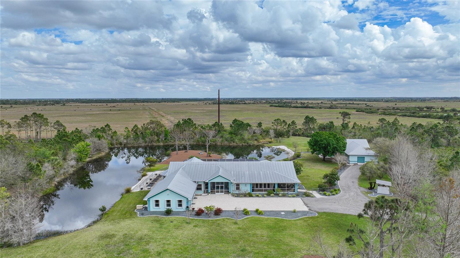 Captivating Estate at 17901 Wood Path: Where Elegance and Country Living Intertwine, Experience the epitome of sophistication and serene country living in this sprawling 12-acre estate nestled in the heart of the equestrian community of Prairie Creek Park. Just a short ride to the historic charm of Punta Gorda, 17901 Wood Path presents a masterfully updated retreat designed for comfort, convenience, and contemporary style. The soul of this home lies in its extensive remodel, boasting 4,428 square feet of thoughtfully appointed space. With five oversized bedrooms, three full bathrooms, and an additional powder room, this residence caters to both grand family living and an intimate repose. Central to the home's allure is a 1.5-acre pond, setting the stage for a serene atmosphere echoed throughout the estate. Entrance & Exterior: Imposing covered and screened entryway. Wraparound 33x13 porch with stamped concrete for extended relaxation and entertainment. Interior Highlights: The gourmet kitchen, accented with custom cherry cabinets, Granite countertops, Kitchen Aid appliances and a generous center island, opens to an ambiently lit great room. A Full home generator backed by an in-ground 1,000-gallon propane tank ensures uninterrupted comfort. State-of-the-art Wi-Fi connectivity and recessed stereo speakers set a seamless auditory experience across all rooms. The Homeowner's Suite emerges as a sanctuary within, featuring dual vanities and a bespoke multi-jetted walk-through shower. Outside, the estate affords a plethora of leisure possibilities, including private porches, an expansive lanai, a heated volleyball pool and hot tub. Ambiance is key with extensive special lighting and custom 6x8 French doors etched with elegant designs. Pet-friendly with an elevated pet bathtub within a fully equipped laundry room. Outdoor Living: Two separate fenced side yards, ample for recreational activities or pet freedom. A commercial-grade pump system services the estate, complete with trio fire hydrants. Outbuildings & Workshops: A multi-use Hobby Barn is appointed with air conditioning/heating, a separate 200-amp electrical panel, and a security system. A 28x16 Art Studio and 30x20 Shop offer dedicated spaces for creativity and craftsmanship. A Large windowless room presents a blank canvas for your individual use...all circumscribing a picturesque natural pond embraced by lush natural greenery. With a 3 A/C system, 2 for the home and one in the outbuilding, rain-capture system, and wired security, every detail ensures peace of mind in sustainable luxury. Make 17901 Wood Path your private country haven—a place where life's hustle fades into the tranquil embrace of nature's arms.