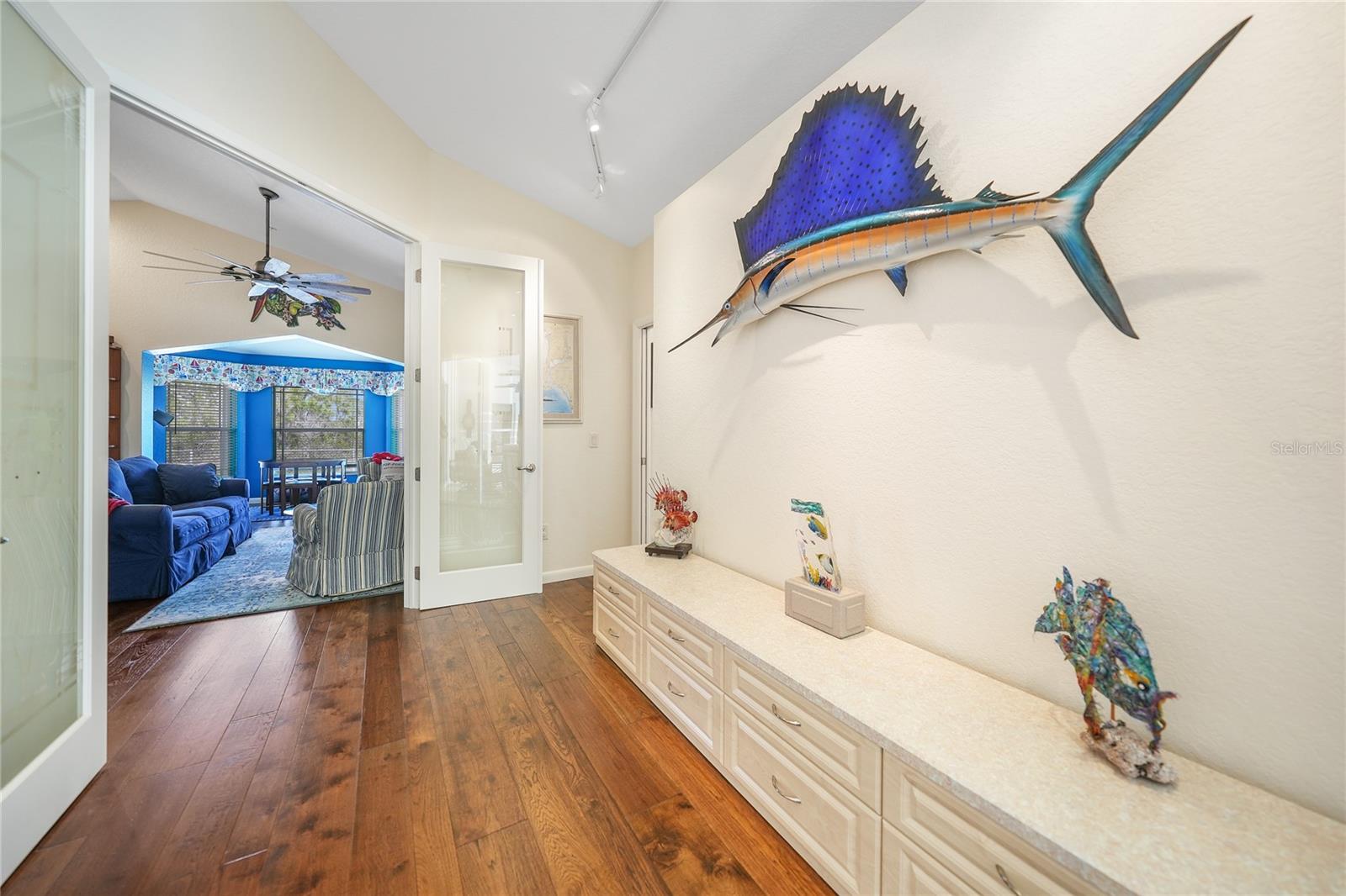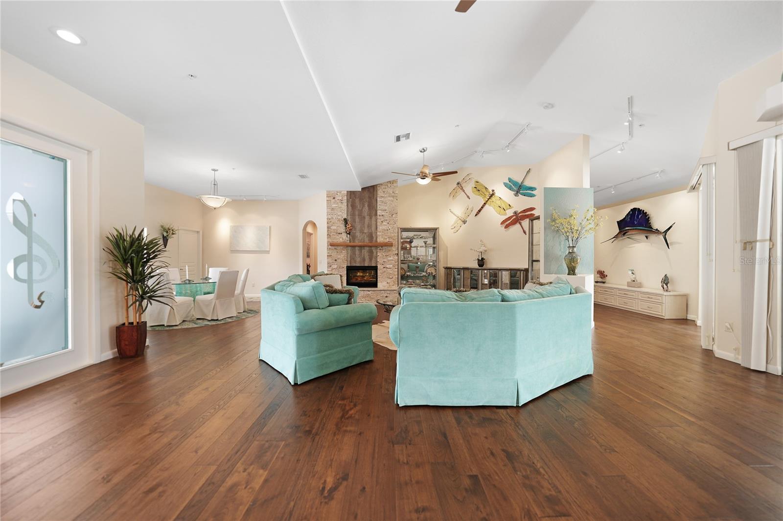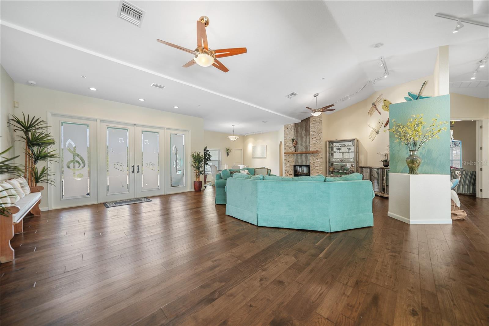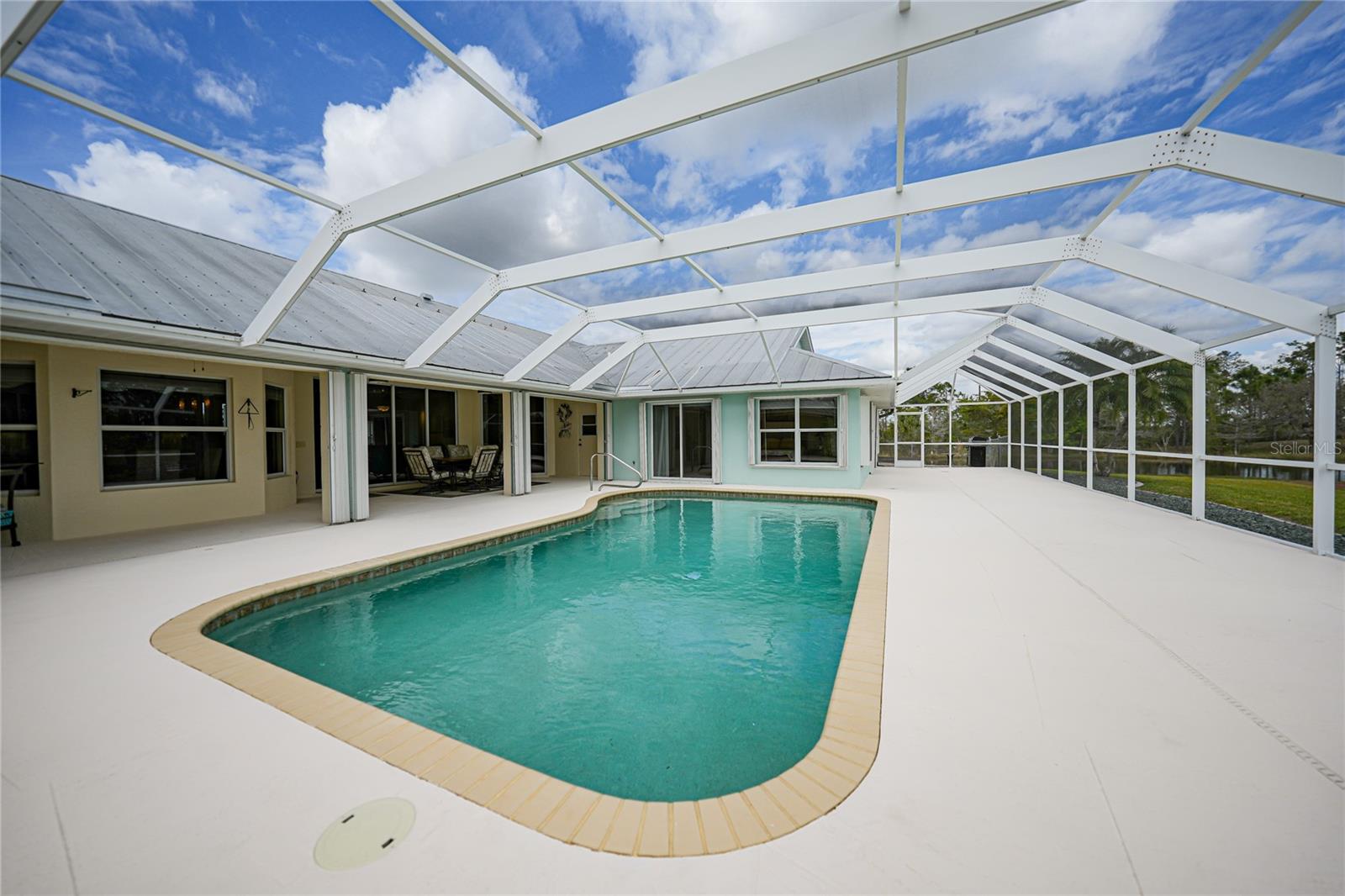 Captivating Estate at 17901 Wood Path: Where Elegance and Country Living Intertwine, Experience the epitome of sophistication and serene country living in this sprawling 12-acre estate nestled in the heart of the equestrian community of Prairie Creek Park. Just a short ride to the historic charm of Punta Gorda, 17901 Wood Path presents a masterfully updated retreat designed for comfort, convenience, and contemporary style. The soul of this home lies in its extensive remodel, boasting 4,428 square feet of thoughtfully appointed space. With five oversized bedrooms, three full bathrooms, and an additional powder room, this residence caters to both grand family living and an intimate repose. Central to the home's allure is a 1.5-acre pond, setting the stage for a serene atmosphere echoed throughout the estate. Entrance & Exterior: Imposing covered and screened entryway. Wraparound 33x13 porch with stamped concrete for extended relaxation and entertainment. Interior Highlights: The gourmet kitchen, accented with custom cherry cabinets, Granite countertops, Kitchen Aid appliances and a generous center island, opens to an ambiently lit great room. A Full home generator backed by an in-ground 1,000-gallon propane tank ensures uninterrupted comfort. State-of-the-art Wi-Fi connectivity and recessed stereo speakers set a seamless auditory experience across all rooms. The Homeowner's Suite emerges as a sanctuary within, featuring dual vanities and a bespoke multi-jetted walk-through shower. Outside, the estate affords a plethora of leisure possibilities, including private porches, an expansive lanai, a heated volleyball pool and hot tub. Ambiance is key with extensive special lighting and custom 6x8 French doors etched with elegant designs. Pet-friendly with an elevated pet bathtub within a fully equipped laundry room. Outdoor Living: Two separate fenced side yards, ample for recreational activities or pet freedom. A commercial-grade pump system services the estate, complete with trio fire hydrants. Outbuildings & Workshops: A multi-use Hobby Barn is appointed with air conditioning/heating, a separate 200-amp electrical panel, and a security system. A 28x16 Art Studio and 30x20 Shop offer dedicated spaces for creativity and craftsmanship. A Large windowless room presents a blank canvas for your individual use...all circumscribing a picturesque natural pond embraced by lush natural greenery. With a 3 A/C system, 2 for the home and one in the outbuilding, rain-capture system, and wired security, every detail ensures peace of mind in sustainable luxury. Make 17901 Wood Path your private country haven—a place where life's hustle fades into the tranquil embrace of nature's arms.