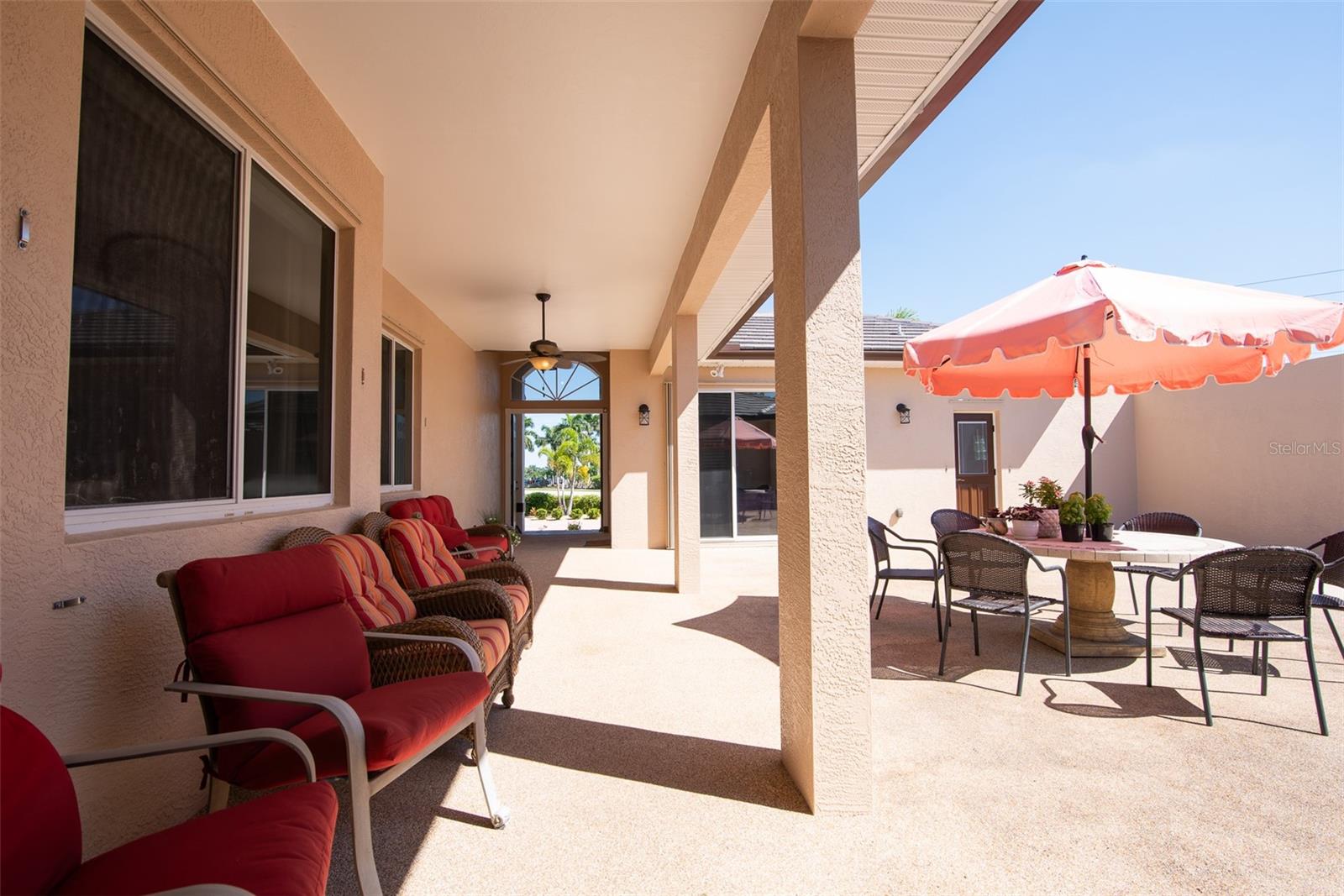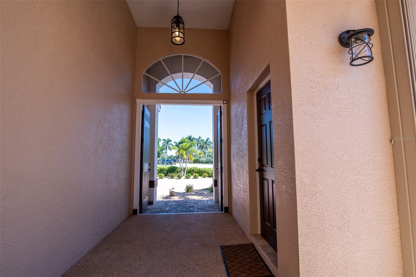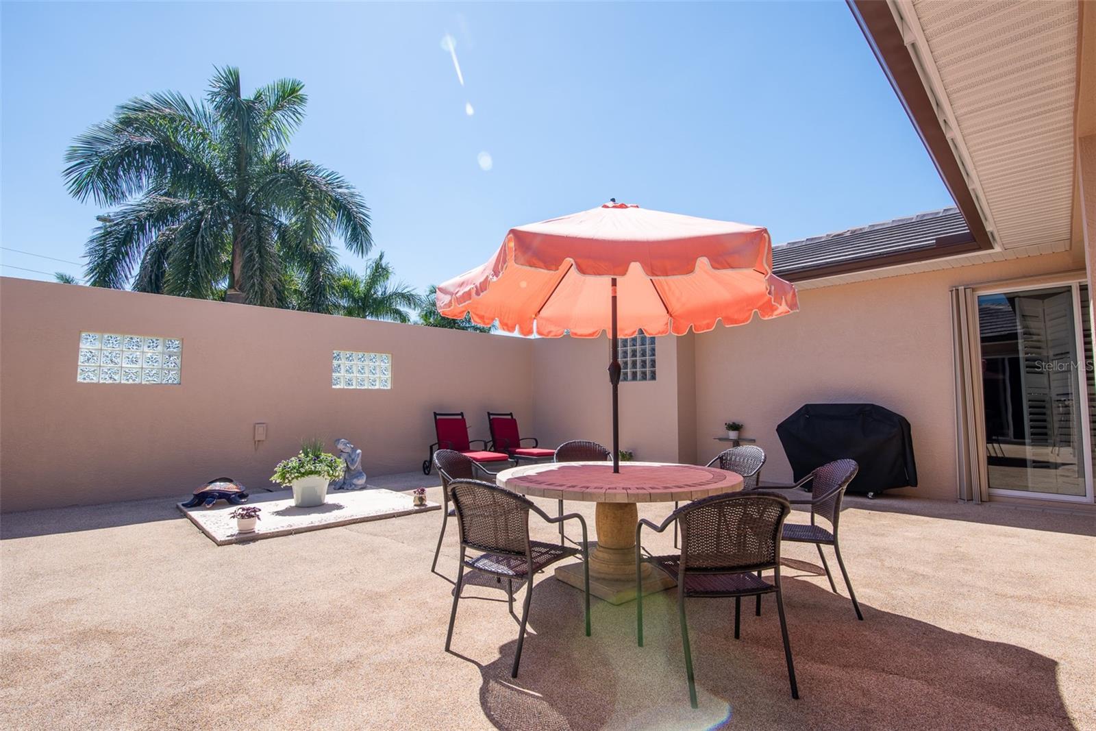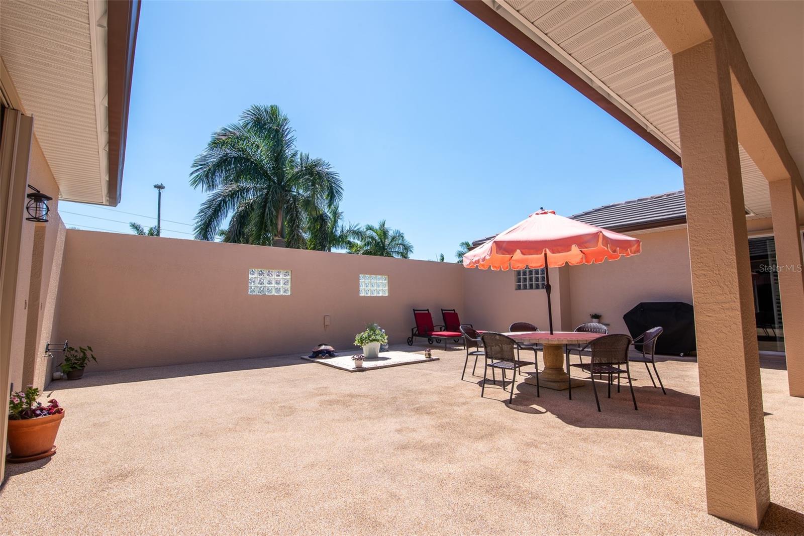 THIS ONE'S SPECIAL. Be sure to check it out before you settle for less! This well-designed home offers many unique features to make it a premium choice. Two separate buildings, each with their own central HVAC, provide a 3/3/3 home with the main house featuring 2/2/3 plus the 1/1 "cabana" house, which can serve as a your 3rd bedroom, a handy home office OR a separate in-law apartment, with mini-kitchenette and your 3rd full bathroom. (It's also an opportunity for rental income!) ALL bedroom closets are walk-in. Double front entry doors provide a dramatic entrance to the large, sunny center courtyard, which is totally private with no sight-lines to the public. Not everybody wants a pool, but if you do this is the perfect spot to add one. A 14x28' private pool can fit in the courtyard without impacting property setbacks. Most BSI lots are under 0.25 acre, this double-sized corner lot delivers 0.45 acre with an expansive front yard and a long circular driveway, allowing generous extra off-street parking. Fantastic location features the Twin Isles Country Club (301 Madrid) with its swimming pool, tennis courts and fine restaurant as your neighbor across the street, with the TICC Golf Course virtually extending your back yard with a beautifully scenic, tranquil view from the enclosed back patio, looking out over the 10th tee. (Like having an extra 50 acres back there, with somebody else to mow the lawn!) It's all move-in ready and in excellent condition with a new roof, new paint, new landscaping and all upgraded stainless steel appliances. New energy-efficient hot water system just installed 7/17/2024. Roof features newest wind-resistant flat tiles. Custom-fitted Storm Smart hurricane shutters included. Huge 3 car garage with 12' high ceilings includes 220-240V Electric Vehicle charging station, along with a dedicated mini-split air conditioner & heater. Most interior furnishings are optionally available for purchase. Retail plazas within 1/2 mile provide a Publix supermarket, Home Depot, restaurants, medical/dental offices and more. Elevation certificate & survey provided. There are no mandatory HOA fees, membership in the Burnt Store Isles Association is optional at $45/year (it is a Neighborhood Association, not an HOA by Florida Statute 720). Deed restrictions are listed on the website at BSIA.net, enforced by the applicable City of Punta Gorda zoning district. Listing agent is owner. Come get a look!