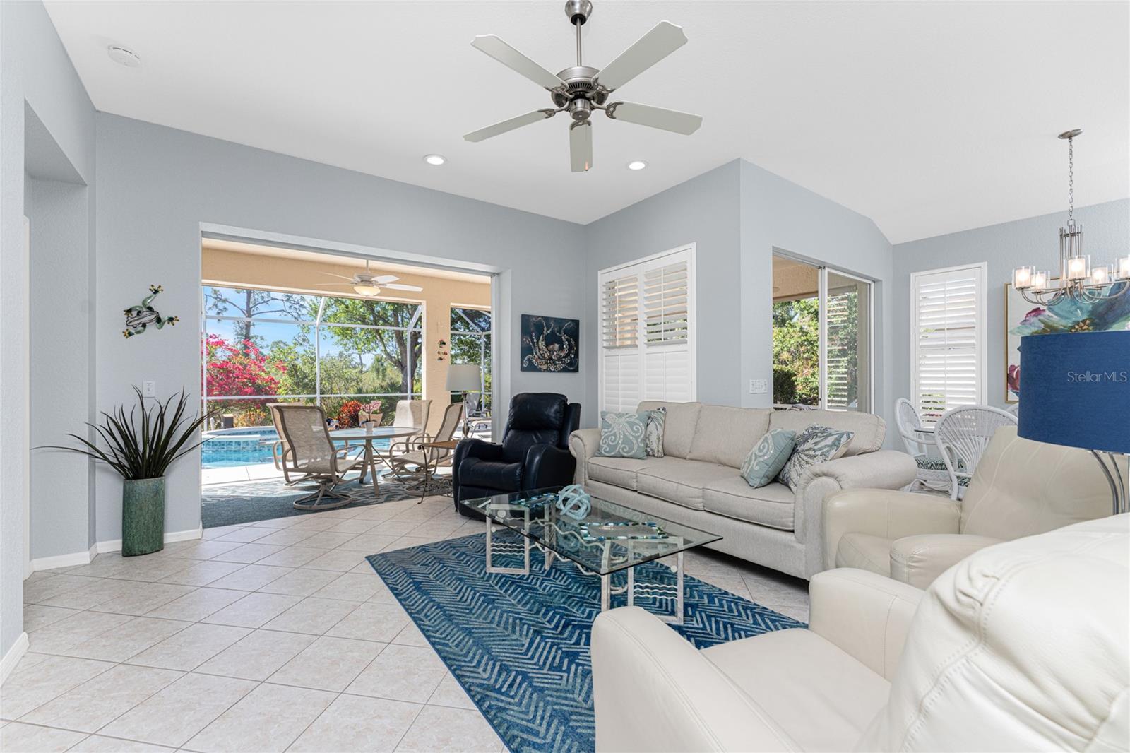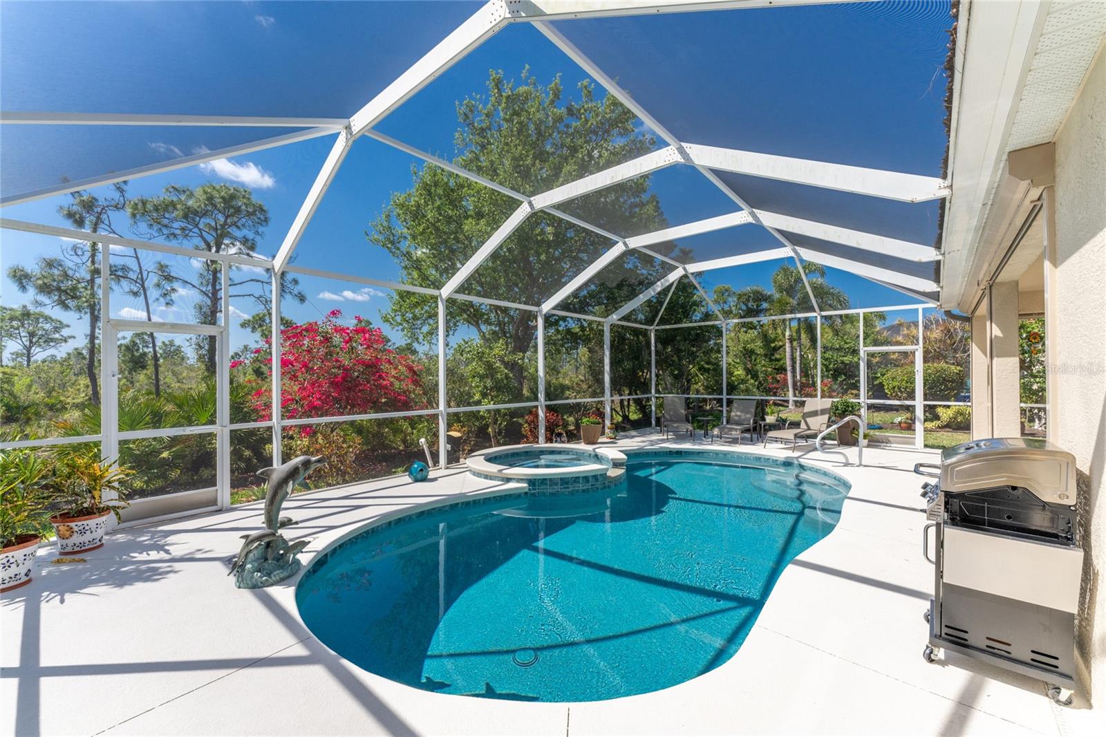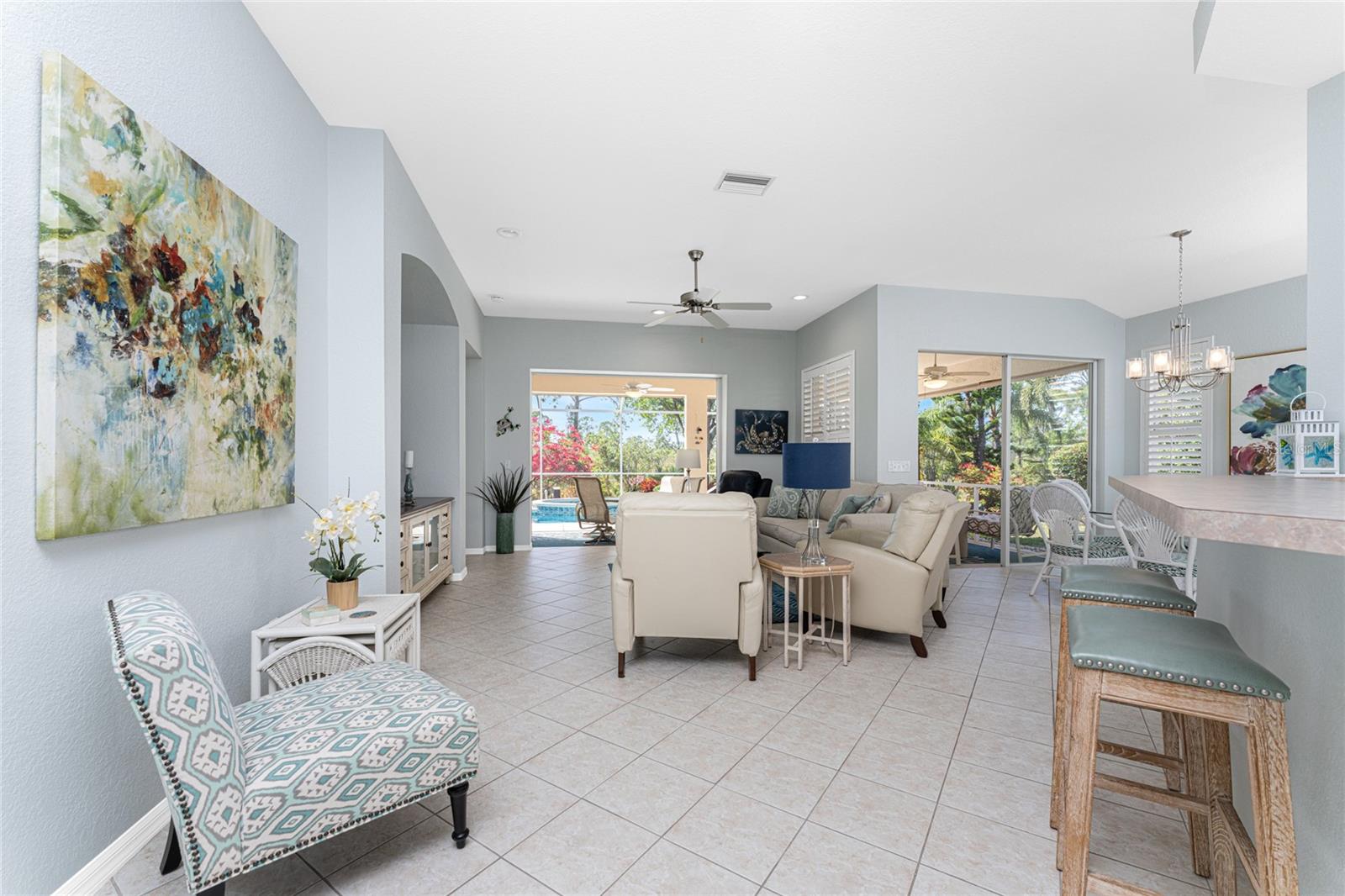 A striking gem with 2022 roof awaits its new discerning owner…nestled against a serene preserve backdrop in Burnt Store Marina. Step into this desirable open Everett floor plan, where glorious sunshine accentuates the soothing paint tones, neutral diamond-set tile, and plantation shutters in this tasteful turnkey furnished three bedroom residence. As you enter, style and sophistication abounds with a seamless flow of space filled with natural light filtering through three sets of sliding doors and windows. The incredible outdoor living area will effortlessly beckon you to step into a lush paradise where a newly resurfaced pool heated and spa awaits (with newer mechanicals). Savor the impressive views of the tranquil preserve beyond as you unwind in your private oasis, soaking in the serenity of nature. Indulge in the art of entertaining in the heart of the home - the large open kitchen. Adorned with LG black stainless steel appliances, an expansive breakfast bar, and custom pull-outs in both the cabinets and pantry, this culinary haven is as functional as it is stylish. The ample surface space is accentuated by a modern tile backsplash, which adds a touch of contemporary flair. Be sure to check out the handy coffee station hidden in the built in pantry in the utility room. Relax and unwind in the primary suite, where a spacious bedroom and walk-in closet meet the remodeled bathroom - complete with an expansive, tiled walk-in shower with built-in bench, and a comfort height vanity with dual sinks. The second guest room, with its versatile design, can effortlessly transform into a private suite, thanks to the addition of a pocket door that discreetly closes off the guest wing. The guest bathroom, tastefully remodeled to include a frameless walk-in shower finished with modern tiles, epitomizes the fusion of form and function. Additionally, enjoy peace of mind knowing that the home boasts a newer roof, and motorized hurricane screens. The attached two car garage with Miami-Dade rated door provides plenty of space for toys and golf cart parking. Just a short walk or bike ride away awaits the south marina basin, with Cass Cay waterfront restaurant, ship’s store, plus tennis, fitness, and pickleball right around the corner. Residents also have access to a 27 hole executive golf course, social club, and Linkside Cafe at the Burnt Store Marina Country Club. Come and enjoy the vibrant lifestyle you’ve been dreaming of in this charming home!