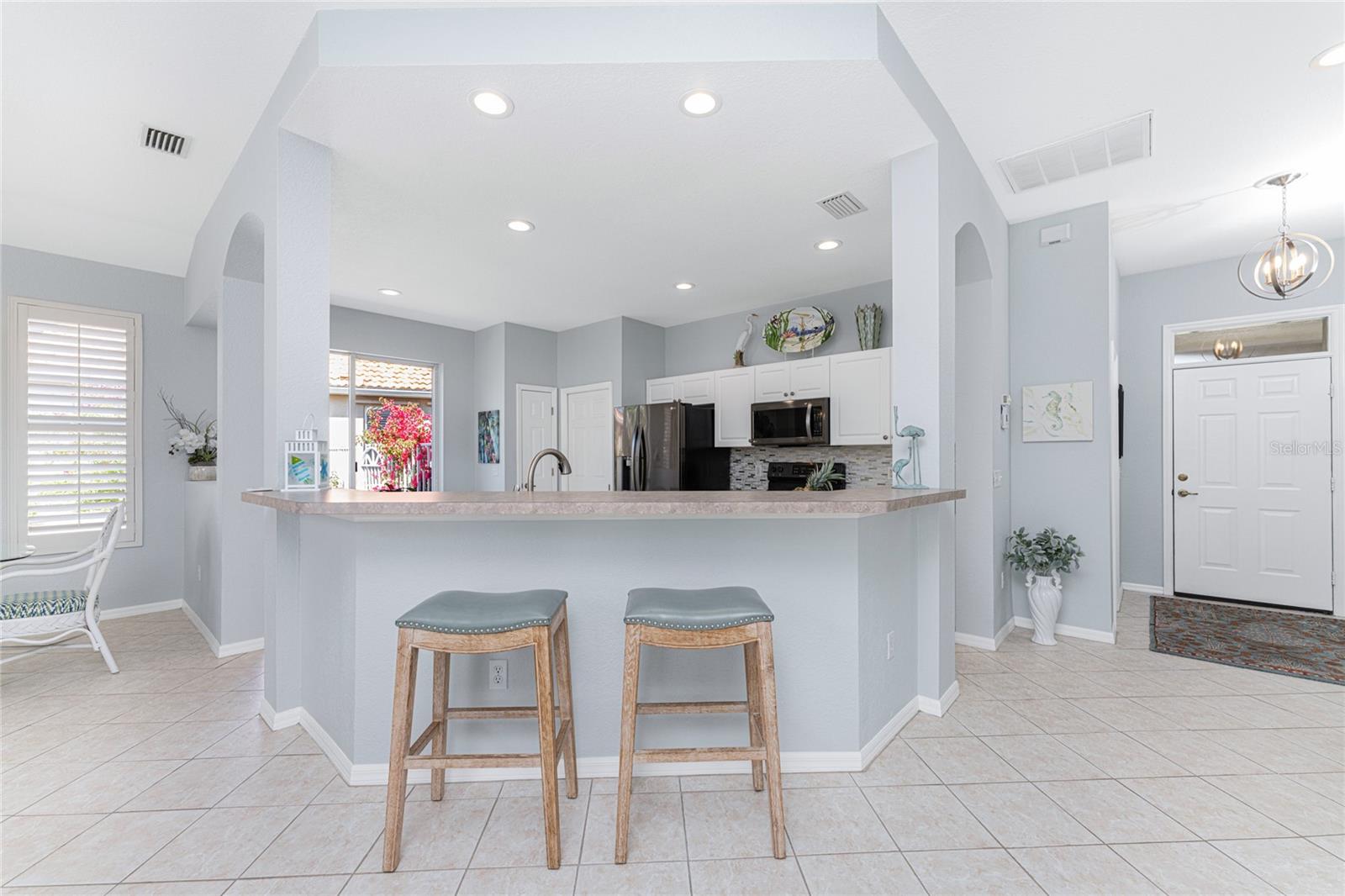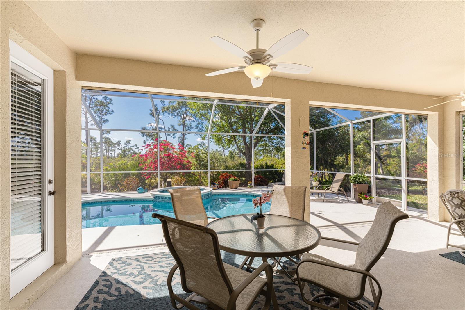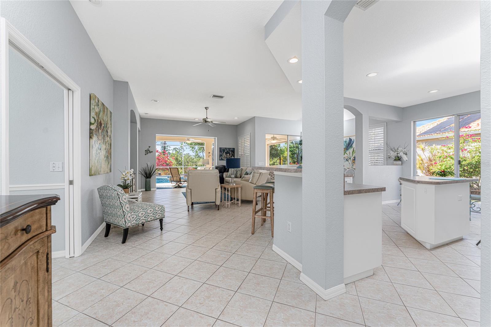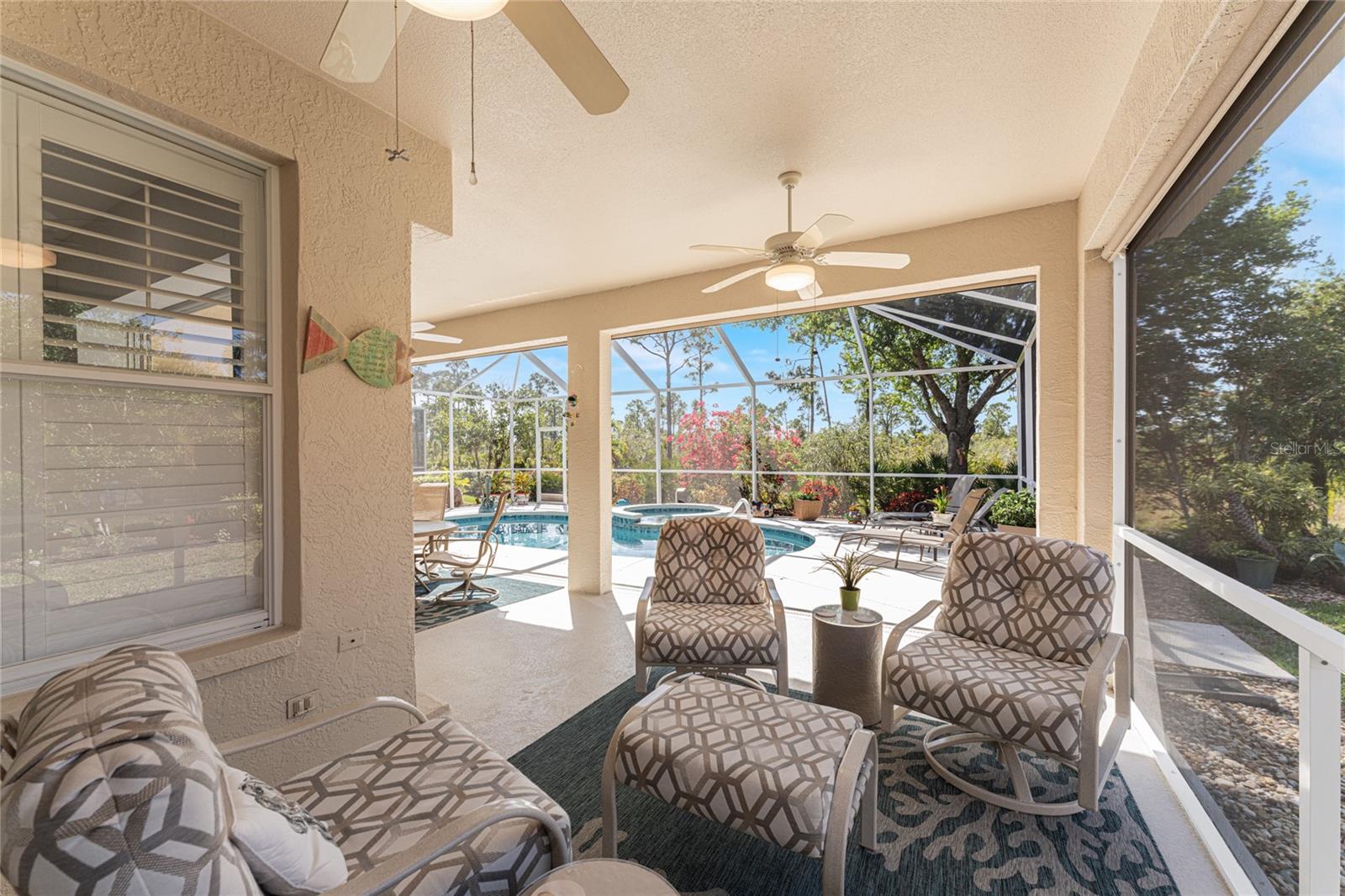 A striking gem with 2022 roof awaits its new discerning owner…nestled against a serene preserve backdrop in Burnt Store Marina. Step into this desirable open Everett floor plan, where glorious sunshine accentuates the soothing paint tones, neutral diamond-set tile, and plantation shutters in this tasteful turnkey furnished three bedroom residence. As you enter, style and sophistication abounds with a seamless flow of space filled with natural light filtering through three sets of sliding doors and windows. The incredible outdoor living area will effortlessly beckon you to step into a lush paradise where a newly resurfaced pool heated and spa awaits (with newer mechanicals). Savor the impressive views of the tranquil preserve beyond as you unwind in your private oasis, soaking in the serenity of nature. Indulge in the art of entertaining in the heart of the home - the large open kitchen. Adorned with LG black stainless steel appliances, an expansive breakfast bar, and custom pull-outs in both the cabinets and pantry, this culinary haven is as functional as it is stylish. The ample surface space is accentuated by a modern tile backsplash, which adds a touch of contemporary flair. Be sure to check out the handy coffee station hidden in the built in pantry in the utility room. Relax and unwind in the primary suite, where a spacious bedroom and walk-in closet meet the remodeled bathroom - complete with an expansive, tiled walk-in shower with built-in bench, and a comfort height vanity with dual sinks. The second guest room, with its versatile design, can effortlessly transform into a private suite, thanks to the addition of a pocket door that discreetly closes off the guest wing. The guest bathroom, tastefully remodeled to include a frameless walk-in shower finished with modern tiles, epitomizes the fusion of form and function. Additionally, enjoy peace of mind knowing that the home boasts a newer roof, and motorized hurricane screens. The attached two car garage with Miami-Dade rated door provides plenty of space for toys and golf cart parking. Just a short walk or bike ride away awaits the south marina basin, with Cass Cay waterfront restaurant, ship’s store, plus tennis, fitness, and pickleball right around the corner. Residents also have access to a 27 hole executive golf course, social club, and Linkside Cafe at the Burnt Store Marina Country Club. Come and enjoy the vibrant lifestyle you’ve been dreaming of in this charming home!