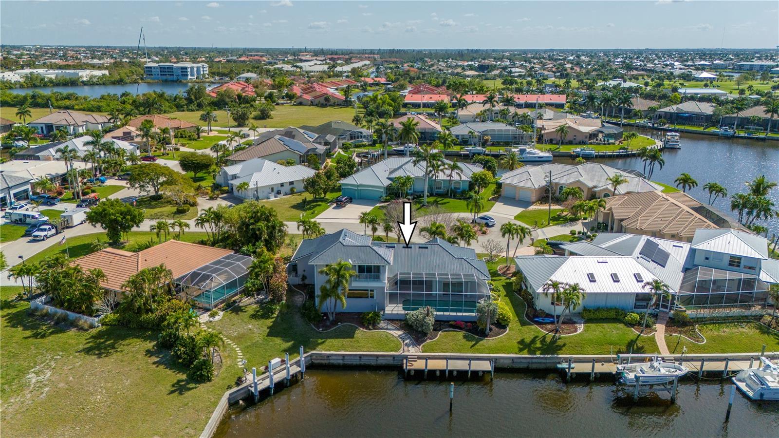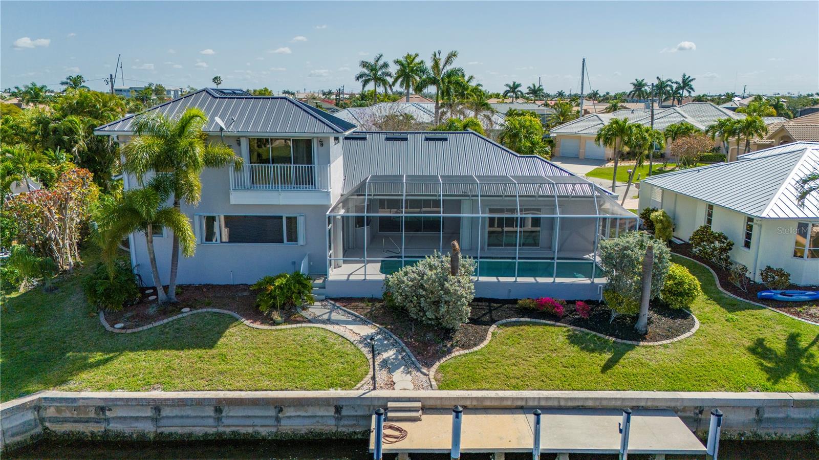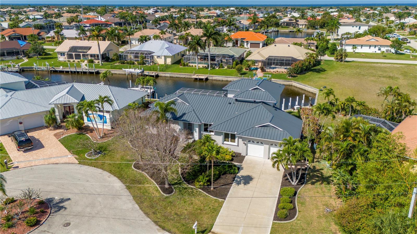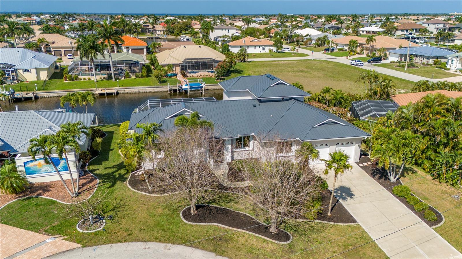 One or more photo(s) has been virtually staged. **ONE OF THE LOWEST PRICED PER SQ FT WATERFRONT POOL HOMES IN PGI**New Kynar Metal Roof, New AC, New gutters, facia and soffits, New Pool pump, Freshly painted inside and out, new carpeting. House has been repiped, New Hot waters heaters and newly screened lanai. All the work has been done. Extremely well maintained home is awaiting its new Owner. Come relax and enjoy this stunning waterfront home with 3 bedrooms and 2 1/2 baths. 2,987 sqft home priced UNDER 293.00/sqft. !! Features an Open floor plan with Living rm, family rm, kitchen and dining rm with Windows and sliders across the rear of the home with gorgeous views of the water, lets plenty of sunshine in throughout the house. Spacious primary bedroom on 1st floor with sliders to lanai, very generous sized his and hers walk in closets with 2 full size vanities & jetted bath. Both Guest bedrooms have plenty of closet space one even features a balcony overlooking the canal, also the second floor has a separate AC and Hot Water Heater. Laundry room with New LG washer. Pantry closet, Full hurricane protection. Sparkling 12x 32ft heated pool. 2 car garage clean as a whistle for your cars w/ plenty of height for extra storage. This home also offers a VERY RARE air conditioned BONUS/STORAGE room which can store all your toys ; (jet skis, bikes, motorcycles, kayaks, boating equipment etc) or convert to a 3rd garage, the ultimate man cave, 4th bedroom, in home office or workshop. The possibilities are endless! 30 ft Concrete Dock with electric and water, Quick 10 -15 min to Charlotte Harbor, Sailboat access NO bridges to Harbor. Home is located in Punta Gorda Isles on a very quiet cul de sac of only 5 houses! Conveniently located to downtown shopping and restaurants. Start living the dream and schedule your showing today.