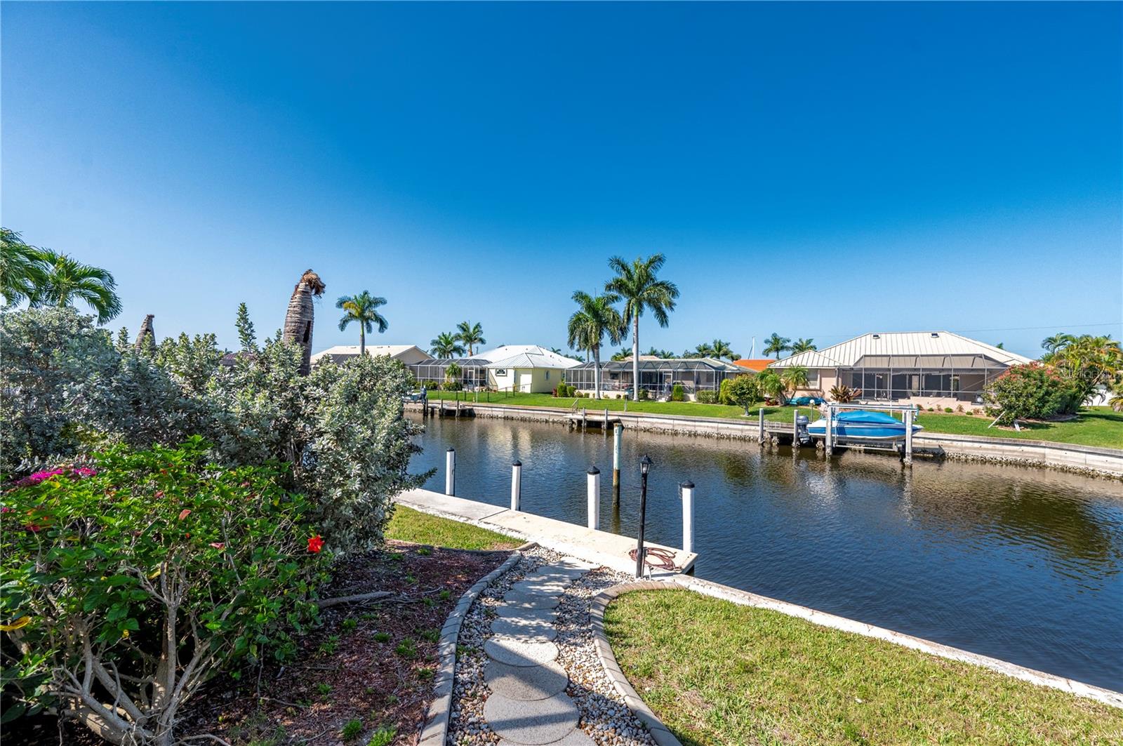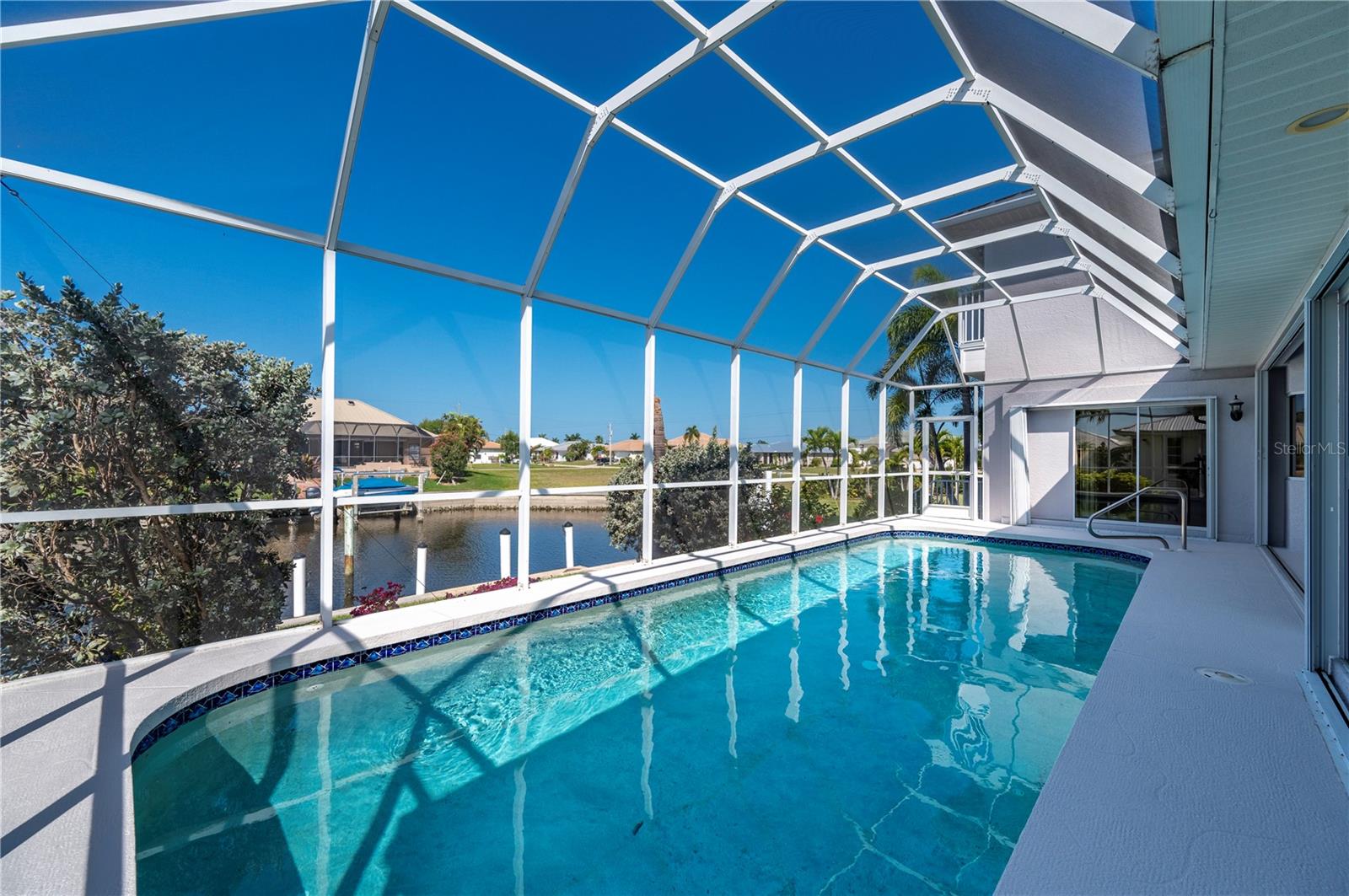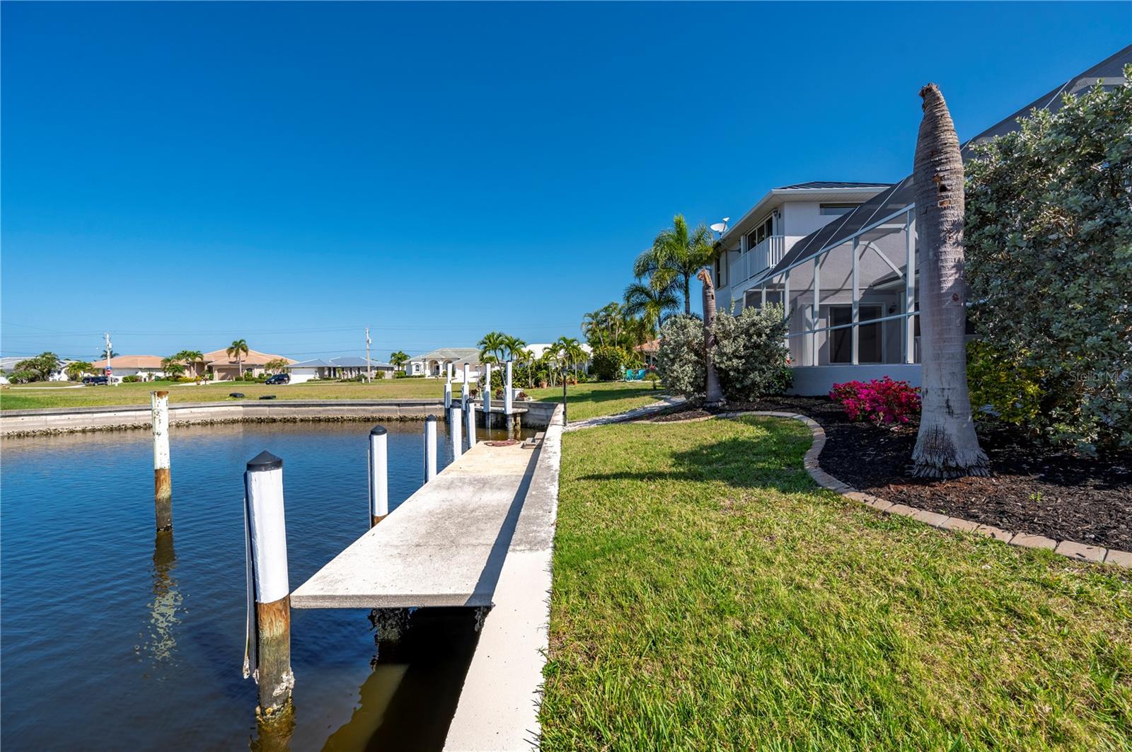 One or more photo(s) has been virtually staged. **ONE OF THE LOWEST PRICED PER SQ FT WATERFRONT POOL HOMES IN PGI**New Kynar Metal Roof, New AC, New gutters, facia and soffits, New Pool pump, Freshly painted inside and out, new carpeting. House has been repiped, New Hot waters heaters and newly screened lanai. All the work has been done. Extremely well maintained home is awaiting its new Owner. Come relax and enjoy this stunning waterfront home with 3 bedrooms and 2 1/2 baths. 2,987 sqft home priced UNDER 293.00/sqft. !! Features an Open floor plan with Living rm, family rm, kitchen and dining rm with Windows and sliders across the rear of the home with gorgeous views of the water, lets plenty of sunshine in throughout the house. Spacious primary bedroom on 1st floor with sliders to lanai, very generous sized his and hers walk in closets with 2 full size vanities & jetted bath. Both Guest bedrooms have plenty of closet space one even features a balcony overlooking the canal, also the second floor has a separate AC and Hot Water Heater. Laundry room with New LG washer. Pantry closet, Full hurricane protection. Sparkling 12x 32ft heated pool. 2 car garage clean as a whistle for your cars w/ plenty of height for extra storage. This home also offers a VERY RARE air conditioned BONUS/STORAGE room which can store all your toys ; (jet skis, bikes, motorcycles, kayaks, boating equipment etc) or convert to a 3rd garage, the ultimate man cave, 4th bedroom, in home office or workshop. The possibilities are endless! 30 ft Concrete Dock with electric and water, Quick 10 -15 min to Charlotte Harbor, Sailboat access NO bridges to Harbor. Home is located in Punta Gorda Isles on a very quiet cul de sac of only 5 houses! Conveniently located to downtown shopping and restaurants. Start living the dream and schedule your showing today.
