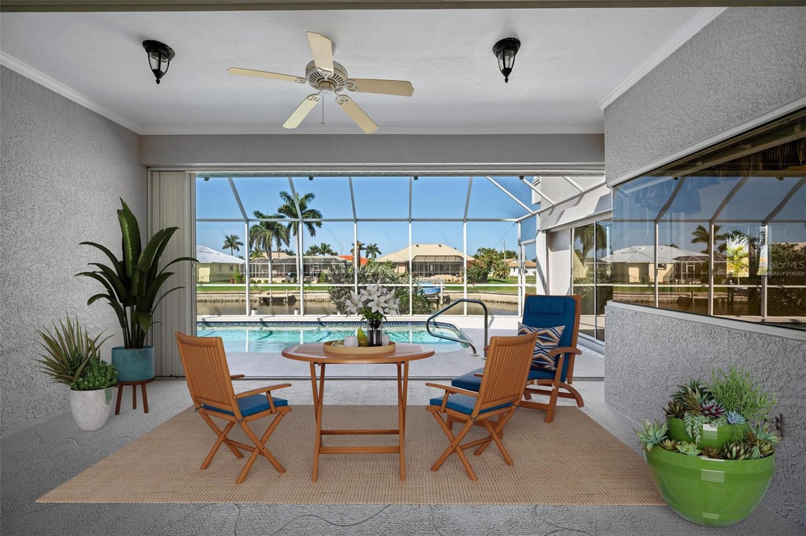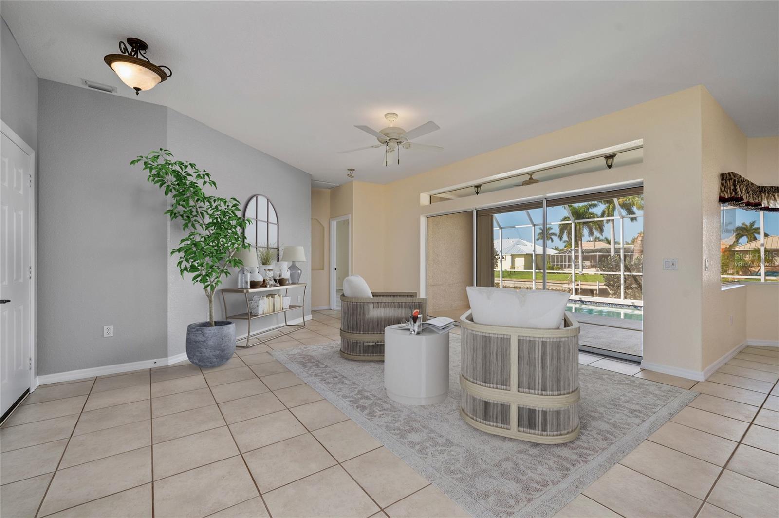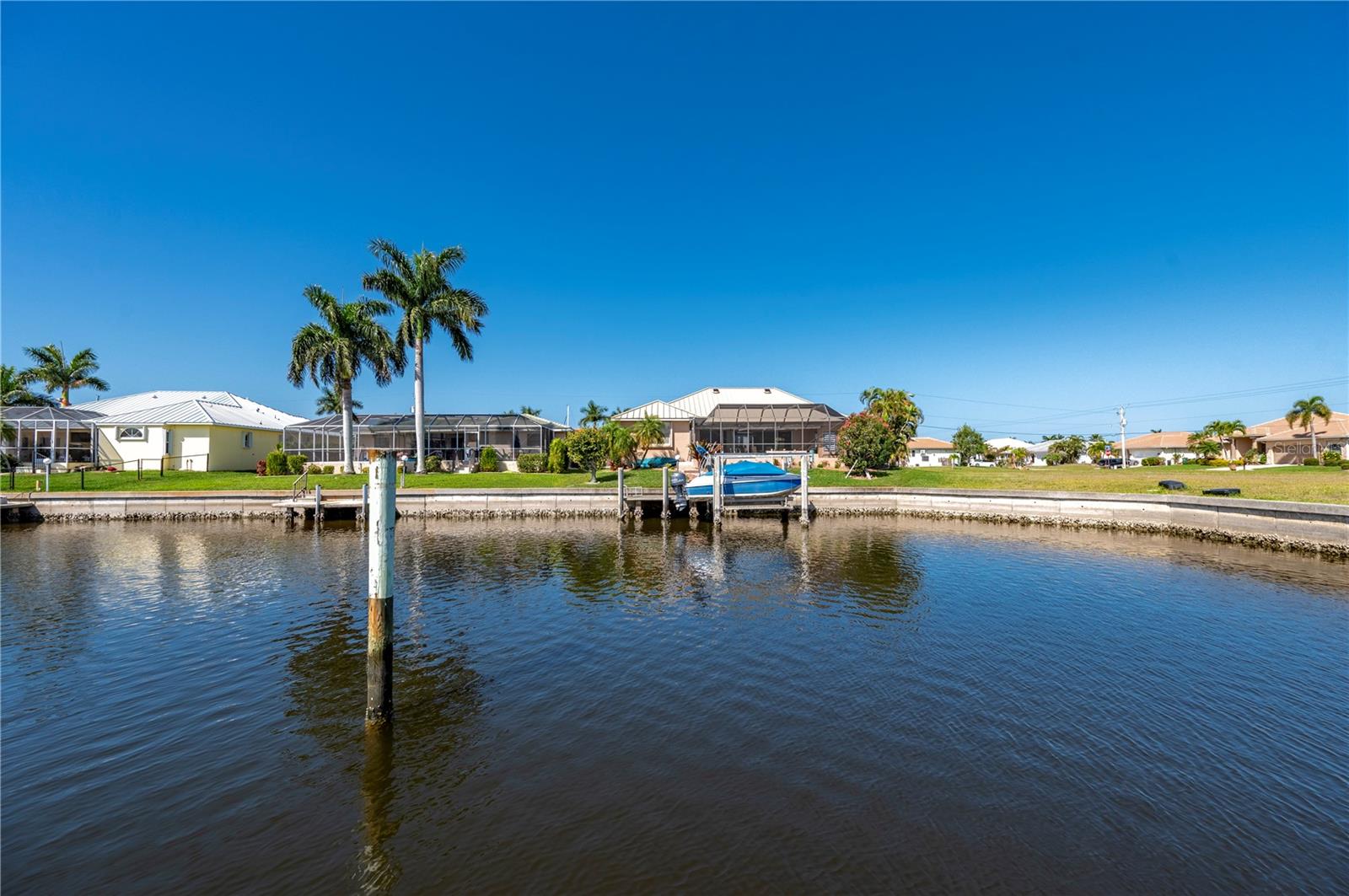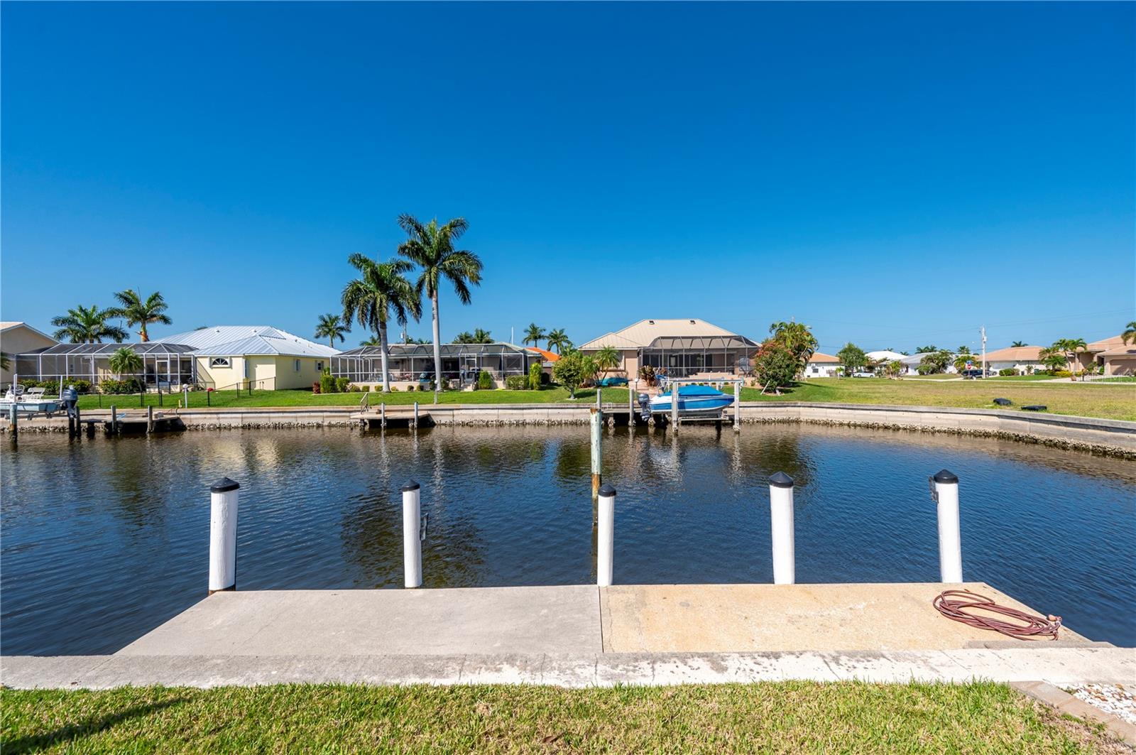 One or more photo(s) has been virtually staged. **ONE OF THE LOWEST PRICED PER SQ FT WATERFRONT POOL HOMES IN PGI**New Kynar Metal Roof, New AC, New gutters, facia and soffits, New Pool pump, Freshly painted inside and out, new carpeting. House has been repiped, New Hot waters heaters and newly screened lanai. All the work has been done. Extremely well maintained home is awaiting its new Owner. Come relax and enjoy this stunning waterfront home with 3 bedrooms and 2 1/2 baths. 2,987 sqft home priced UNDER 293.00/sqft. !! Features an Open floor plan with Living rm, family rm, kitchen and dining rm with Windows and sliders across the rear of the home with gorgeous views of the water, lets plenty of sunshine in throughout the house. Spacious primary bedroom on 1st floor with sliders to lanai, very generous sized his and hers walk in closets with 2 full size vanities & jetted bath. Both Guest bedrooms have plenty of closet space one even features a balcony overlooking the canal, also the second floor has a separate AC and Hot Water Heater. Laundry room with New LG washer. Pantry closet, Full hurricane protection. Sparkling 12x 32ft heated pool. 2 car garage clean as a whistle for your cars w/ plenty of height for extra storage. This home also offers a VERY RARE air conditioned BONUS/STORAGE room which can store all your toys ; (jet skis, bikes, motorcycles, kayaks, boating equipment etc) or convert to a 3rd garage, the ultimate man cave, 4th bedroom, in home office or workshop. The possibilities are endless! 30 ft Concrete Dock with electric and water, Quick 10 -15 min to Charlotte Harbor, Sailboat access NO bridges to Harbor. Home is located in Punta Gorda Isles on a very quiet cul de sac of only 5 houses! Conveniently located to downtown shopping and restaurants. Start living the dream and schedule your showing today.