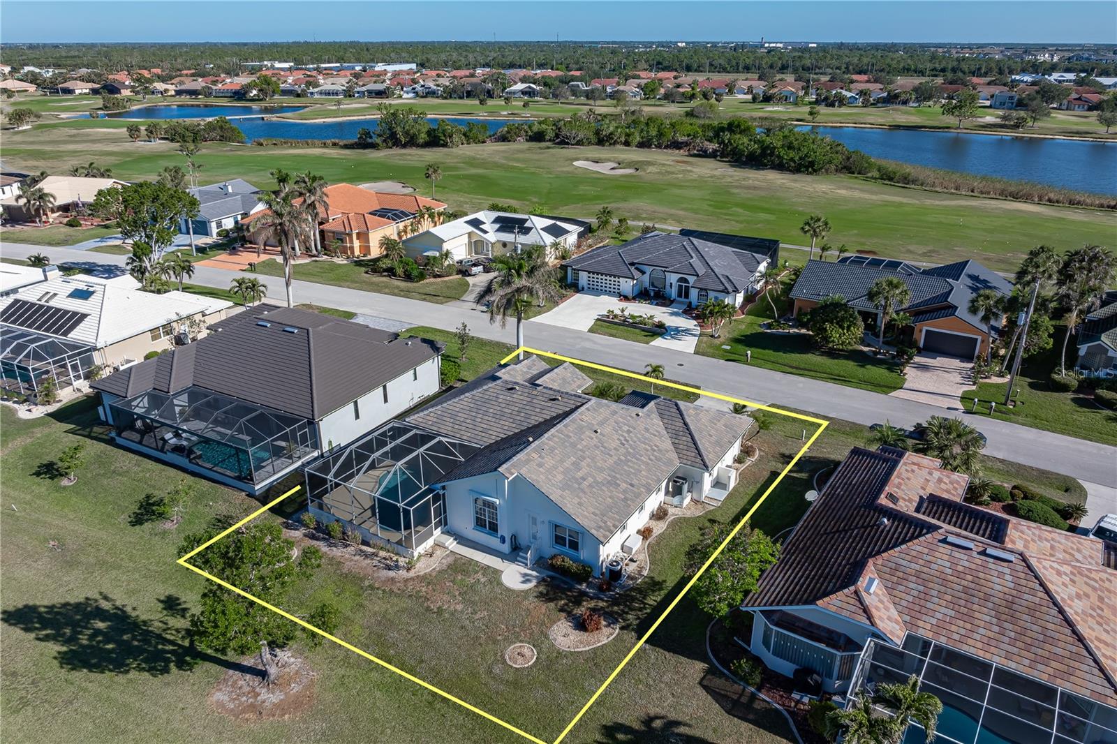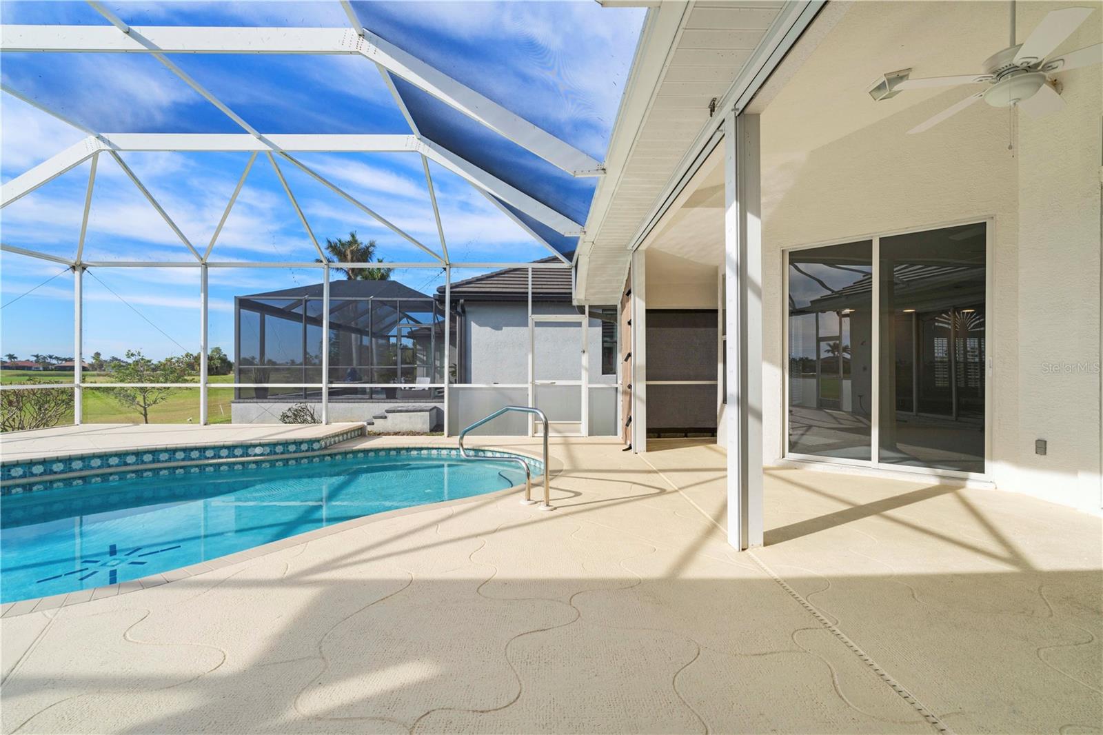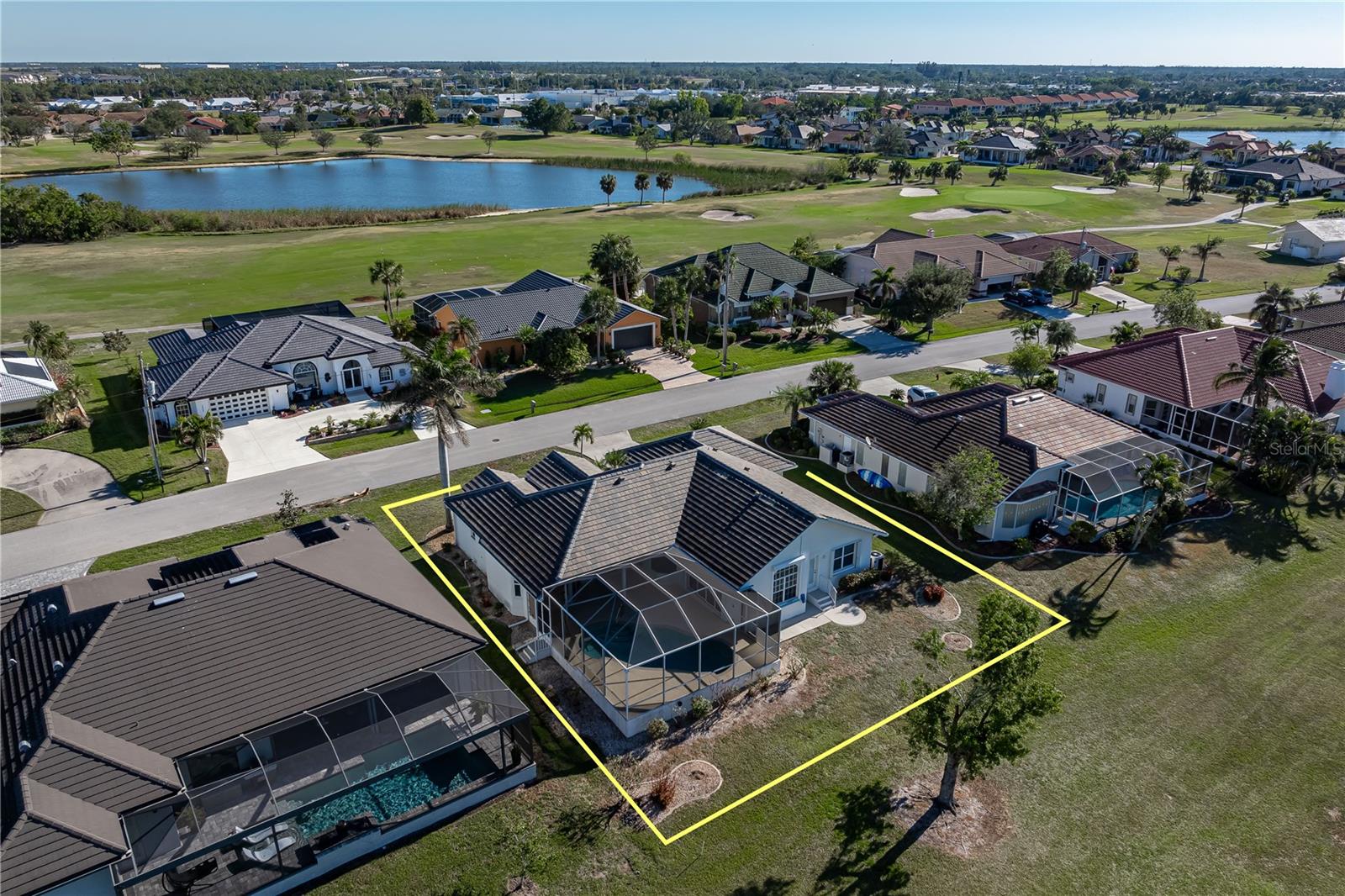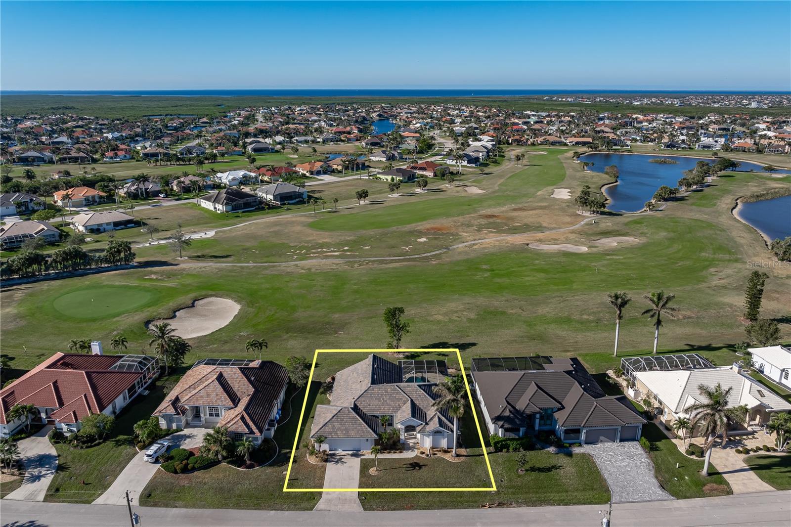 BURNT STORE ISLES POOL HOME W/**NEW ROOF** & AWESOME GOLF COURSE VIEWS Beautiful, 3 bed/2 bath home in BSI w/spectacular views of the 13th fairway & golf course lake beyond. Step through the double door entry into a spacious, open floor plan that includes a formal living & formal dining room plus a separate family room. Architectural details include tile flooring throughout living room, family room & kitchen, arched doorways, soaring cathedral ceilings, arched transom windows, decorative plant/display shelves, & columns in dining room. The living room boasts sliding glass doors that open to the lanai extending the living space outside. Large kitchen offers a breakfast bar, a built-in recipe desk & ample cabinet/counter space. Kitchen opens to a spacious family room w/sliders leading out to the lanai. The master suite features walk-out access to the lanai, two walk-in closets & a spa-like master bath w/dual sinks, garden tub & separate tiled shower. The split bedroom floor plan offers large guest rooms that share a guest bath. Each guest room boasts a large, walk-in closet. Step onto the lanai & enjoy the added outdoor living space complete w/in-ground, heated pool plus an outdoor shower. Sit back & enjoy watching the golfers pass by behind the home throughout the day. Other amenities include oversized attached, 2-car garage, security system & Kevlar screens + a mix of roll down, panels & accordion shutters for hurricane protection. Well-maintained, tropical landscaping surrounds the home. Burnt Store Isles is a deed-restricted, waterfront & golf community. Twin Isles Country Club is located in the center of the community. Practice your short & long game, brush up on your tennis strokes or simply enjoy the social setting. Burnt Store Marketplace anchors BSI offering a Publix, Home Depot & several other shops & restaurants. Get all our shopping done without leaving the neighborhood! Easy access to US41, I-75 & Burnt Store Rd allow you to reach Ft Myers, Cape Coral & Sarasota effortlessly. Take advantage of the active lifestyle available here in Punta Gorda by enjoying the numerous walking & biking trails as well as the many waterfront parks offering everything from playgrounds to pickle ball courts. Claim your spot in paradise.