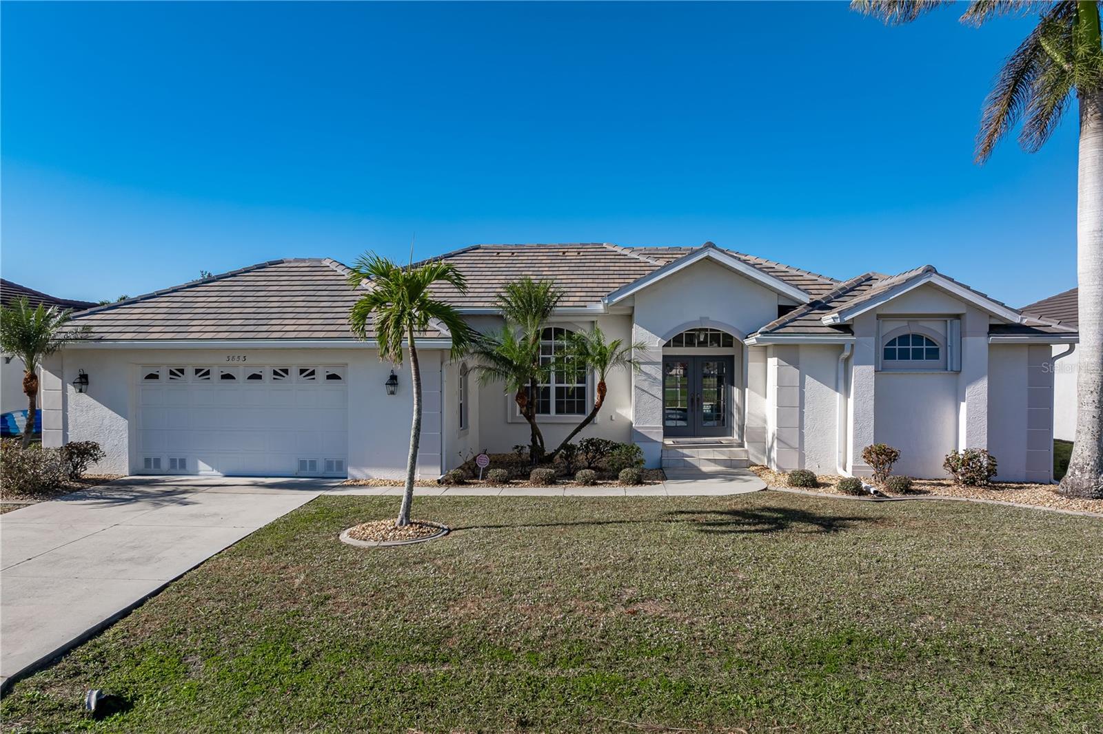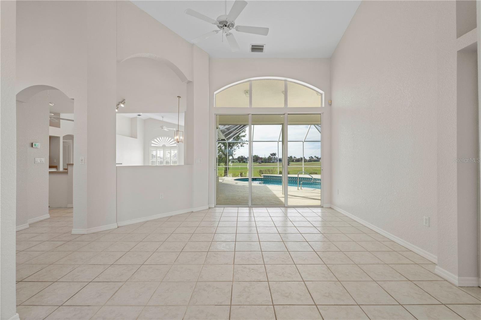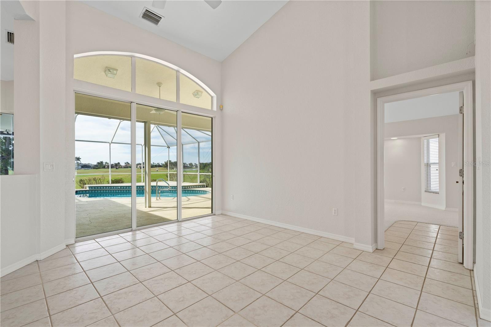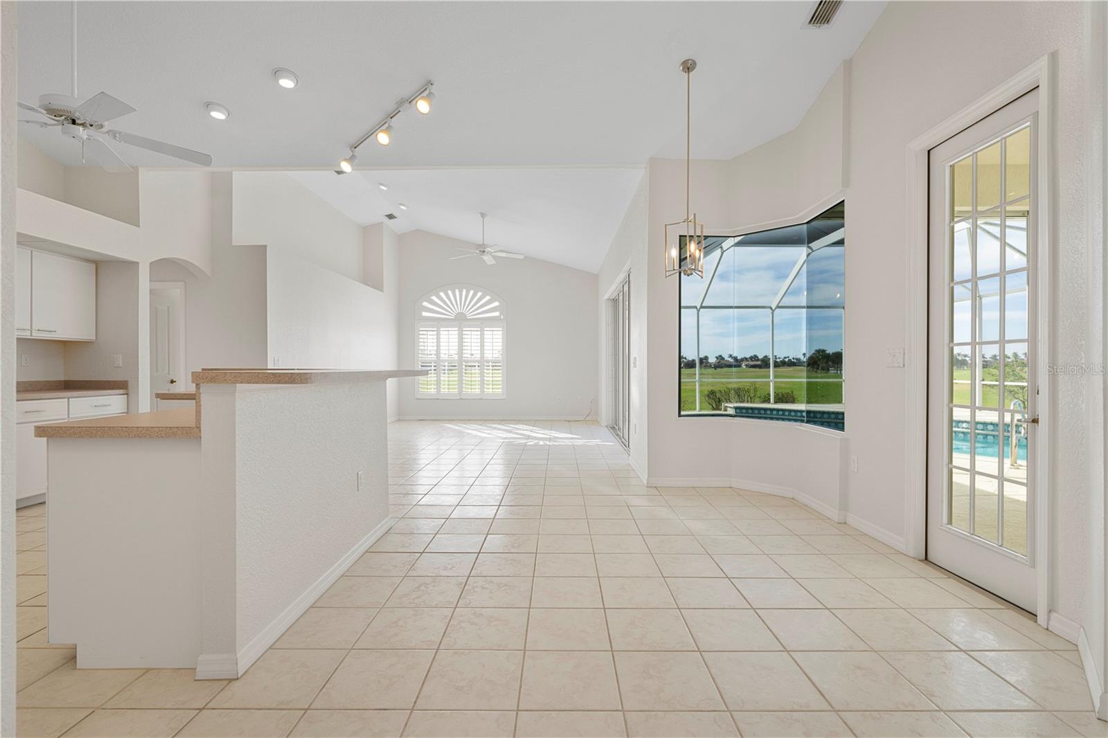 BURNT STORE ISLES POOL HOME W/**NEW ROOF** & AWESOME GOLF COURSE VIEWS Beautiful, 3 bed/2 bath home in BSI w/spectacular views of the 13th fairway & golf course lake beyond. Step through the double door entry into a spacious, open floor plan that includes a formal living & formal dining room plus a separate family room. Architectural details include tile flooring throughout living room, family room & kitchen, arched doorways, soaring cathedral ceilings, arched transom windows, decorative plant/display shelves, & columns in dining room. The living room boasts sliding glass doors that open to the lanai extending the living space outside. Large kitchen offers a breakfast bar, a built-in recipe desk & ample cabinet/counter space. Kitchen opens to a spacious family room w/sliders leading out to the lanai. The master suite features walk-out access to the lanai, two walk-in closets & a spa-like master bath w/dual sinks, garden tub & separate tiled shower. The split bedroom floor plan offers large guest rooms that share a guest bath. Each guest room boasts a large, walk-in closet. Step onto the lanai & enjoy the added outdoor living space complete w/in-ground, heated pool plus an outdoor shower. Sit back & enjoy watching the golfers pass by behind the home throughout the day. Other amenities include oversized attached, 2-car garage, security system & Kevlar screens + a mix of roll down, panels & accordion shutters for hurricane protection. Well-maintained, tropical landscaping surrounds the home. Burnt Store Isles is a deed-restricted, waterfront & golf community. Twin Isles Country Club is located in the center of the community. Practice your short & long game, brush up on your tennis strokes or simply enjoy the social setting. Burnt Store Marketplace anchors BSI offering a Publix, Home Depot & several other shops & restaurants. Get all our shopping done without leaving the neighborhood! Easy access to US41, I-75 & Burnt Store Rd allow you to reach Ft Myers, Cape Coral & Sarasota effortlessly. Take advantage of the active lifestyle available here in Punta Gorda by enjoying the numerous walking & biking trails as well as the many waterfront parks offering everything from playgrounds to pickle ball courts. Claim your spot in paradise.