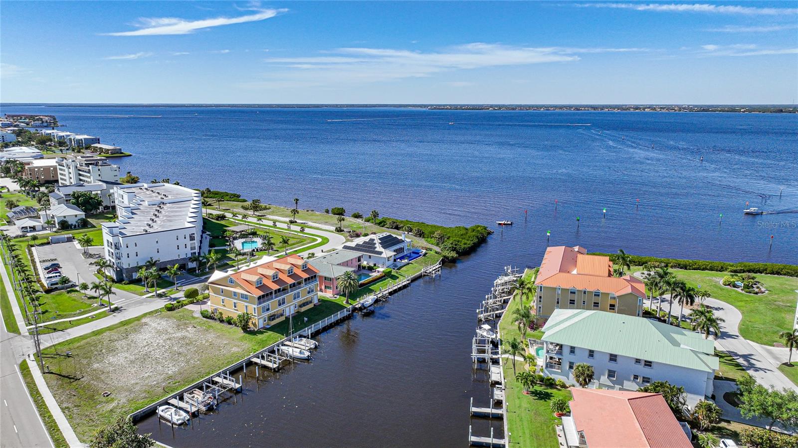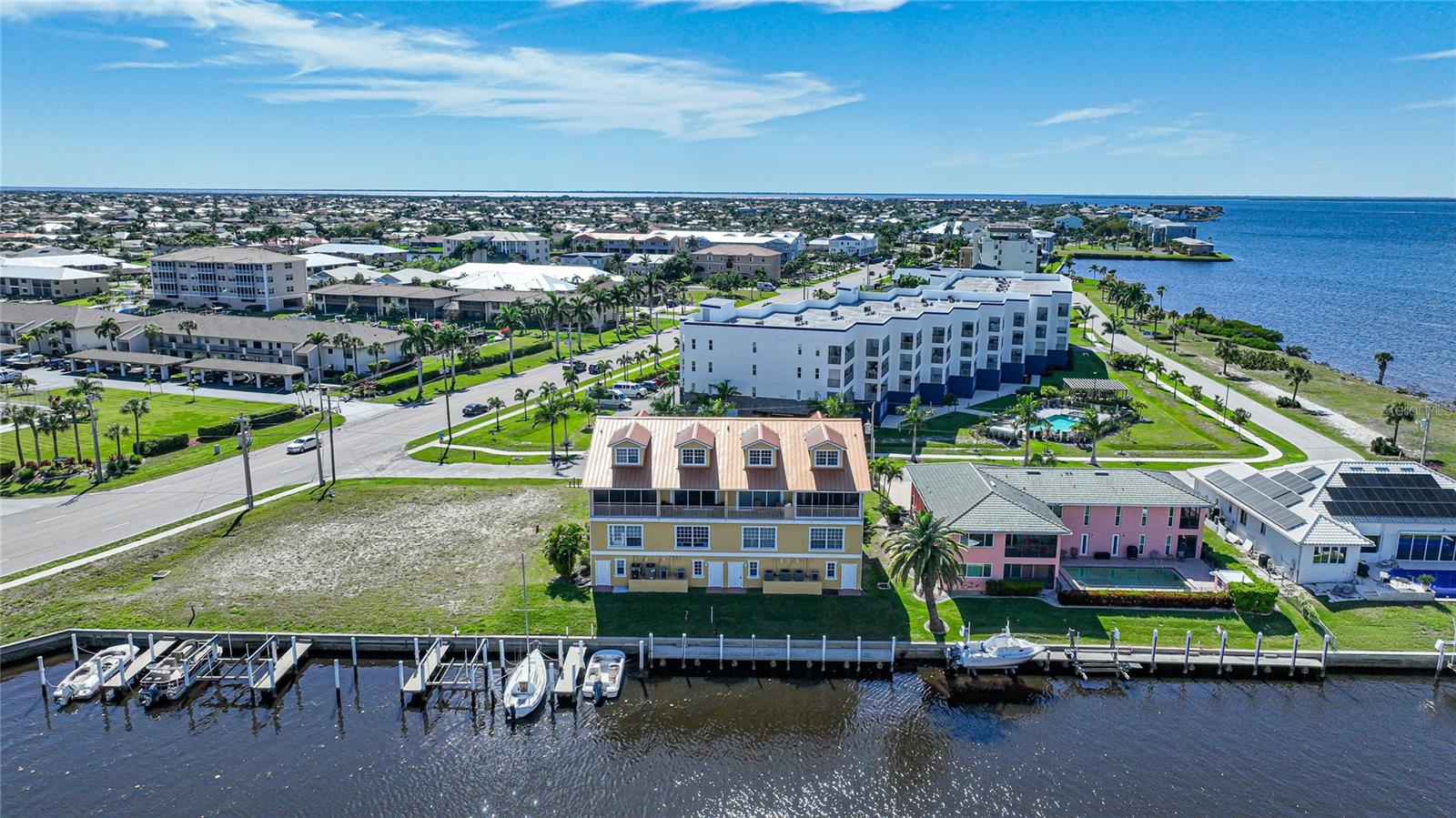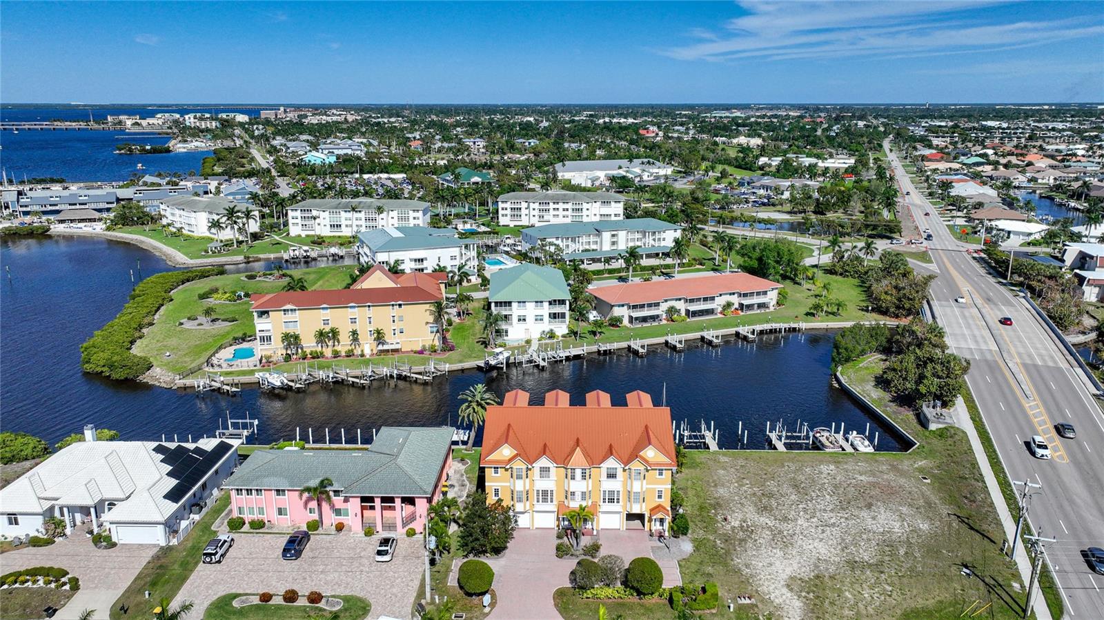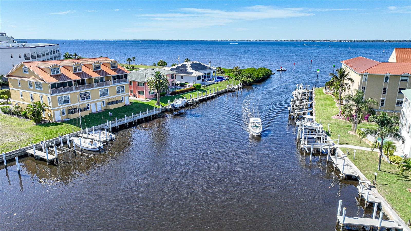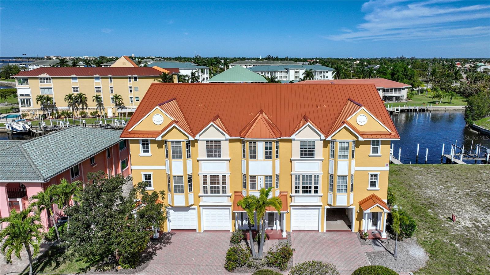 This home had NO HURRICANE DAMAGE from Hurricanes Helene or Milton. The property and flood insurances have been paid through 8/2025! New metal roof in 2023. As mandated by the State of Florida for all condos 3 stories or higher, the SIRS (STRUCTURAL INTEGRITY RESERVE STUDY) has been completed . No structural deficiencies were found and the reserves were rated as strong. Reasonable monthly assessment covers property and flood insurance, management fee and maintenance/reserves for common property. Welcome to a multi-level townhouse with a private elevator, 3 bedrooms, 3 bathrooms, and a 3-car garage in Punta Gorda Isles. A vaulted ceiling in the main living area creates a spacious feel. An upstairs loft, overlooking the main living area, has a water view and provides a versatile space, perfect for an office or reading nook. The kitchen is equipped with stainless steel appliances that include a beverage refrigerator, a cooking island, granite countertops, tile backsplash, and ample cabinet space. Perfect for entertaining, the kitchen seamlessly flows into the dining and living areas, where a large glass slider opens to a balcony overlooking the tranquil canal, ideal for enjoying sunrise vistas. The master bedroom offers a water view, a walk-in closet, and an ensuite bathroom complete with a double sink vanity, jetted soaking tub, floor-to-ceiling tiled shower, and water closet. The two additional guest Bedrooms have views of Charlotte Harbor, as well as ensuite bathrooms. Step outside to your private deeded dock, equipped with a 7,000lb boat lift, electricity, and water. Boat to Charlotte Harbor or the Peace River in minutes or enjoy fishing in one of the best fishing spots in Punta Gorda from the common dock. This exceptional property comes complete with wall mounted TVs in the living room and master bedroom. The 3-car garage boasts impressive depth and is designed to accommodate your vehicles with ease while providing ample storage solutions for your belongings. Conveniently located within biking, walking or short driving distance to local dining, shopping, and entertainment options. Don't miss the chance to own this waterfront gem. Schedule your private tour today and immerse yourself in the epitome of Florida living