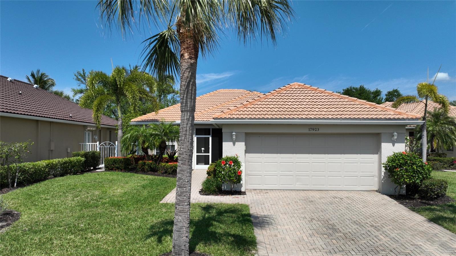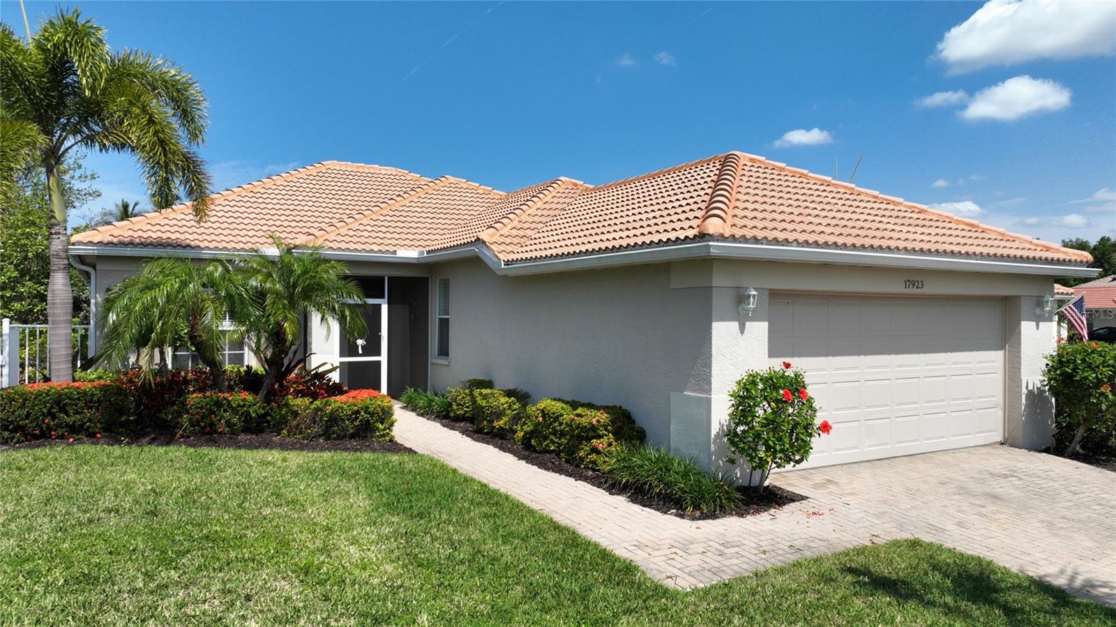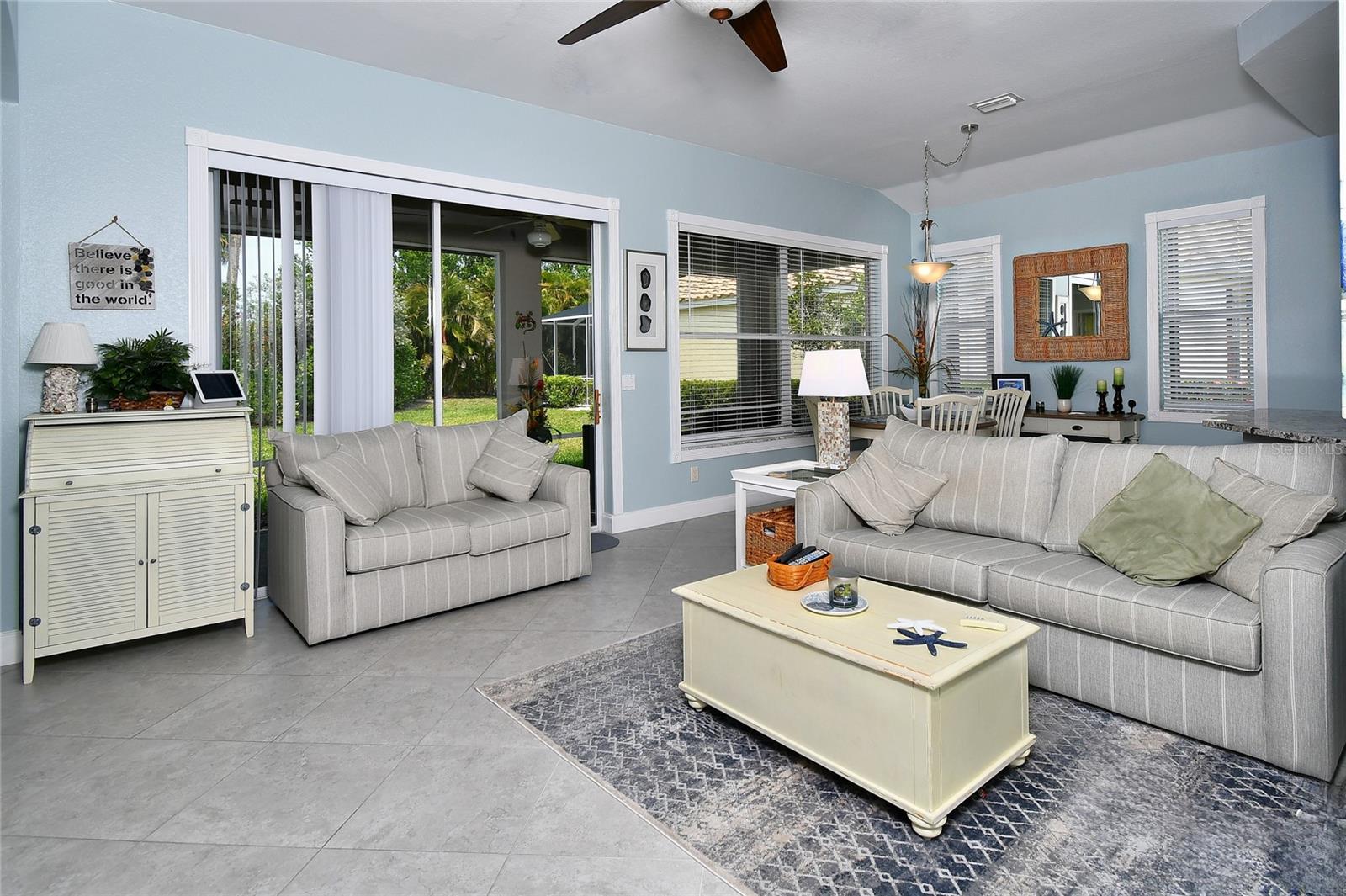 Welcome to desirable Courtside Landings, with convenient walking distance to waterfront dining and the largest Marina in South West Florida. Enter through screened front breezeway and you are inside this pleasant two bedroom, two bath home which boasts an additional room to be utilized as an office, sitting room or a third bedroom (the French doors provide privacy). Interior upgrades consist of raised panel kitchen cabinetry and has been carried in the separate laundry room and garage. Tile flooring throughout majority of home with carpet in the bedrooms. See for yourself how the natural sun shine comes through the side lanai doors and lightens up the entire home... Additional interior updates; storm protection throughout. Community amenities of Burnt Store Marina; 27 hole executive golf course, tennis, pickleball, and fitness. Only a 15 minute ride to Punta Gorda Airport and quaint downtown. Maintenance Free Living at its finest! Have the "newest pool on the block" as there is a Pool Allocation!!!!!!!!