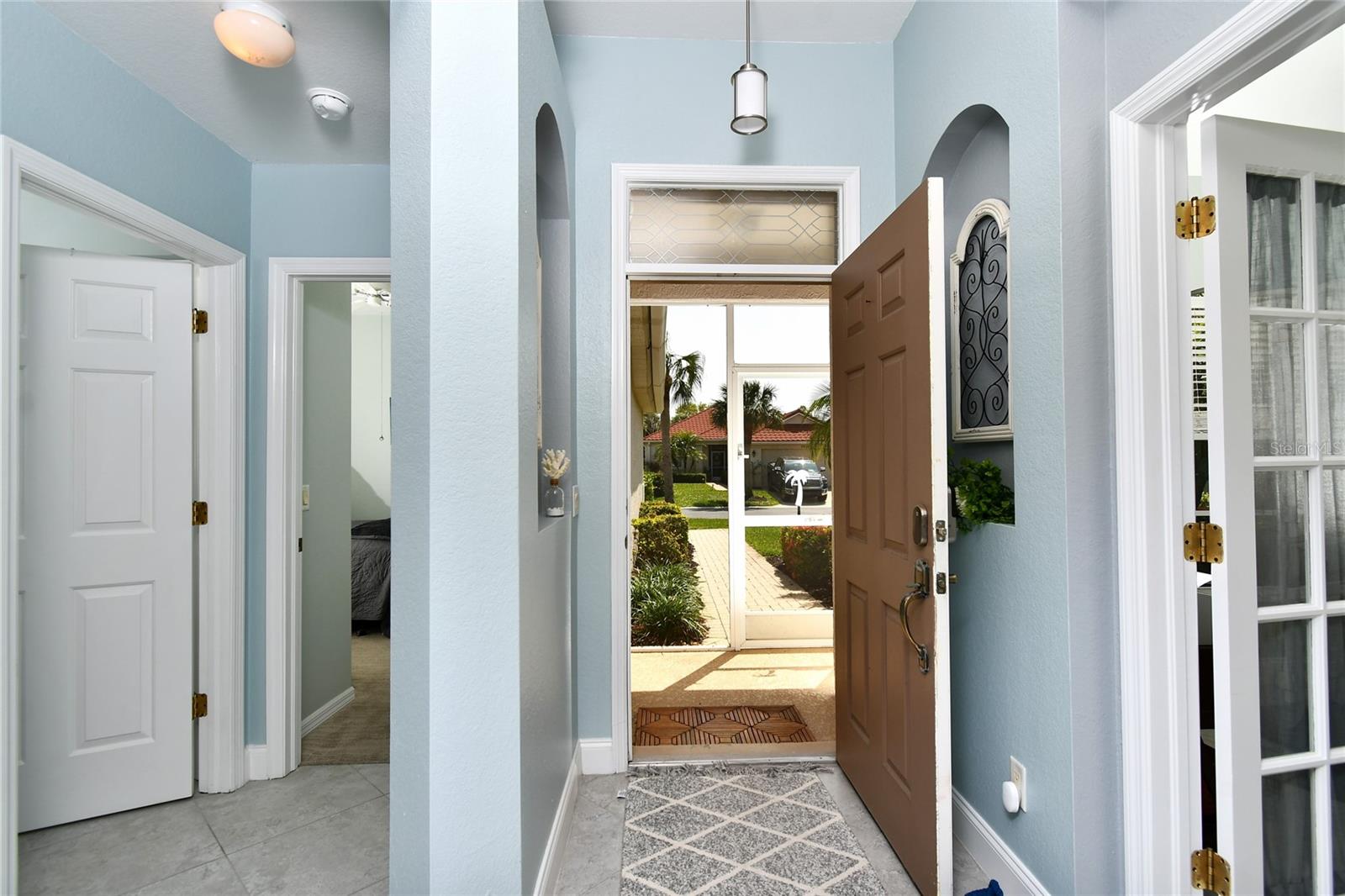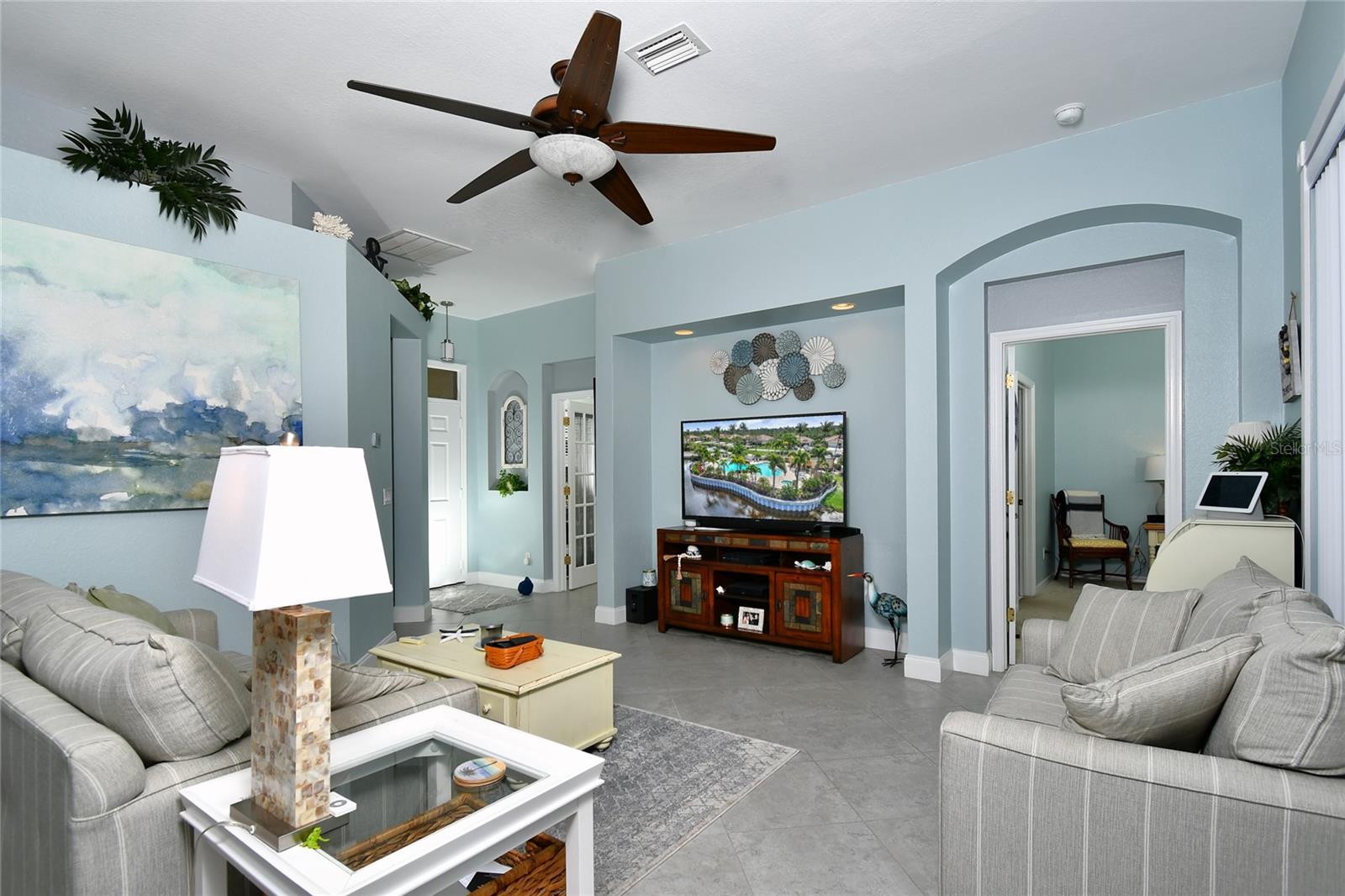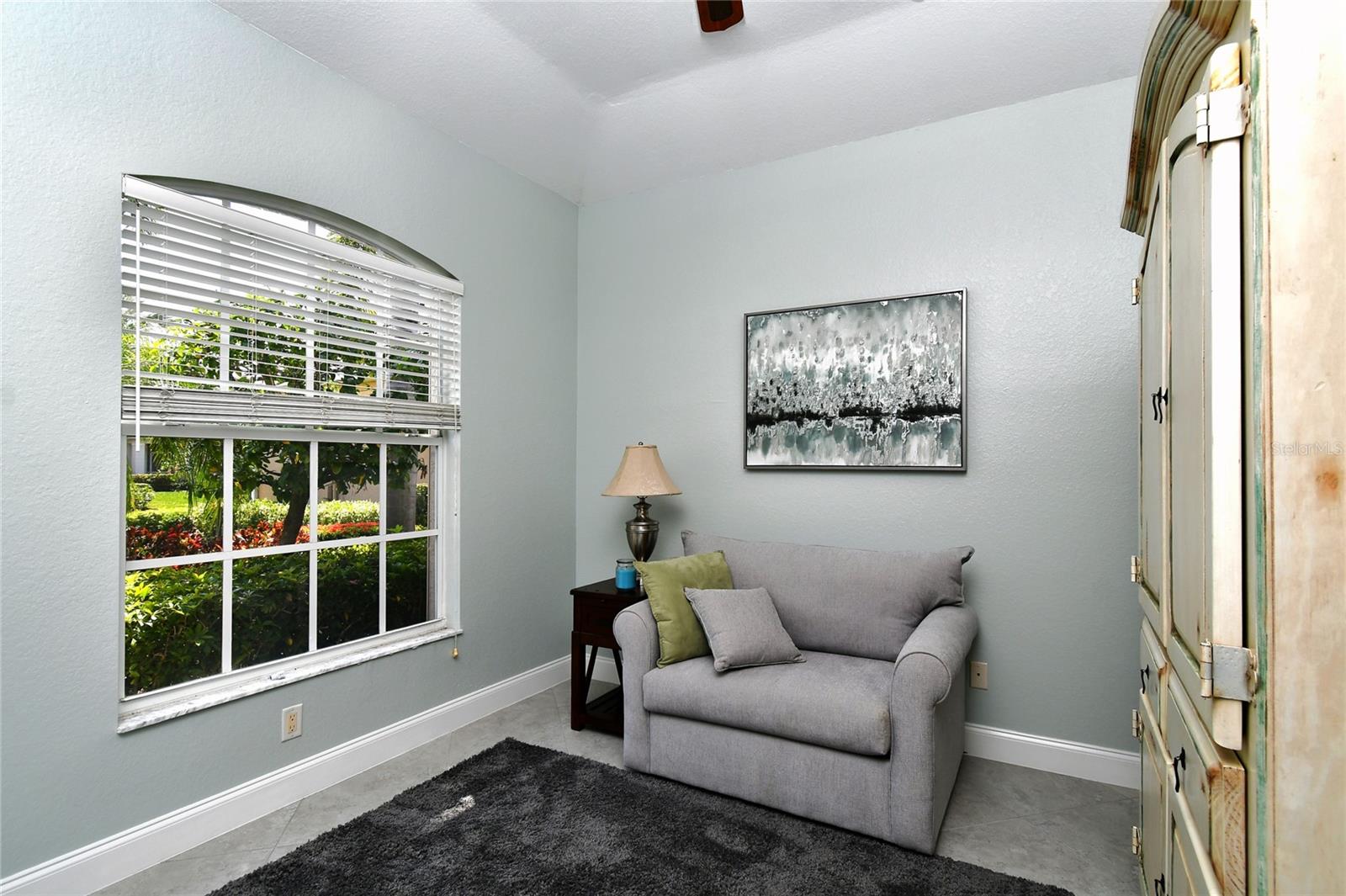 Welcome to desirable Courtside Landings, with convenient walking distance to waterfront dining and the largest Marina in South West Florida. Enter through screened front breezeway and you are inside this pleasant two bedroom, two bath home which boasts an additional room to be utilized as an office, sitting room or a third bedroom (the French doors provide privacy). Interior upgrades consist of raised panel kitchen cabinetry and has been carried in the separate laundry room and garage. Tile flooring throughout majority of home with carpet in the bedrooms. See for yourself how the natural sun shine comes through the side lanai doors and lightens up the entire home... Additional interior updates; storm protection throughout. Community amenities of Burnt Store Marina; 27 hole executive golf course, tennis, pickleball, and fitness. Only a 15 minute ride to Punta Gorda Airport and quaint downtown. Maintenance Free Living at its finest! Have the "newest pool on the block" as there is a Pool Allocation!!!!!!!!
