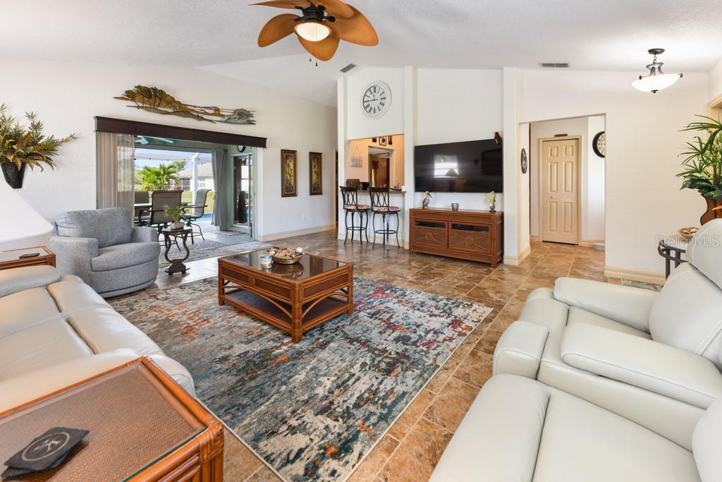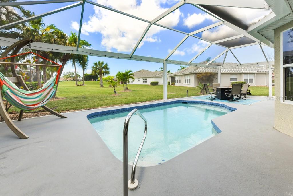 Looking for a home but have to sell one first? You can buy this home with SELLER FINANCING so you have more time to sell yours! Attractive terms. Ask for details! Located in a quiet area of Burnt Store Marina, this home has the features and upgrades you’re looking for! And it’s also in the non-flood zone and does not require flood insurance! If you’re searching for a home with a brand new roof in Feb 24, remodeled kitchen and bathrooms, gorgeous flooring, a huge pool deck for enjoying sunshine and a resurfaced pool for swimming, plus an extra long pavered driveway - this could be it! This Mainsail is a popular floorplan with 2 split bedrooms, 2 baths plus a den/office so you can work from home if desired. The beautifully updated galley kitchen features hardwood cabinets, granite counters, tile backsplash and stainless appliances. Situated in the center of the home it overlooks the spacious great room, the den and a fun bar in the dinette that’s ready for parties! Gorgeous tile flooring covers the main living area and beautiful hardwood flooring in both bedrooms and den with updated 6 inch baseboards throughout. A spacious owner’s suite features large walk-in California designed closet and a completely remodeled ensuite bath with granite counter and dual vanities, walk-in shower and jetted soaking tub. Large windows overlook the pool and provide loads of natural light. The guest bedroom on the opposite side has an adjacent updated bathroom with charming vanity and matching mirror. The private pool area was recently extended for additional outdoor seating and features long views with the golf course in the distance through the stunning new picture window screening on three sides. It’s a gorgeous move-in ready home for seasonal or full time residence. Inside the gates of the largest private Marina on Florida's Gulf coast, you'll have plenty of activities to keep you busy and loads of opportunities to make new friends around the golf course, while dining at the three onsite restaurants, enjoying world-class boating and fishing in Charlotte Harbor and the Gulf or playing tennis and pickleball at the Fitness center. Don't wait another day for the lifestyle you deserve in a home that needs only you!