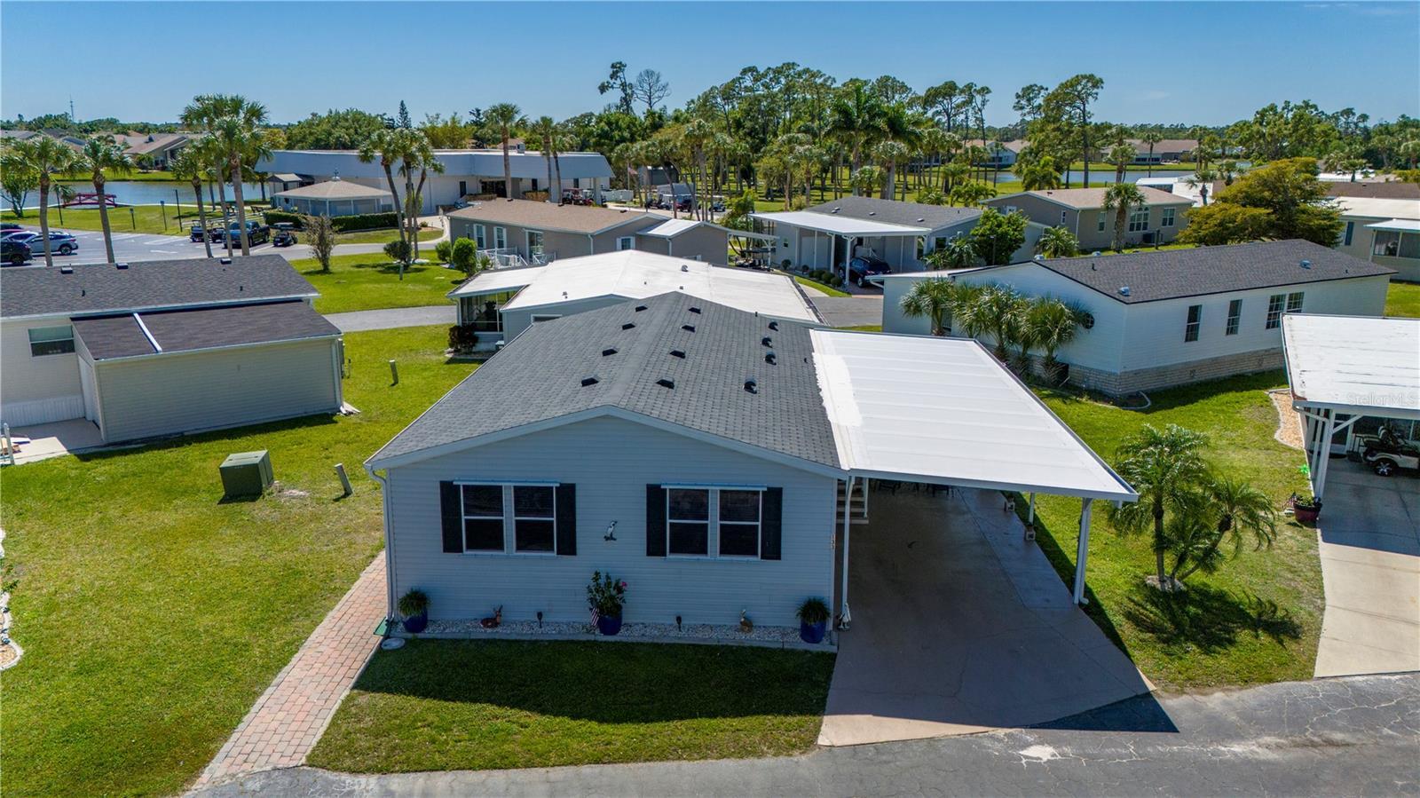 Welcome to this delightful 2-bedroom, 2-bathroom home, perfectly situated in a serene 55+ community with an exceptionally LOW HOA. This charming residence offers both convenience and functionality, featuring an oversized covered carport and a large attached shed for additional storage. Enjoy peace of mind with a newly installed roof in 2023. Step inside to discover a generously sized kitchen, ideal for your culinary endeavors. The inviting living room provides ample space for entertaining guests or simply relaxing in comfort. Both bedrooms are spacious and boast large walk-in closets, offering plenty of storage. The home's tinted windows not only enhance privacy but also help keep the interior cool, adding to your comfort during the warm Florida summers. Located close to shopping, elite golf courses, entertainment, dining, and the stunning blue Florida beaches, this community offers everything you need for an active and enjoyable lifestyle. Don't miss out on the opportunity to make this wonderful home yours!