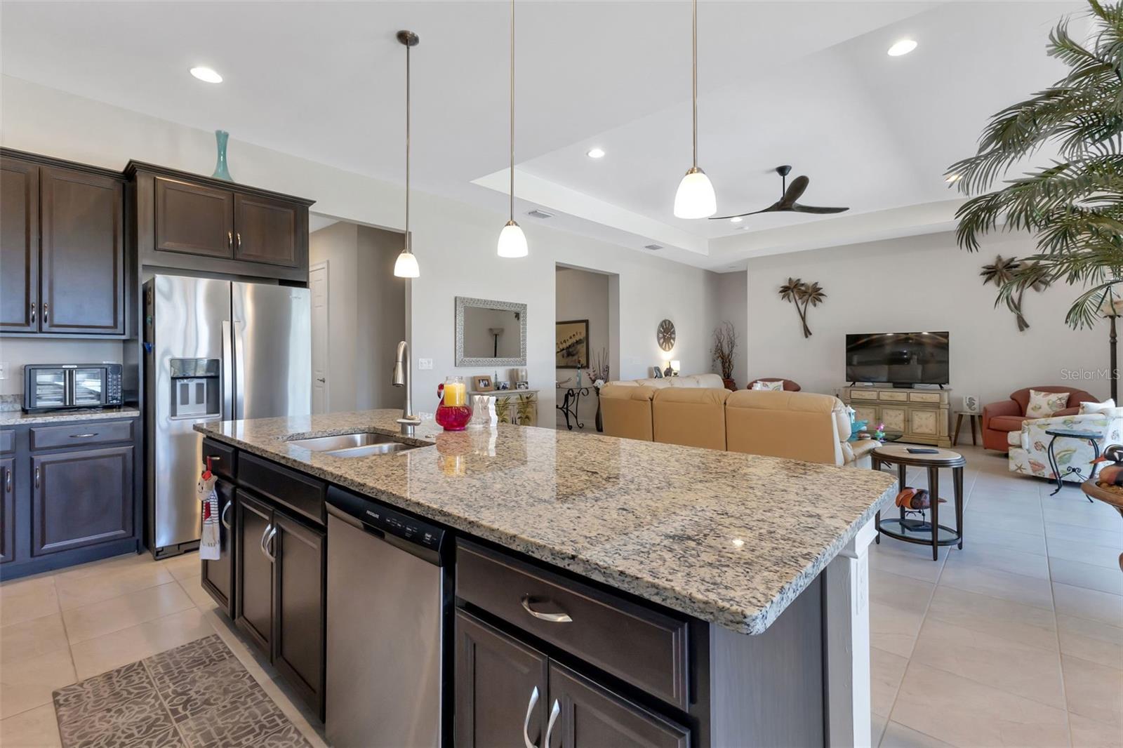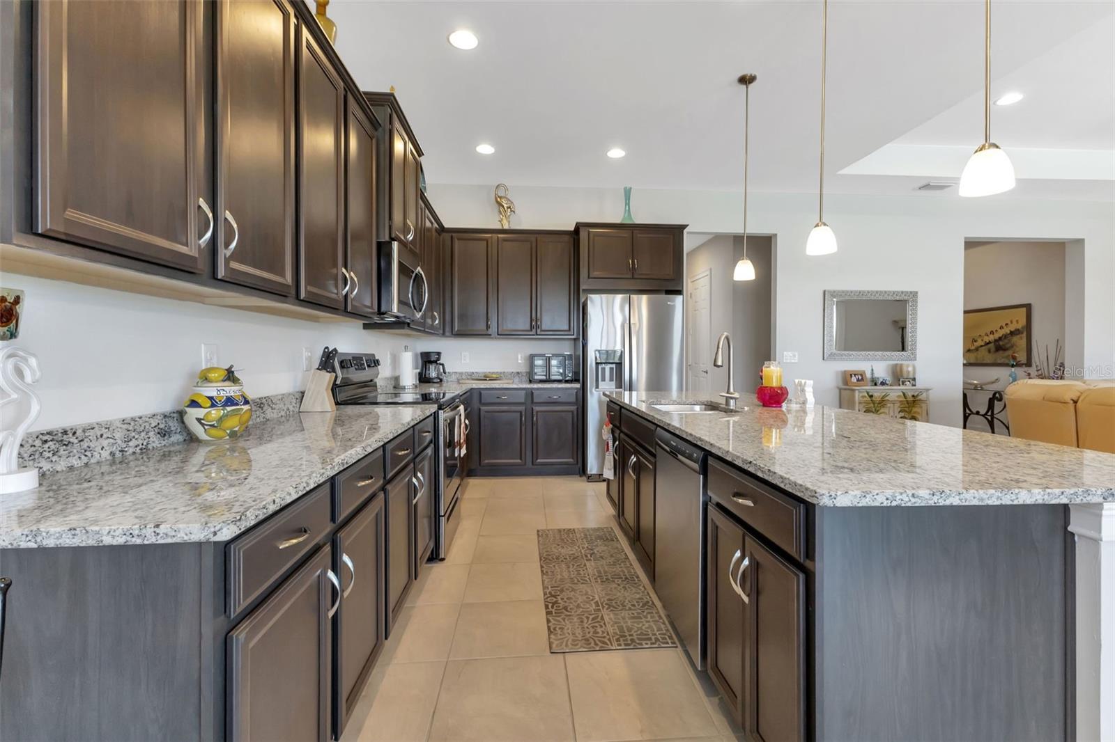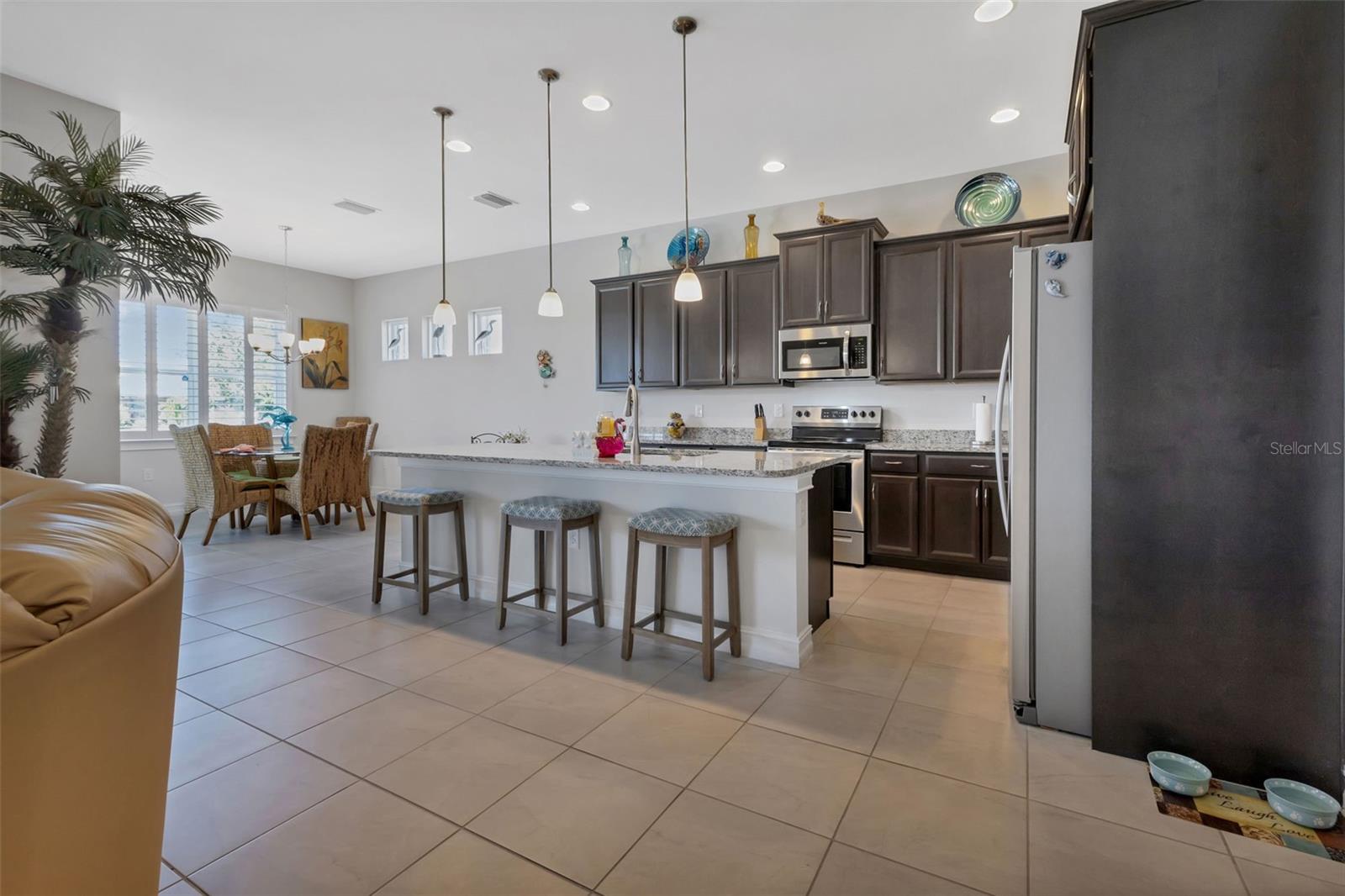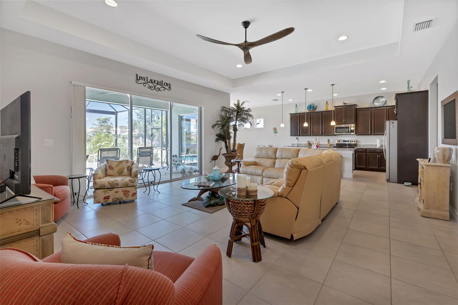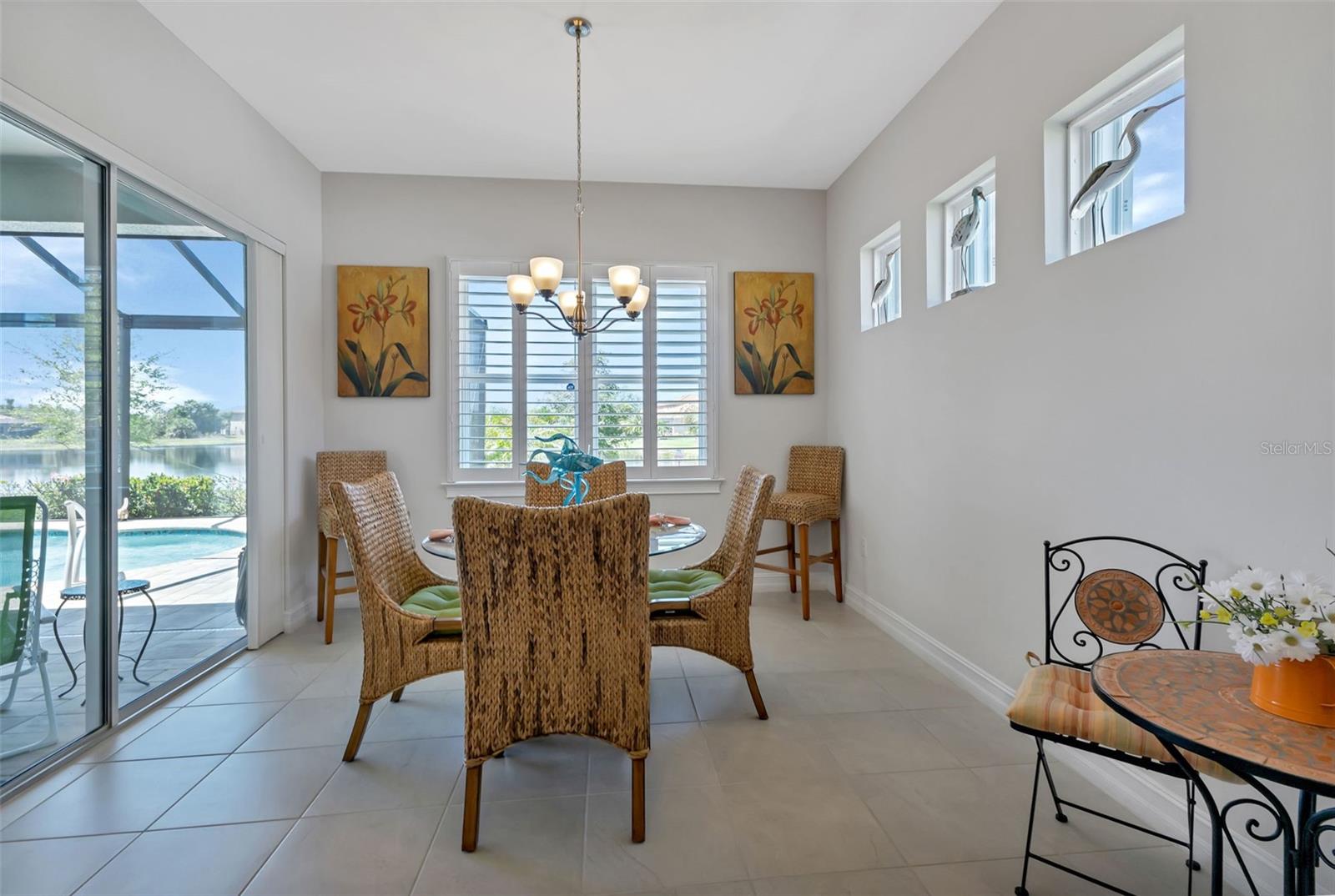 PICTURE PERFECT, adorable spacious 3BR, 2 full bath ranch home with POOL. AMAZING sunsets directly overlooking pool and wide lake, gorgeous views of birds, wildfowl, cranes, flamingo, heron, and more in the desirable gated community of RIVER CLUB SOUTH! MASSIVE lanai pool cage envelopes crystal clear saltwater kidney shape pool and surrounded by concrete pavers and that lake view. Three remote controlled Storm Smart remote hurricane shades in rear and side of home is for sun shade, hurricane/storm protection & added security. With Storm Smart shades all the way down - the lanai is separated into two sections - the covered part of the lanai and the pool part of the lanai. House is being sold TURNKEY with a few exceptions. Front entrance is remote Storm Smart Hurricane shade for added storm protection with hurricane shutters for the other windows. Open Floor Plan in LR, DR, Kitchen with high ceilings and unobstructed pool and lake views. Photo's don't do the view justice - come and see and experience it for yourself. Granite countertops in Large Kitchen with plenty of cabinets, stainless steel appliances. Two oversized pantries off the kitchen hallway and large laundry room with heavy duty washer & dryer and laundry tub lead you in to the garage. Additional overhead storage in large 2 car garage with pull down privacy screen Primary bedroom with plantation shutters, is adjacent to living room, high ceilings, & ceiling fan will lead you in to the primary bath with stand up shower, private toilet, and two separate granite top sinks and cabinets; large linen closet plus generous size walk-in closet. Secondary bedrooms are located at front door entry way, with ceiling fans, closets, plantation shutters. Bathroom is separate but adjacent to hallway for access to both bedrooms. HOA fee includes internet and basic TV service, sprinkler system watering, mulching, weekly grass cutting/pruning for landscaping in front and sides of this never rented home. River Club South, separate from the north section has a community pool, playground, meeting room, and workout room. Seller is licensed REALTOR in MD and DE. In 5 minutes visit SUNSEEKER RESORT for fine dining, bars, shops and extravagant Peace River waterfront hotel that opened in 2024. Drive over Peace River Bridge on Rt 41 into Punta Gorda for great shopping, restaurants, bistros, community walkways, waterfront Tiki Bar, and the Convention Center . Discover Fisherman's Village festively decorated for holidays with fine shops, restaurants a lovely beach Tiki Bar with entertainment. Catch the glorious sunsets and relax.