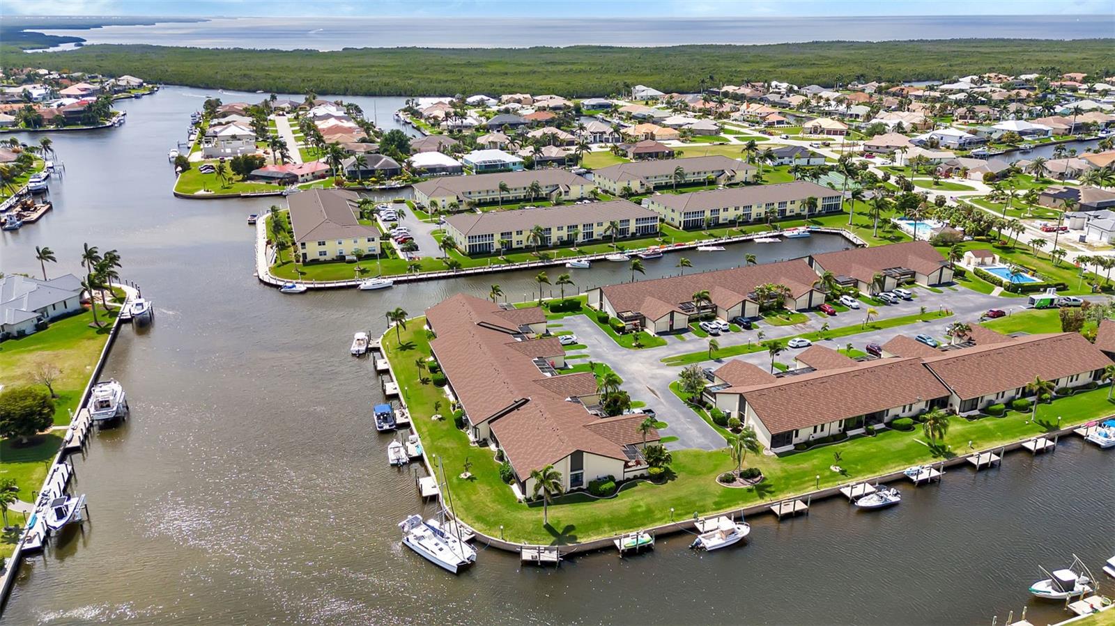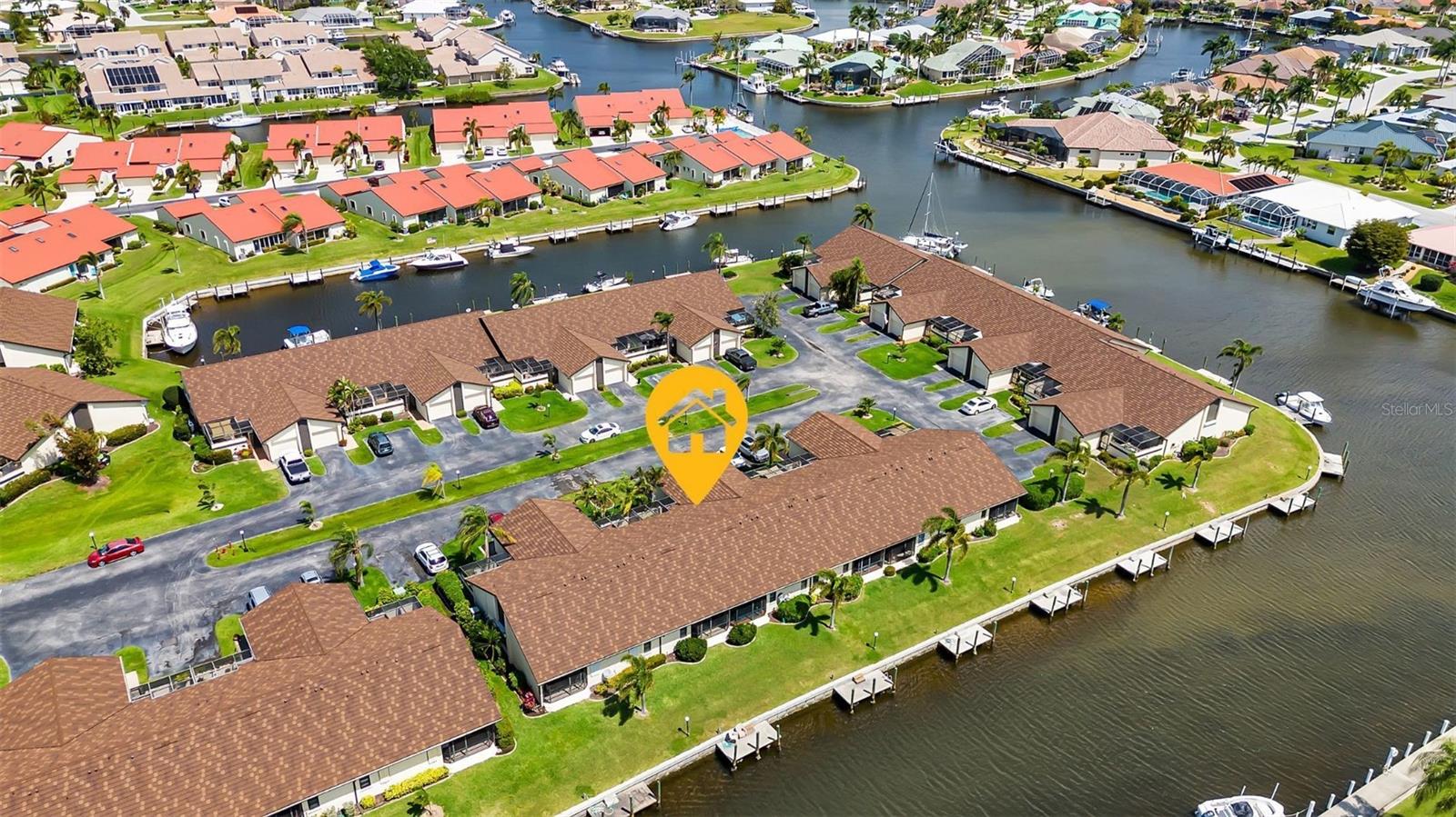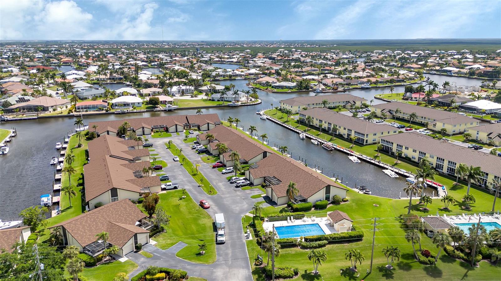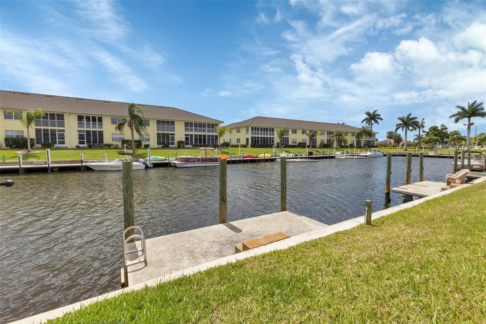 Seller may consider buyer concessions if made in an offer. DEEDED DOCK, GARAGE, and WATERFRONT VIEWS! Indulge in the ultimate Florida lifestyle with this stunning turnkey villa nestled in the sought-after Punta Gorda Isles community. Situated along a private drive, this waterfront oasis boasts not only a deed boat dock in sailboat water but also grants access to a community pool for your enjoyment. This complex has LOW HOA FEES compared to other villas in Punta Gorda. Step inside to discover a spacious and inviting retreat, where high cathedral ceilings and modern tile flooring create an ambiance of coastal elegance. Plantation shutters adorn several windows, offering glimpses of the serene surroundings while ensuring privacy. The well-appointed kitchen features stainless steel appliances and convenient pullouts, including a handy lazy Susan, making meal prep a breeze. Whether hosting friends or simply relaxing with loved ones, the front and back screened-in patios provide the perfect setting to savor the stunning water views and gentle Florida breezes. Beyond the villa's charms lies a neighborhood brimming with amenities and attractions. Golf enthusiasts will delight in the proximity to St. Andrews Golf Club, while boating enthusiasts will appreciate easy access to the Isles Yacht Club and Fisherman's Village. Plus, downtown Punta Gorda beckons with its charming shops, dining options, and cultural experiences. Don't miss your chance to embrace the fantastic Florida lifestyle in this Punta Gorda Isles haven, where every day feels like a vacation in paradise. Isn't it time you owned a villa in Florida?