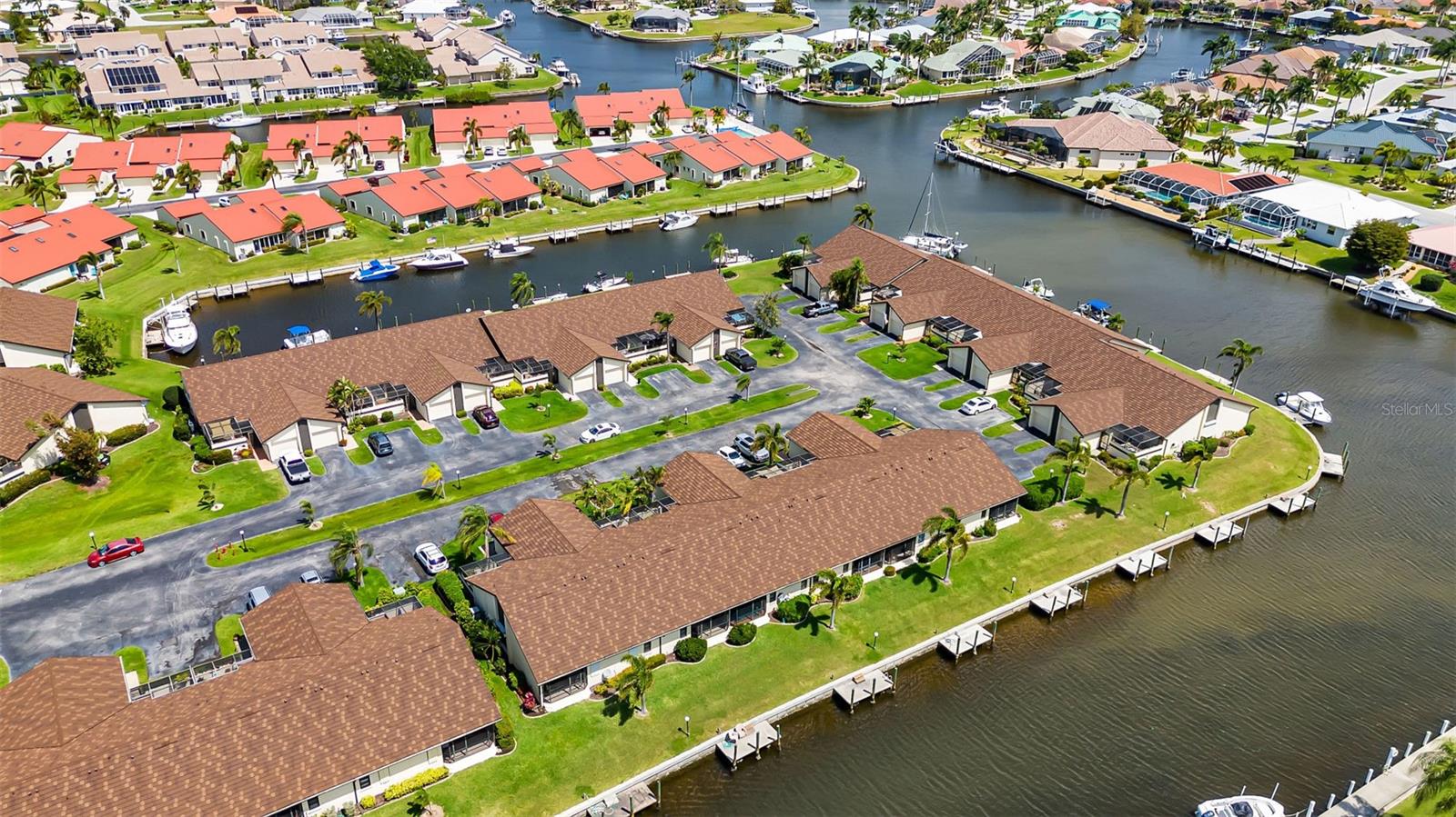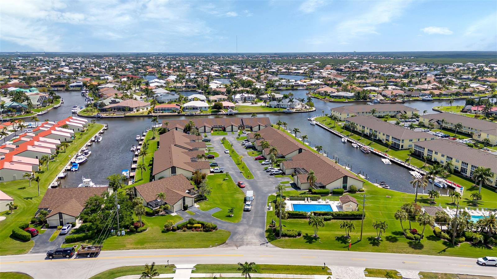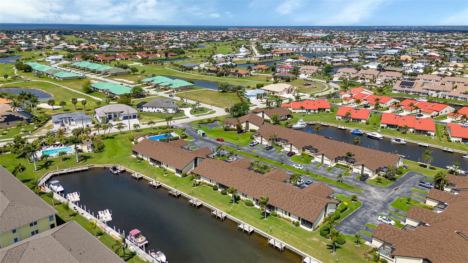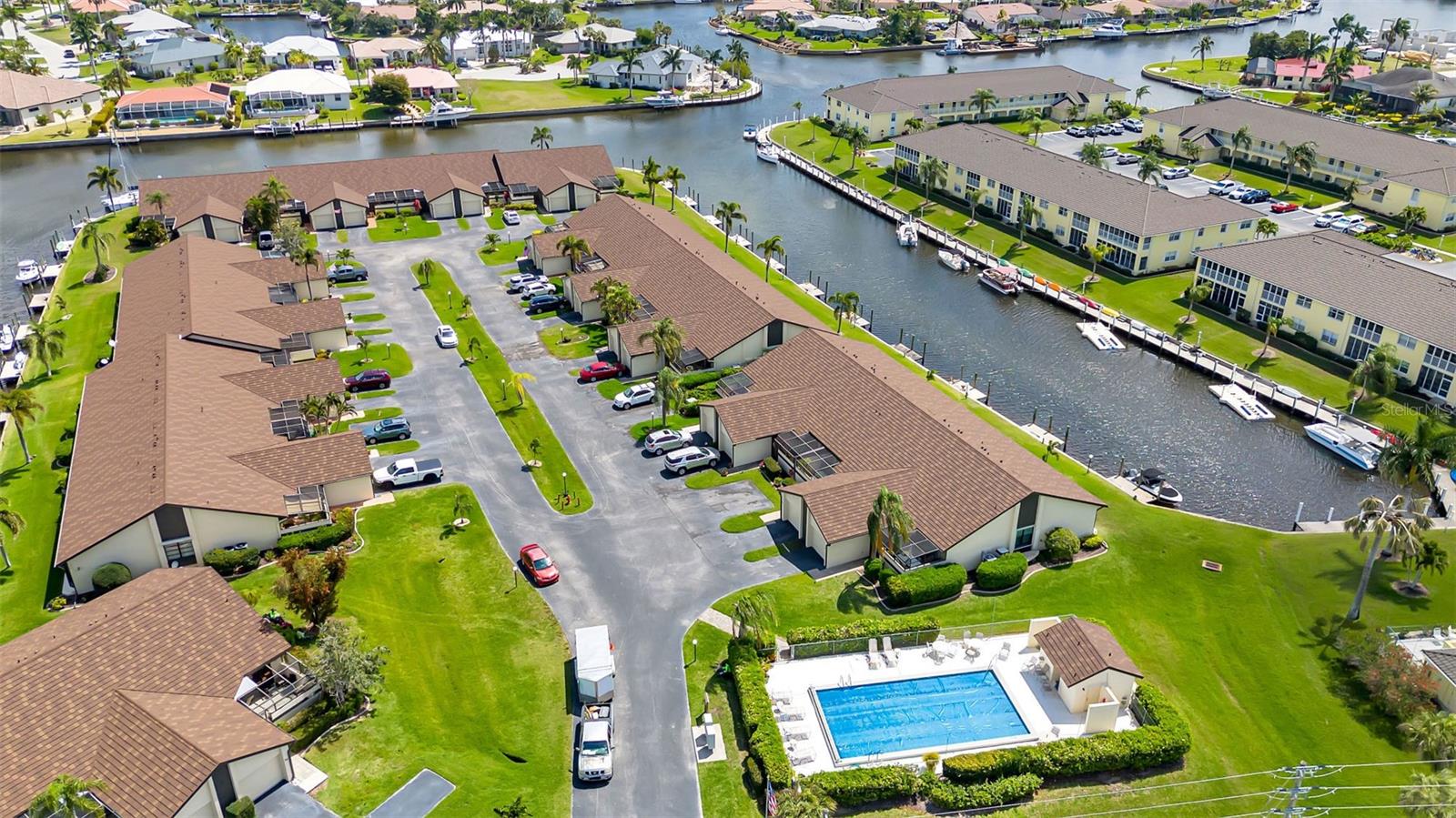 Seller may consider buyer concessions if made in an offer. DEEDED DOCK, GARAGE, and WATERFRONT VIEWS! Indulge in the ultimate Florida lifestyle with this stunning turnkey villa nestled in the sought-after Punta Gorda Isles community. Situated along a private drive, this waterfront oasis boasts not only a deed boat dock in sailboat water but also grants access to a community pool for your enjoyment. This complex has LOW HOA FEES compared to other villas in Punta Gorda. Step inside to discover a spacious and inviting retreat, where high cathedral ceilings and modern tile flooring create an ambiance of coastal elegance. Plantation shutters adorn several windows, offering glimpses of the serene surroundings while ensuring privacy. The well-appointed kitchen features stainless steel appliances and convenient pullouts, including a handy lazy Susan, making meal prep a breeze. Whether hosting friends or simply relaxing with loved ones, the front and back screened-in patios provide the perfect setting to savor the stunning water views and gentle Florida breezes. Beyond the villa's charms lies a neighborhood brimming with amenities and attractions. Golf enthusiasts will delight in the proximity to St. Andrews Golf Club, while boating enthusiasts will appreciate easy access to the Isles Yacht Club and Fisherman's Village. Plus, downtown Punta Gorda beckons with its charming shops, dining options, and cultural experiences. Don't miss your chance to embrace the fantastic Florida lifestyle in this Punta Gorda Isles haven, where every day feels like a vacation in paradise. Isn't it time you owned a villa in Florida?