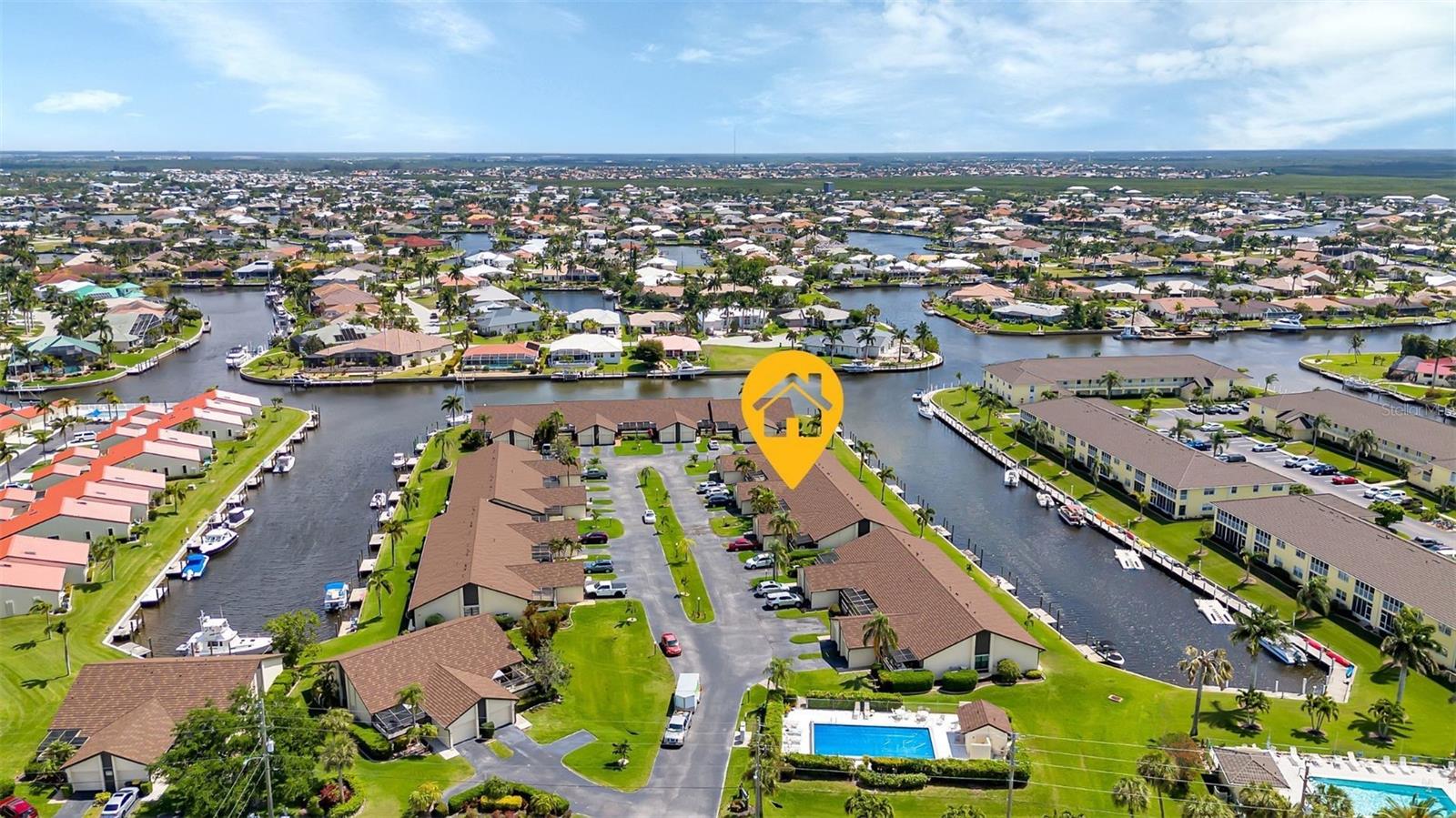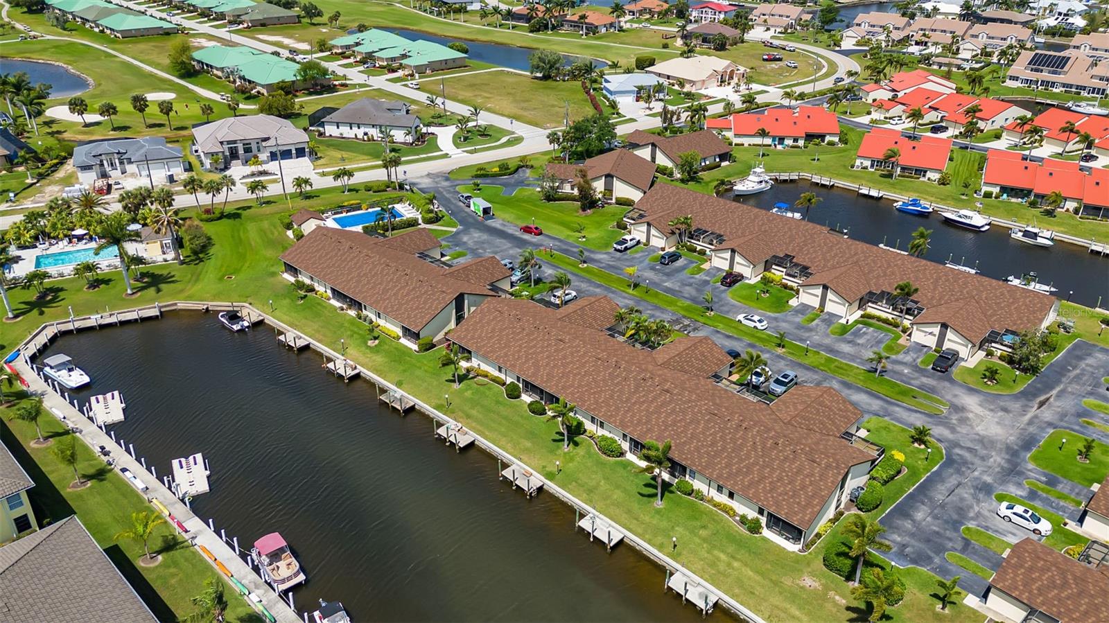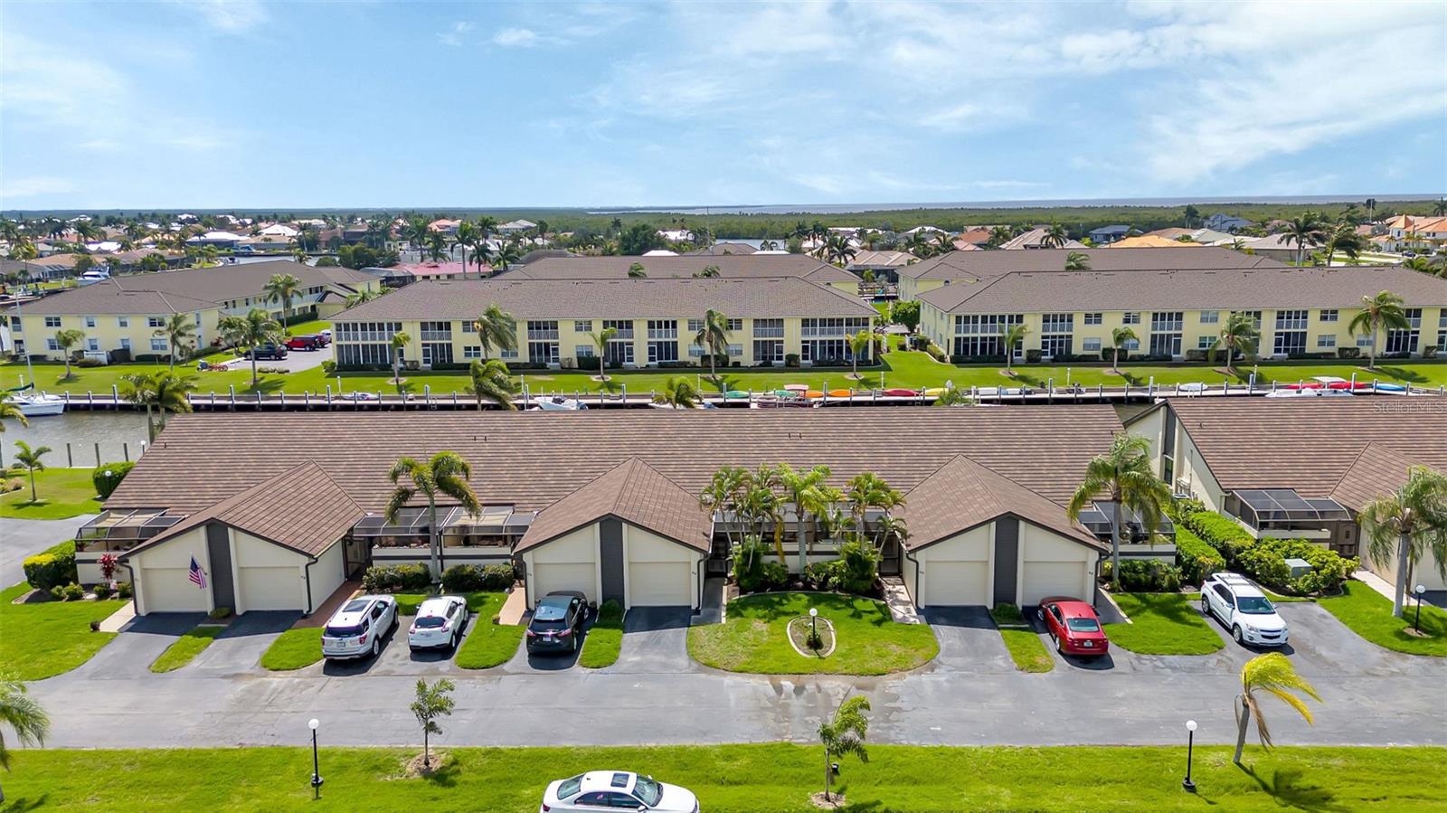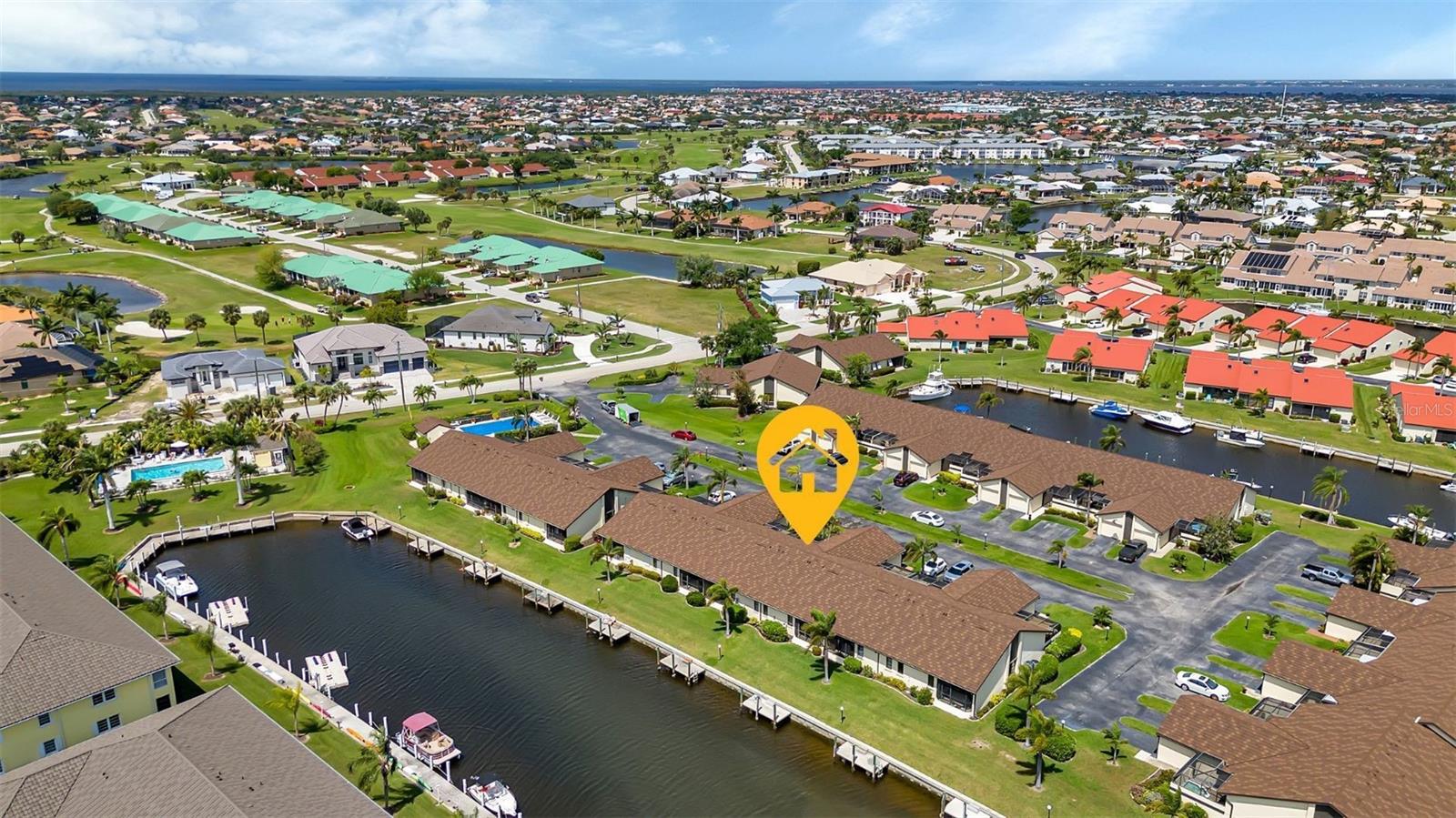 Seller may consider buyer concessions if made in an offer. DEEDED DOCK, GARAGE, and WATERFRONT VIEWS! Indulge in the ultimate Florida lifestyle with this stunning turnkey villa nestled in the sought-after Punta Gorda Isles community. Situated along a private drive, this waterfront oasis boasts not only a deed boat dock in sailboat water but also grants access to a community pool for your enjoyment. This complex has LOW HOA FEES compared to other villas in Punta Gorda. Step inside to discover a spacious and inviting retreat, where high cathedral ceilings and modern tile flooring create an ambiance of coastal elegance. Plantation shutters adorn several windows, offering glimpses of the serene surroundings while ensuring privacy. The well-appointed kitchen features stainless steel appliances and convenient pullouts, including a handy lazy Susan, making meal prep a breeze. Whether hosting friends or simply relaxing with loved ones, the front and back screened-in patios provide the perfect setting to savor the stunning water views and gentle Florida breezes. Beyond the villa's charms lies a neighborhood brimming with amenities and attractions. Golf enthusiasts will delight in the proximity to St. Andrews Golf Club, while boating enthusiasts will appreciate easy access to the Isles Yacht Club and Fisherman's Village. Plus, downtown Punta Gorda beckons with its charming shops, dining options, and cultural experiences. Don't miss your chance to embrace the fantastic Florida lifestyle in this Punta Gorda Isles haven, where every day feels like a vacation in paradise. Isn't it time you owned a villa in Florida?