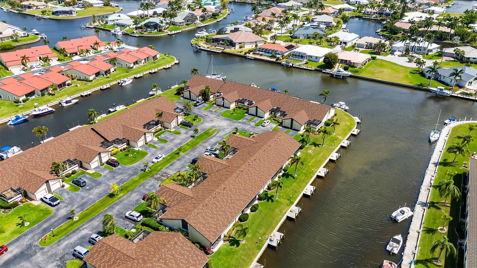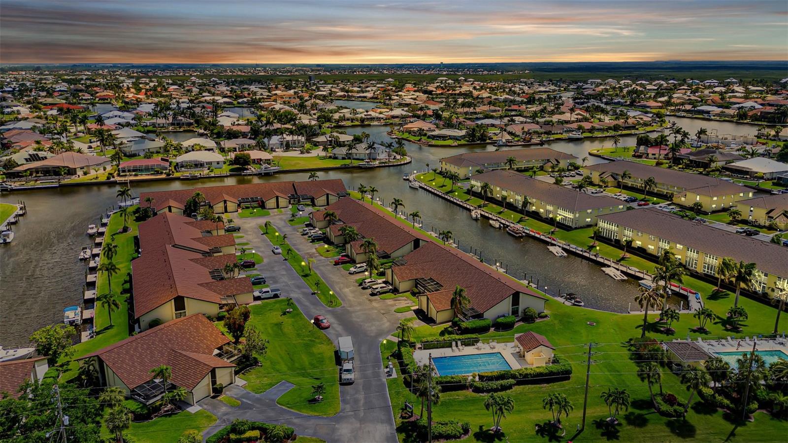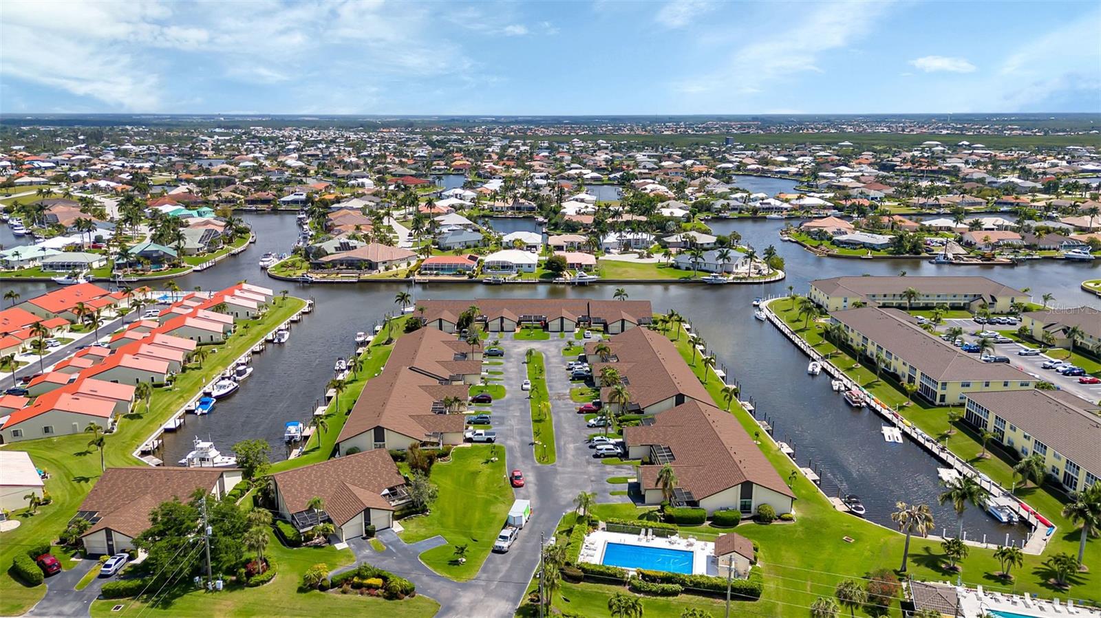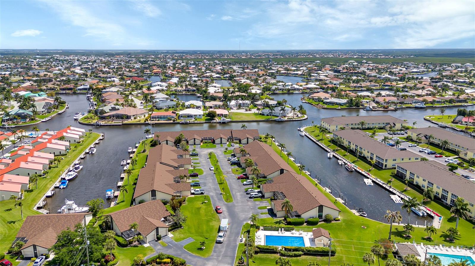 Seller may consider buyer concessions if made in an offer. DEEDED DOCK, GARAGE, and WATERFRONT VIEWS! Indulge in the ultimate Florida lifestyle with this stunning turnkey villa nestled in the sought-after Punta Gorda Isles community. Situated along a private drive, this waterfront oasis boasts not only a deed boat dock in sailboat water but also grants access to a community pool for your enjoyment. This complex has LOW HOA FEES compared to other villas in Punta Gorda. Step inside to discover a spacious and inviting retreat, where high cathedral ceilings and modern tile flooring create an ambiance of coastal elegance. Plantation shutters adorn several windows, offering glimpses of the serene surroundings while ensuring privacy. The well-appointed kitchen features stainless steel appliances and convenient pullouts, including a handy lazy Susan, making meal prep a breeze. Whether hosting friends or simply relaxing with loved ones, the front and back screened-in patios provide the perfect setting to savor the stunning water views and gentle Florida breezes. Beyond the villa's charms lies a neighborhood brimming with amenities and attractions. Golf enthusiasts will delight in the proximity to St. Andrews Golf Club, while boating enthusiasts will appreciate easy access to the Isles Yacht Club and Fisherman's Village. Plus, downtown Punta Gorda beckons with its charming shops, dining options, and cultural experiences. Don't miss your chance to embrace the fantastic Florida lifestyle in this Punta Gorda Isles haven, where every day feels like a vacation in paradise. Isn't it time you owned a villa in Florida?