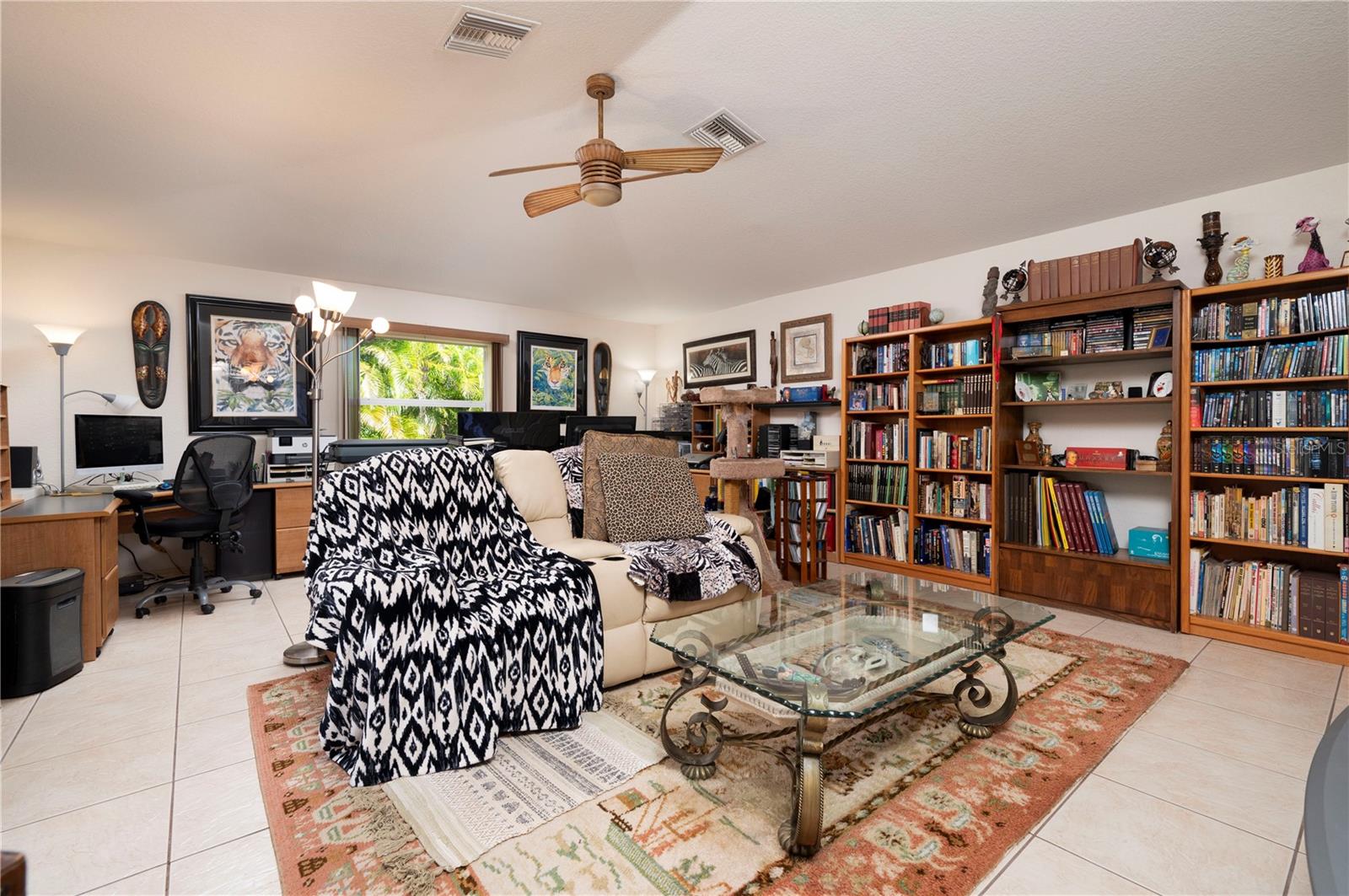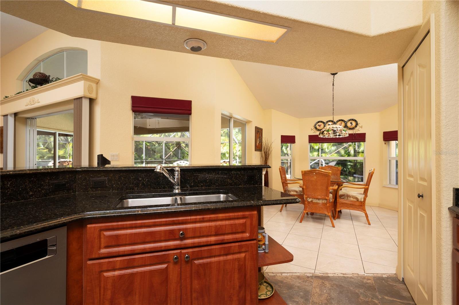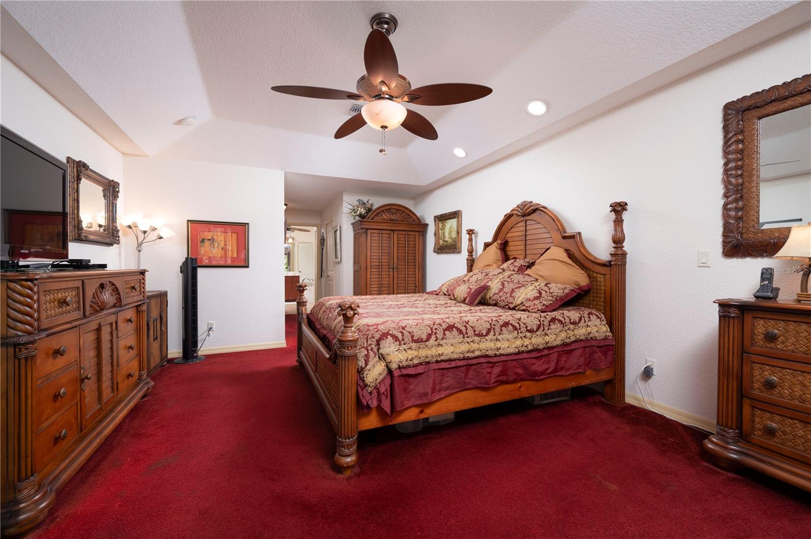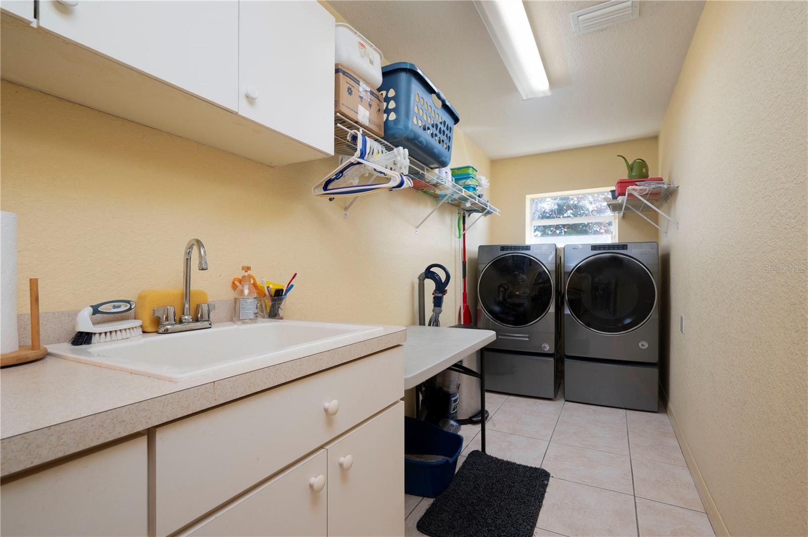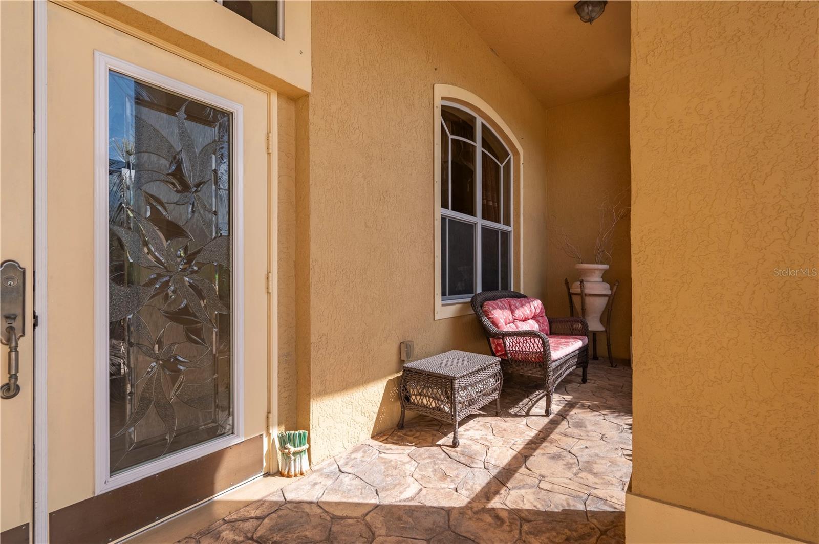 Impressive custom POOL HOME located in the desirable deed restricted golf community of DEEP CREEK. This home is situated on an oversized corner lot with greenbelt in the rear. NOT in a flood zone. This light and bright home offers an open and split bedroom floor plan with 3 spacious bedrooms, 2 full bathrooms, attached 2 Car Garage, 24x7 screened Front Porch, Foyer, Great Room with Dining Area, well appointed Kitchen, Inside Laundry. The Great Room has a high ceiling, plant shelves, tile flooring, pocket sliding glass doors with transom window to the lanai, and a column separates the Great Room from the Dining Area. The Kitchen features wood cabinets, granite counters, tile floor, stainless appliances (French door refrigerator, dishwasher, oven/range, microwave) and dining area overlooking the pool and greenbelt. The Inside Laundry offers front loading washer and front loading dryer, cabinets and sink. The Master Bedroom suite is quite large and offers a seating area, two walk in closets, raised ceiling, sliding glass doors to the lanai, and private bathroom with Roman shower, garden tub, dual sinks with vanity area between the sinks to apply your makeup. The second bedroom is also quite spacious- master bedroom size - and has two double closets and plant shelves. The third bedroom with double closet, vaulted ceiling, sliding glass doors to the lanai and tile floor is 20x18 and could easily function as a Family Room if that is your preference. The guest bathroom has a walk in shower and large vanity. Your living space extends via sliding glass doors to the screened Lanai with 25x12 heated inground saltwater pool (6 feet in the deep end) with stunning stone waterfall and attached heated inground spa. There is a large covered area on the lanai with vaulted ceiling as well as plenty of deck for sunbathing. Other features include large circular driveway, fountain in the front yard, double door entry with transom window, Foyer with tile flooring and mosaic design, well for lawn irrigation, mature tropical landscaping, Hurricane Shutters, workshop in garage. **NEW ROOF July 2022 (2 months before Hurricane Ian)** Most furnishings will convey if the buyer wants them (such as the sound system, two bedroom sets, breakfront in the Dining Room, Patio furniture and more). Art work does not convey. This home is minutes from Golf, shopping, dining, entertainment, I-75 and is a short drive to medical care and waterfront parks. This home is perfect for a family or those expecting lots of winter visitors!