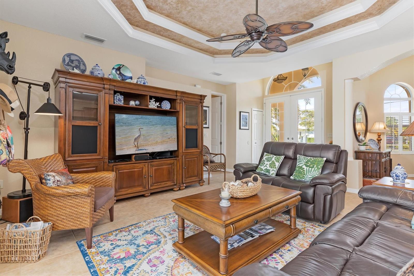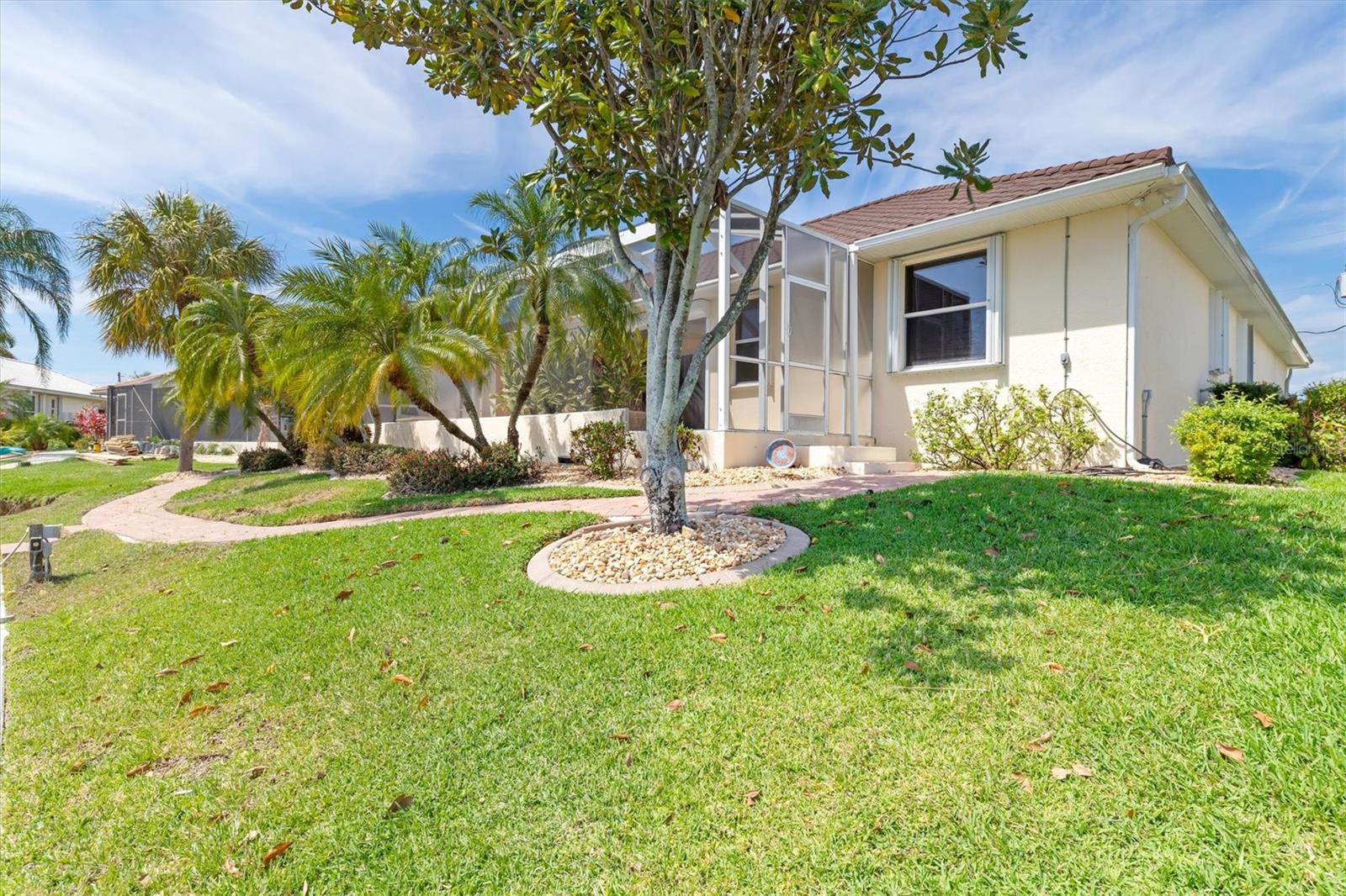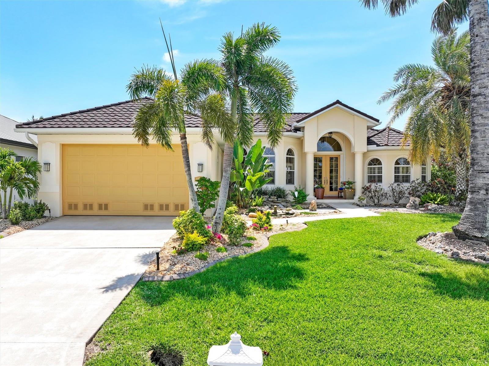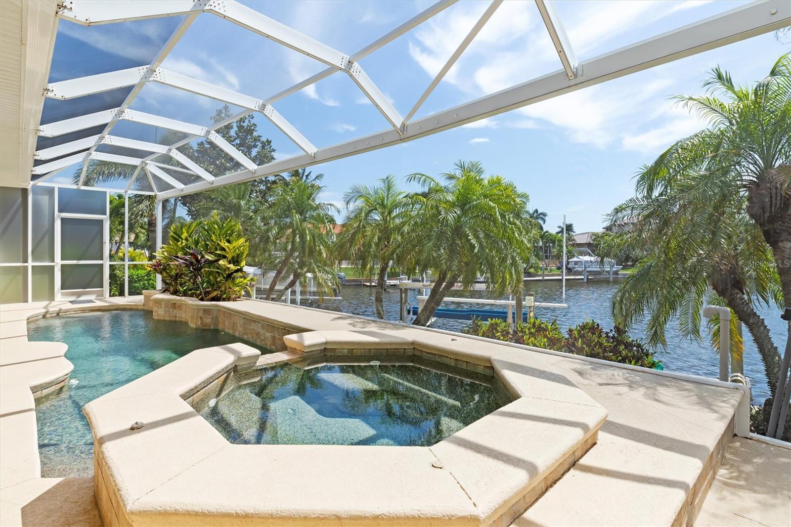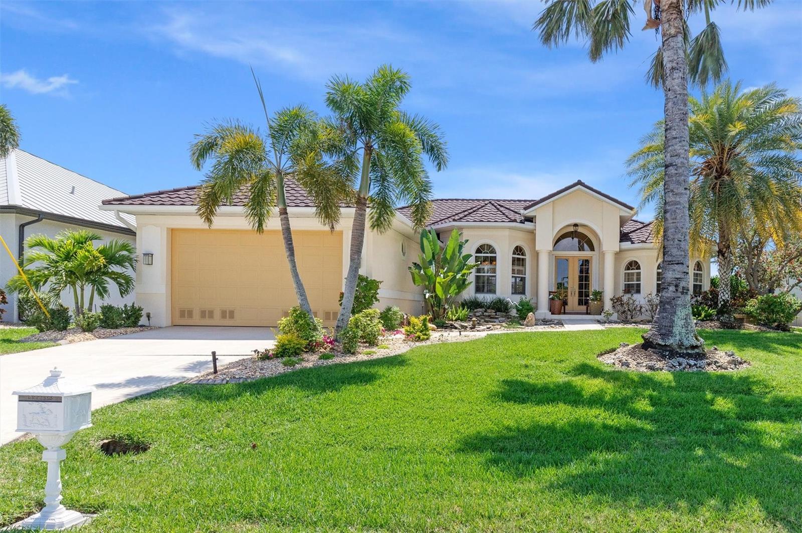 Being sold FURNISHED with acceptable contract! You have found your permanent vacation! Embrace the sunny paradise of Southwest Florida with this move-in ready 3-bedroom, 2-bathroom pool home nestled in the exclusive waterfront haven of Punta Gorda Isles. With unrestricted sailboat access to Charlotte Harbor and the Gulf of Mexico, this stunning home promises seamless boating adventures without the hassle of bridges. Spanning over 2100 square feet, this residence is tailor-made for those seeking the ultimate retirement or year round retreat. Step inside to discover a spacious living and dining area adorned with tile flooring and bathed in natural light. The kitchen, complete with tons of cabinetry, granite countertops, stainless steel appliances, and a convenient breakfast bar, is perfect for casual dining before setting off for a day on the water. The master suite is a sanctuary of comfort, featuring two walk-in closets and an ensuite bathroom equipped with dual sinks, a luxurious soaking tub, and a walk-in shower. Outside, the screened lanai beckons with tranquil water views and hosts a heated PebbleTec pool accompanied by soothing waterfalls and a spa – the ideal spot for unwinding after a day of boating bliss. One breakfast on this lanai and you will truly feel like you are living in your own resort! A brand new concrete seawall, maintained by the City of Punta Gorda, complete with a concrete dock and a 20,000 lb boat lift, awaits your aquatic adventures. Additional highlights include a dedicated laundry room, Plantation shutters as well as electric lanai and front door storm shutters, an irrigation system, and a security system for peace of mind. A TILCOR 50 year warranty metal roof was installed in 2023. Another important feature is the 9 ft high garage door! Conveniently located near local amenities, pristine beaches, and a plethora of dining and entertainment options, this home offers the perfect blend of waterfront serenity and modern convenience. With easy access to nearby parks and boat ramps, every day is an opportunity for new adventures on the water. Don't miss your chance to make this tranquil waterfront oasis your own – the epitome of retirement living and entertaining in Southwest Florida.