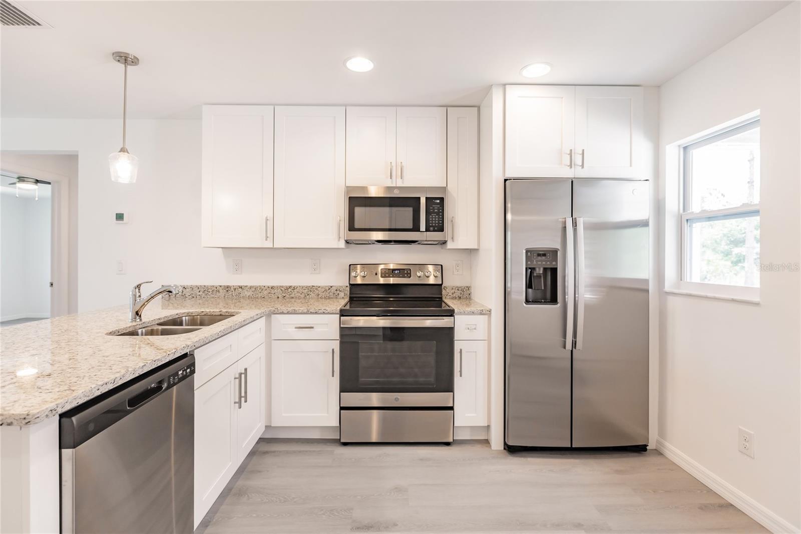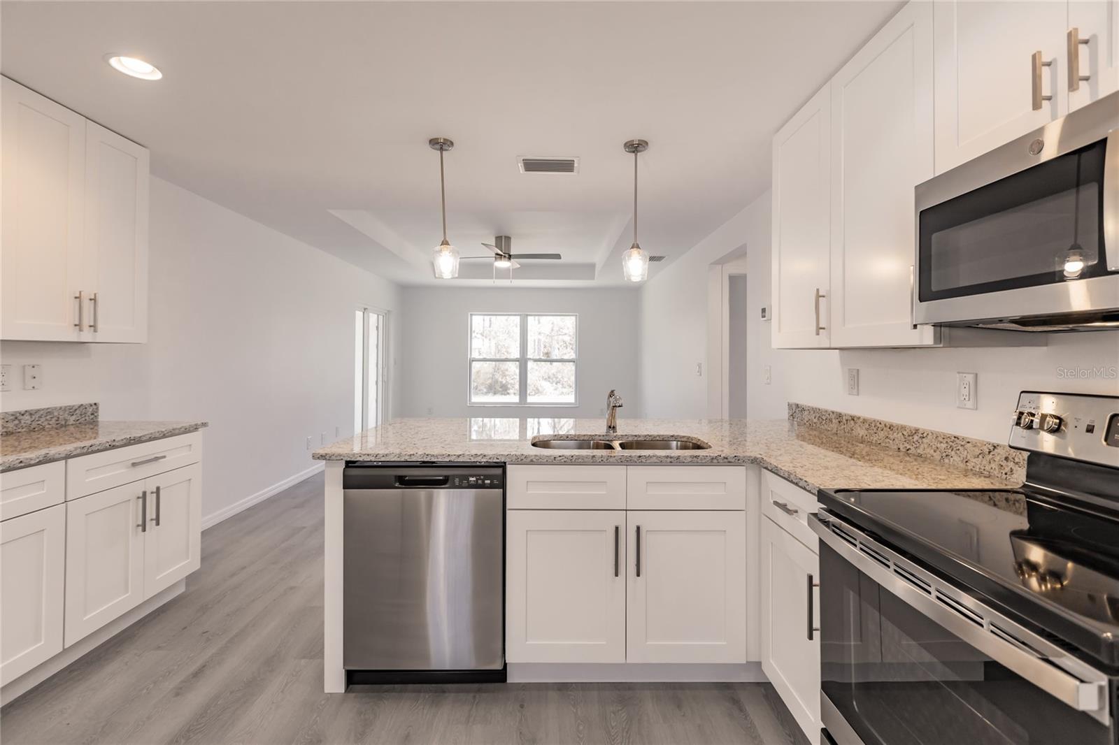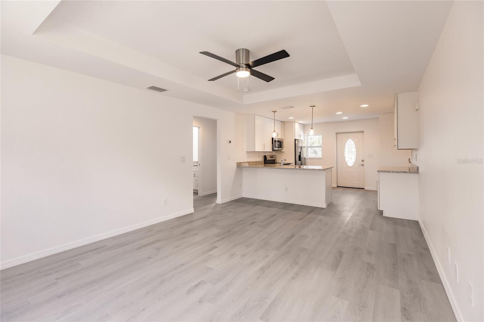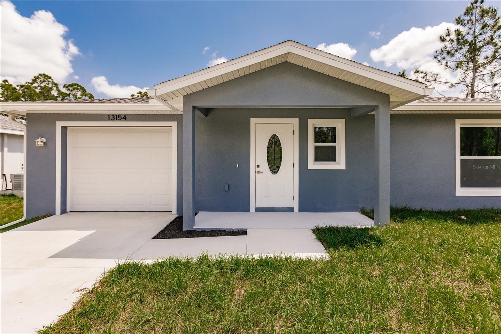 Why go through the hassle of building when you can move right into this brand new 2 bedroom, 1 and a half bath home with 1 car garage located in the rural community of Tropical Gulf Acres. This home offers open floor plan with great room concept and provides lots of flexibility in arranging your living space. Features include beautiful wood plank luxury vinyl flooring throughout, decorator light and fan fixtures, recessed lighting, and tray ceilings in the Great Room and master bedroom. The kitchen is equipped with granite counters, warm wood cabinetry, stainless appliances, pantry, built in buffet, and breakfast bar with pendant lights that opens to the Great Room for easy entertaining. Master bedroom has “jack and jill” bath with access to 2nd bedroom. Other features include impact resistant windows and laundry area in garage. Proximity to waterways, local beaches, dining, shopping, and golf courses makes this property ideal for the Florida lifestyle. Also, easy access to public parks with bike and walking trails and picnic areas, and boat ramps providing access to many waterways, the Peace and Myakka Rivers, beautiful Charlotte Harbor, and the Gulf of Mexico. And quick drive north to historic downtown Punta Gorda and popular Fishermen's Village with quaint shops and cafes. Head south to Fort Myers with lively downtown area and waterfront dining. And easy access to Interstate 75. Quiet community, yet all conveniences and amenities nearby.