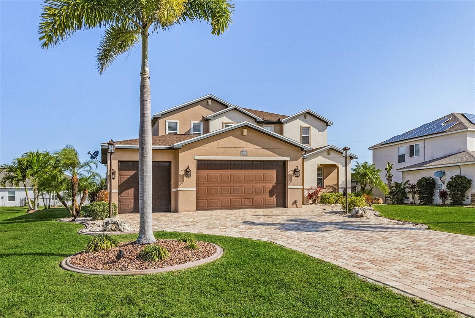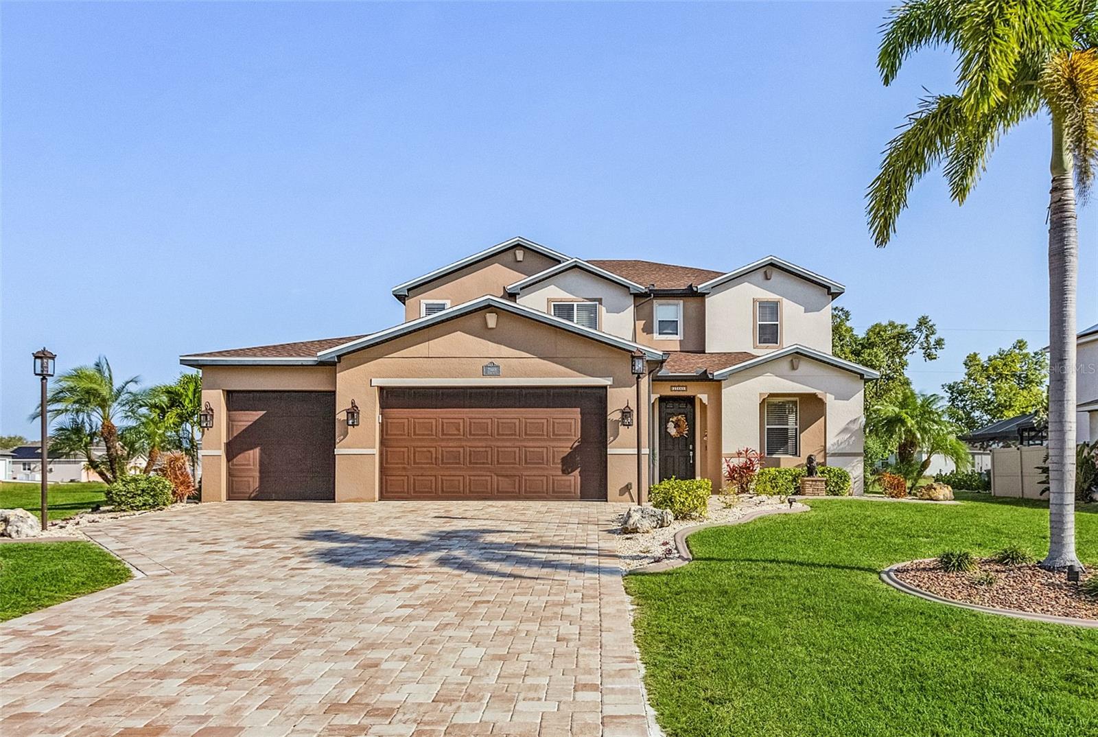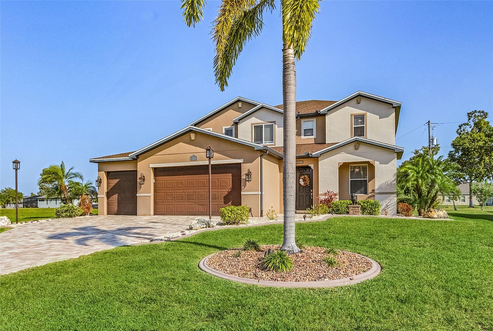Nestled in the Heart of Burnt Store Village, experience all this stunning 5 Bed/3 Bath home has to offer. Upon arrival, you'll be greeted by lush palms, a custom mailbox, extended paver driveway, & a 3 car garage equipped with built in cabinets, a sink, and a Tesla Charger. Lots of options for enjoying family or entertaining with a large great room, living room, and a formal dining room. Enjoy the gourmet kitchen complete with granite counters, a new LG Instaview fridge, newer stainless steel appliances, a breakfast bar, a deep basin sink, a pantry and custom light fixtures. The Half bath is located on the first floor for convenience. Large Master Suite offers a large walk-in closet, separate tub shower/ combo and overlooks the pristine pool. The 2nd Floor is private for guests & features a loft, 4 bedrooms, a guest bathroom, a generous sized laundry room with washer/dryer, & a large storage closet. There are gorgeous finishes throughout this home and multiple options for home office / gym / or other flex rooms. Outdoor SWFL Living worth bragging about. This outdoor oasis features a sparkling salt water pool with pebble-tec coating, two sun-shelves, app controlled heating, water fountains/lighting, private spa, paver patio, and covered lanai area with an open view screen enclosure. Brand New Roof installed after the Hurricane, Newer AC 2021. Remote operated fans. Fence installed to enclose AC / Pool Equipment. Custom landscaping enhanced with concrete curbing and rock beds. Enjoy a playground, grills, a pavilion and picnic tables at the community park. With its prime location in the desirable Deed Restricted Burnt Store Village community, this home offers easy access shopping, dining, and Burnt Store Marina and is NOT located in a Flood Zone.