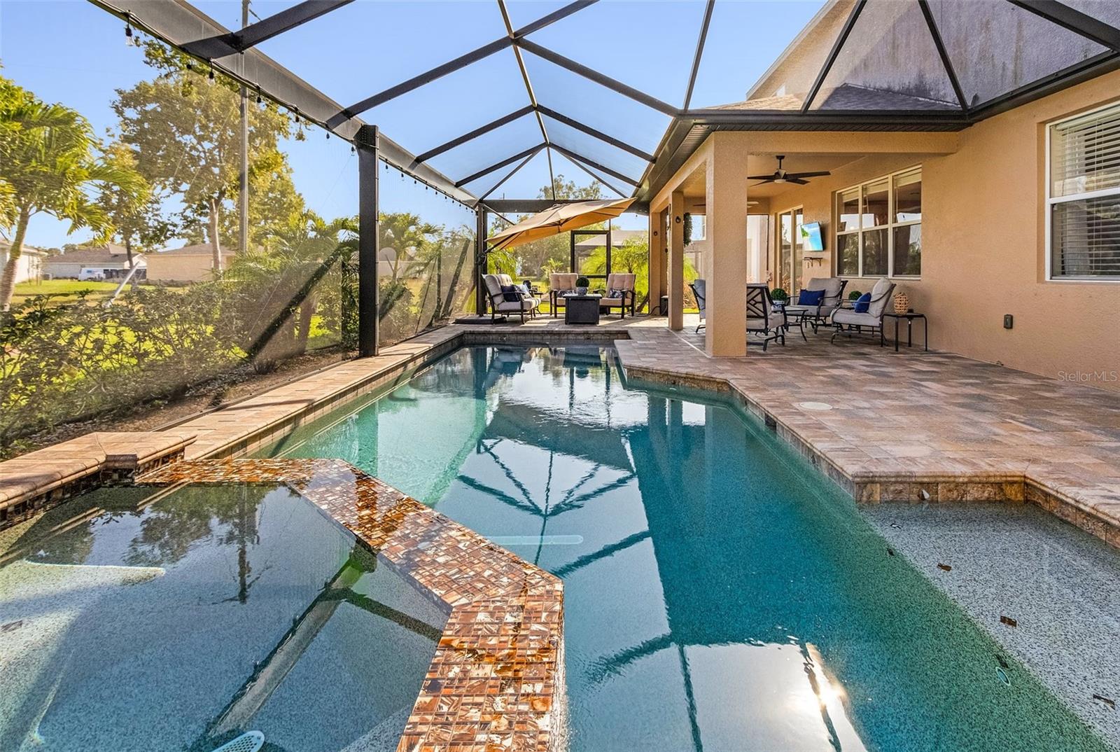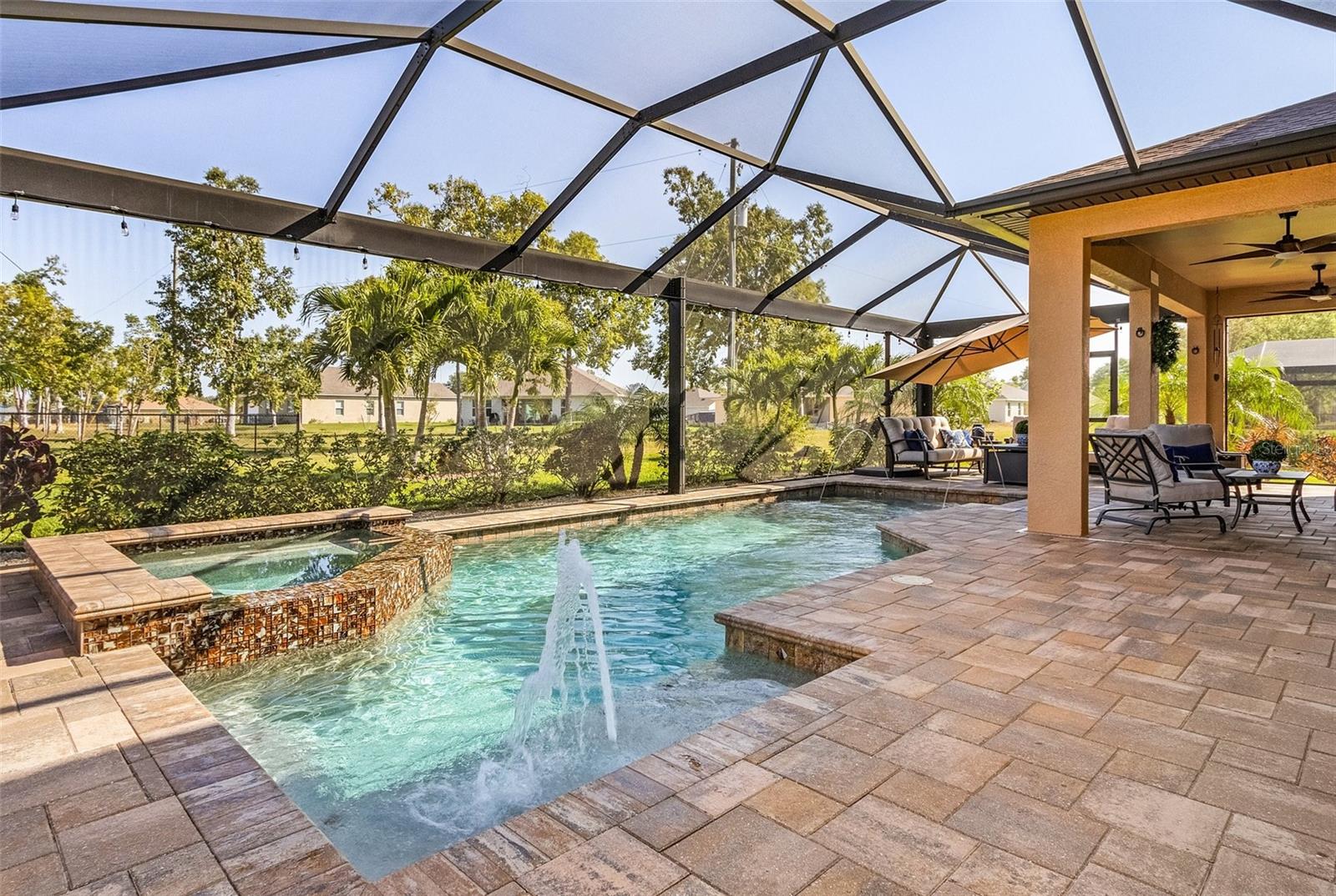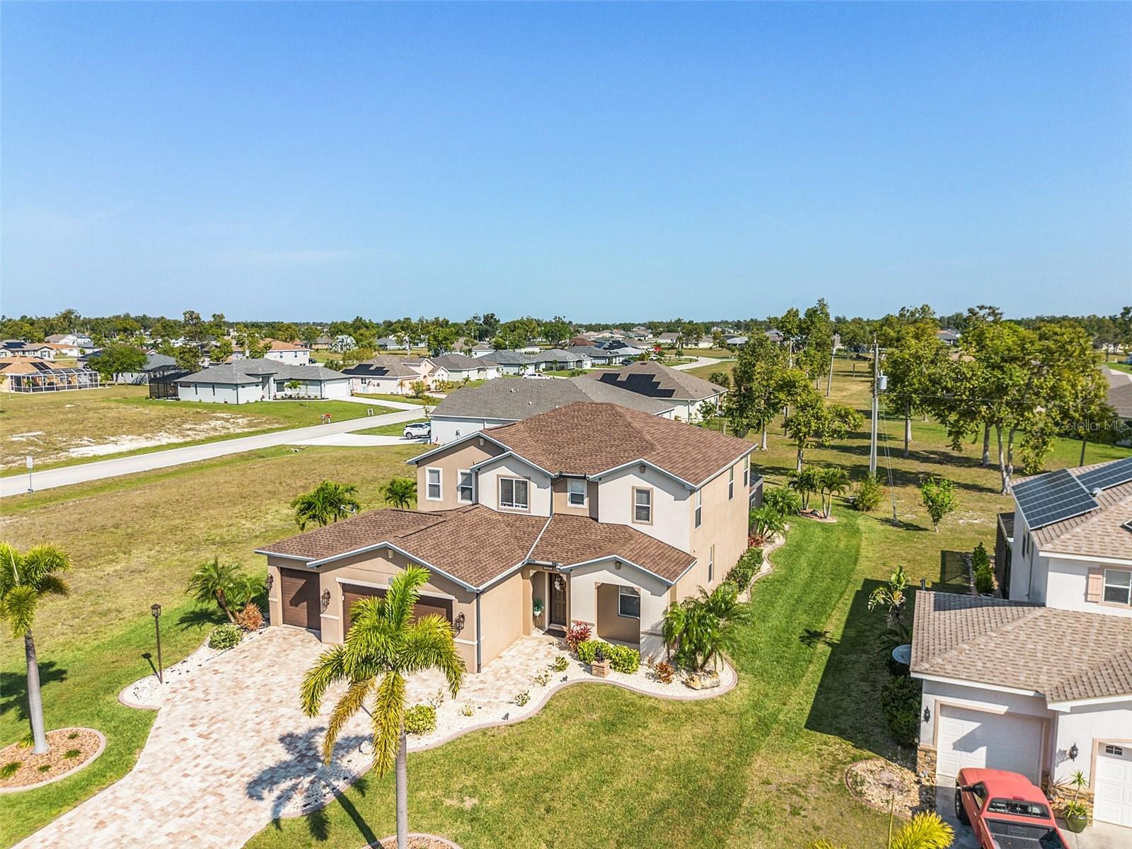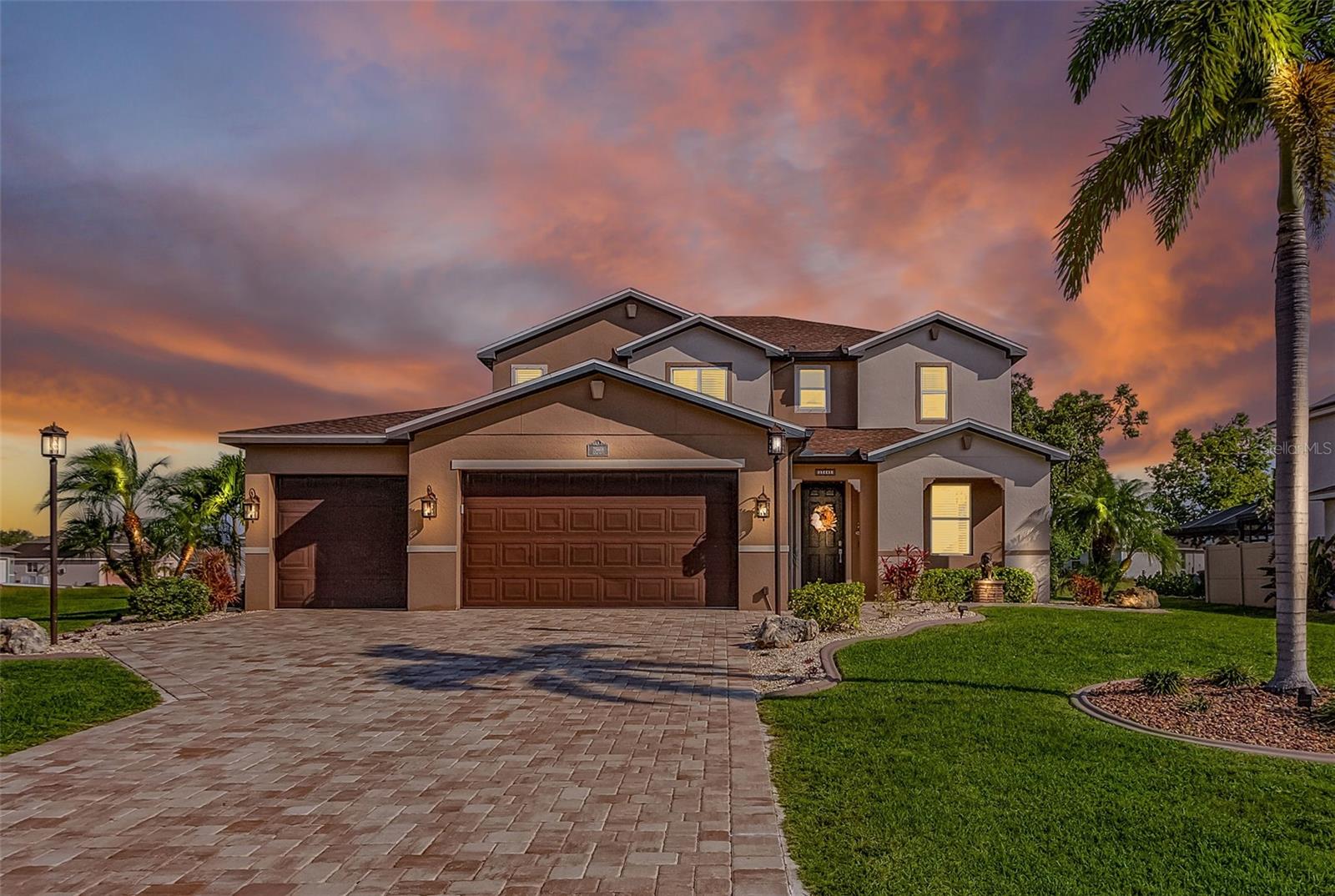 Nestled in the Heart of Burnt Store Village, experience all this stunning 5 Bed/3 Bath home has to offer. Upon arrival, you'll be greeted by lush palms, a custom mailbox, extended paver driveway, & a 3 car garage equipped with built in cabinets, a sink, and a Tesla Charger. Lots of options for enjoying family or entertaining with a large great room, living room, and a formal dining room. Enjoy the gourmet kitchen complete with granite counters, a new LG Instaview fridge, newer stainless steel appliances, a breakfast bar, a deep basin sink, a pantry and custom light fixtures. The Half bath is located on the first floor for convenience. Large Master Suite offers a large walk-in closet, separate tub shower/ combo and overlooks the pristine pool. The 2nd Floor is private for guests & features a loft, 4 bedrooms, a guest bathroom, a generous sized laundry room with washer/dryer, & a large storage closet. There are gorgeous finishes throughout this home and multiple options for home office / gym / or other flex rooms. Outdoor SWFL Living worth bragging about. This outdoor oasis features a sparkling salt water pool with pebble-tec coating, two sun-shelves, app controlled heating, water fountains/lighting, private spa, paver patio, and covered lanai area with an open view screen enclosure. Brand New Roof installed after the Hurricane, Newer AC 2021. Remote operated fans. Fence installed to enclose AC / Pool Equipment. Custom landscaping enhanced with concrete curbing and rock beds. Enjoy a playground, grills, a pavilion and picnic tables at the community park. With its prime location in the desirable Deed Restricted Burnt Store Village community, this home offers easy access shopping, dining, and Burnt Store Marina and is NOT located in a Flood Zone.