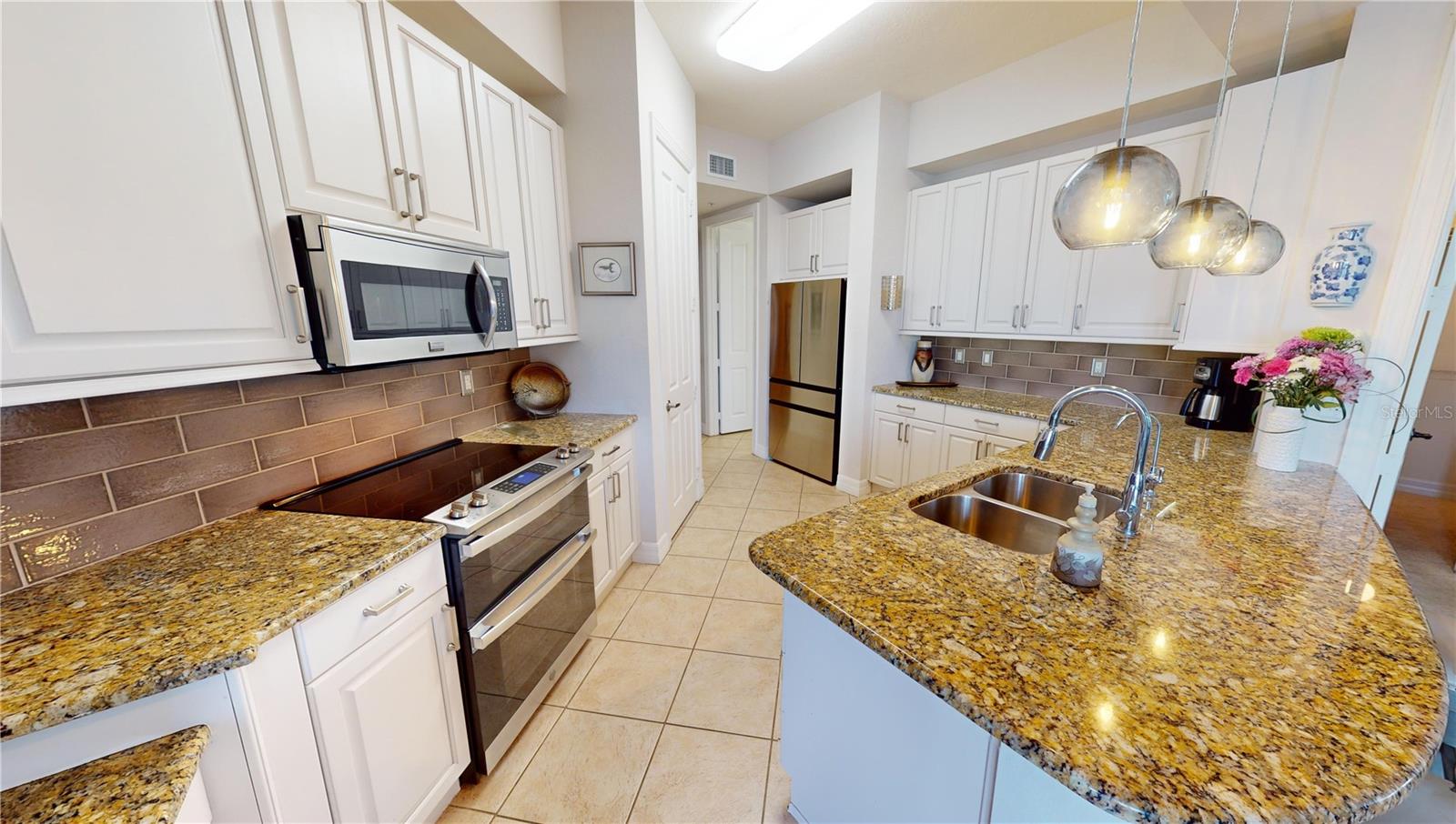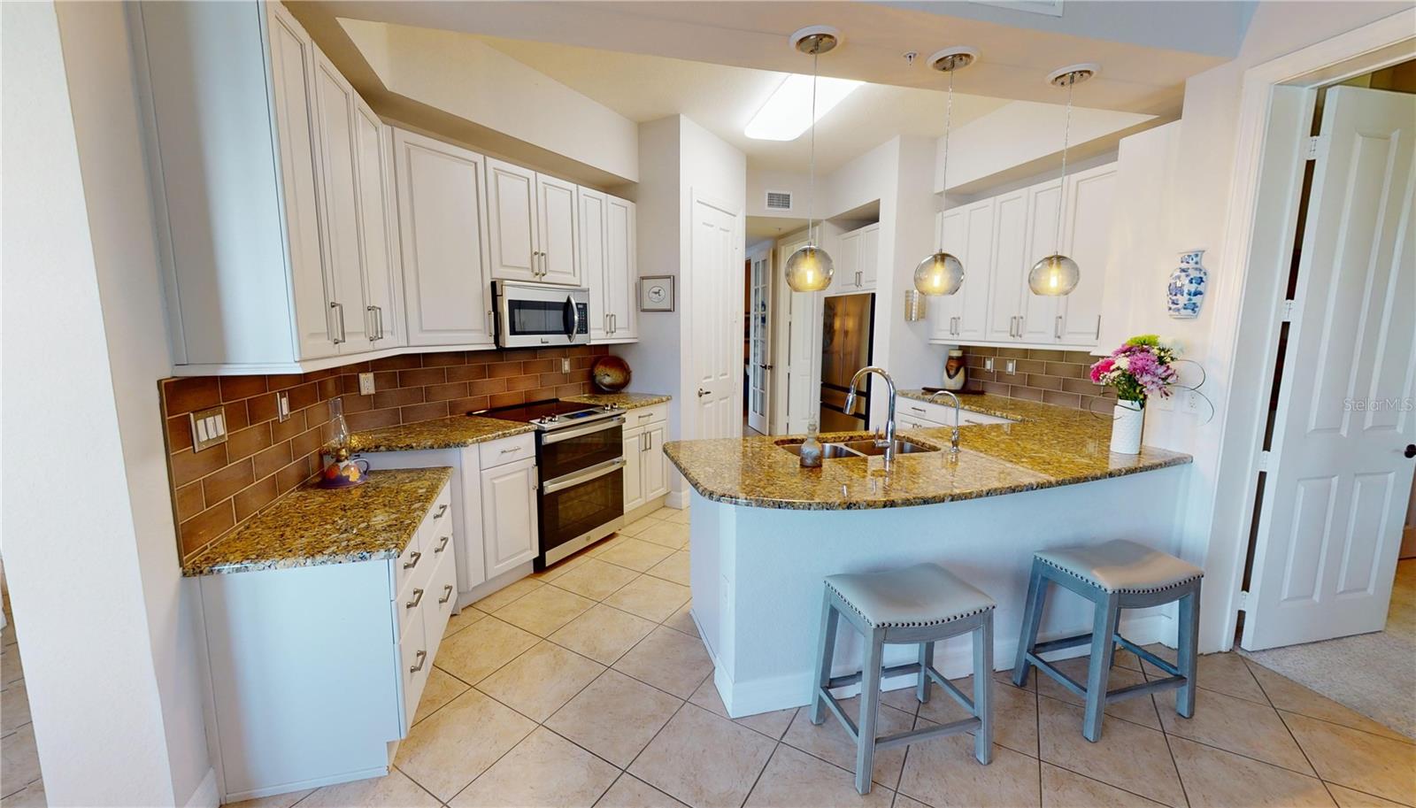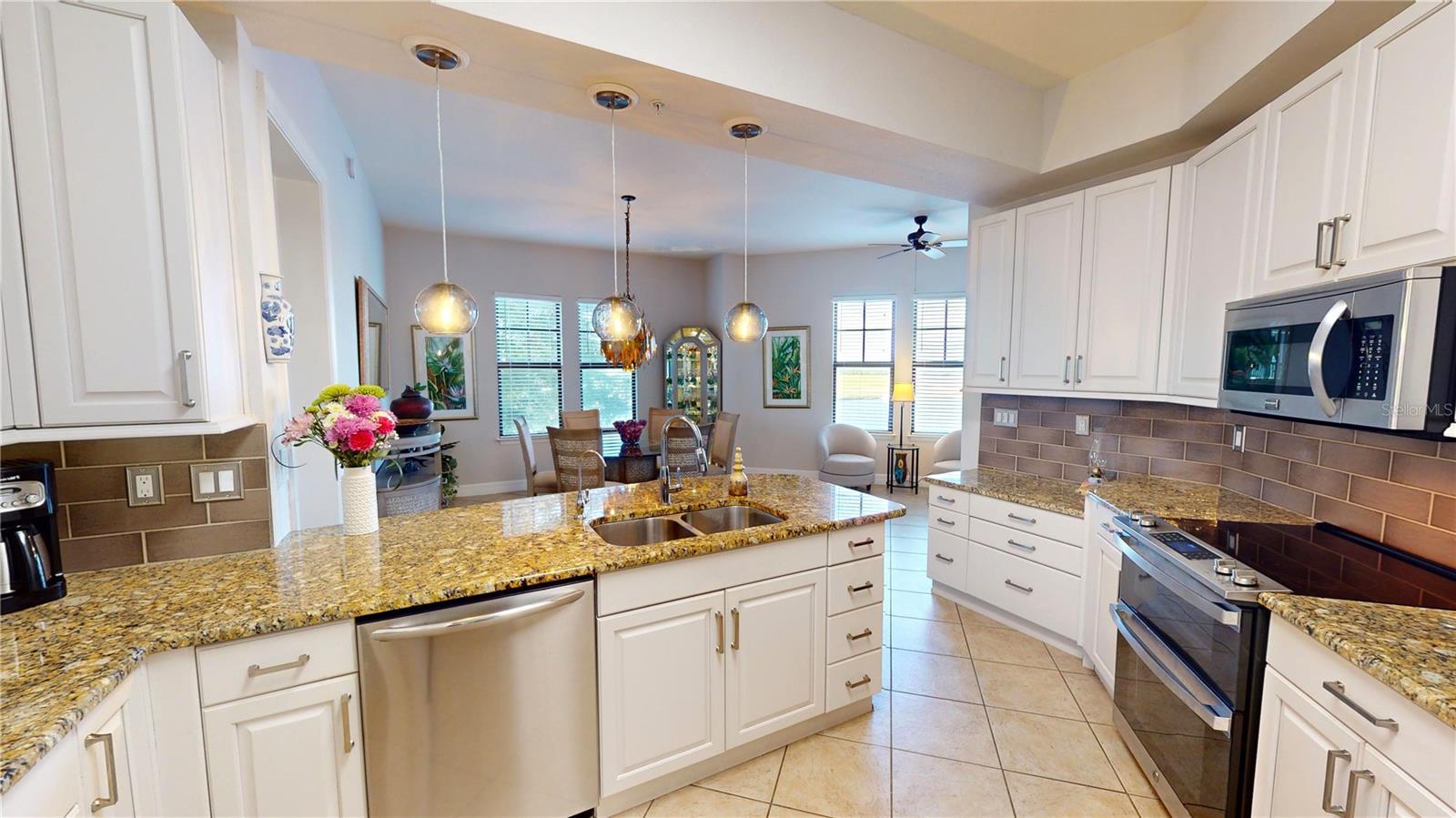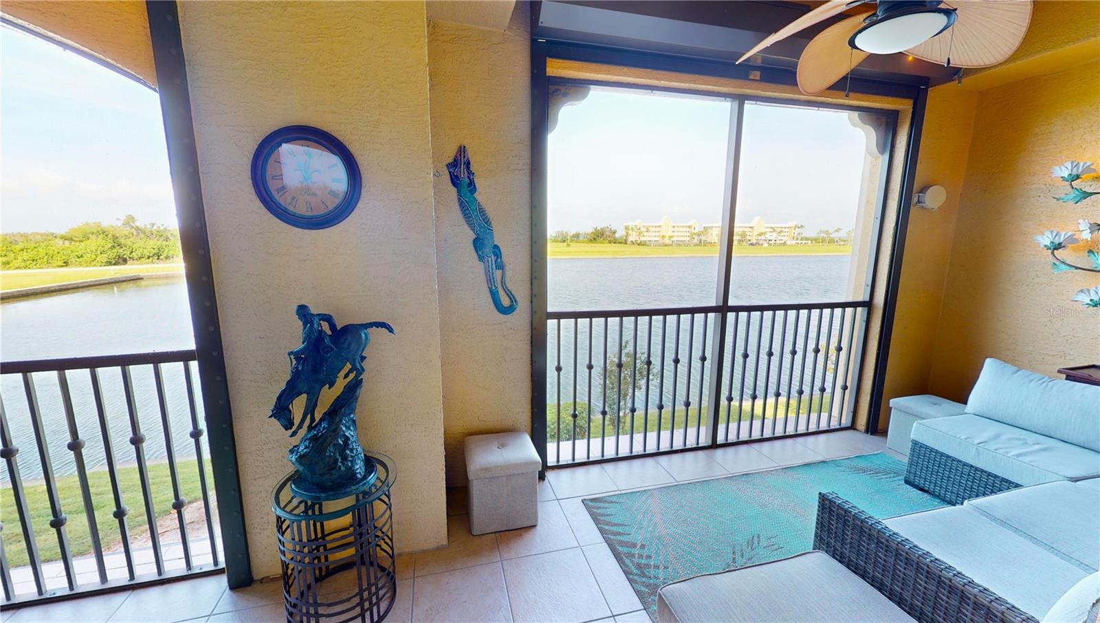 **MAJOR PRICE IMPROVEMENT - Largest unit with best view at this price**PLEASE ENJOY THE 3D INTERACTIVE VIRTUAL TOUR ASSOCIATED WITH THIS LISTING – WELCOME to Vivante of Punta Gorda! Located in the heart of Punta Gorda Isles, just a few blocks from Ponce de Leon Park on Charlotte Harbor is where you'll find the gated enclave of Vivante. Comprised of mid-rise condominium homes with a Mediterranean motif, Vivante offers the most extensive list of amenities in the area, making it an ideal choice for seasonal or full-time residents. Unit 9923 is one of the larger units, conveniently located near the elevator on the second floor of building 99 of the Boca Lago Association. It has approximately 2100 square feet of air-conditioned living space. Sporting an efficient, great room design, it features two spacious ensuite bedrooms with walk-in closets, an additional half-bath in the foyer, a den with glass French doors, a stylish open kitchen with ample hardwood cabinetry, double oven range, granite countertops with a tasteful backsplash and a more than spacious dining area. The home's 220-square-foot screened lanai offers a tranquil lake view and is accessible from the dining area, great room and primary bedroom suite and is equipped with electric roll-down shutters. Also unique to this home is its oversized underbuilding two-car garage, which measures 31'x14' AND the adjacent air-conditioned storage room/workshop, which measures 20'x11.' The home has ceramic tile flooring in all but the carpeted bedrooms, a whole-house water softener, and a kitchen sink-mounted RO system. The builder engineered both impact glass and a sprinkler system into this building and the monthly association dues include water, sewer, rubbish, basic cable, garage electrical and access to the Vivante Amenities Center. What makes Vivante an exceptional value is the world-class amenities center. This grand lakefront complex has much to offer, including a heated resort-style pool, hot tub and lap pool, tennis courts, a gym, rooms for billiards and events and a full-service spa. From Vivante, you are but 5 minutes from the Ponce de Leon waterfront park, two miles from the Fisherman's Village complex and just 3 miles from historic downtown Punta Gorda. This home has been beautifully maintained and is move-in-ready. You can walk through now by clicking on the attached interactive 3D VIRTUAL TOUR!