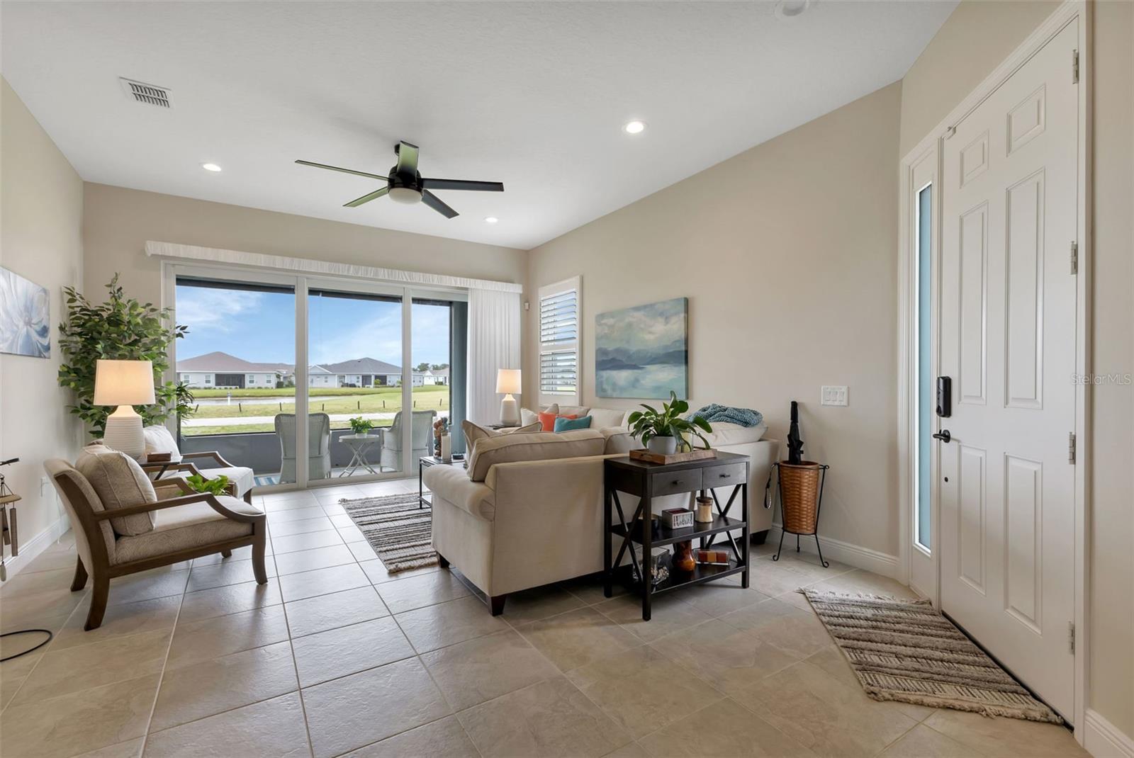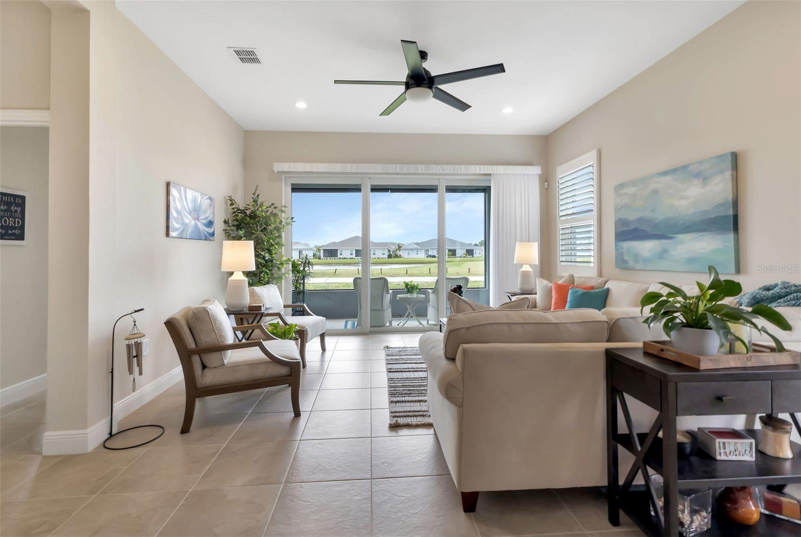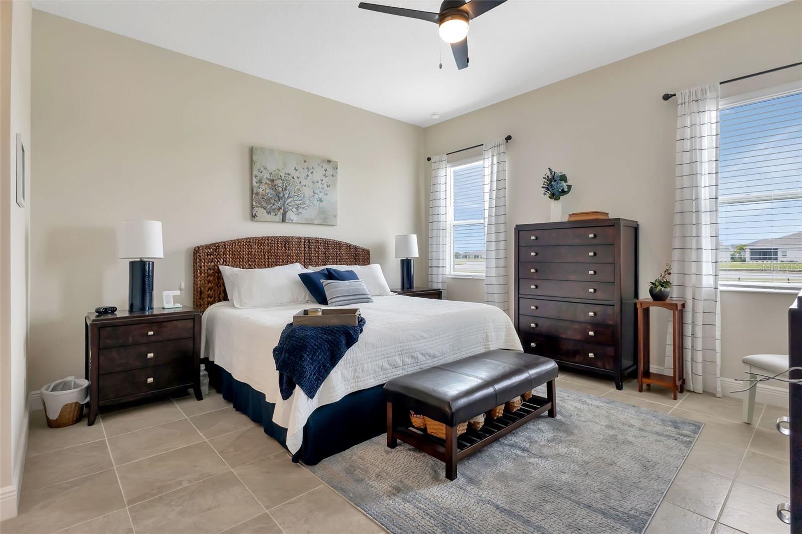 NO DAMAGE OR FLOODING IN UNIT FROM HURRICANE MILTON OR HELENE. BEAUTIFUL 10th Hole Golf Course & Water Views AWAIT from this 2023 Built NEW VILLA with tons of upgrades at 55+ Kings Gate Community! Inside, find large format tile throughout, plantation shutters, quartz countertops, real wood cabinets, upgraded light fixtures, upgraded pulls, a screened lanai, and more! This VENETIAN FLOOR PLAN boasts 1660 square feet, the largest floor plan by Neal Communities, and is thoughtfully arranged with great spaces and natural light. Inside the front door, enjoy a spacious living room with sliding glass doors to the lanai to watch the golfers or the ducks in the pond. This room is open to the dinette and large eat-in kitchen with beautiful finishes! Off the back side of the kitchen, find a conveniently located guest bathroom with lovely appointments, also nearby to the guest bedroom with great storage and natural light. Also off the kitchen enjoy a MASSIVE laundry room with sink/extra cabinets and also access to the 2 car garage with extra storage. Back off the living room, find the primary suite tucked away privately, with a large bedroom, walk in closets, and an en-suite bathroom with stone counters, dual vanities, a private toilet room and a large walk-in shower with glass surround. This villa is close to all things Kings Gate, including the amenities center, restaurant, golf, billiards, exercise rooms, pool, spa, all with a full-time activities director and more! With 24-hour gated security and the ability to ride your golf cart in the neighborhood and to nearby shops and restaurants, it is an ideal location! Additionally, this community is convenient to all things Port Charlotte and Punta Gorda for fishing, shopping, hospitals, golf, and more. It is nearby to I-75 and the PGD airport for easy travel access. Schedule your showing today! BE SURE TO CLICK THE FULL VIRTUAL TOUR LINKS FOR DETAILS