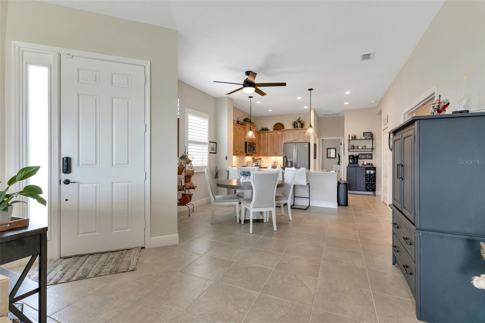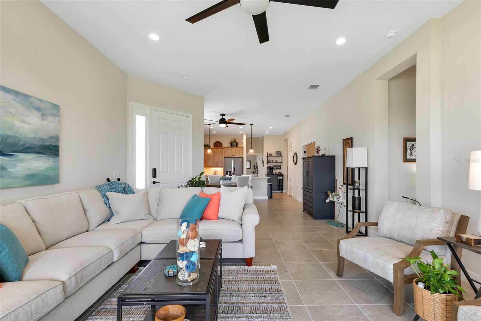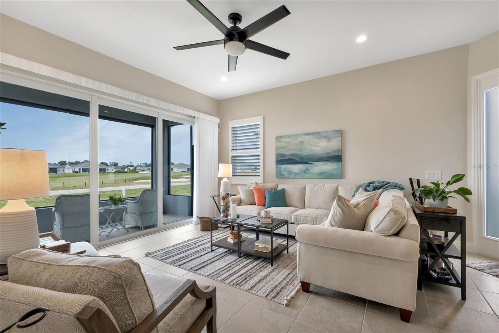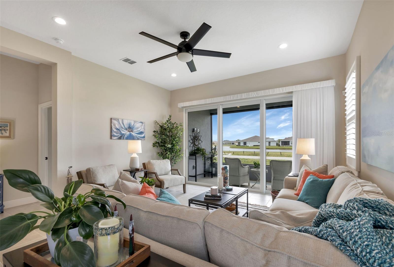 NO DAMAGE OR FLOODING IN UNIT FROM HURRICANE MILTON OR HELENE. BEAUTIFUL 10th Hole Golf Course & Water Views AWAIT from this 2023 Built NEW VILLA with tons of upgrades at 55+ Kings Gate Community! Inside, find large format tile throughout, plantation shutters, quartz countertops, real wood cabinets, upgraded light fixtures, upgraded pulls, a screened lanai, and more! This VENETIAN FLOOR PLAN boasts 1660 square feet, the largest floor plan by Neal Communities, and is thoughtfully arranged with great spaces and natural light. Inside the front door, enjoy a spacious living room with sliding glass doors to the lanai to watch the golfers or the ducks in the pond. This room is open to the dinette and large eat-in kitchen with beautiful finishes! Off the back side of the kitchen, find a conveniently located guest bathroom with lovely appointments, also nearby to the guest bedroom with great storage and natural light. Also off the kitchen enjoy a MASSIVE laundry room with sink/extra cabinets and also access to the 2 car garage with extra storage. Back off the living room, find the primary suite tucked away privately, with a large bedroom, walk in closets, and an en-suite bathroom with stone counters, dual vanities, a private toilet room and a large walk-in shower with glass surround. This villa is close to all things Kings Gate, including the amenities center, restaurant, golf, billiards, exercise rooms, pool, spa, all with a full-time activities director and more! With 24-hour gated security and the ability to ride your golf cart in the neighborhood and to nearby shops and restaurants, it is an ideal location! Additionally, this community is convenient to all things Port Charlotte and Punta Gorda for fishing, shopping, hospitals, golf, and more. It is nearby to I-75 and the PGD airport for easy travel access. Schedule your showing today! BE SURE TO CLICK THE FULL VIRTUAL TOUR LINKS FOR DETAILS