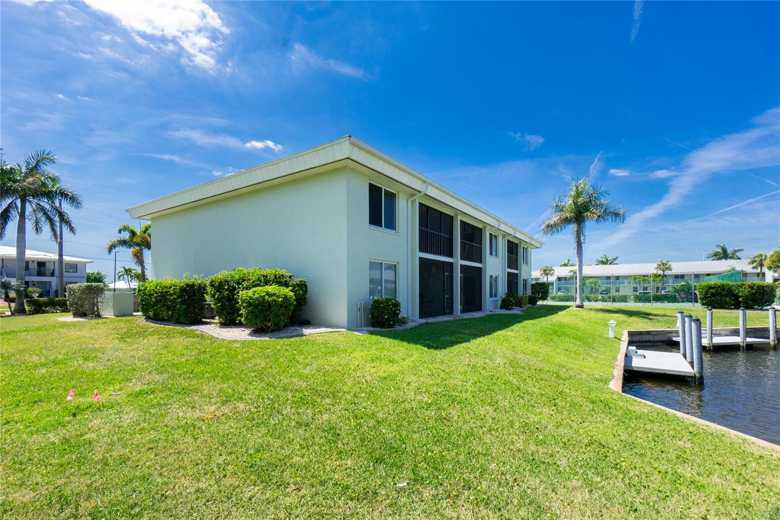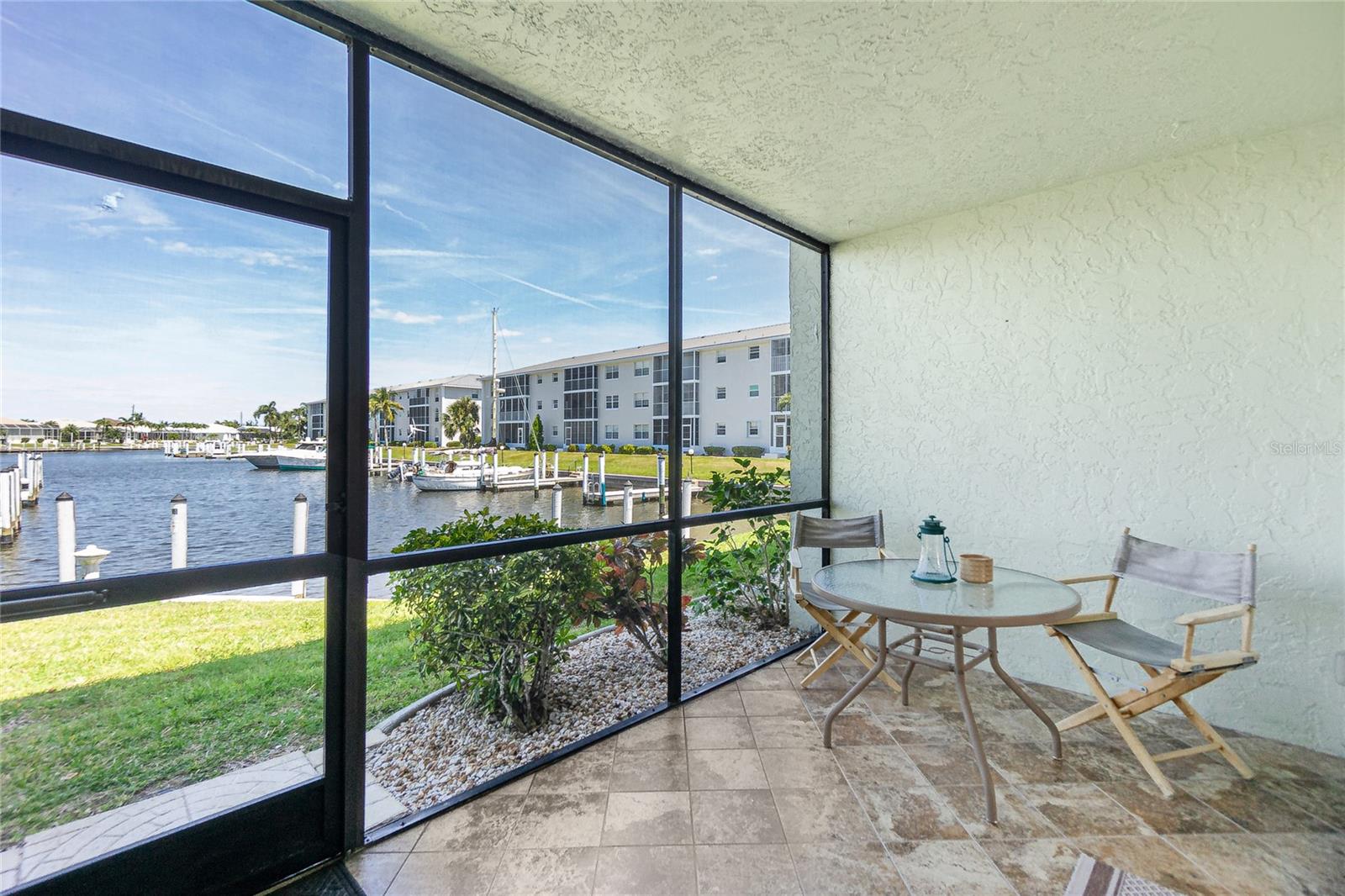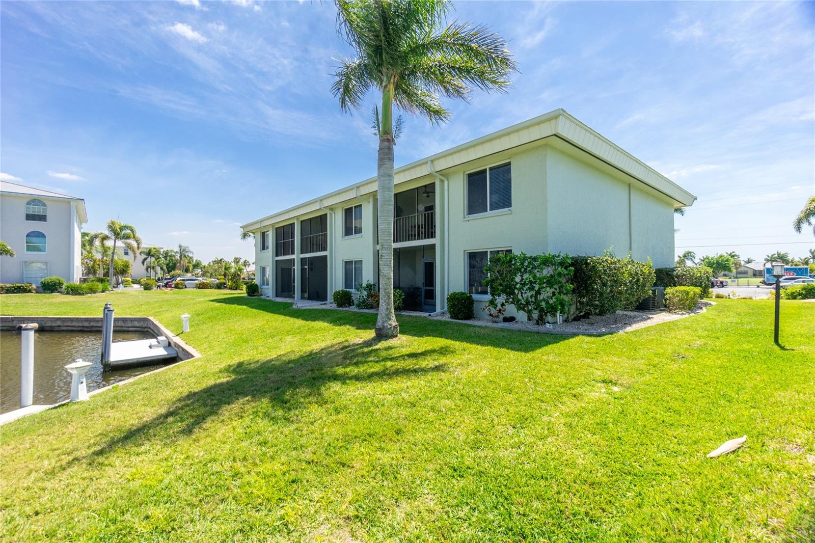 What a great PRICE REDUCTION for this LOWER LEVEL WATERFRONT condo in beautiful Punta Gorda Isles! Embrace waterfront living while being close to downtown Punta Gorda and endless entertainment options in this spacious Condominium in Villas of Cedar Key. This TURN KEY unit comes fully furnished with everything from towels to silverware, neutral wall colors, flooring and furnishings making it easy for you to move in bringing only your suitcase. The split bedroom floor plan and 2 full baths offer plenty of space and include ceramic tile throughout the main living area, carpet in the bedrooms plus full-size washer and dryer. Enjoy breathtaking views of the canal length from the screened in lanai while sipping on coffee or your choice of nightcap. This unit comes with a deeded dock (#35) which is accessible only a few steps outside the lanai door providing easy waterfront access. Just minutes away from Fisherman's Village, Historic Downtown, the newly constructed Sunseeker Resort, golf, tennis, pickleball, Gilchrest Park and a variety of shopping and dining options. Have peace of mind with the protection of hurricane impact windows. This condo is the perfect place to relax and enjoy the stunning surroundings. Take advantage of this incredible opportunity before it's gone!