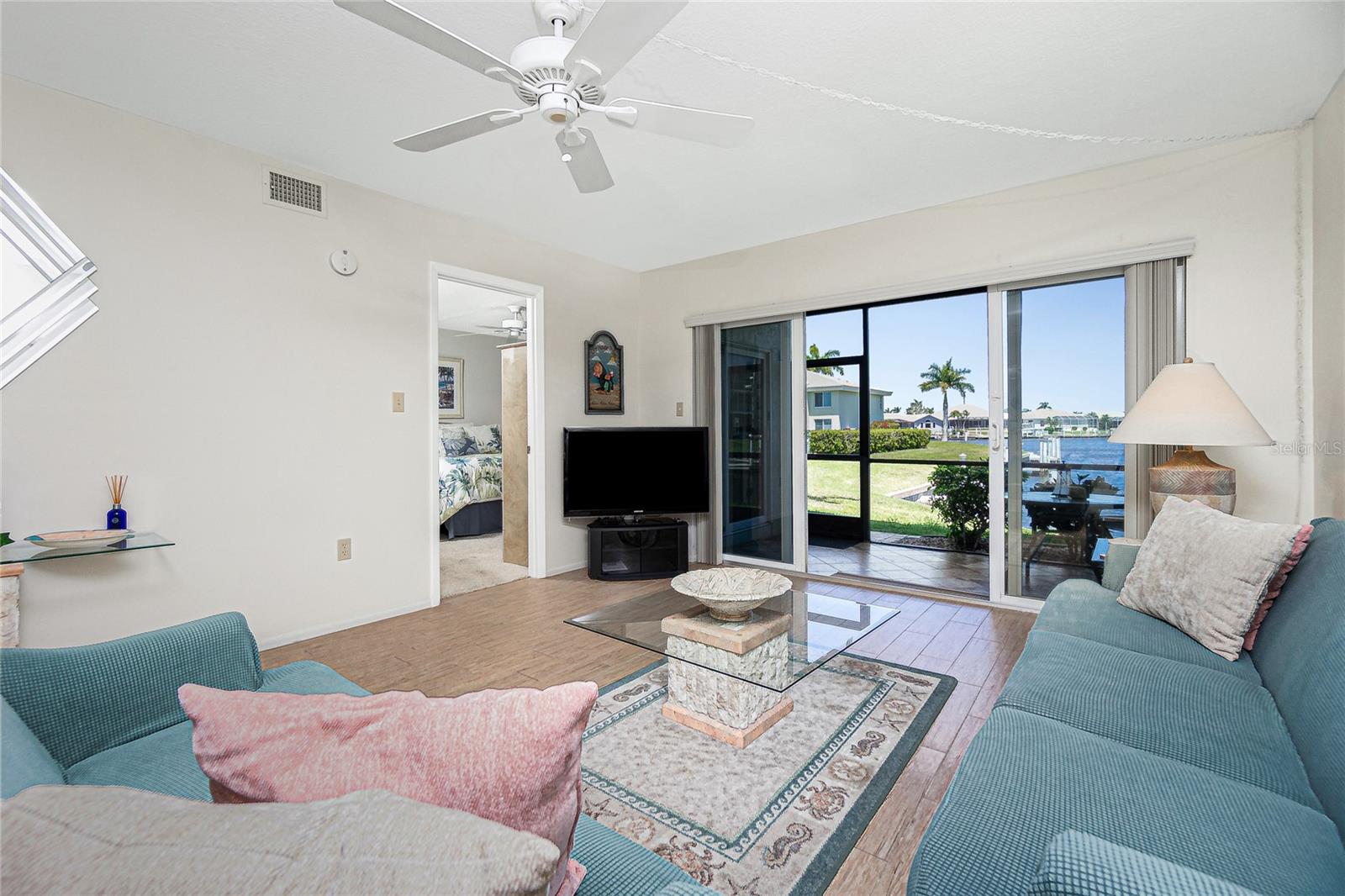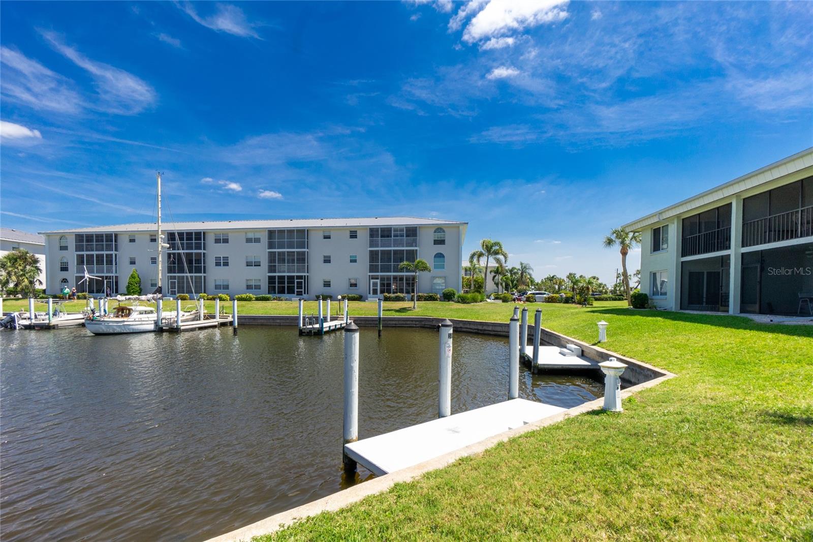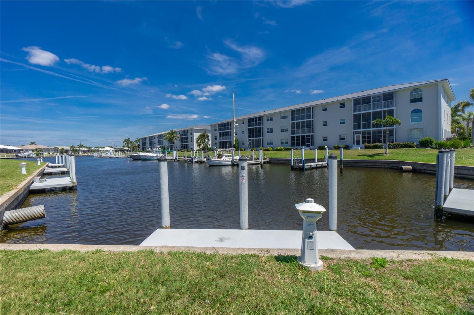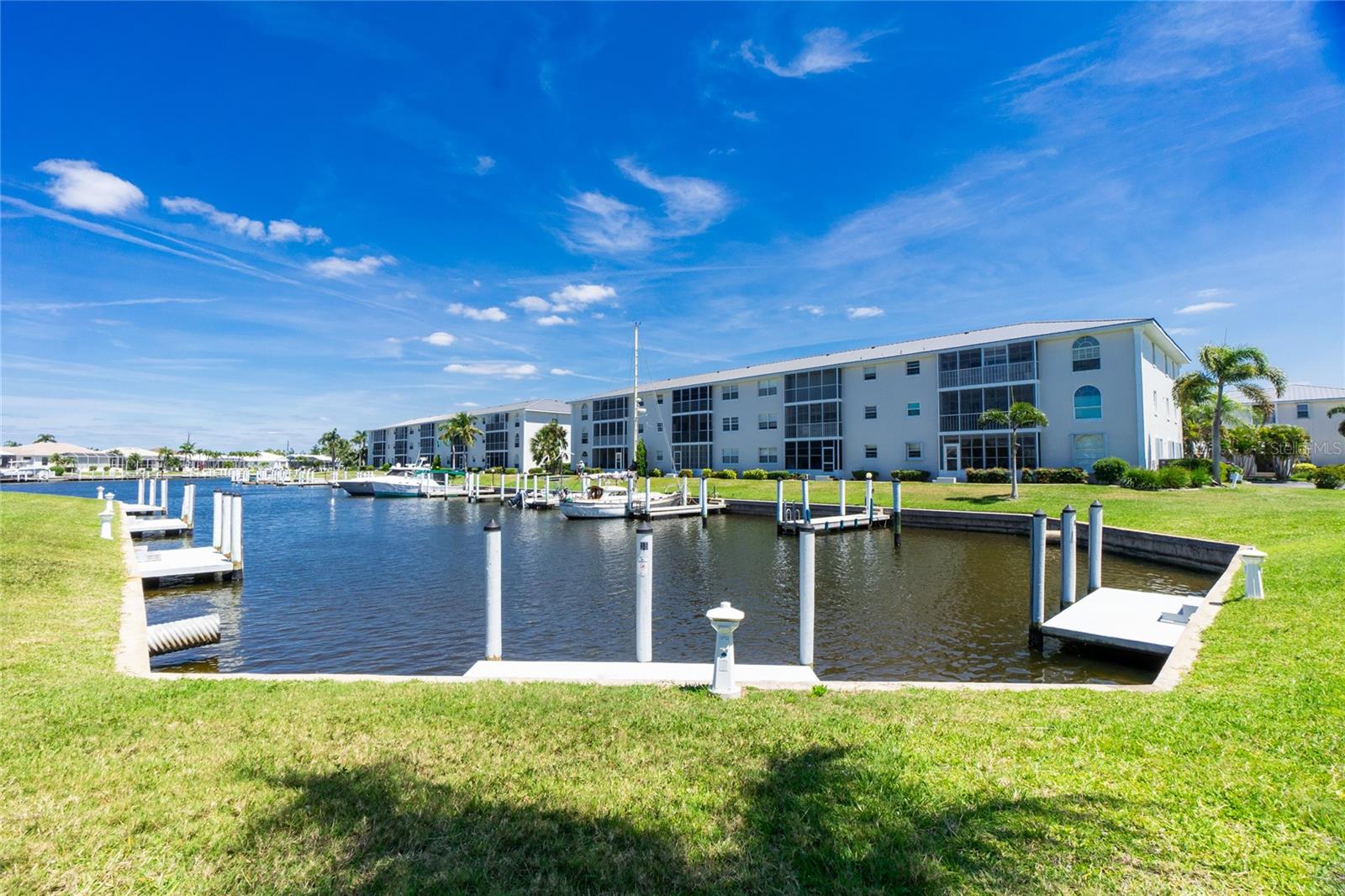 What a great PRICE REDUCTION for this LOWER LEVEL WATERFRONT condo in beautiful Punta Gorda Isles! Embrace waterfront living while being close to downtown Punta Gorda and endless entertainment options in this spacious Condominium in Villas of Cedar Key. This TURN KEY unit comes fully furnished with everything from towels to silverware, neutral wall colors, flooring and furnishings making it easy for you to move in bringing only your suitcase. The split bedroom floor plan and 2 full baths offer plenty of space and include ceramic tile throughout the main living area, carpet in the bedrooms plus full-size washer and dryer. Enjoy breathtaking views of the canal length from the screened in lanai while sipping on coffee or your choice of nightcap. This unit comes with a deeded dock (#35) which is accessible only a few steps outside the lanai door providing easy waterfront access. Just minutes away from Fisherman's Village, Historic Downtown, the newly constructed Sunseeker Resort, golf, tennis, pickleball, Gilchrest Park and a variety of shopping and dining options. Have peace of mind with the protection of hurricane impact windows. This condo is the perfect place to relax and enjoy the stunning surroundings. Take advantage of this incredible opportunity before it's gone!